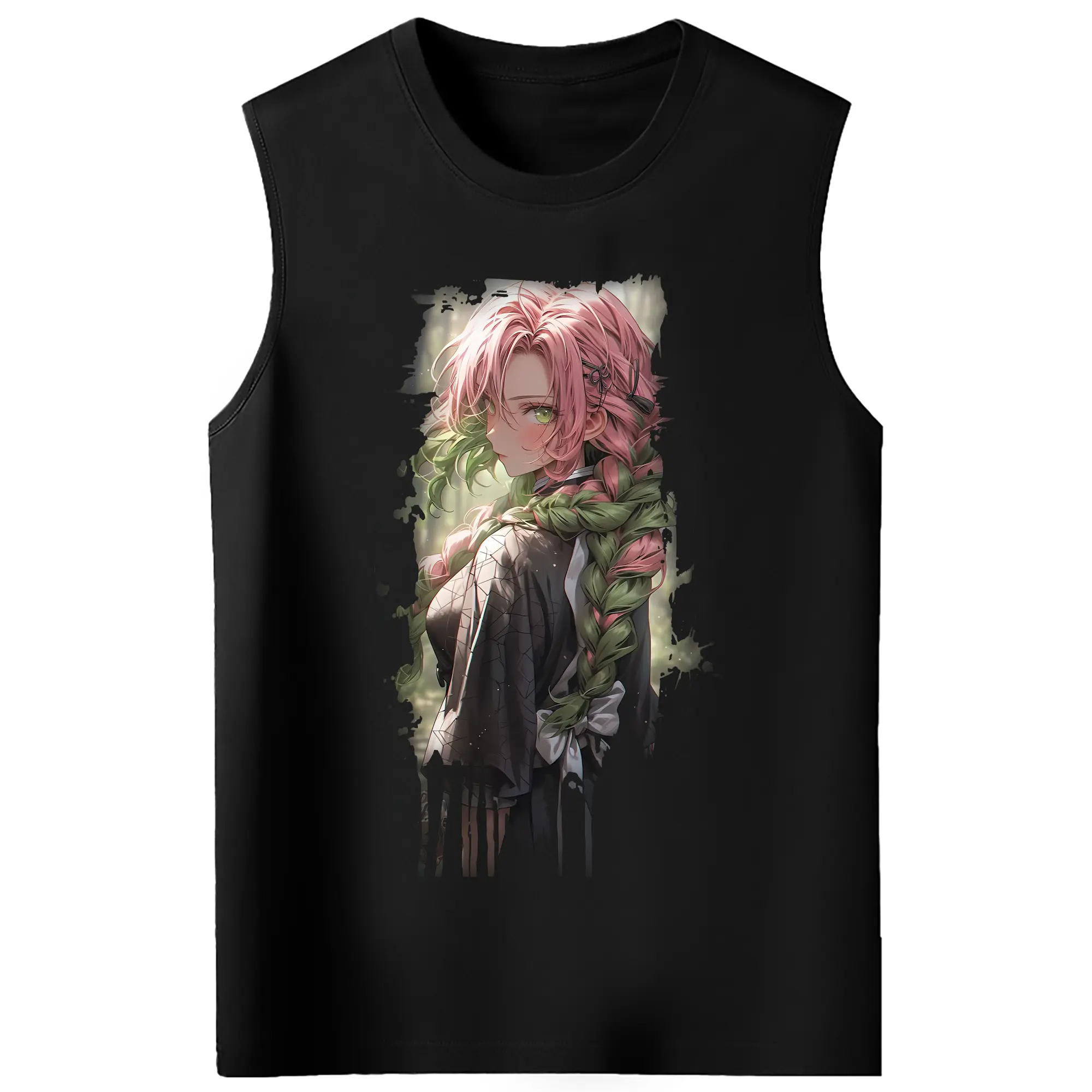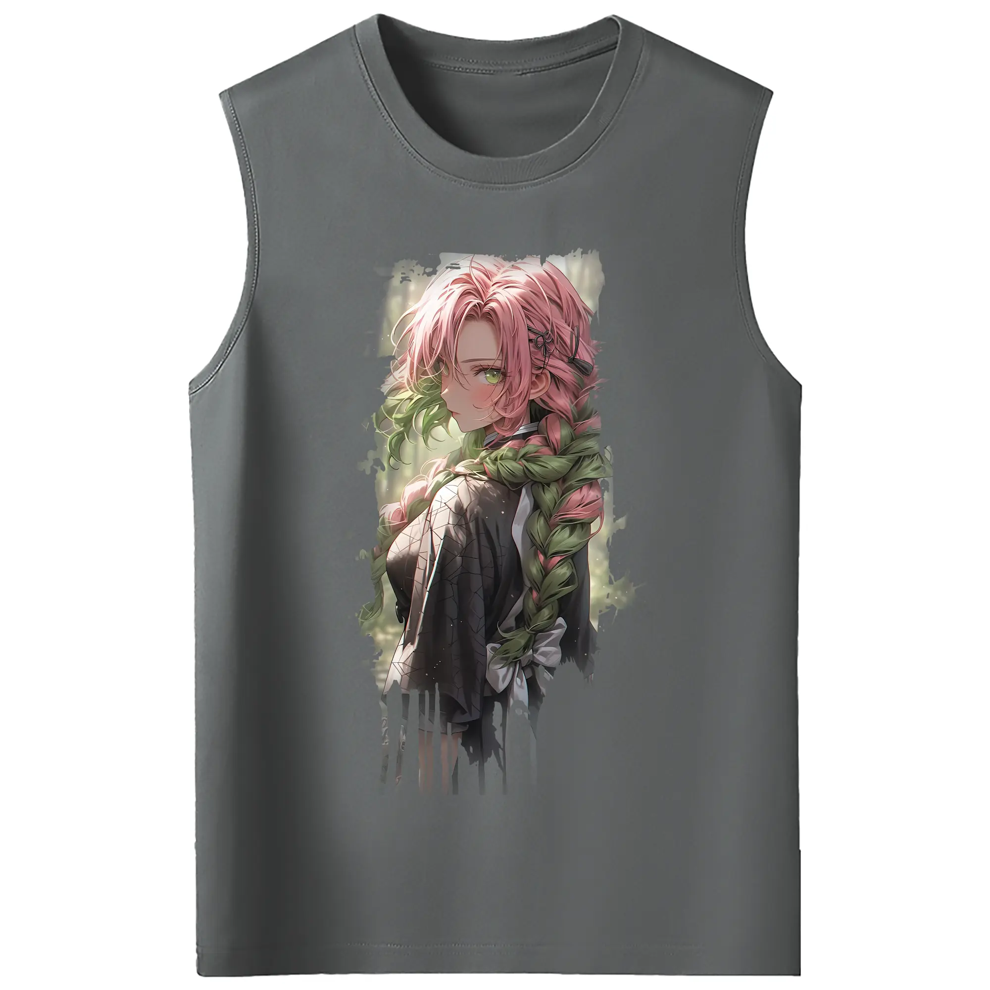 鬼滅の刃 グッズ,甘露寺 蜜璃 - コットン100% タンクトップ ・ フロントプリント ・ タイトフィット ・ 快適 通気性 ・ スポーツ カジュアル 散歩用