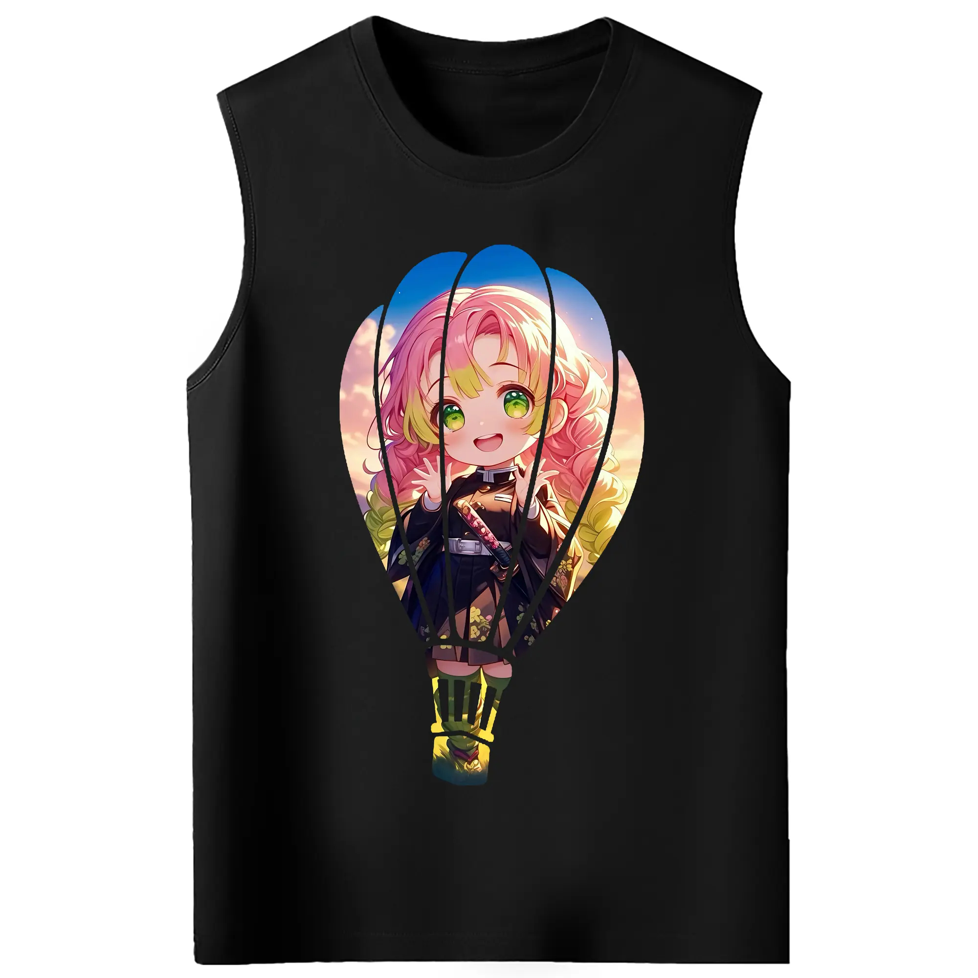鬼滅の刃 グッズ,甘露寺 蜜璃 - コットン100% タンクトップ ・ フロントプリント ・ タイトフィット ・ 快適 通気性 ・ スポーツ カジュアル 散歩用