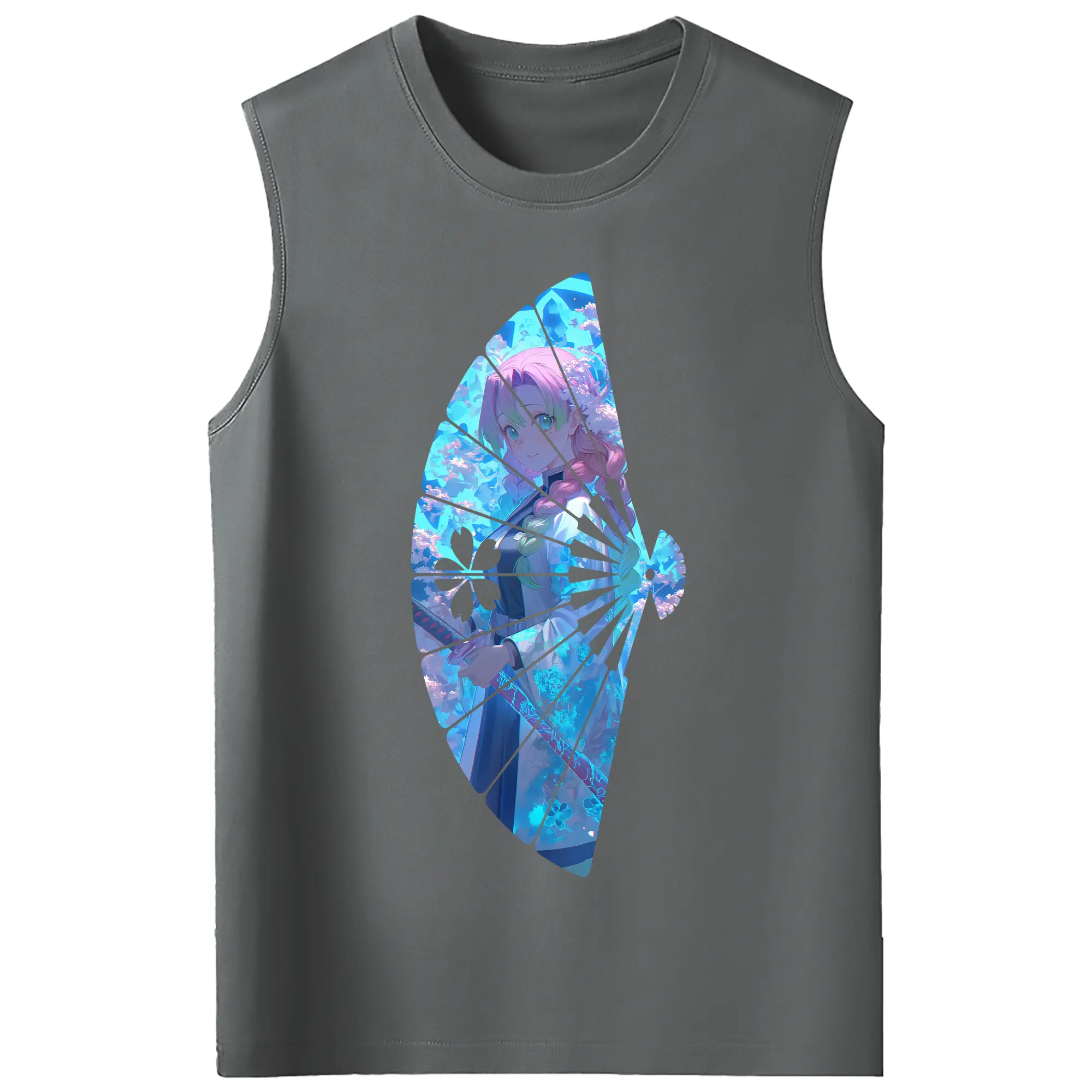 鬼滅の刃 グッズ,甘露寺 蜜璃 - コットン100% タンクトップ ・ フロントプリント ・ タイトフィット ・ 快適 通気性 ・ スポーツ カジュアル 散歩用