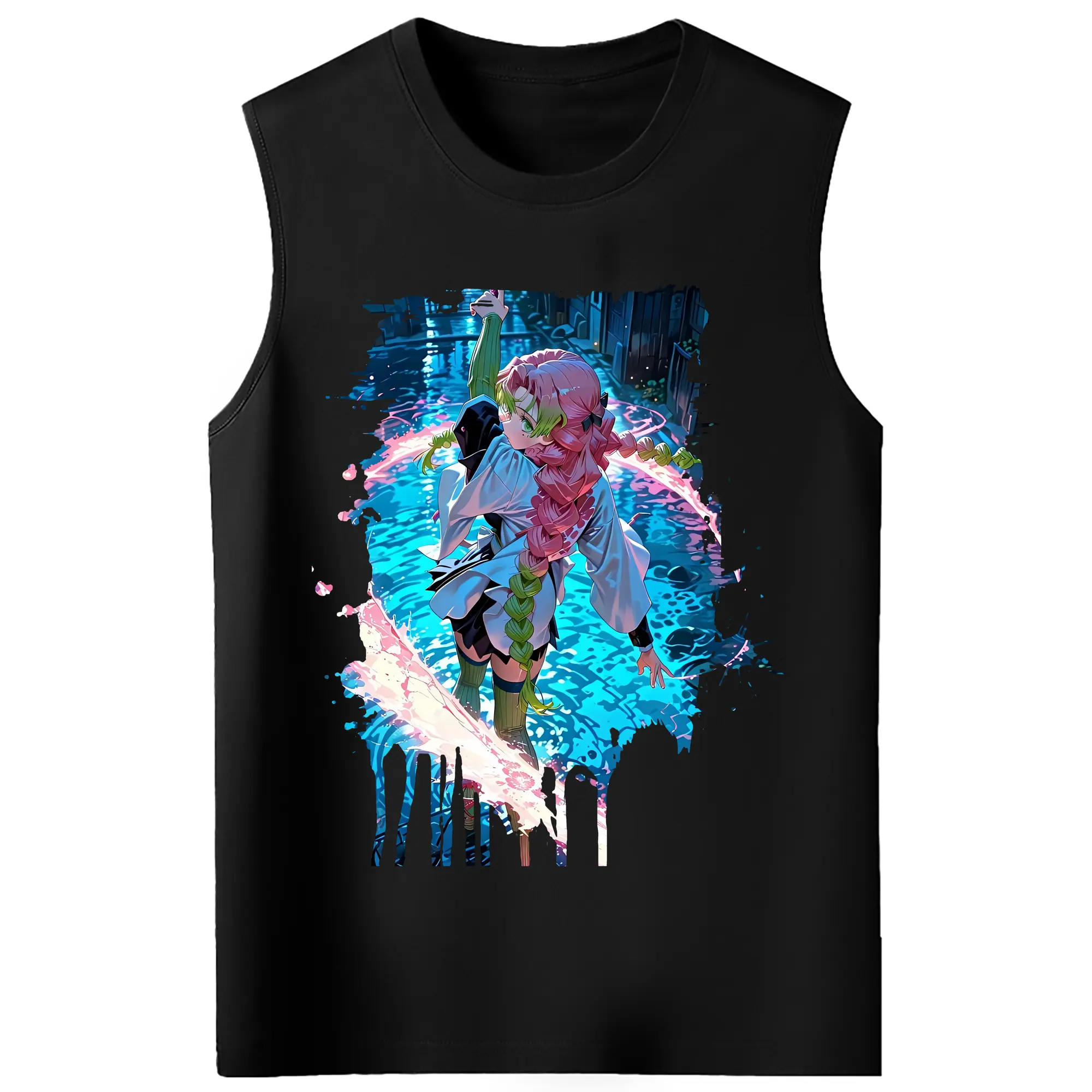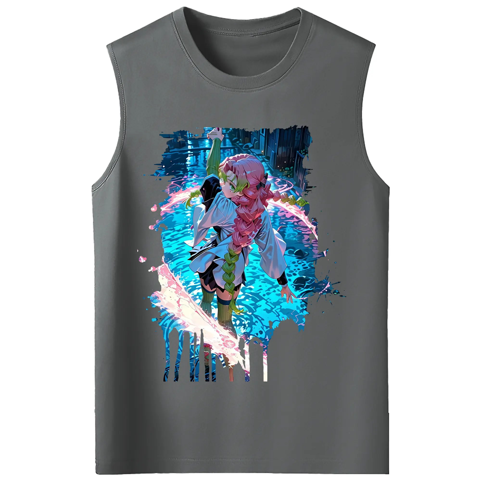 鬼滅の刃 グッズ,甘露寺 蜜璃 - コットン100% タンクトップ ・ フロントプリント ・ タイトフィット ・ 快適 通気性 ・ スポーツ カジュアル 散歩用
