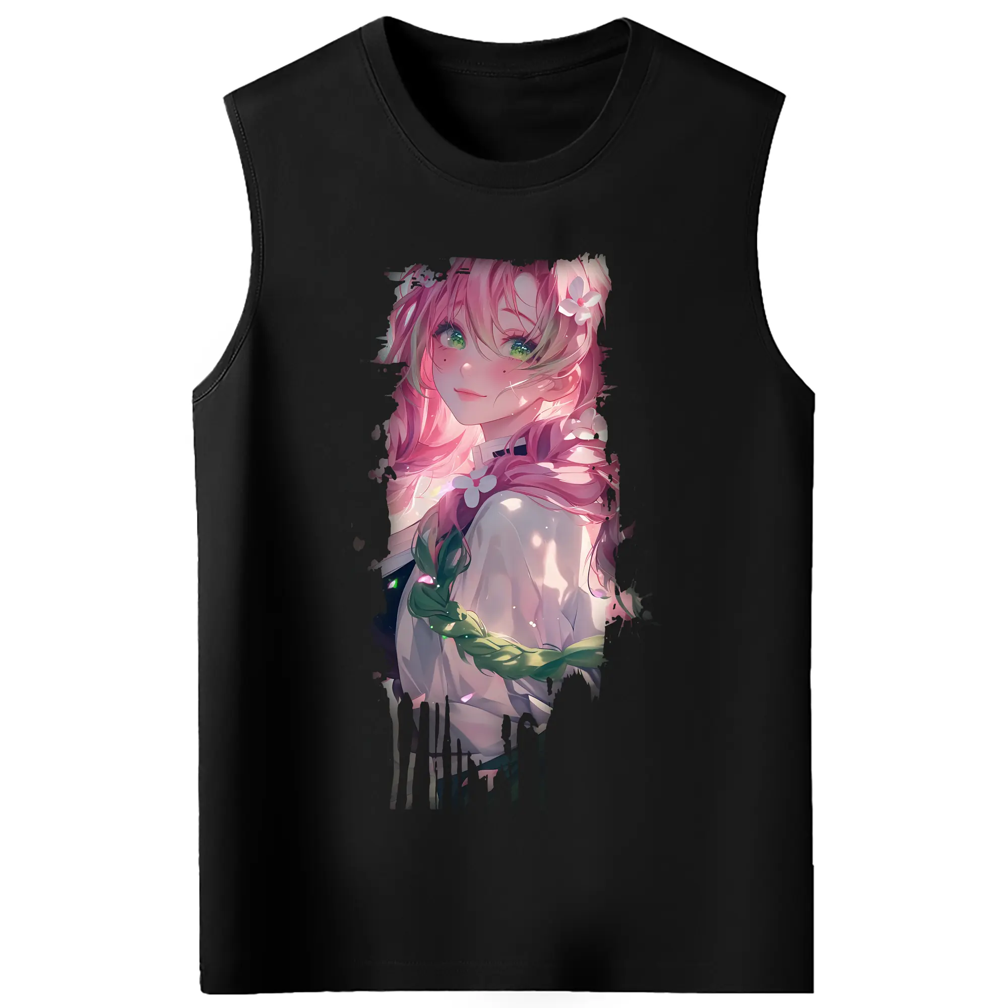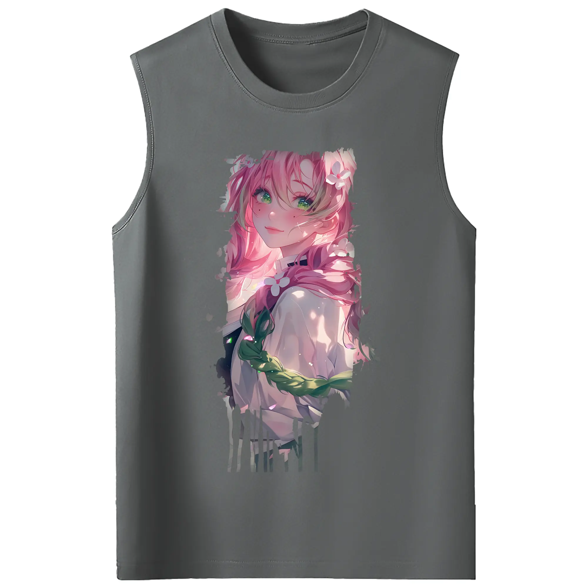 鬼滅の刃 グッズ,甘露寺 蜜璃 - コットン100% タンクトップ ・ フロントプリント ・ タイトフィット ・ 快適 通気性 ・ スポーツ カジュアル 散歩用