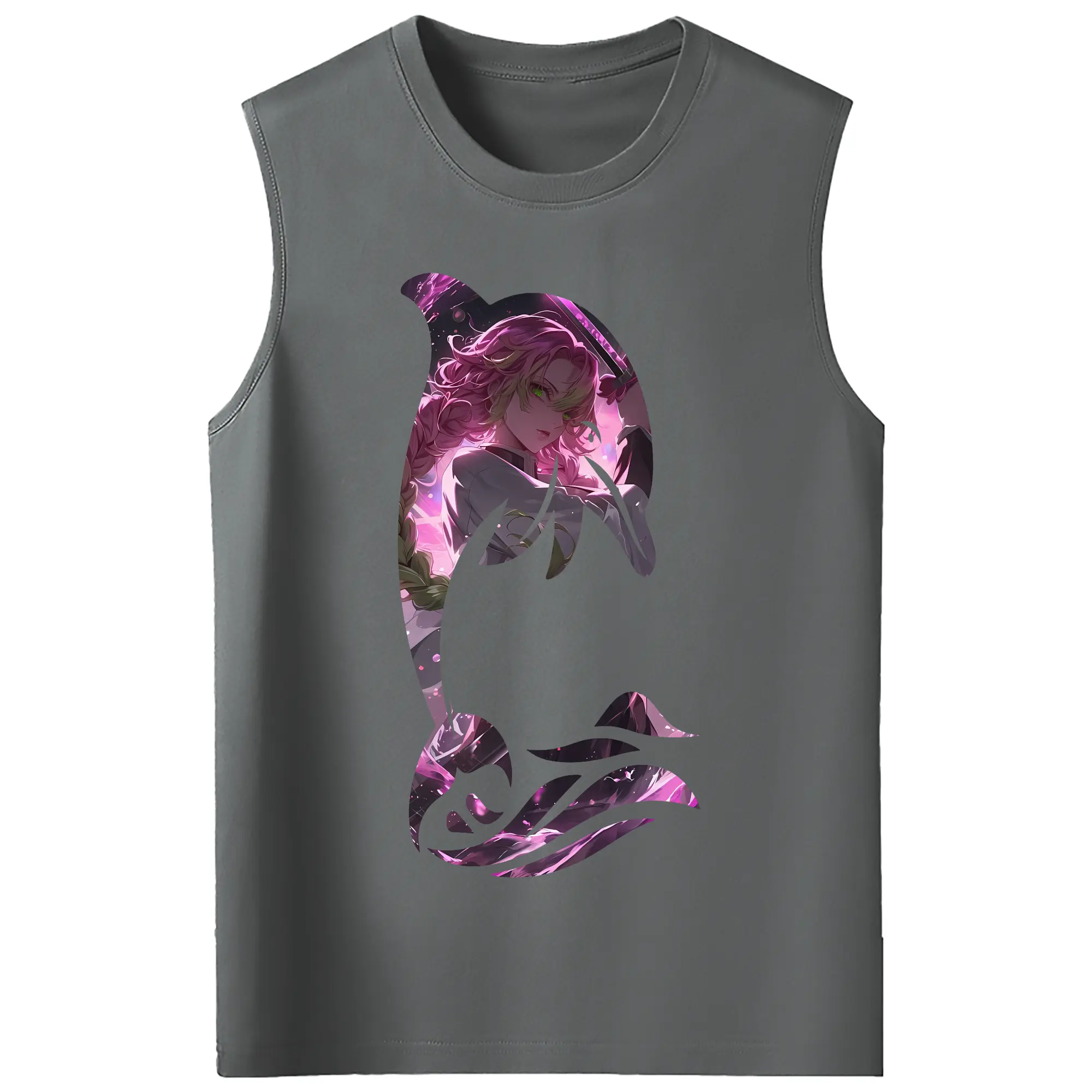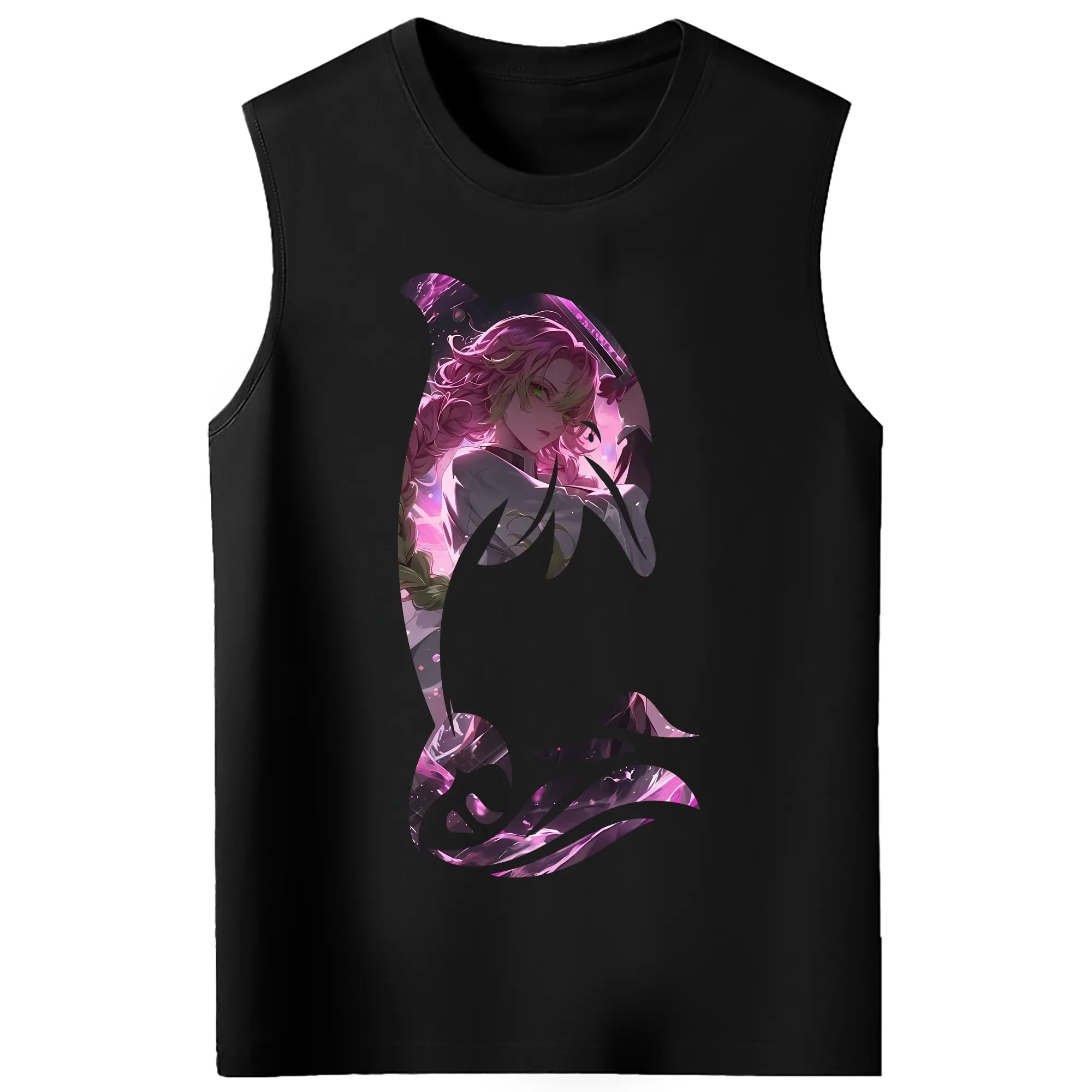 鬼滅の刃 グッズ,甘露寺 蜜璃 - コットン100% タンクトップ ・ フロントプリント ・ タイトフィット ・ 快適 通気性 ・ スポーツ カジュアル 散歩用