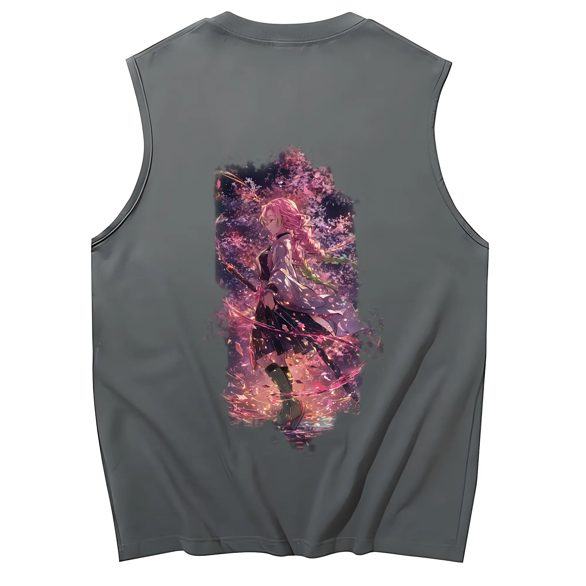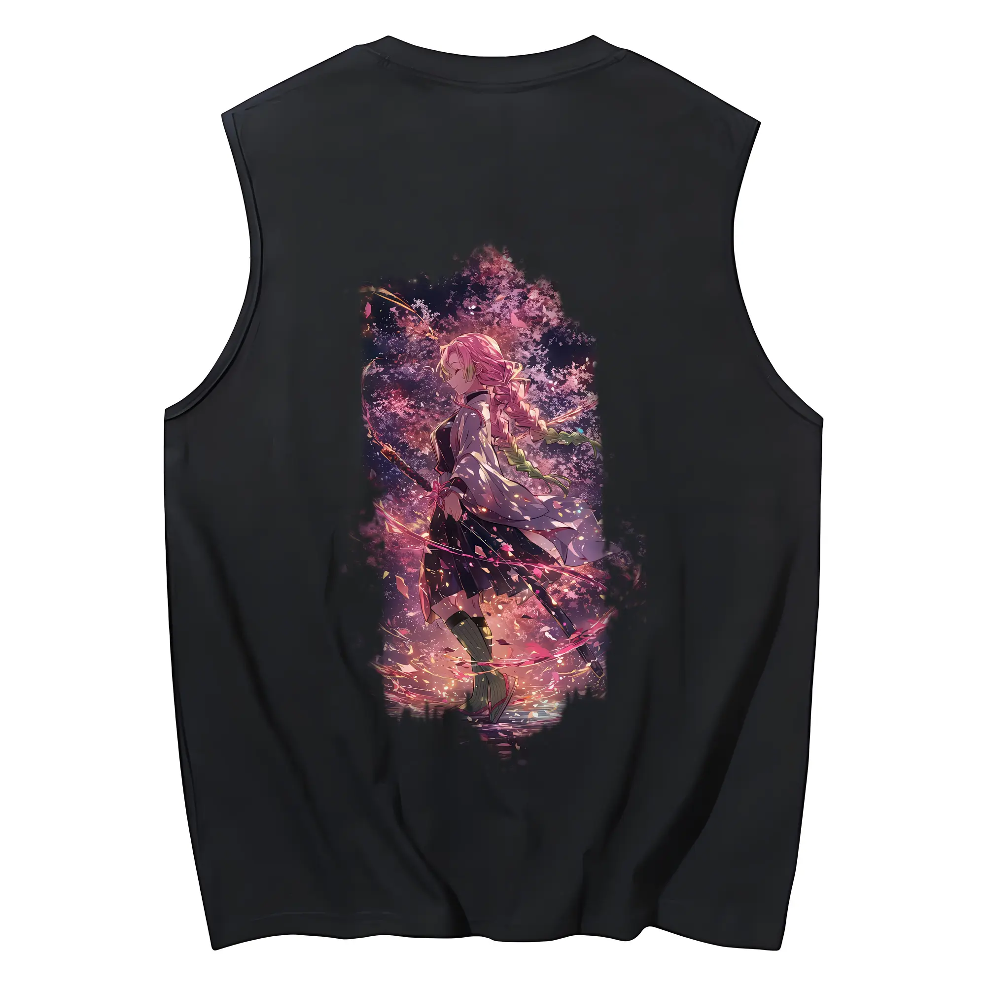鬼滅の刃 グッズ,甘露寺 蜜璃 - コットン100% タンクトップ ・ 背面プリント ・ タイトシルエット ・ 快適 通気性 ・ スポーツ カジュアル 散歩用
