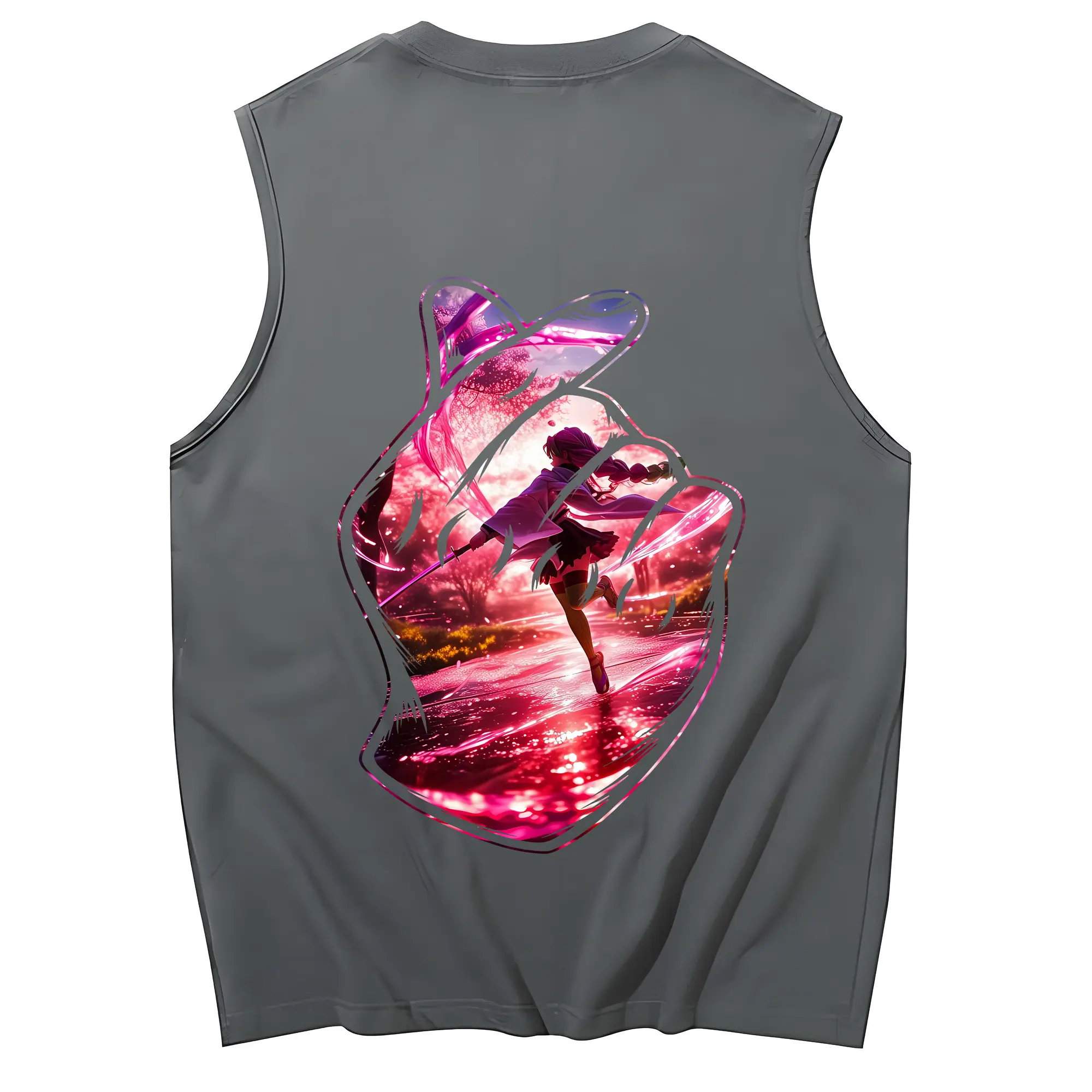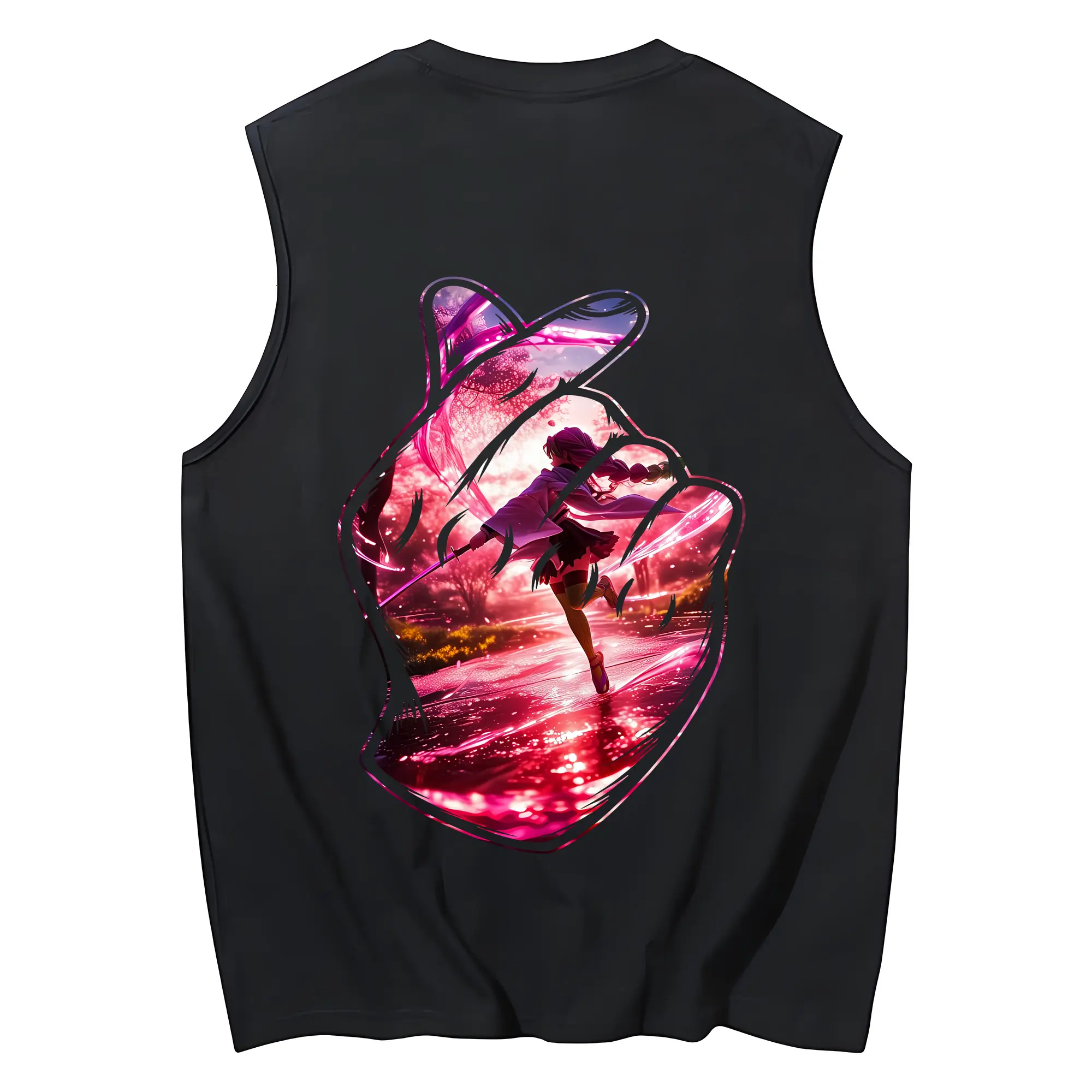 鬼滅の刃 グッズ,甘露寺 蜜璃 - コットン100% タンクトップ ・ 背面プリント ・ タイトシルエット ・ 快適 通気性 ・ スポーツ カジュアル 散歩用