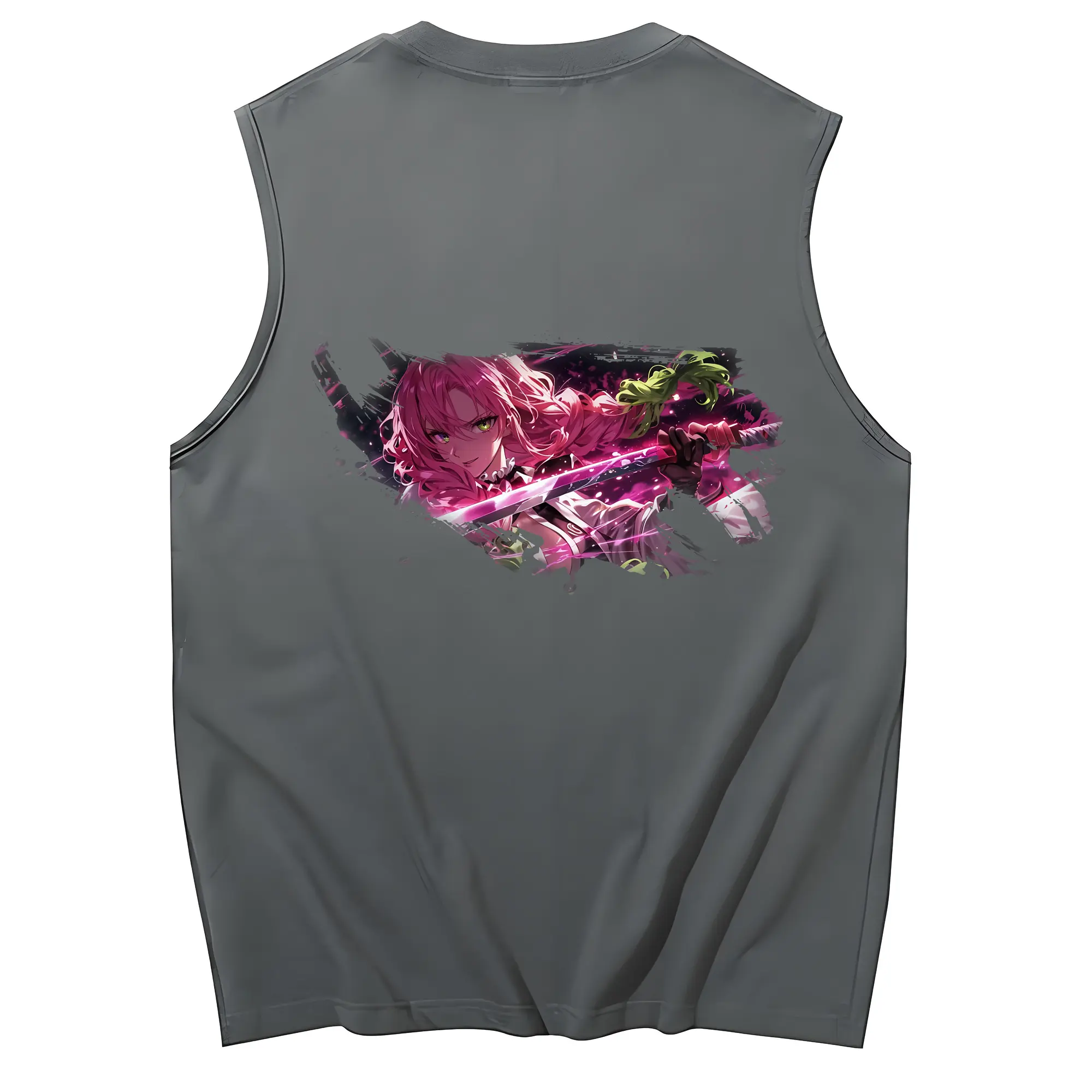 鬼滅の刃 グッズ,甘露寺 蜜璃 - コットン100% タンクトップ ・ 背面プリント ・ タイトシルエット ・ 快適 通気性 ・ スポーツ カジュアル 散歩用