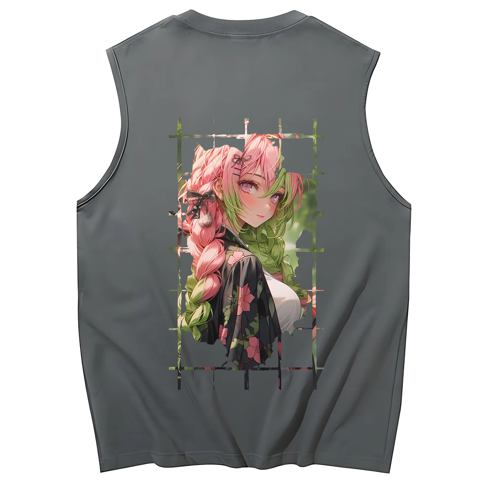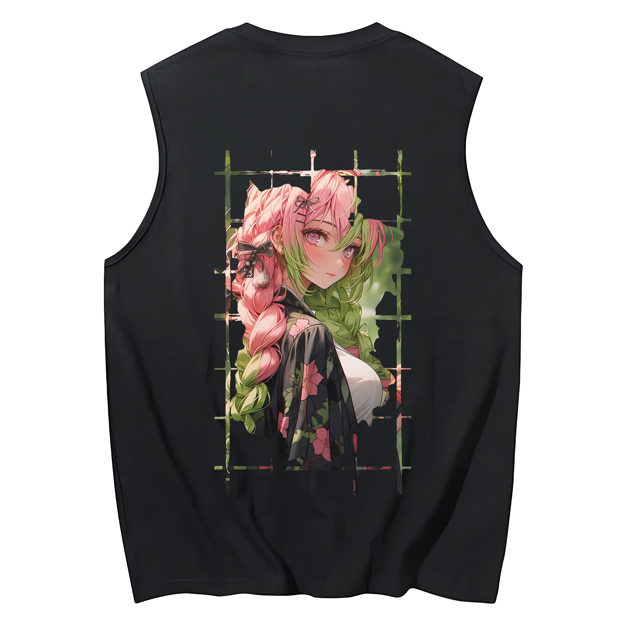 鬼滅の刃 グッズ,甘露寺 蜜璃 - コットン100% タンクトップ ・ 背面プリント ・ タイトシルエット ・ 快適 通気性 ・ スポーツ カジュアル 散歩用