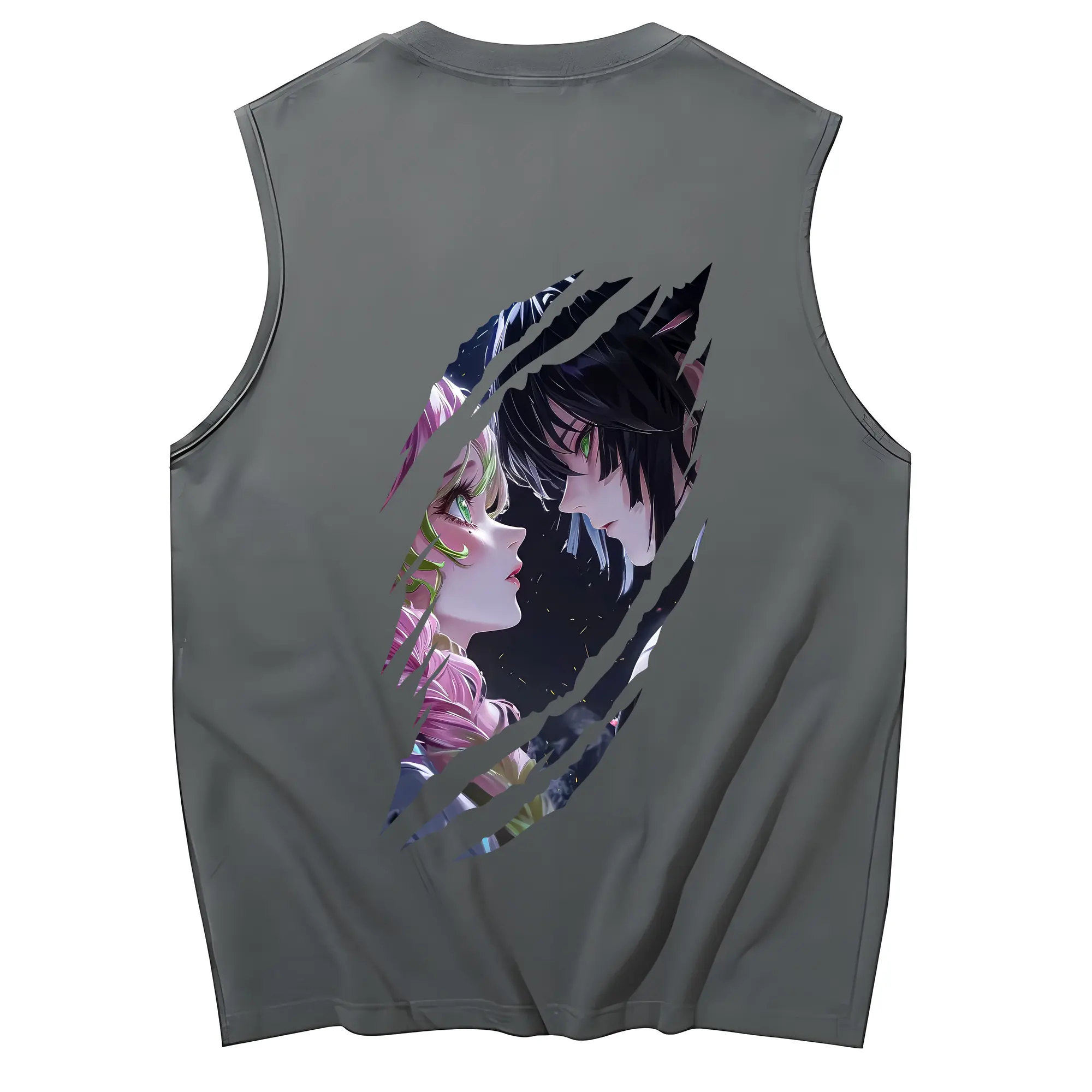 鬼滅の刃 グッズ,甘露寺 蜜璃 - コットン100% タンクトップ ・ 背面プリント ・ タイトシルエット ・ 快適 通気性 ・ スポーツ カジュアル 散歩用