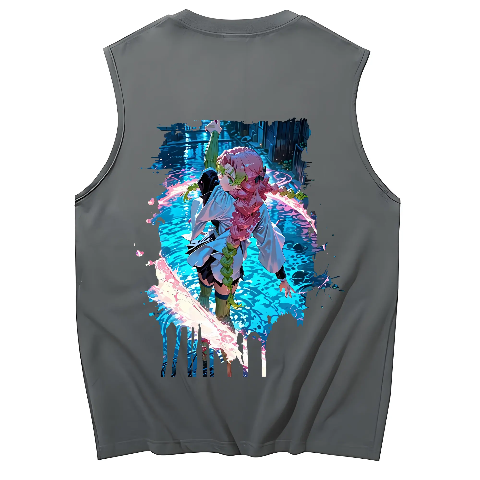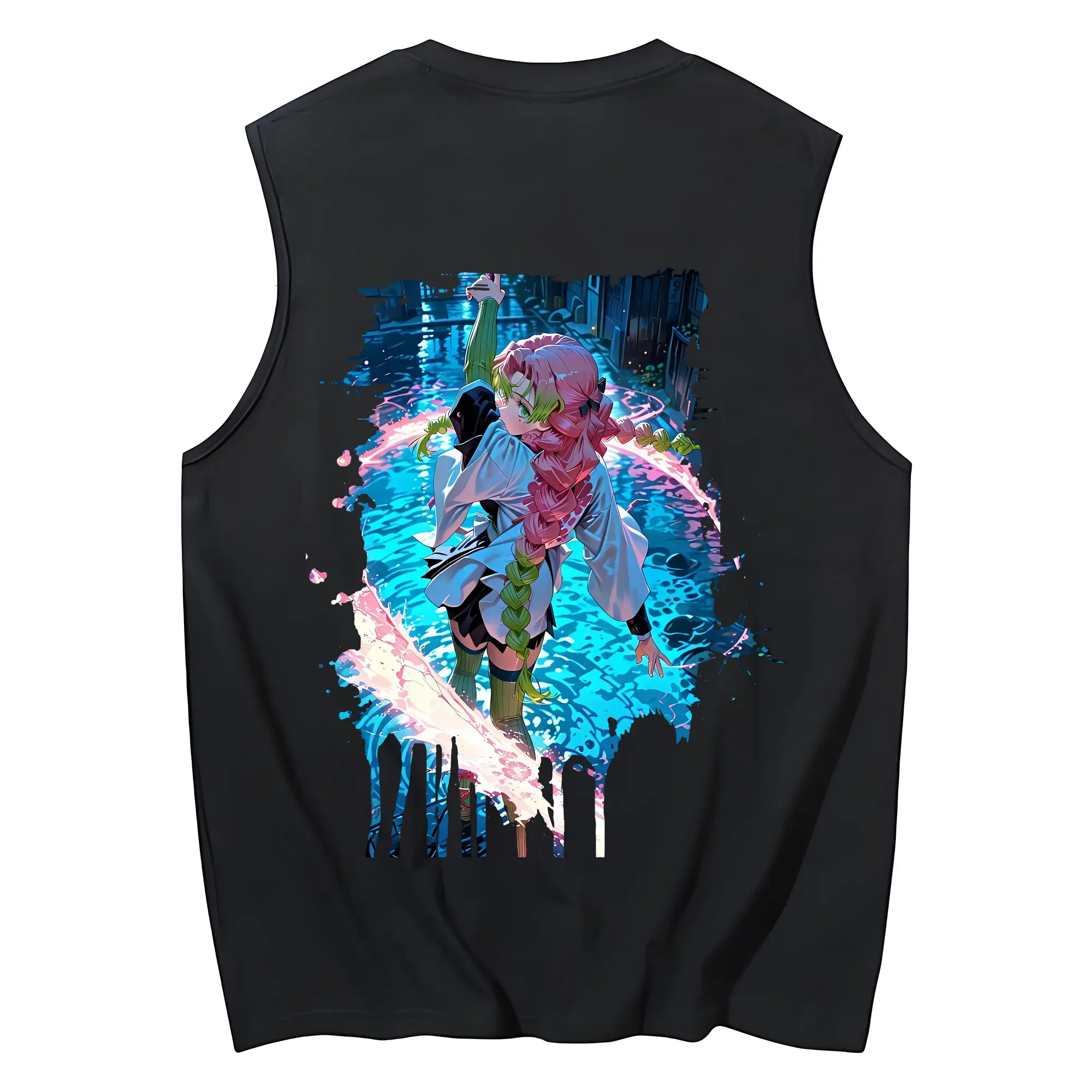 鬼滅の刃 グッズ,甘露寺 蜜璃 - コットン100% タンクトップ ・ 背面プリント ・ タイトシルエット ・ 快適 通気性 ・ スポーツ カジュアル 散歩用