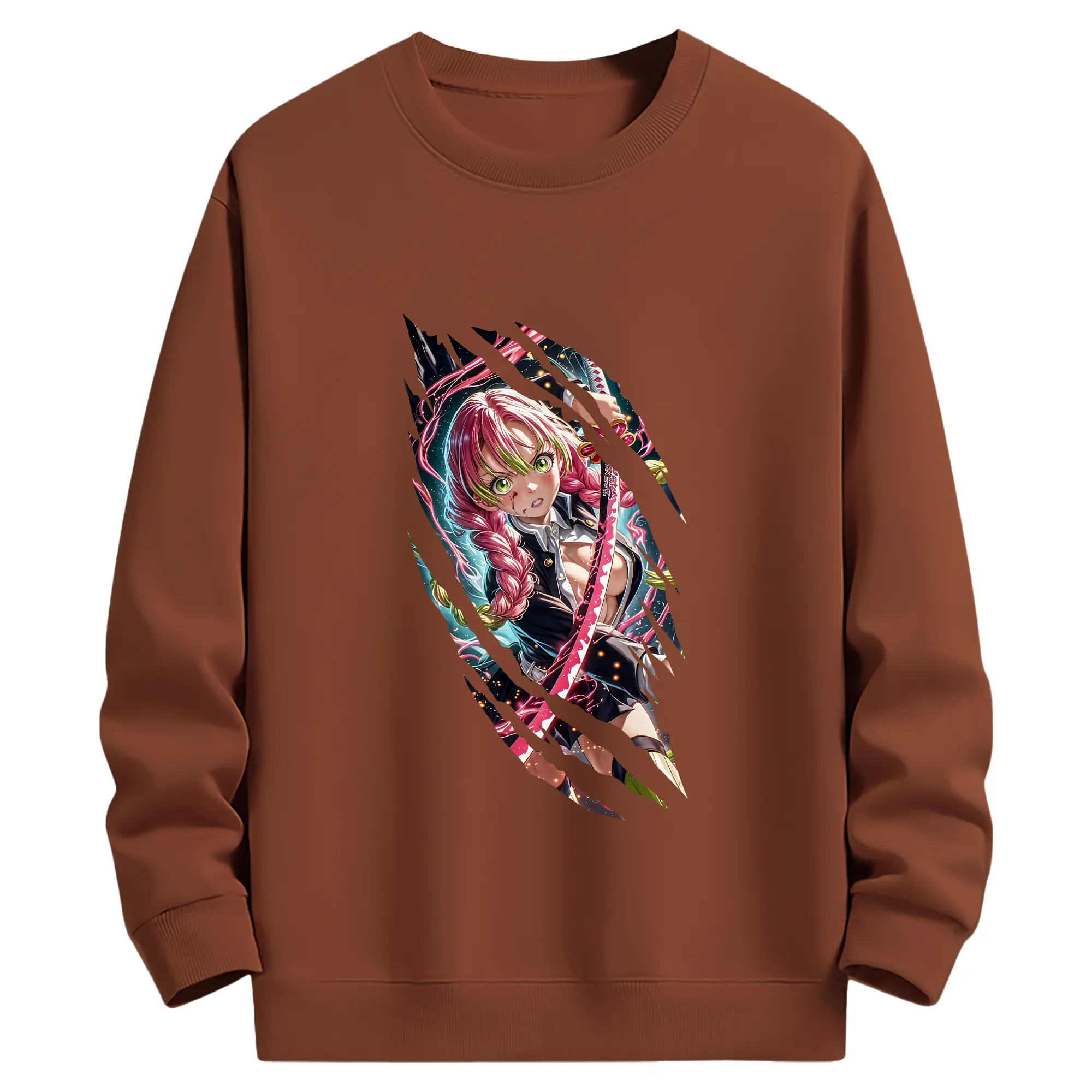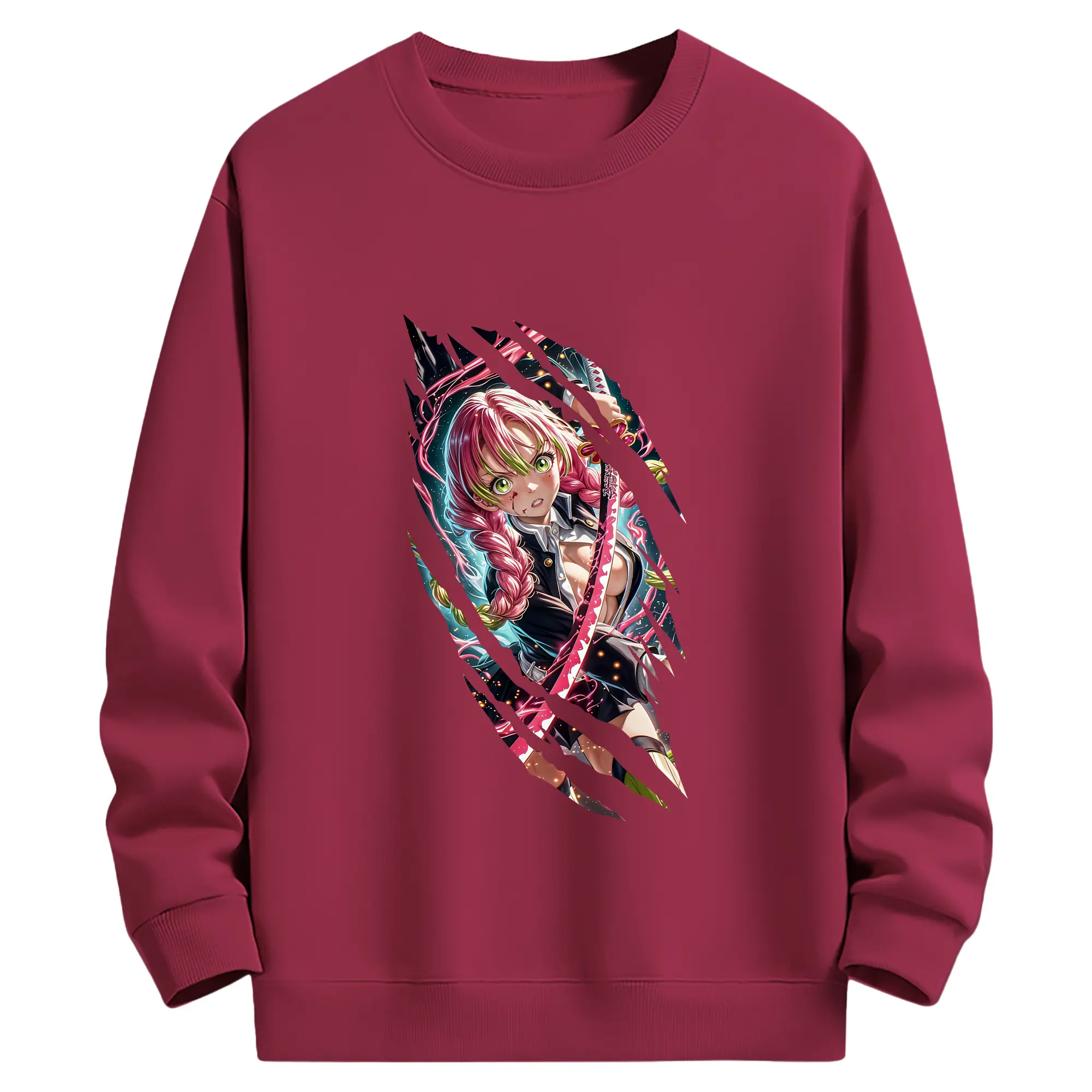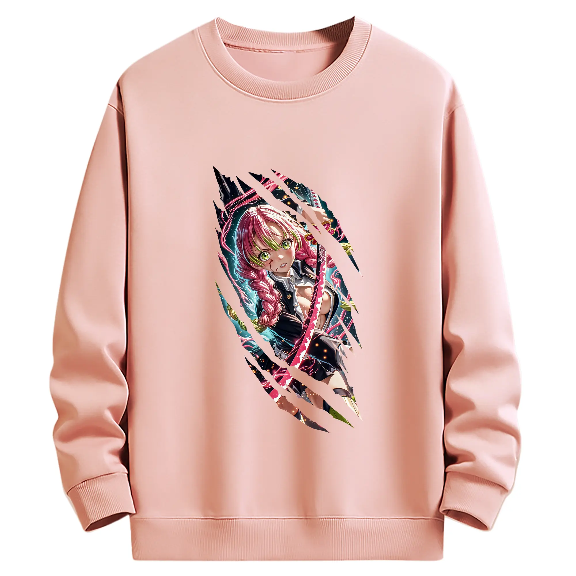 鬼滅の刃 グッズ,甘露寺 蜜璃 - 薄手 クルーネック スウェット 裏毛260g · ポリエステル 春秋向け カジュアル 男女兼用 · トレーナー デイリー スポーツ 散歩に最適