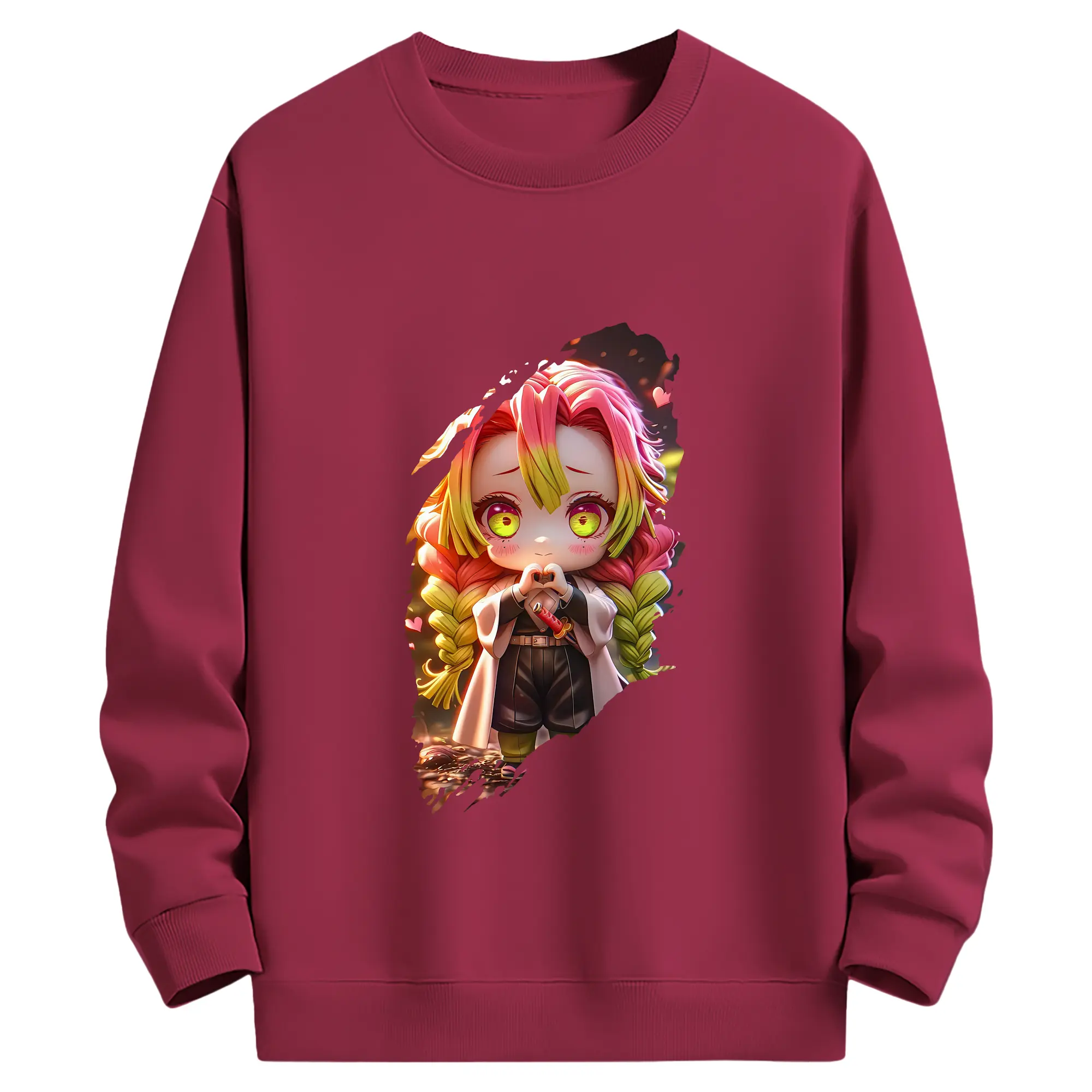 鬼滅の刃 グッズ,甘露寺 蜜璃 - 薄手 クルーネック スウェット 裏毛260g · ポリエステル 春秋向け カジュアル 男女兼用 · トレーナー デイリー スポーツ 散歩に最適