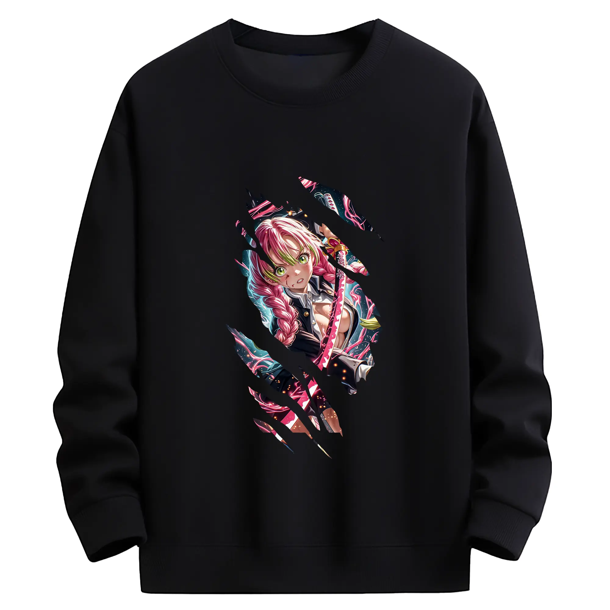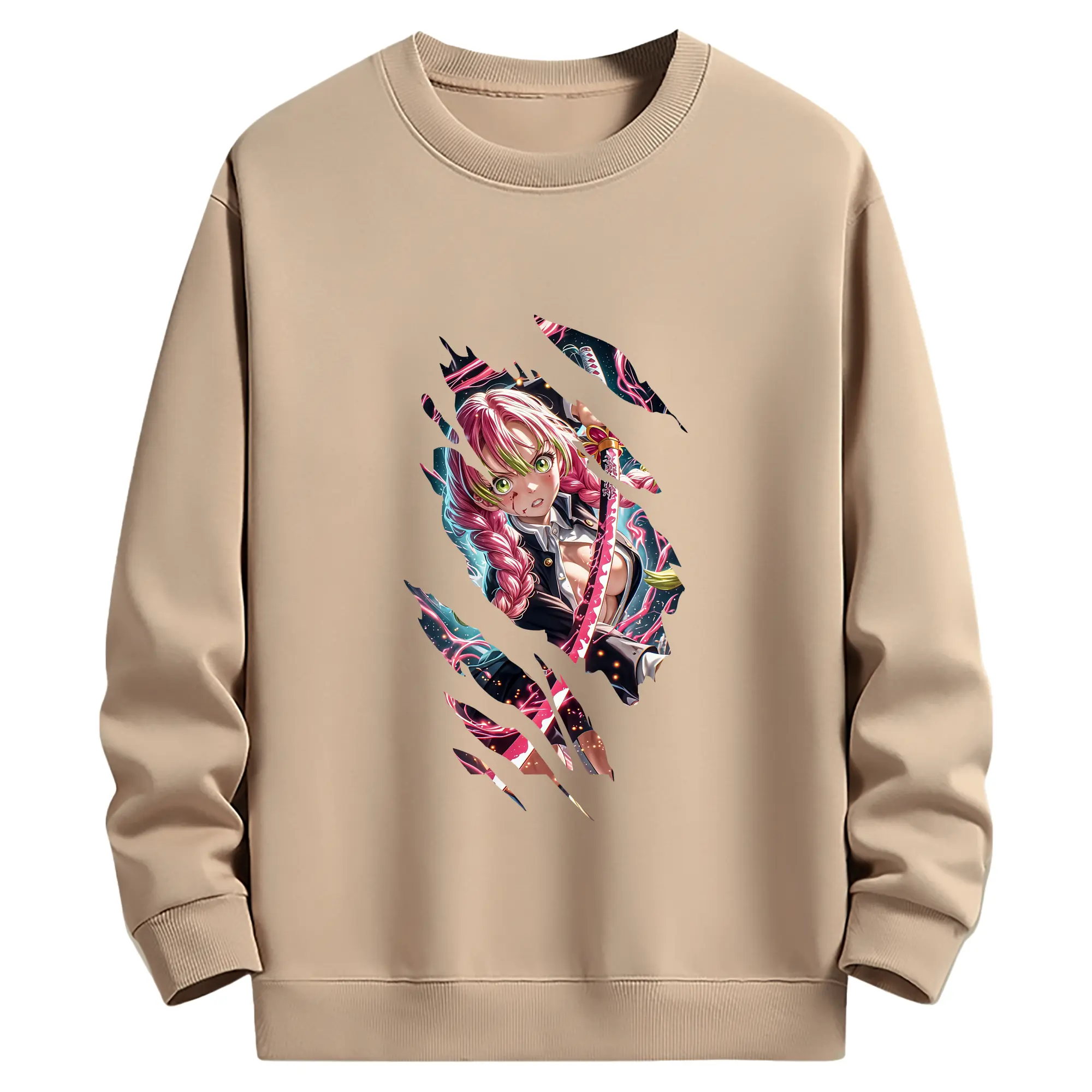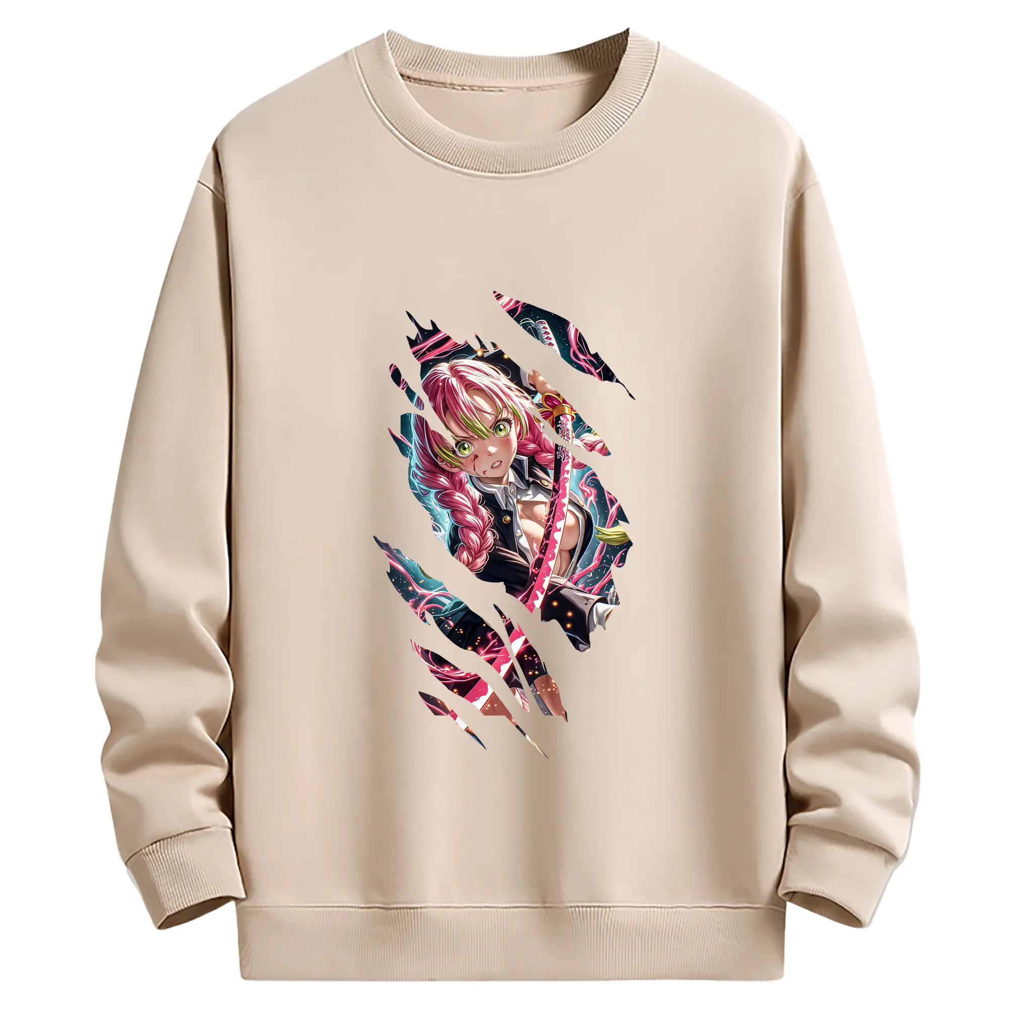 鬼滅の刃 グッズ,甘露寺 蜜璃 - 薄手 クルーネック スウェット 裏毛260g · ポリエステル 春秋向け カジュアル 男女兼用 · トレーナー デイリー スポーツ 散歩に最適