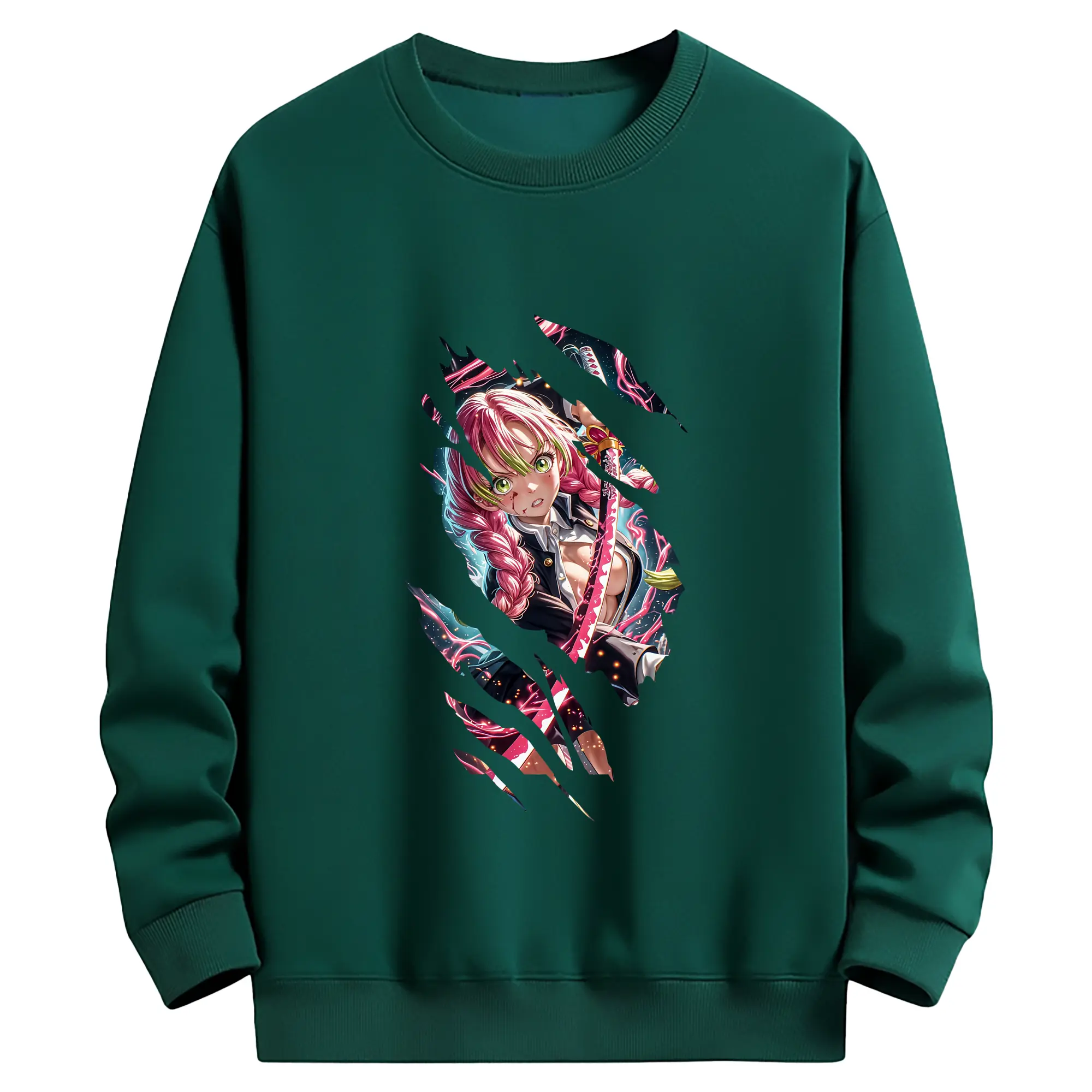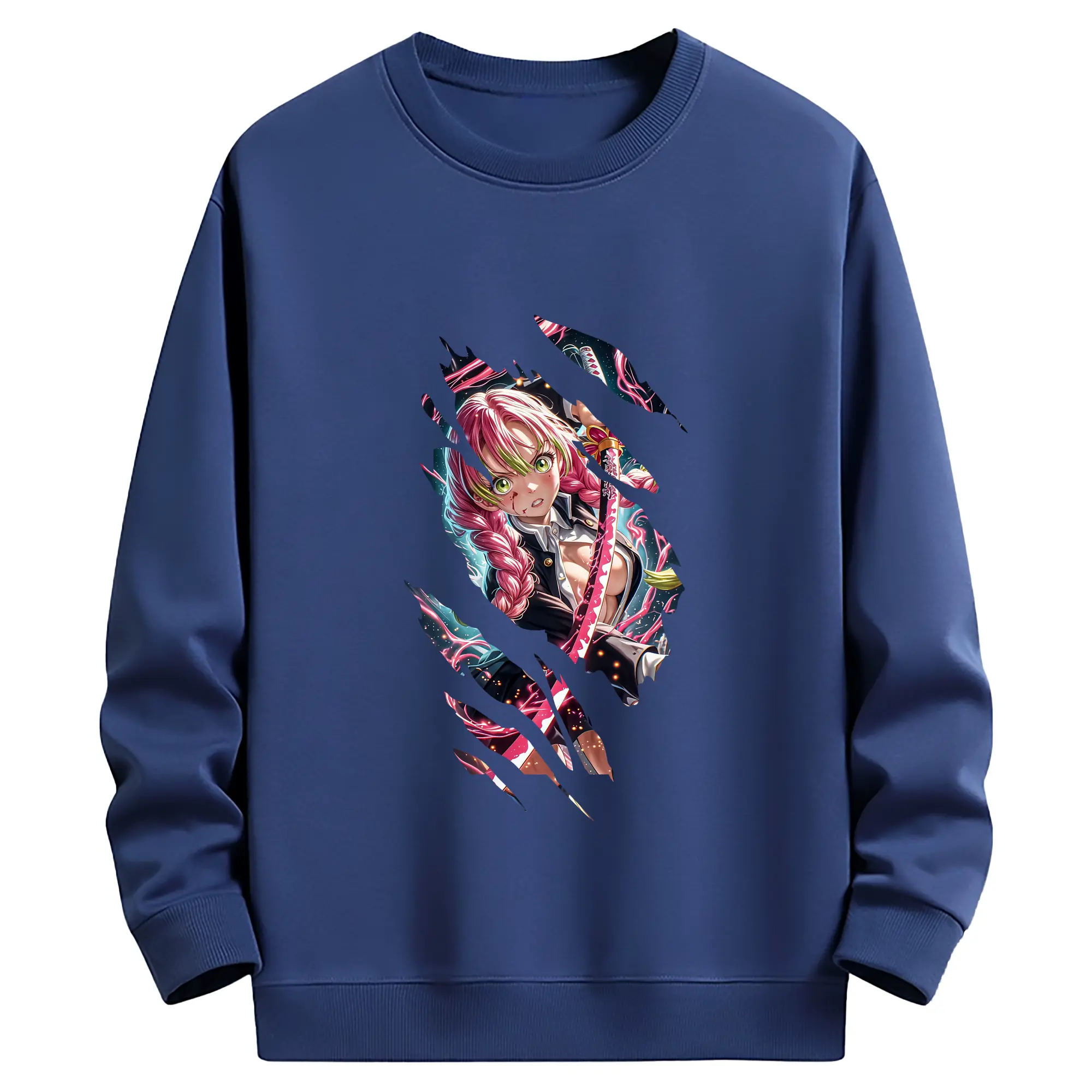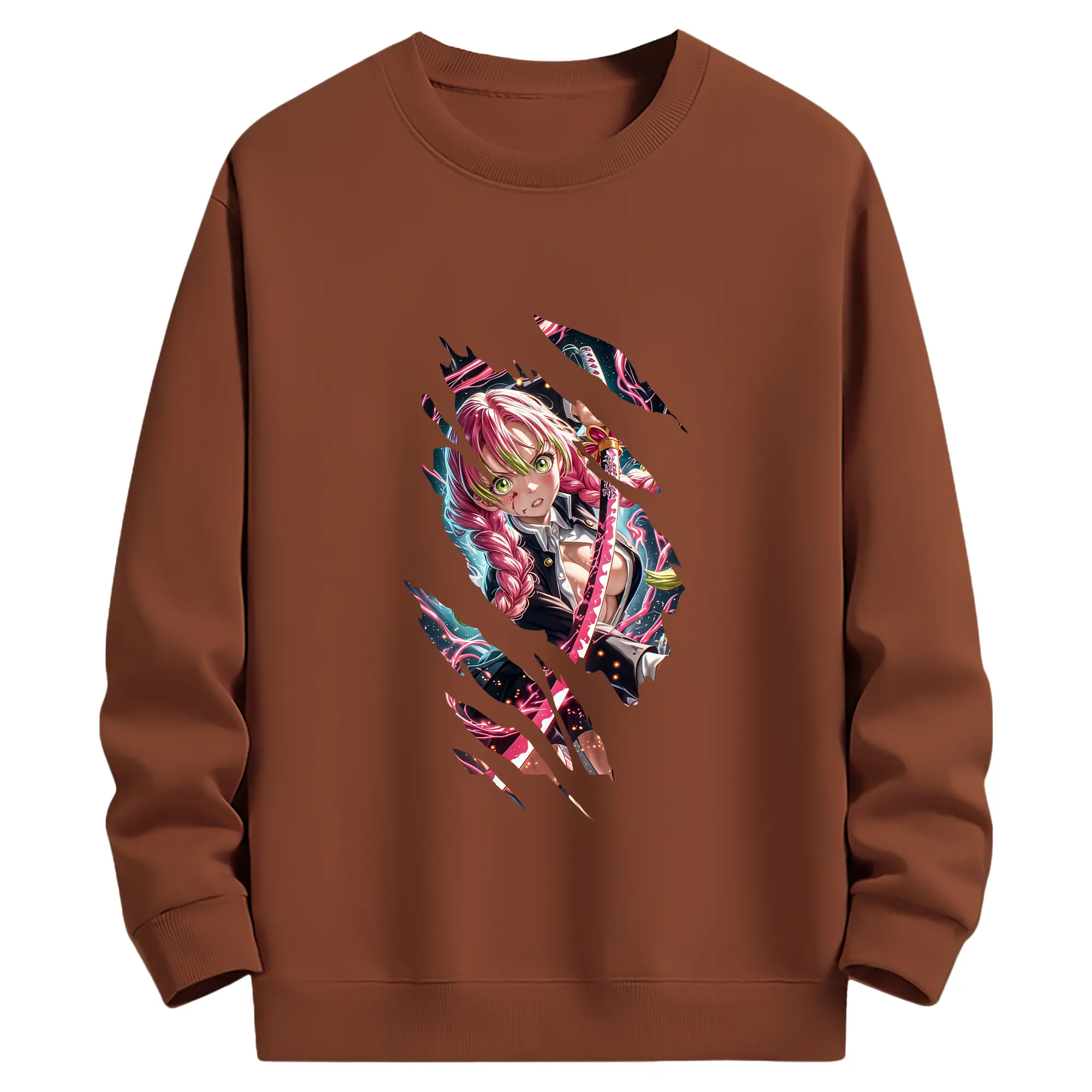 鬼滅の刃 グッズ,甘露寺 蜜璃 - 薄手 クルーネック スウェット 裏毛260g · ポリエステル 春秋向け カジュアル 男女兼用 · トレーナー デイリー スポーツ 散歩に最適