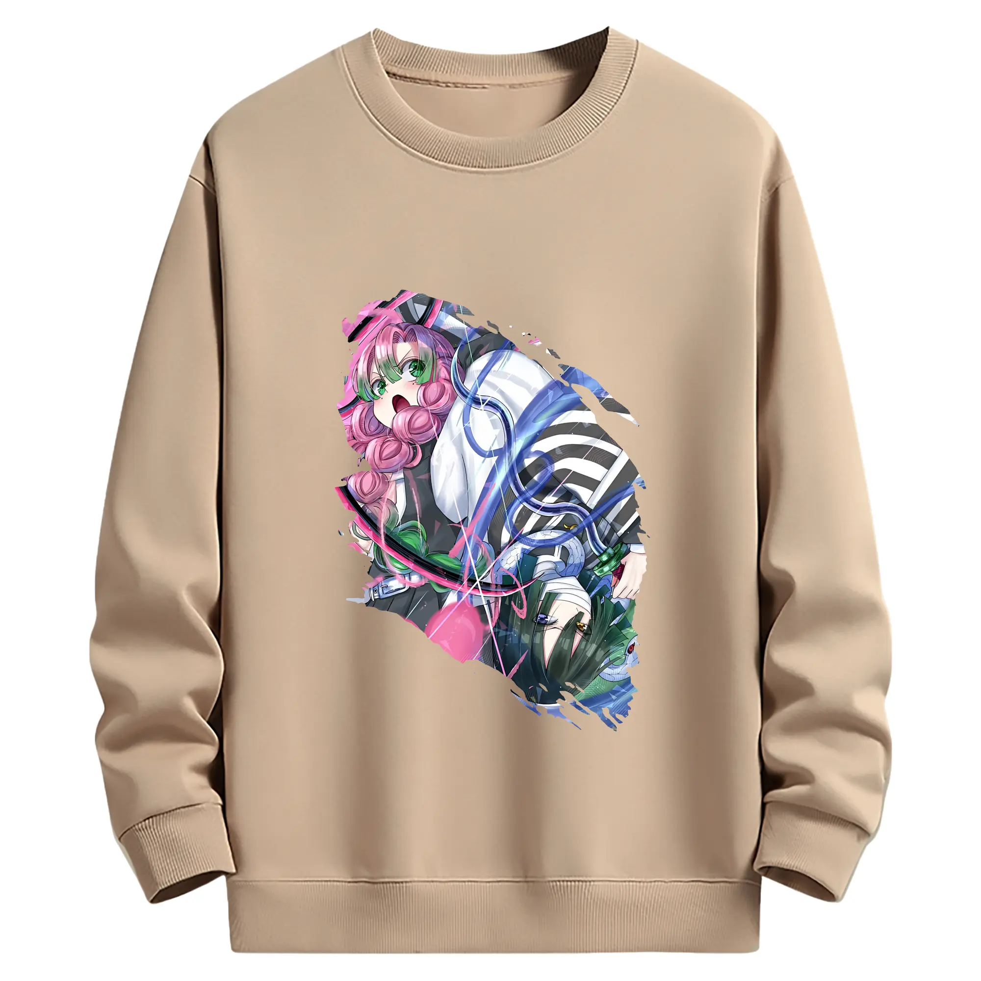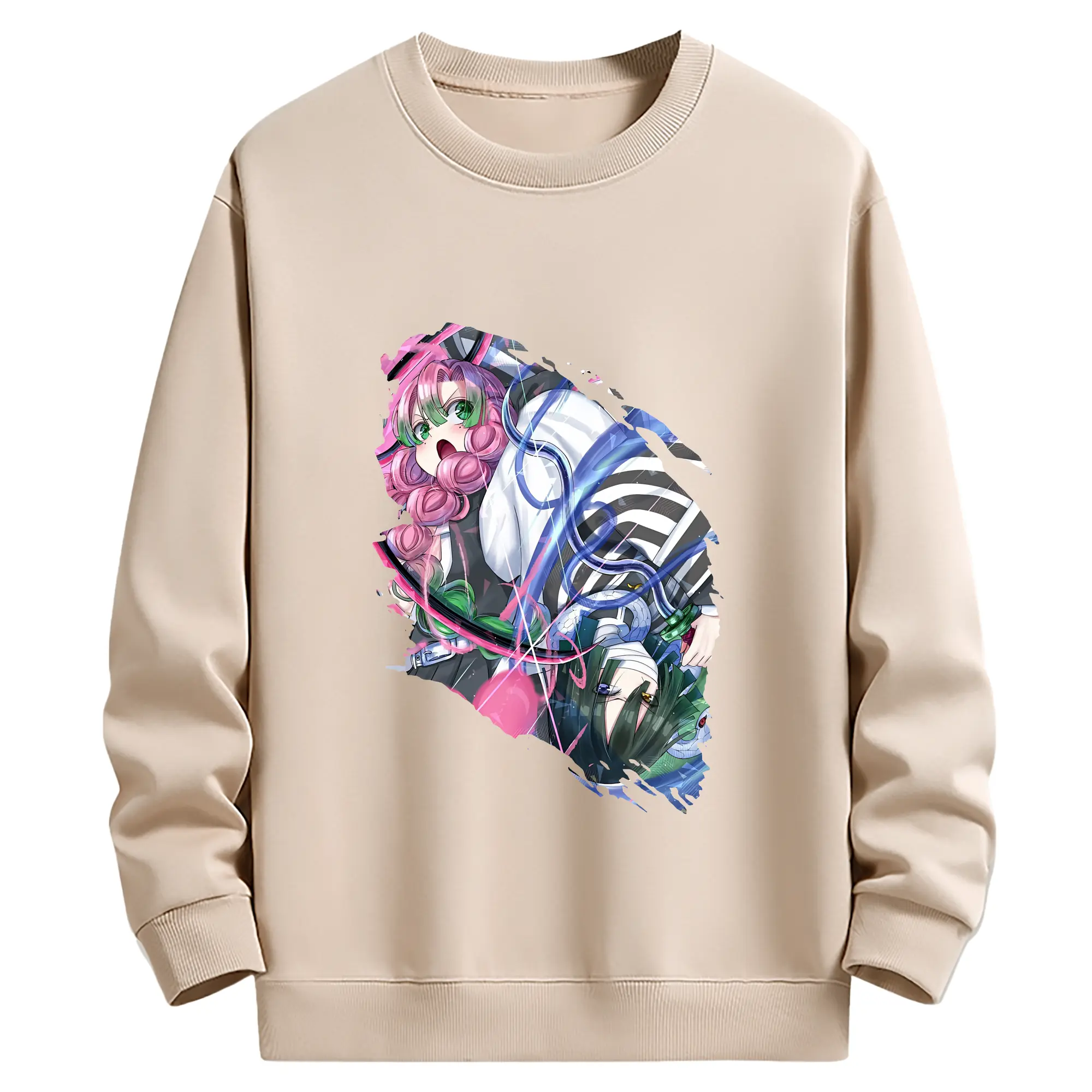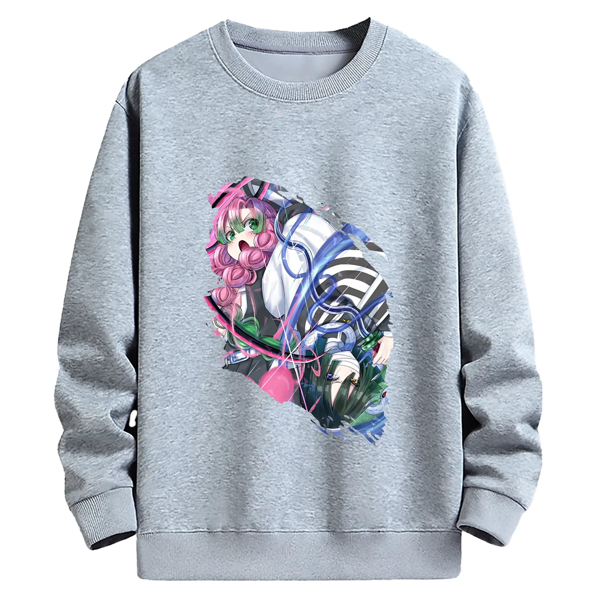 鬼滅の刃 グッズ,甘露寺 蜜璃 - 薄手 クルーネック スウェット 裏毛260g · ポリエステル 春秋向け カジュアル 男女兼用 · トレーナー デイリー スポーツ 散歩に最適