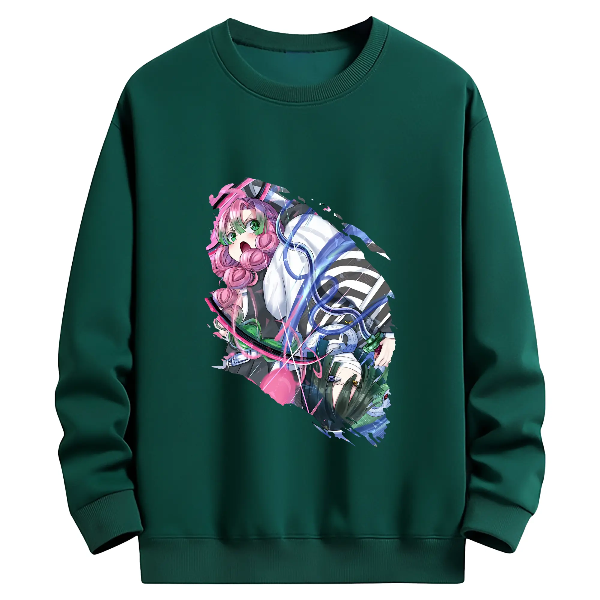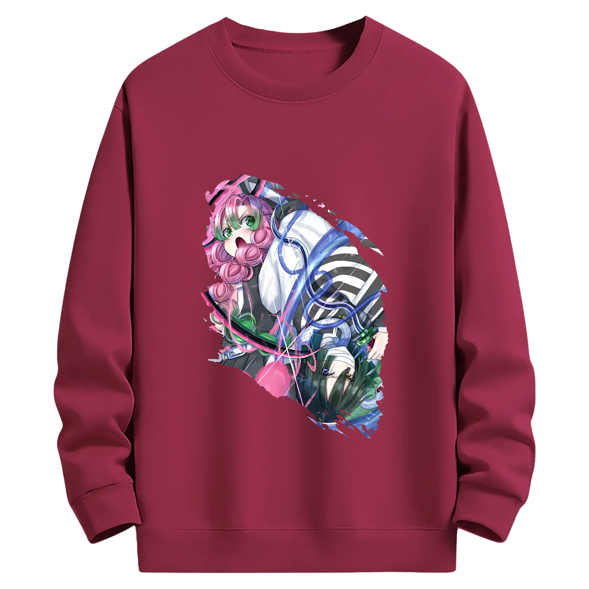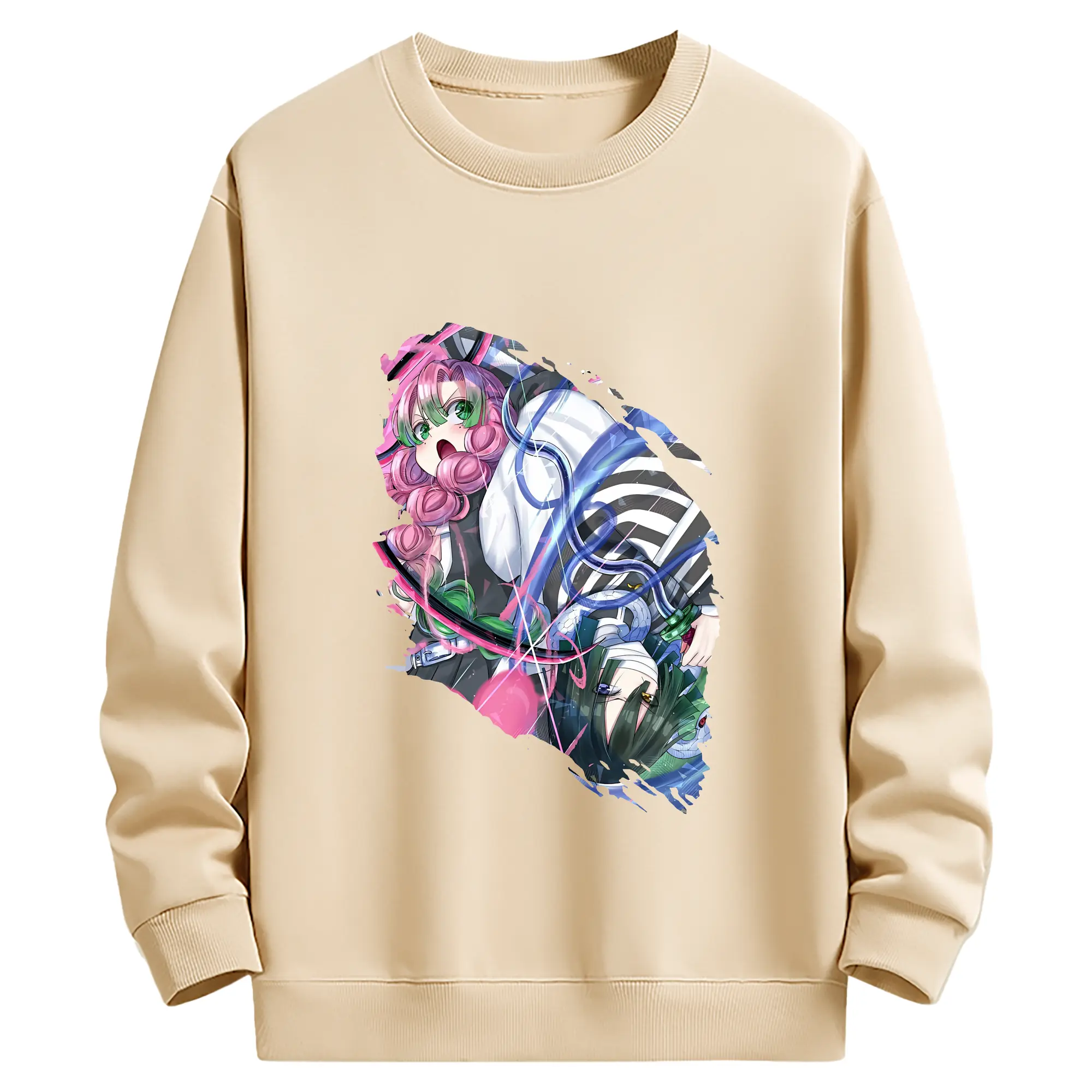 鬼滅の刃 グッズ,甘露寺 蜜璃 - 薄手 クルーネック スウェット 裏毛260g · ポリエステル 春秋向け カジュアル 男女兼用 · トレーナー デイリー スポーツ 散歩に最適