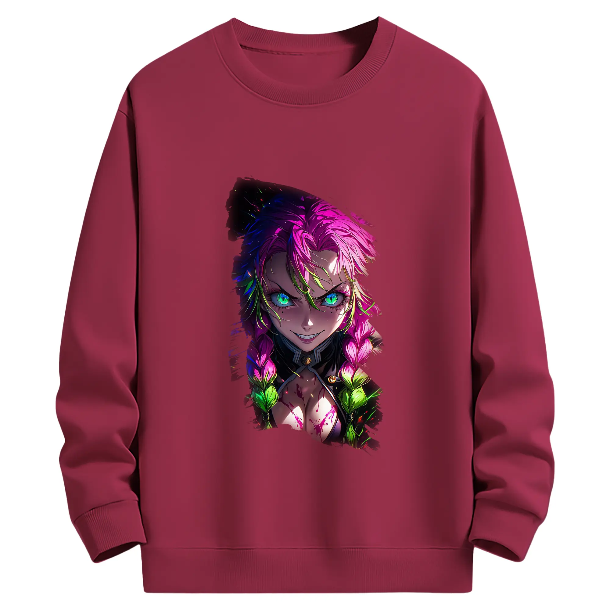 鬼滅の刃 グッズ,甘露寺 蜜璃 - 薄手 クルーネック スウェット 裏毛260g · ポリエステル 春秋向け カジュアル 男女兼用 · トレーナー デイリー スポーツ 散歩に最適