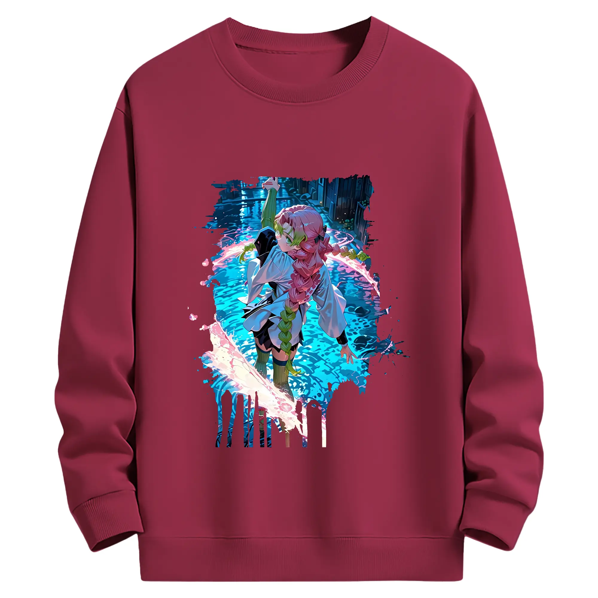 鬼滅の刃 グッズ,甘露寺 蜜璃 - 薄手 クルーネック スウェット 裏毛260g · ポリエステル 春秋向け カジュアル 男女兼用 · トレーナー デイリー スポーツ 散歩に最適