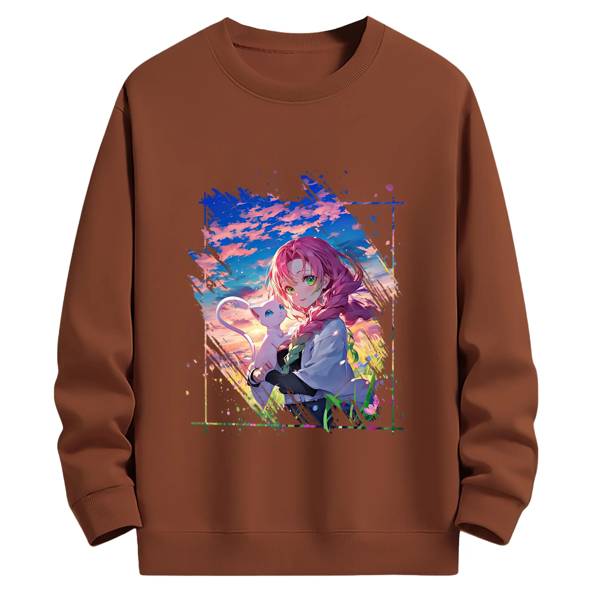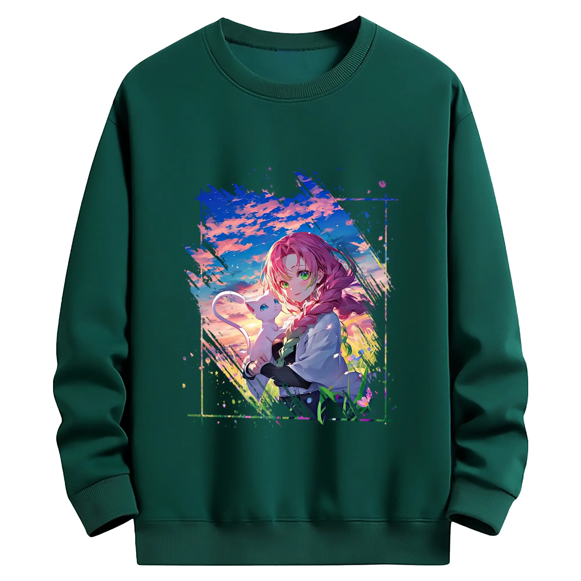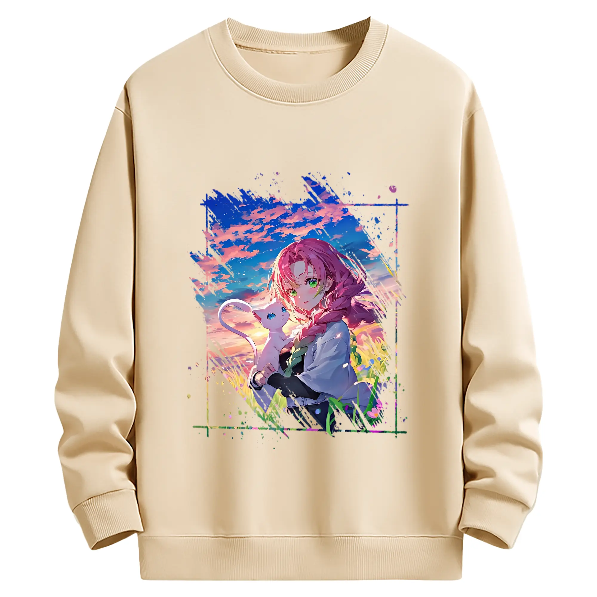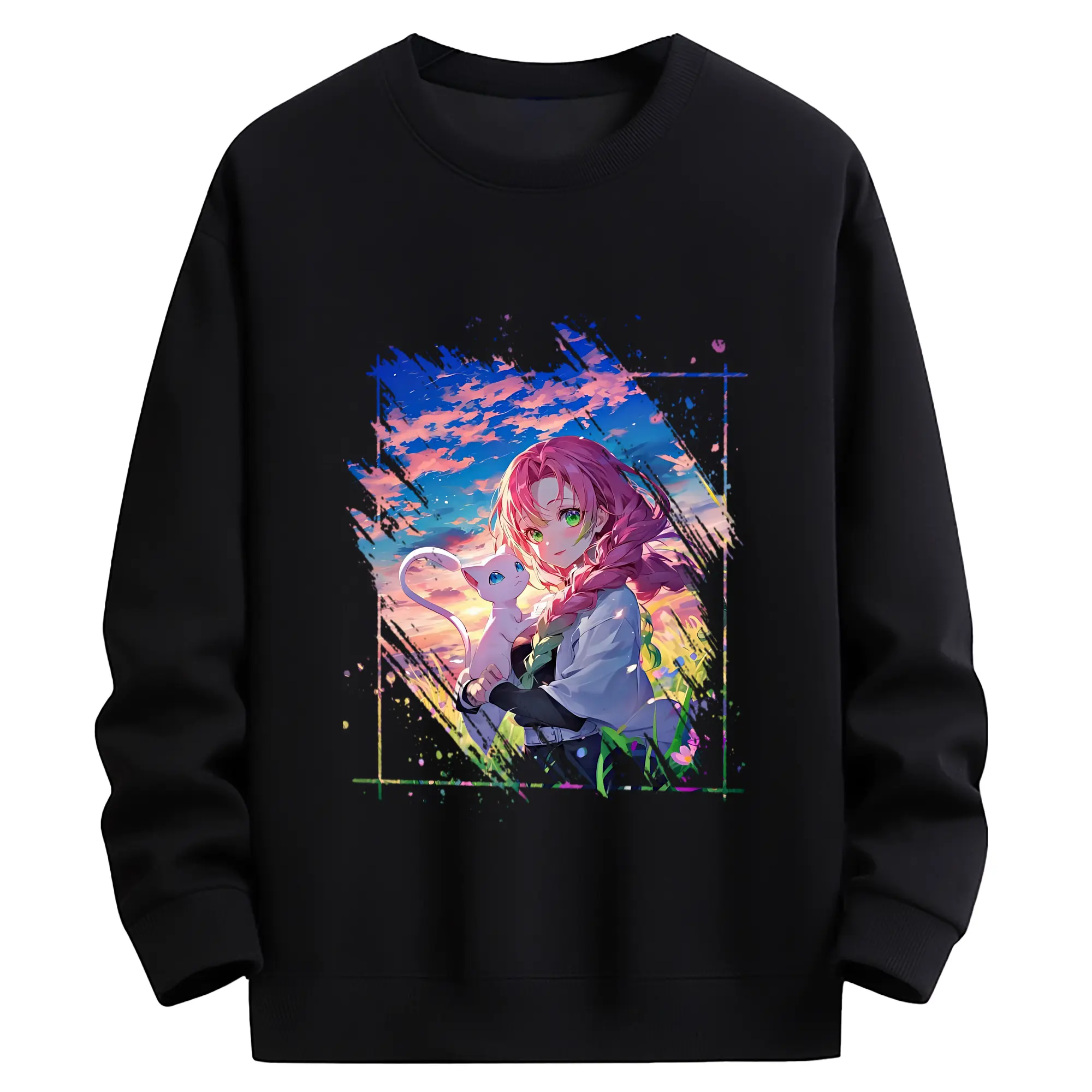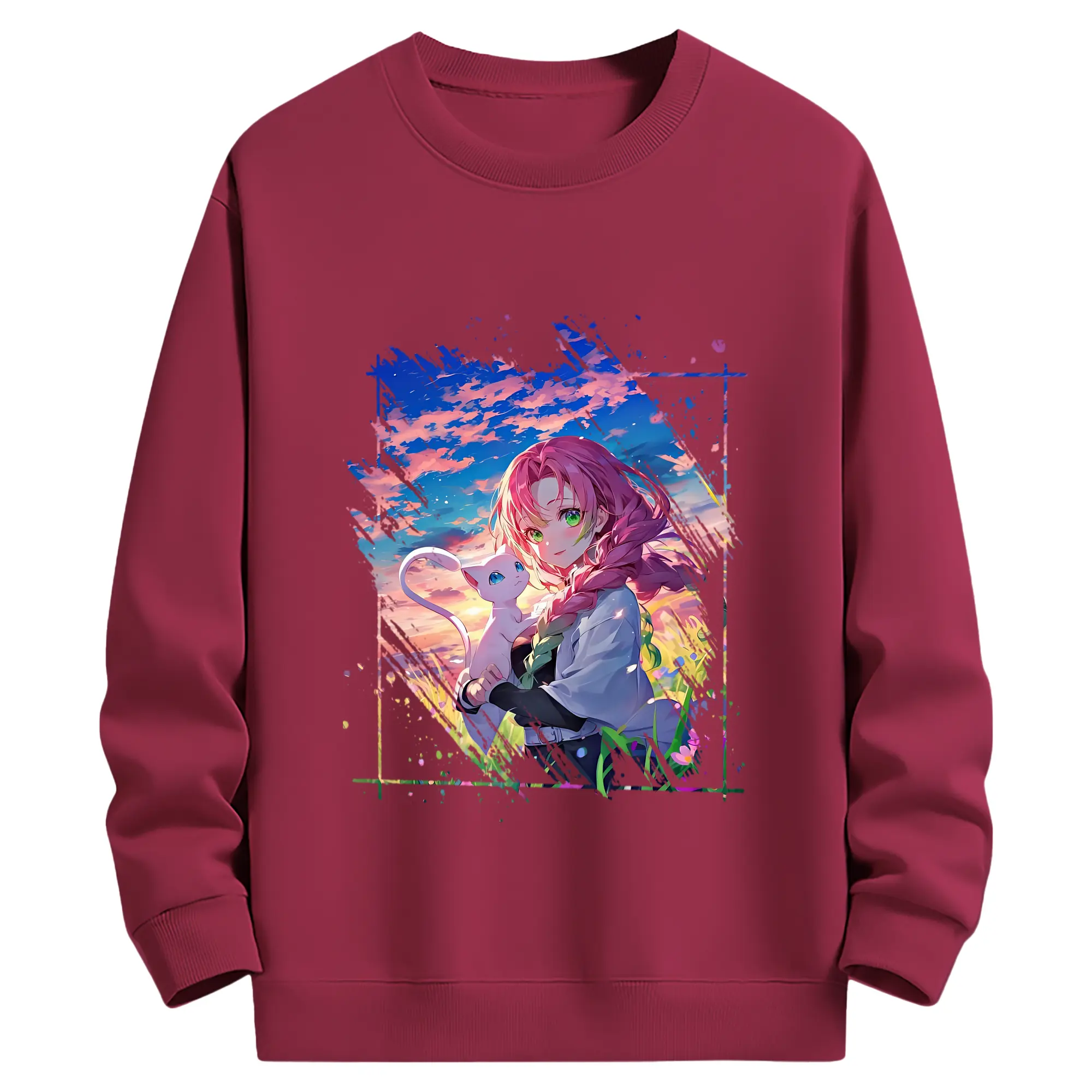 鬼滅の刃 グッズ,甘露寺 蜜璃 - 薄手 クルーネック スウェット 裏毛260g · ポリエステル 春秋向け カジュアル 男女兼用 · トレーナー デイリー スポーツ 散歩に最適