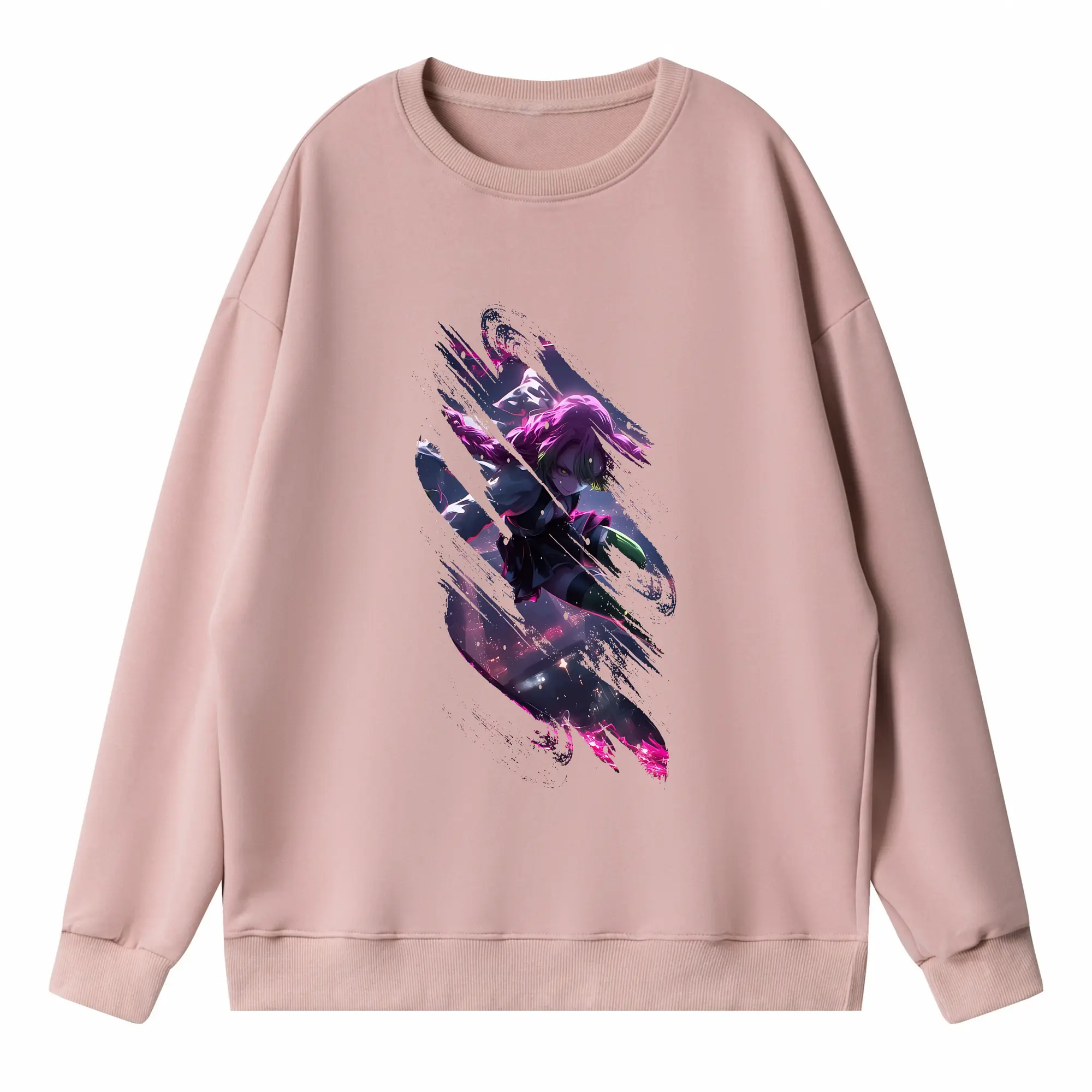 鬼滅の刃 グッズ,甘露寺 蜜璃 - 高品質 クルーネック スウェット ・ コットン59% ポリエステル41% ・ ユニセックス 長袖 トレーナー ・ カジュアル デイリー スポーツ 散歩用