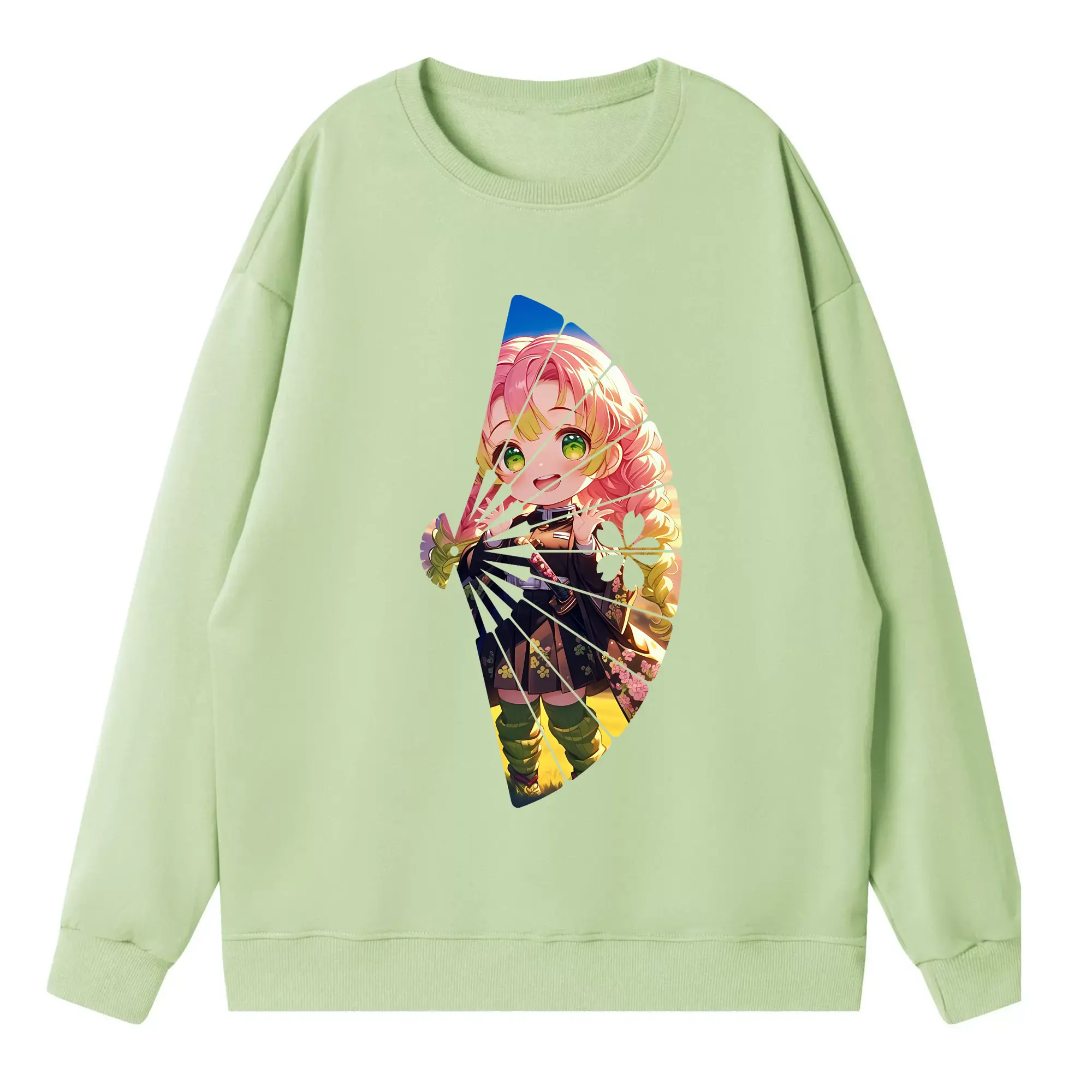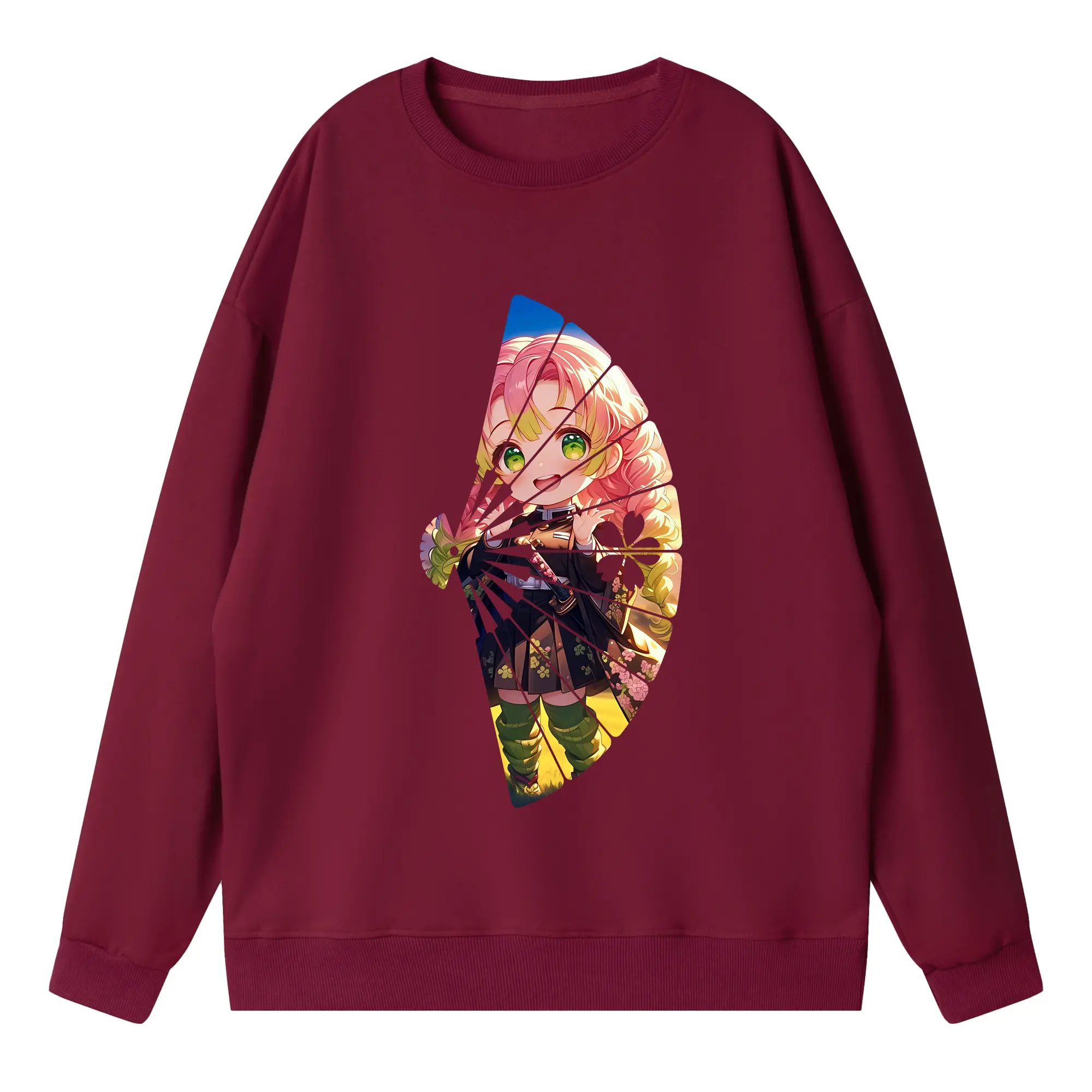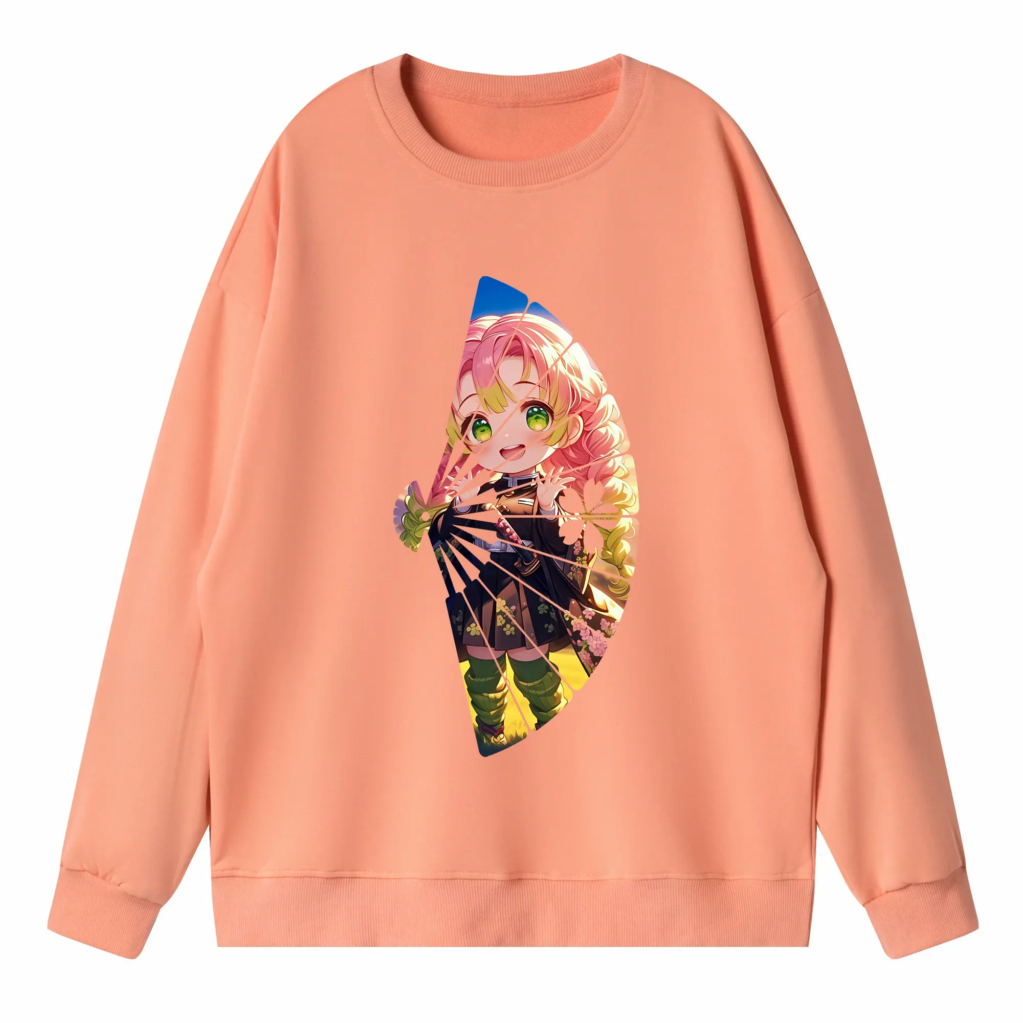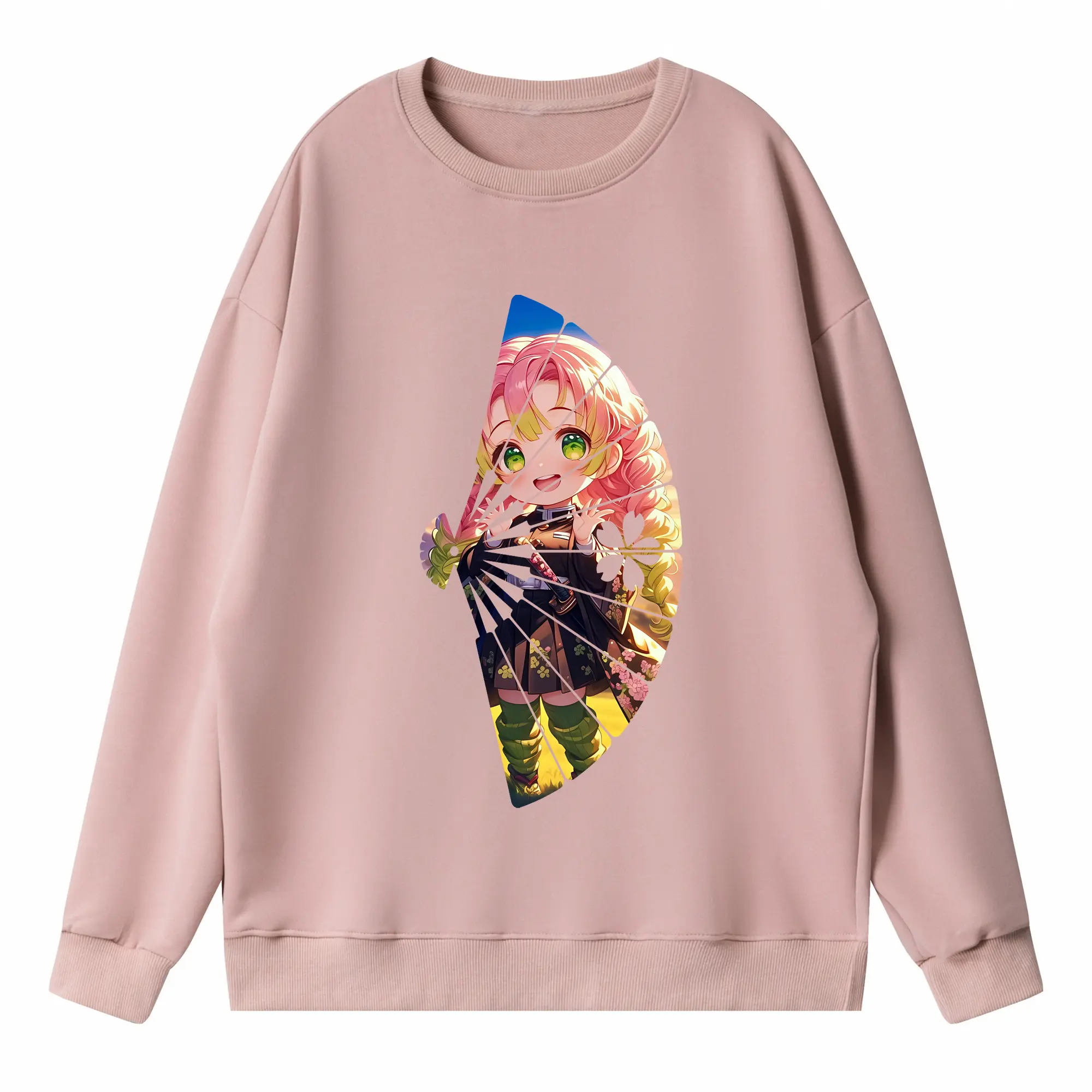 鬼滅の刃 グッズ,甘露寺 蜜璃 - 高品質 クルーネック スウェット ・ コットン59% ポリエステル41% ・ ユニセックス 長袖 トレーナー ・ カジュアル デイリー スポーツ 散歩用
