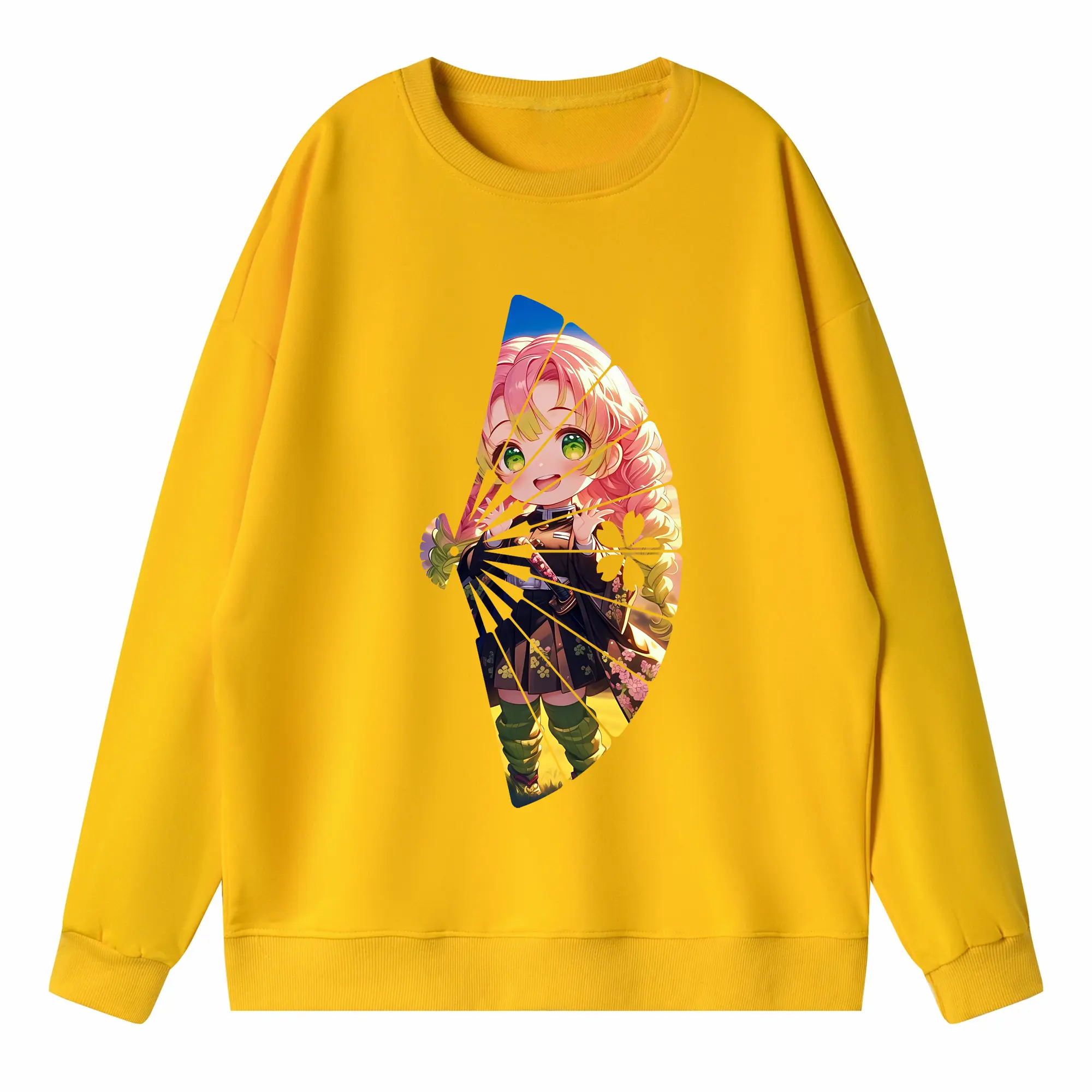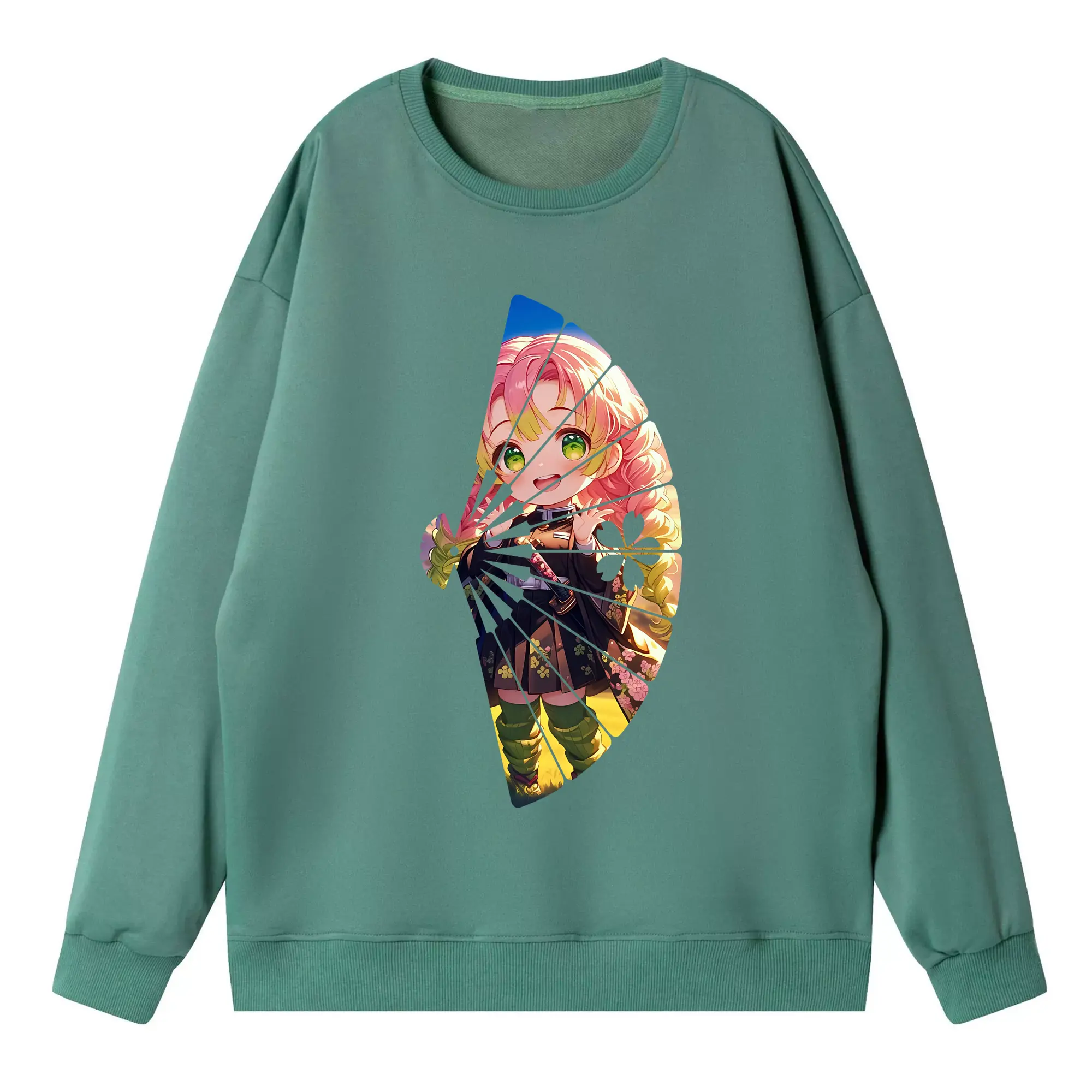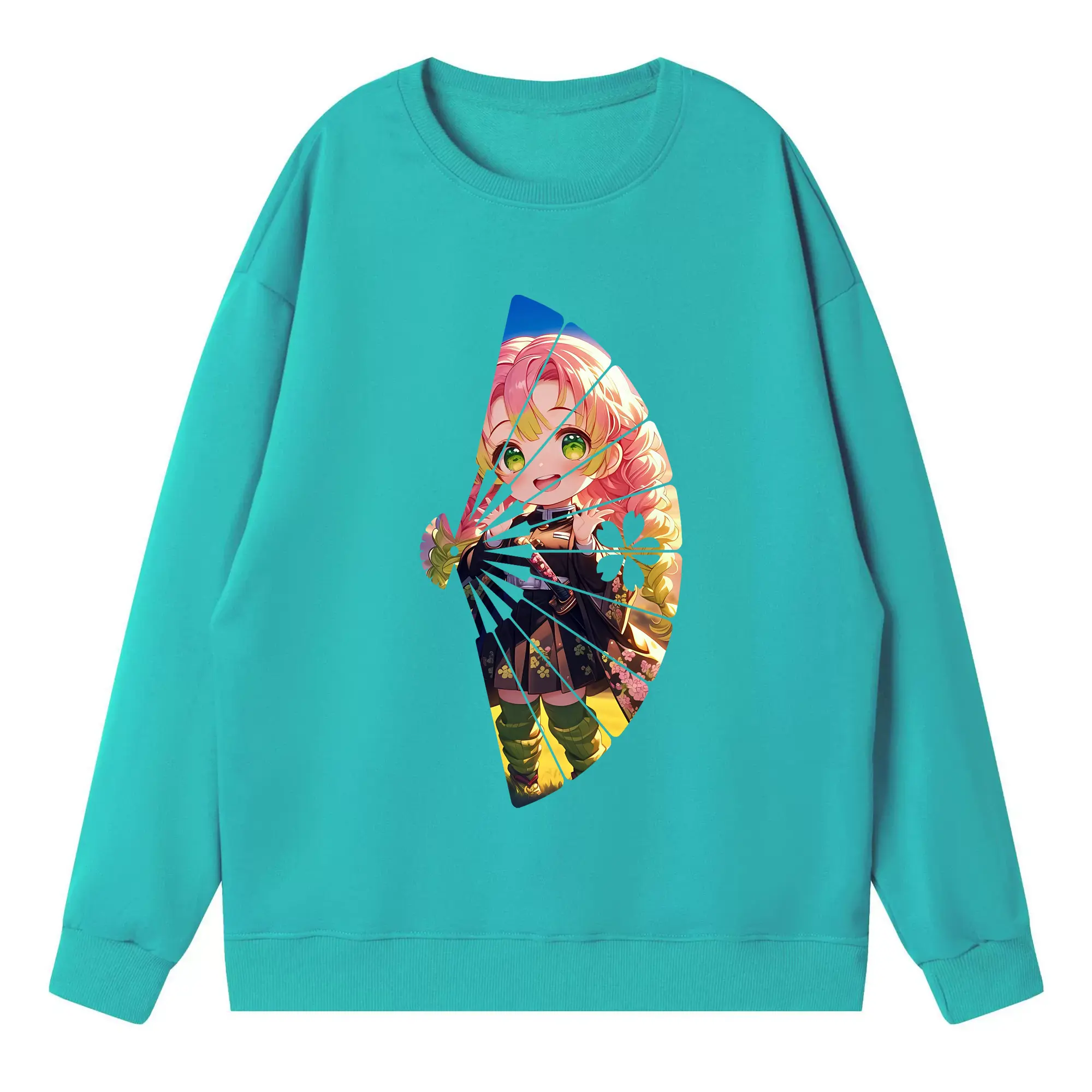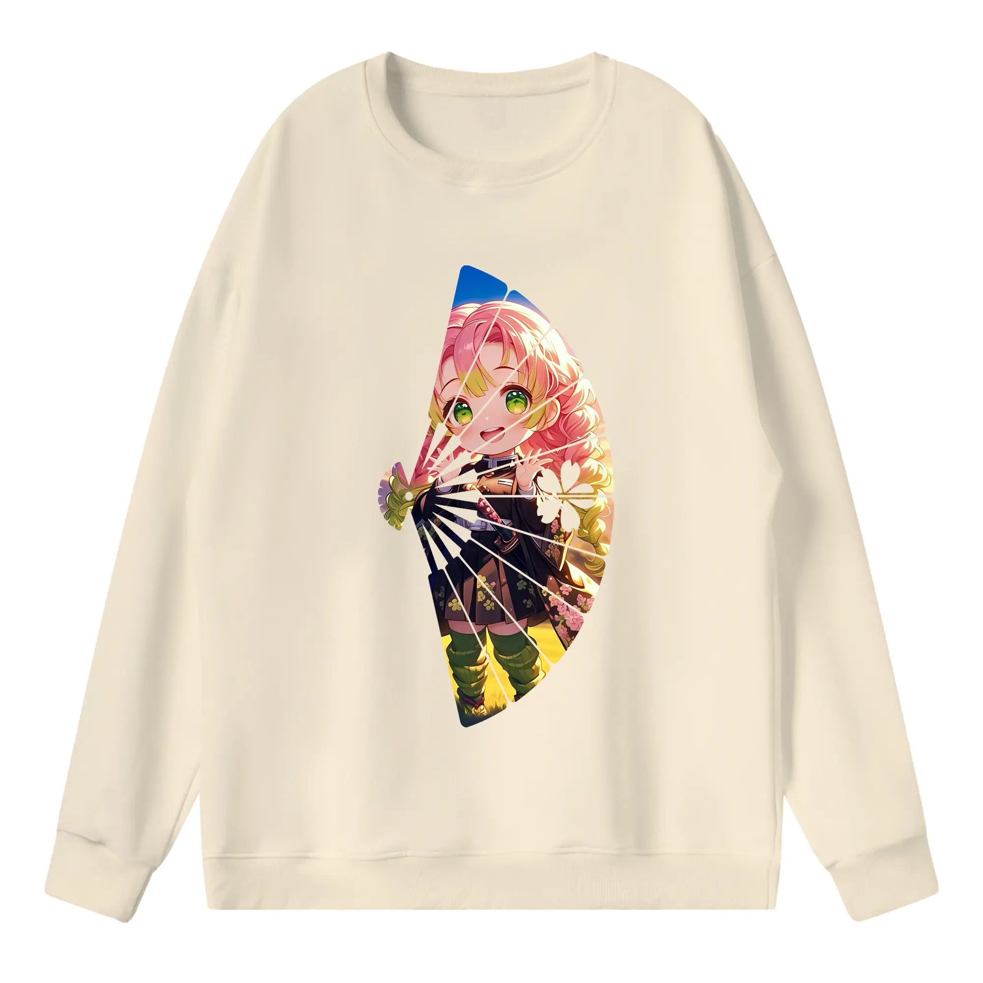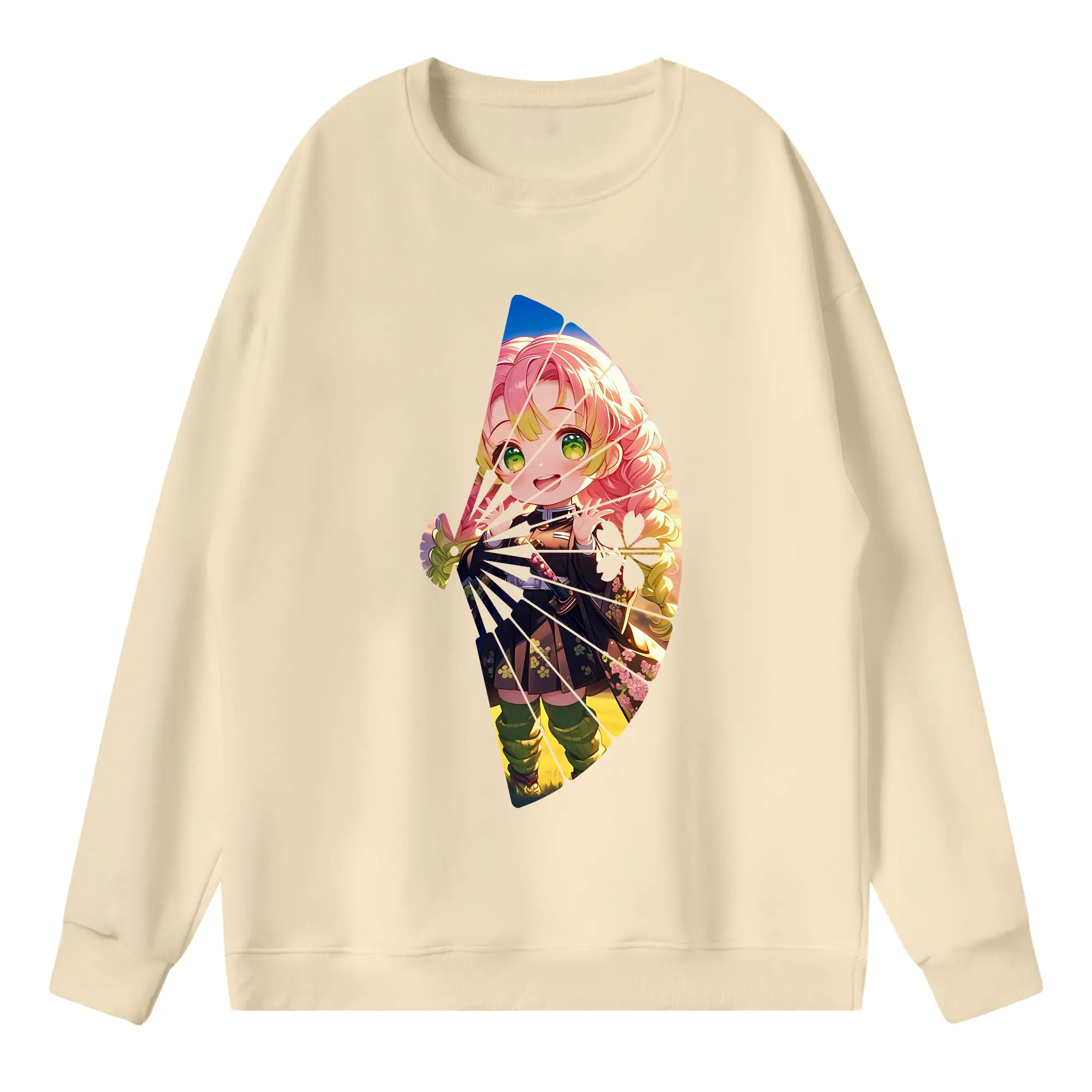 鬼滅の刃 グッズ,甘露寺 蜜璃 - 高品質 クルーネック スウェット ・ コットン59% ポリエステル41% ・ ユニセックス 長袖 トレーナー ・ カジュアル デイリー スポーツ 散歩用