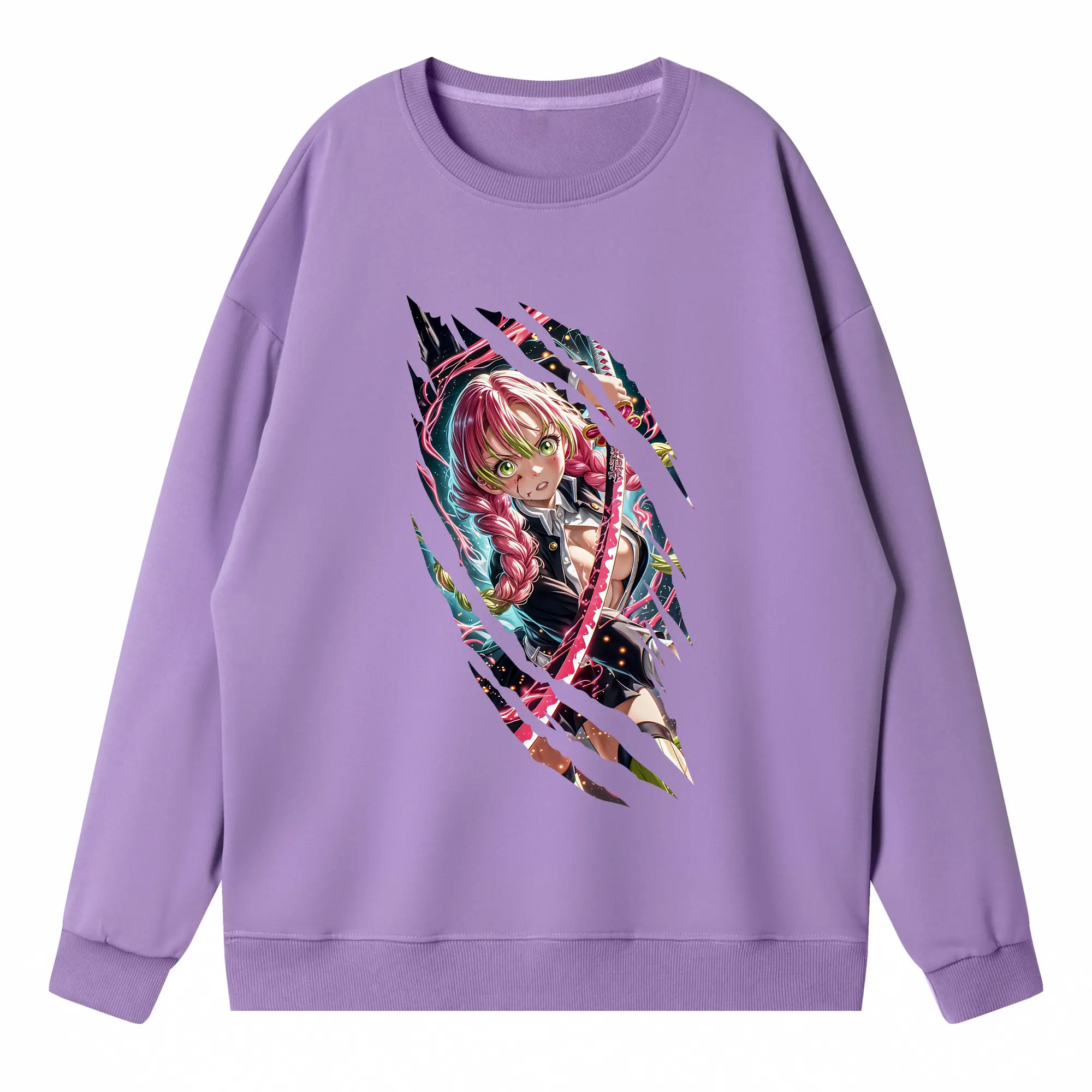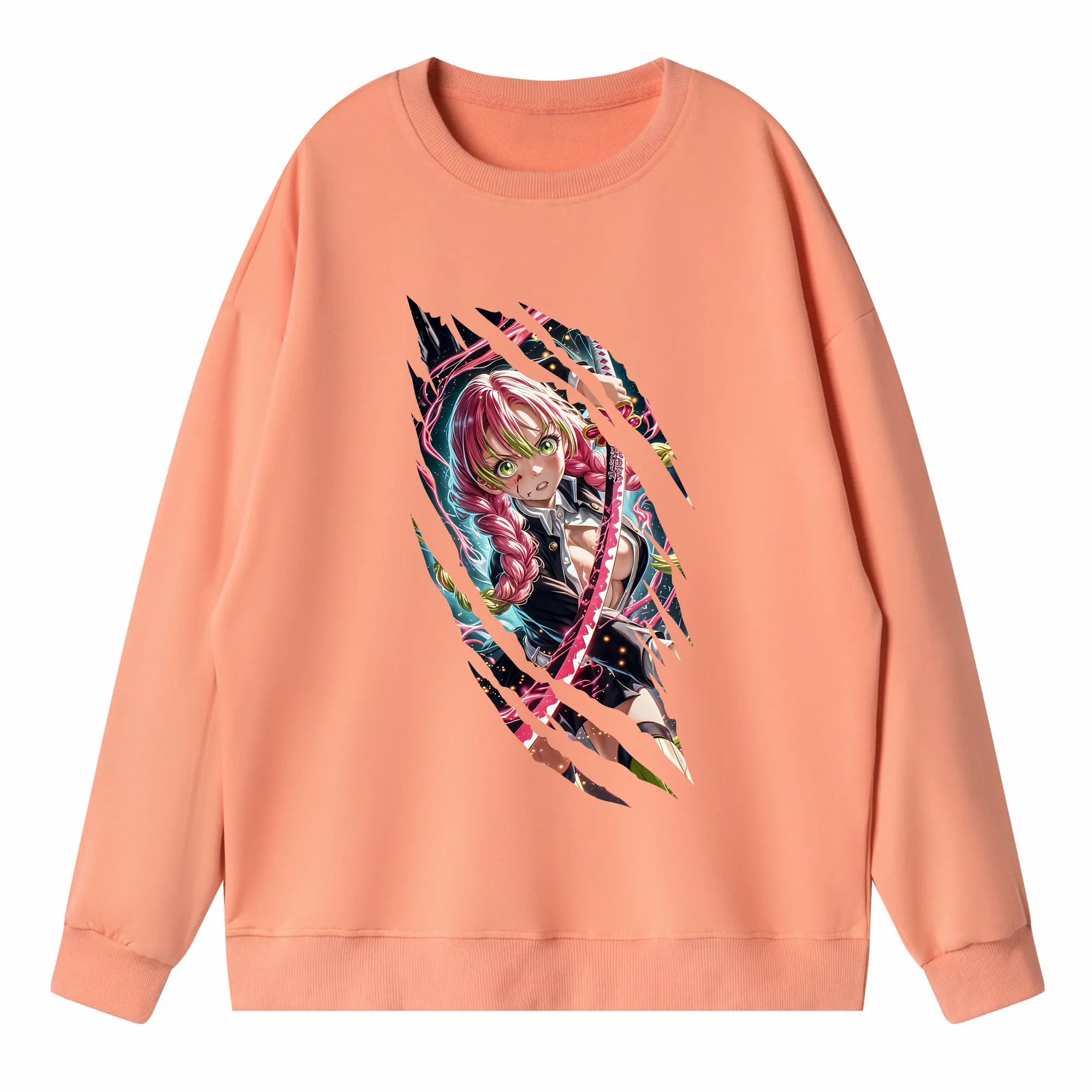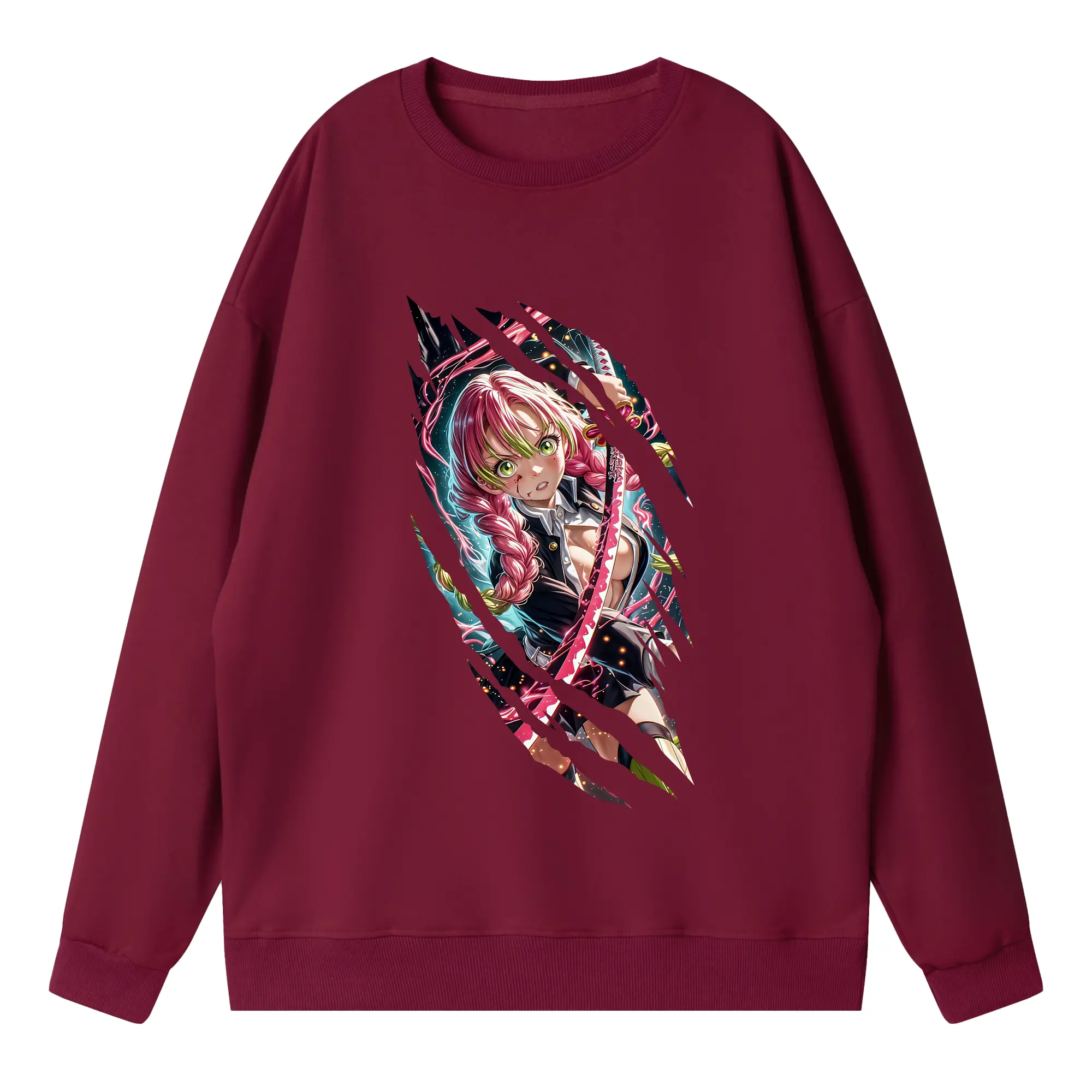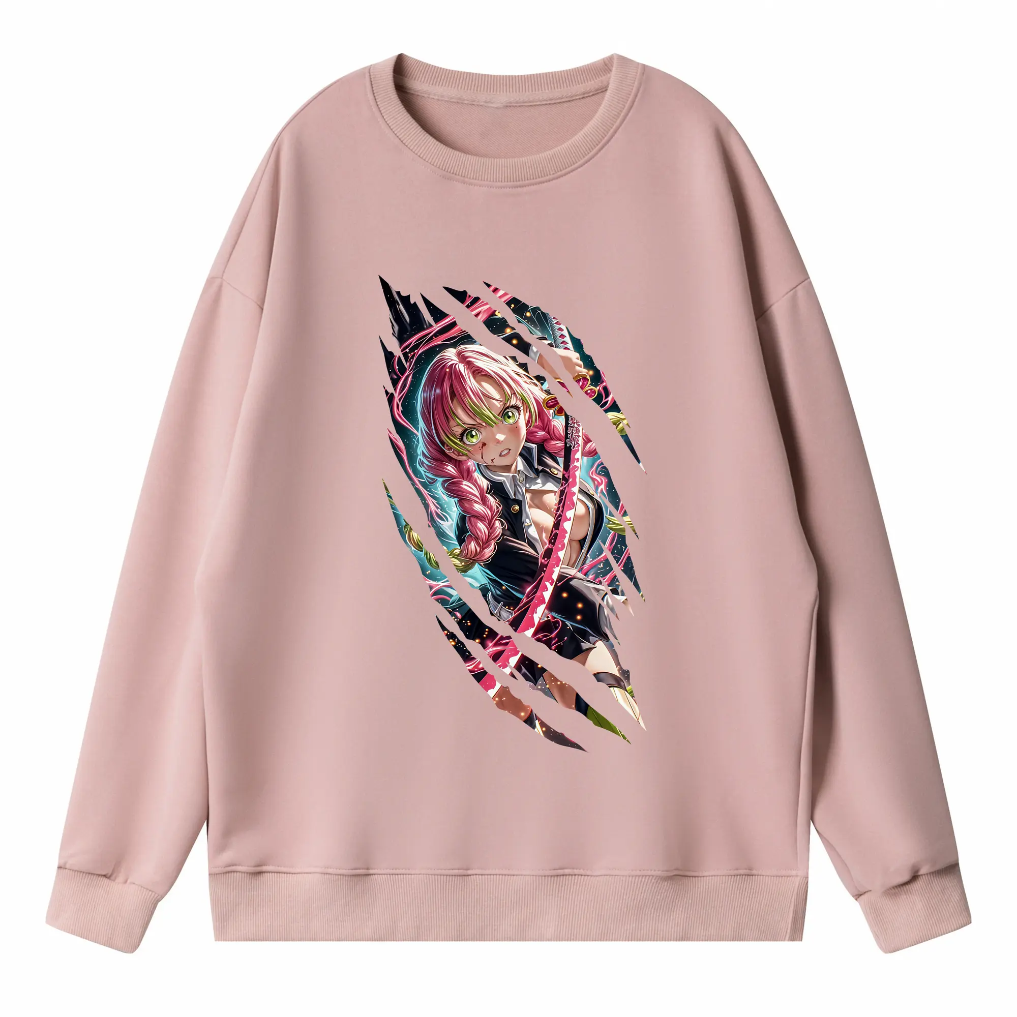 鬼滅の刃 グッズ,甘露寺 蜜璃 - 高品質 クルーネック スウェット ・ コットン59% ポリエステル41% ・ ユニセックス 長袖 トレーナー ・ カジュアル デイリー スポーツ 散歩用