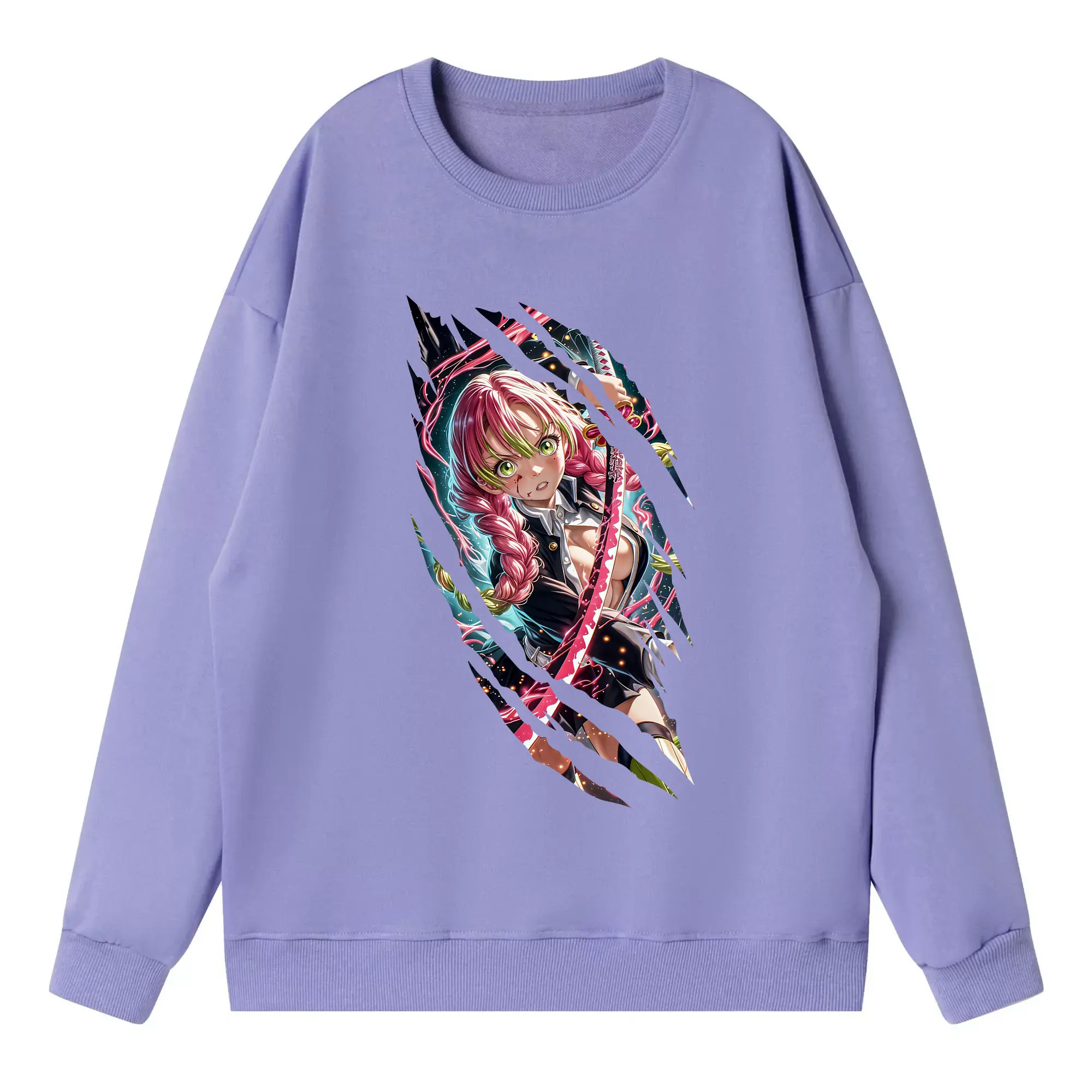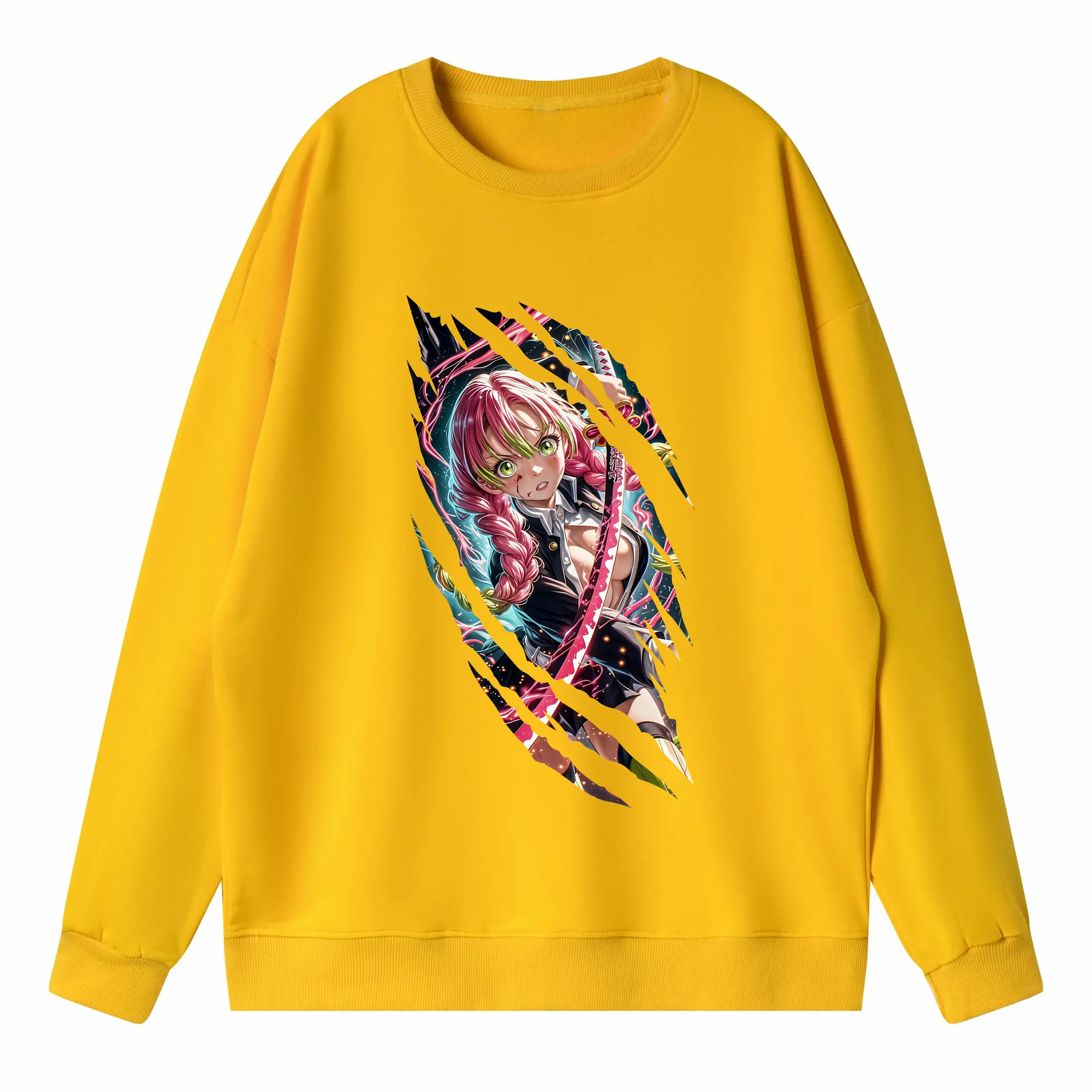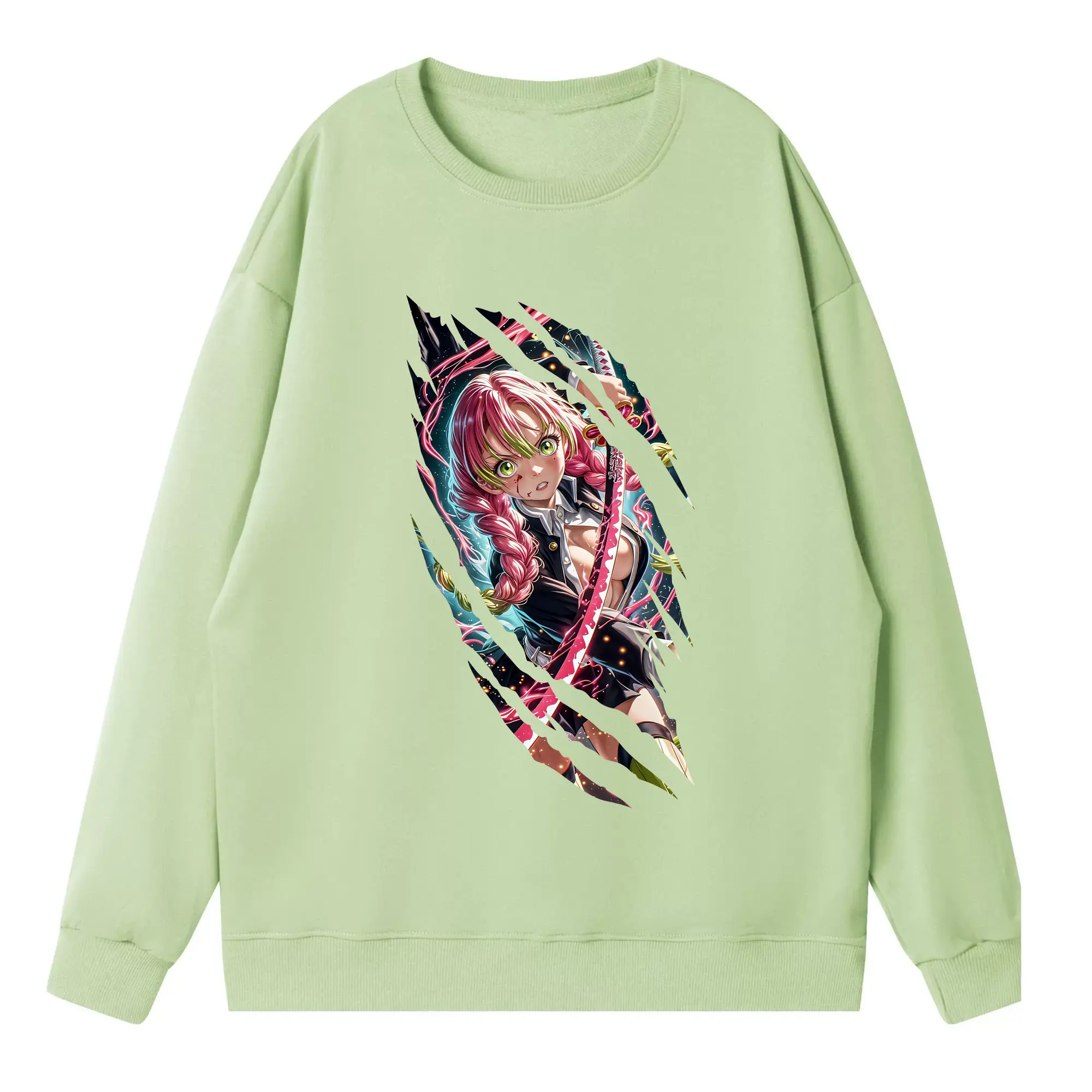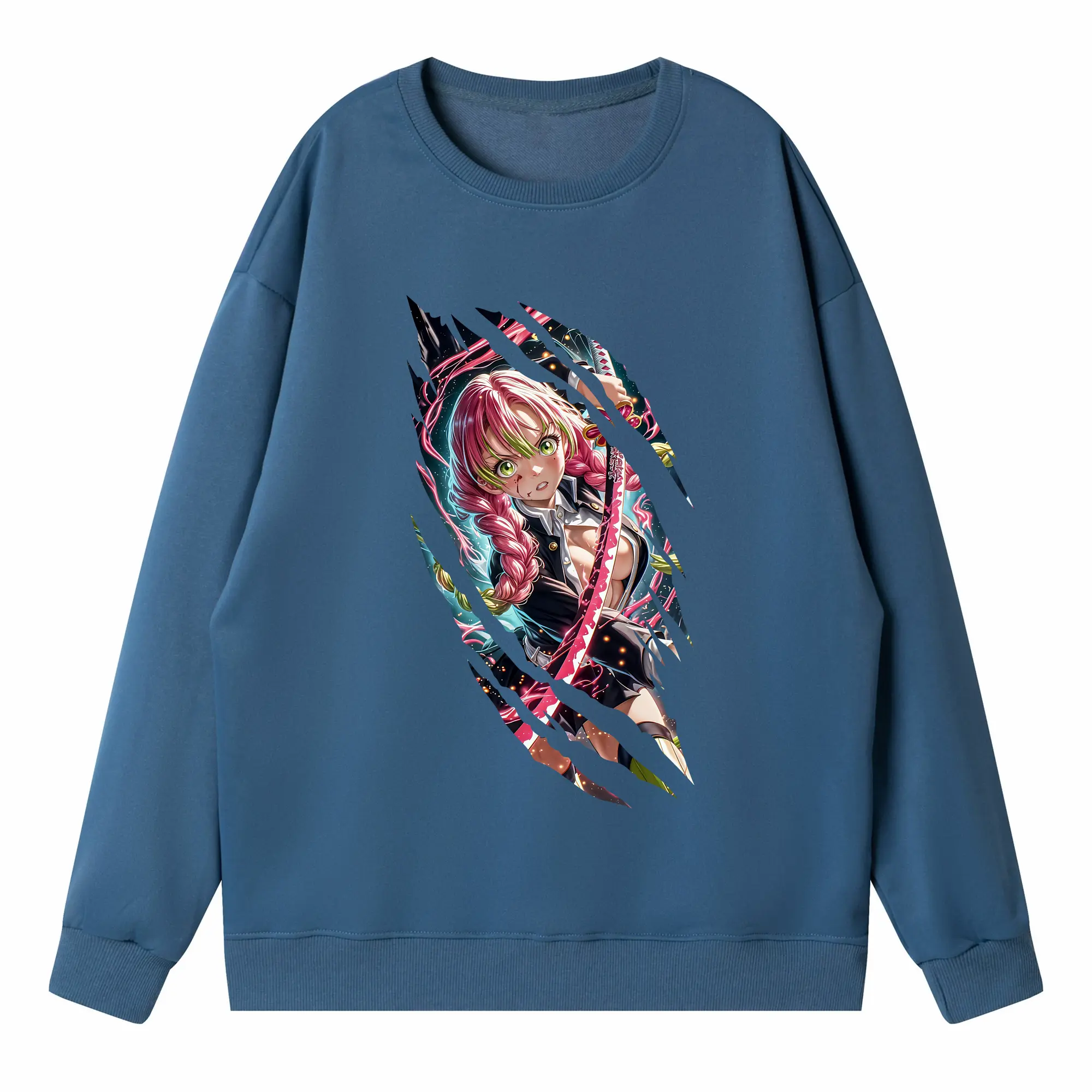 鬼滅の刃 グッズ,甘露寺 蜜璃 - 高品質 クルーネック スウェット ・ コットン59% ポリエステル41% ・ ユニセックス 長袖 トレーナー ・ カジュアル デイリー スポーツ 散歩用