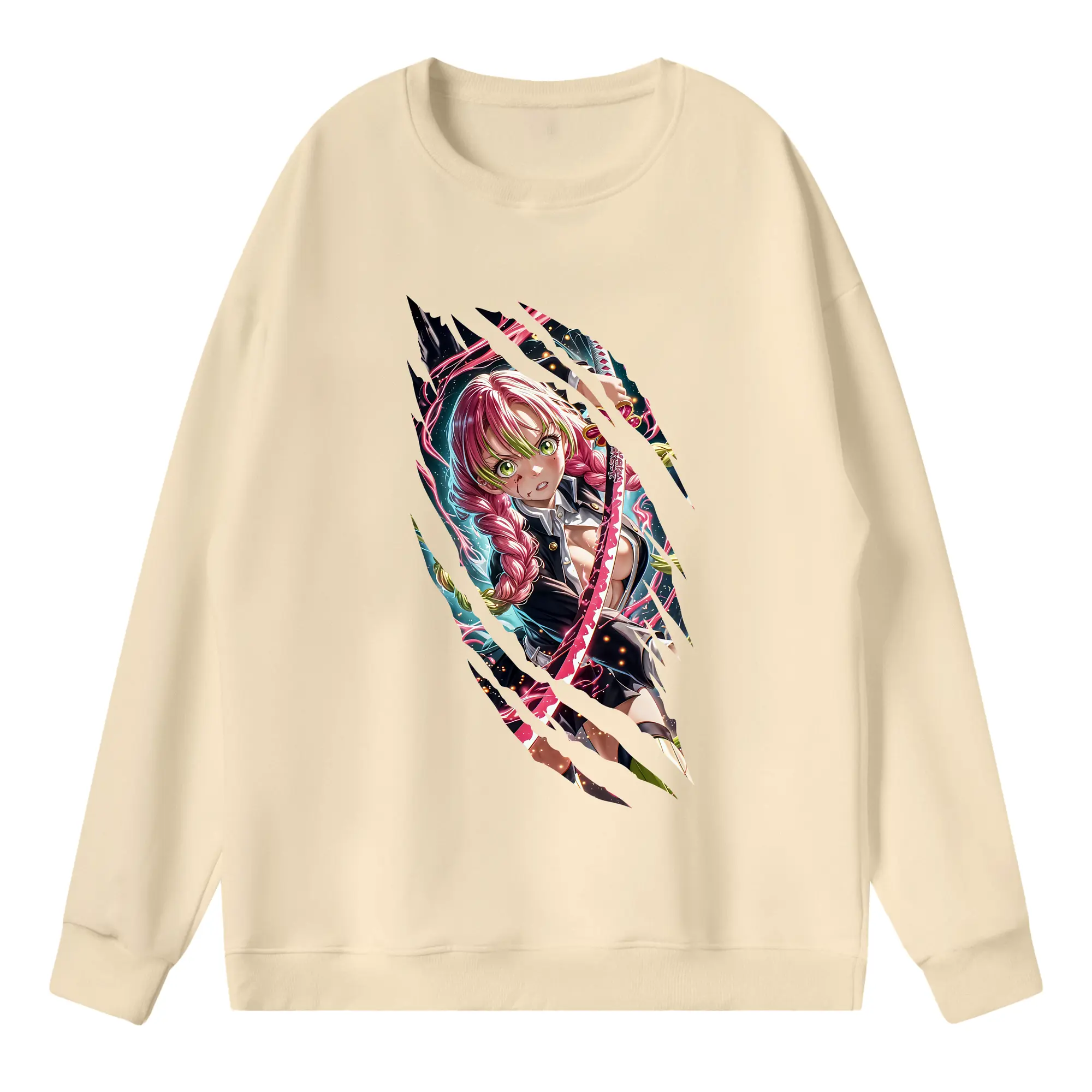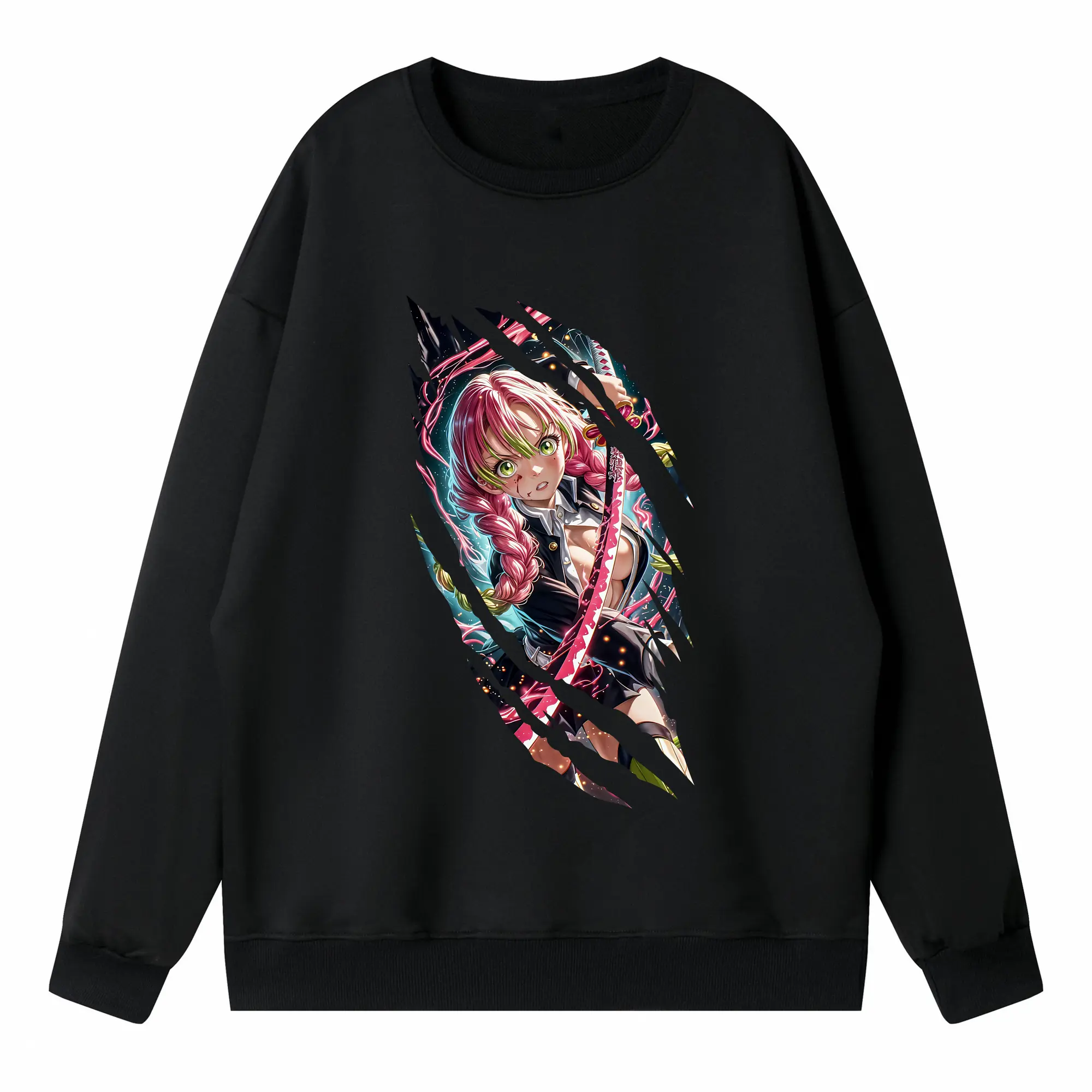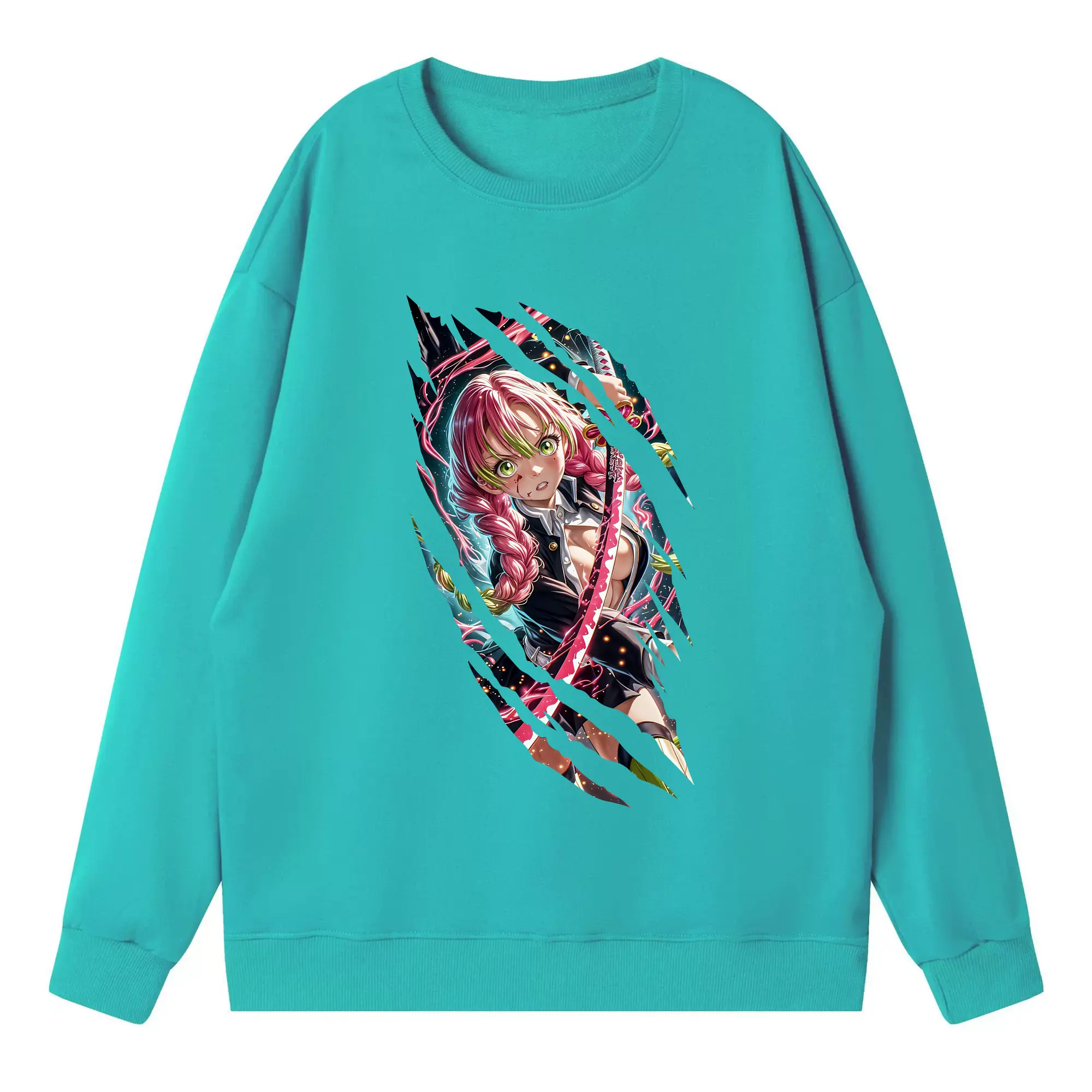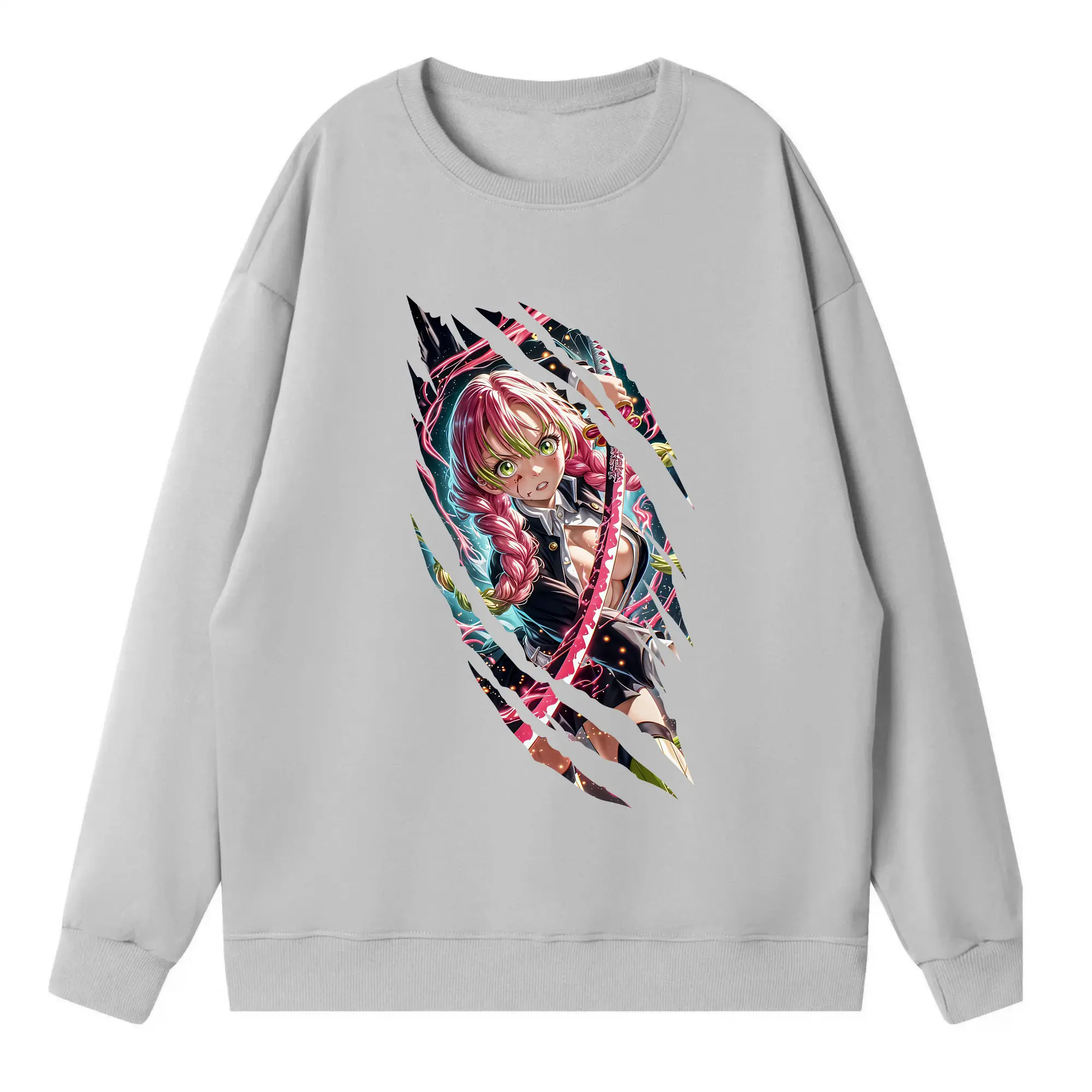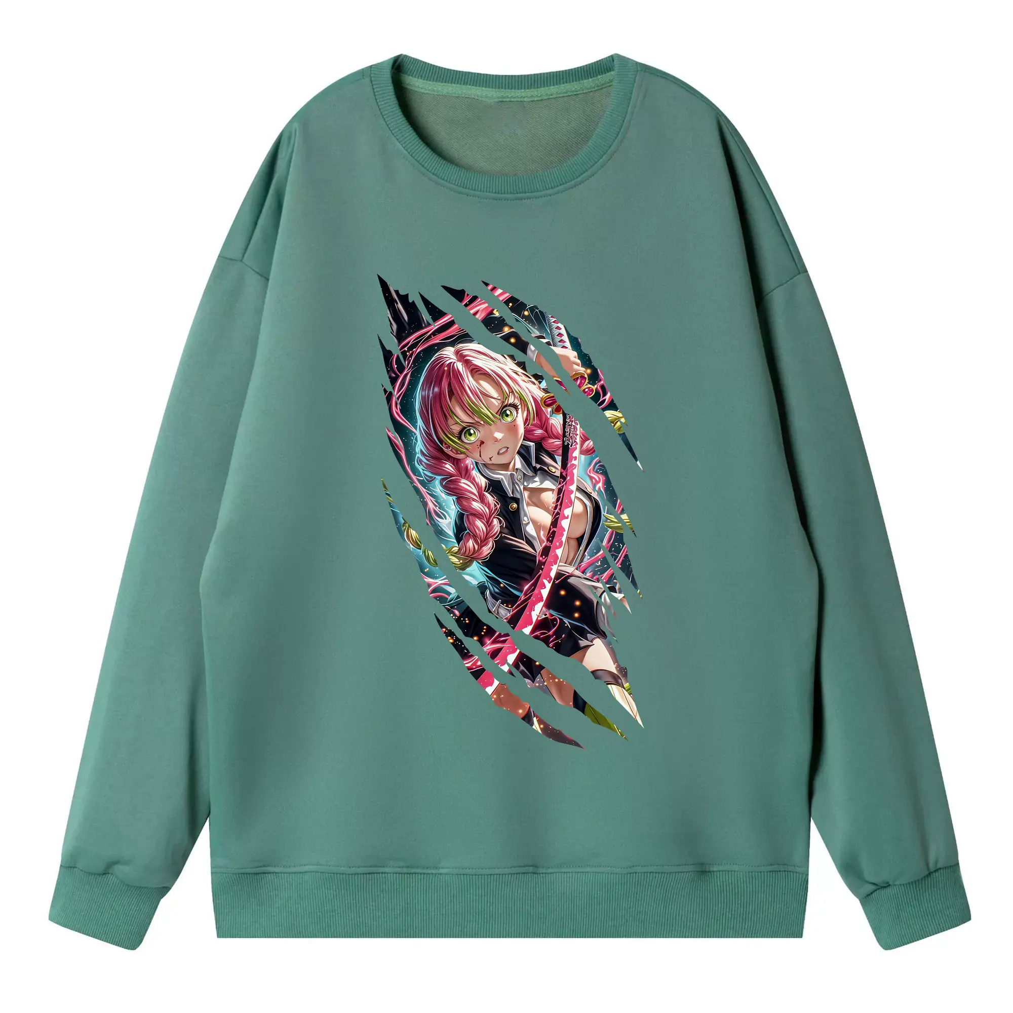 鬼滅の刃 グッズ,甘露寺 蜜璃 - 高品質 クルーネック スウェット ・ コットン59% ポリエステル41% ・ ユニセックス 長袖 トレーナー ・ カジュアル デイリー スポーツ 散歩用