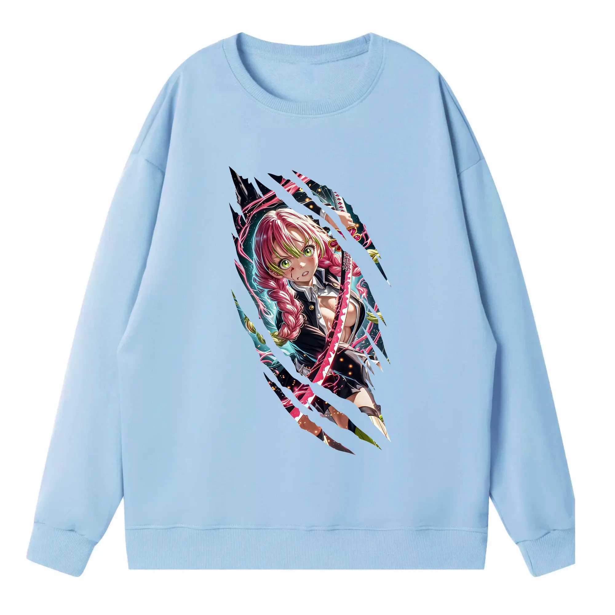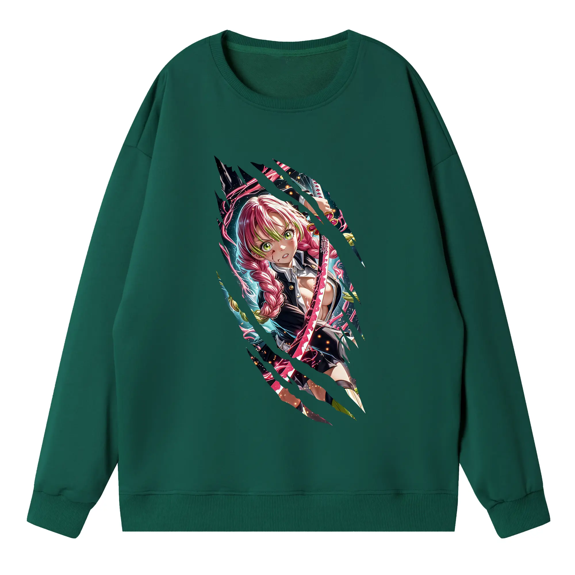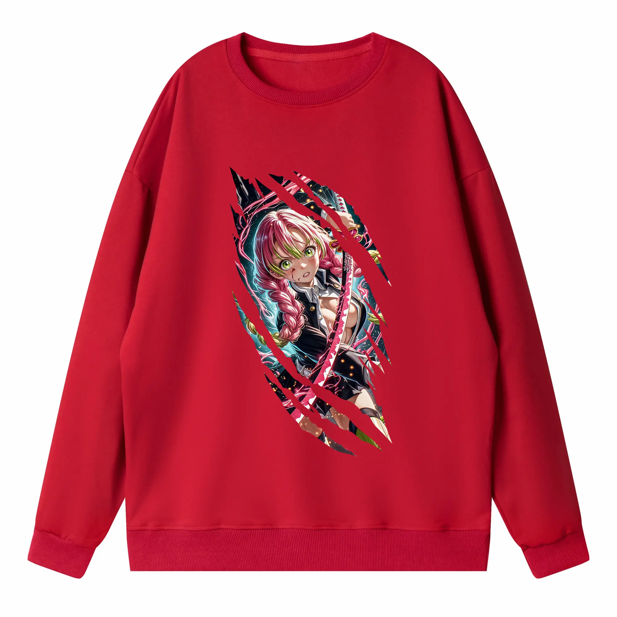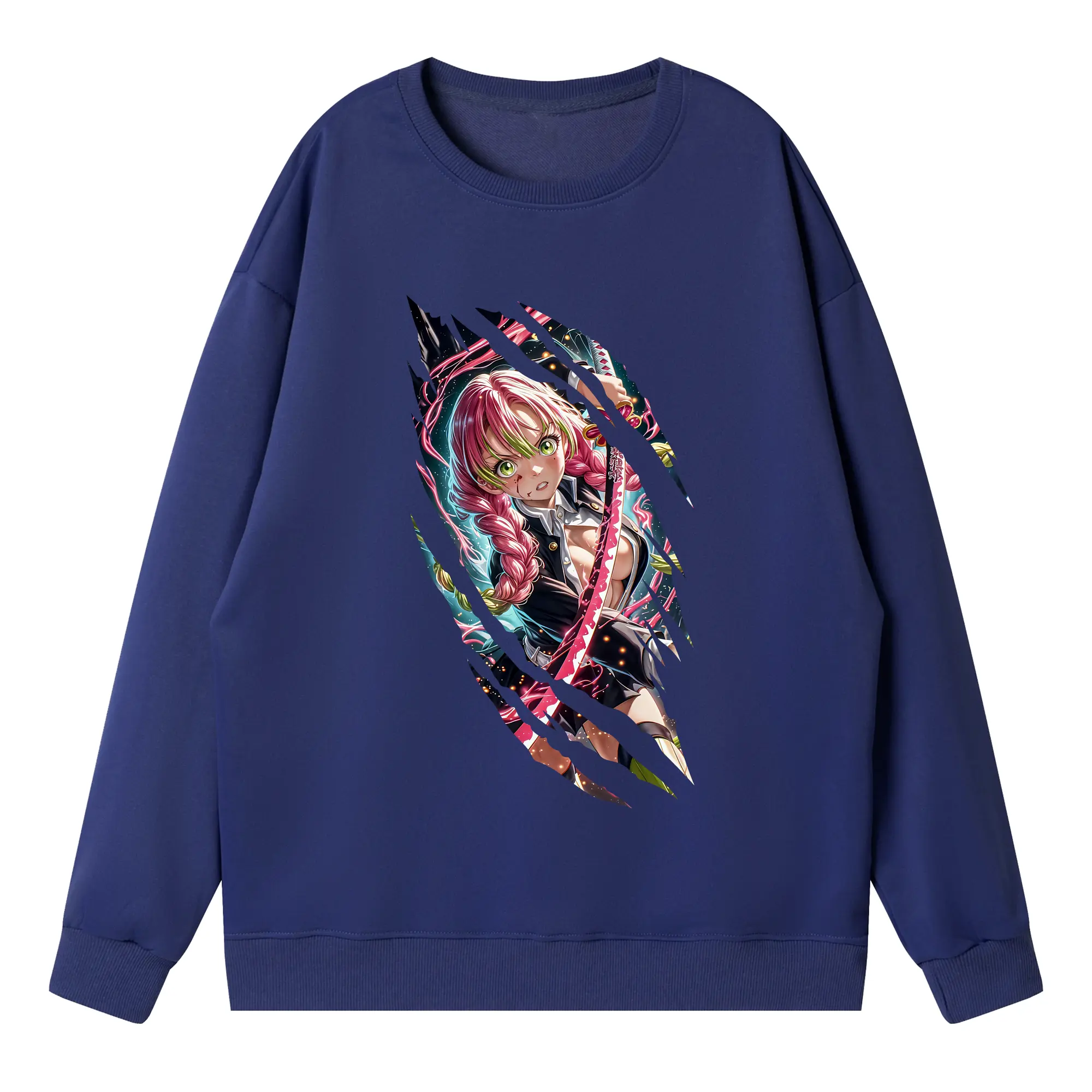 鬼滅の刃 グッズ,甘露寺 蜜璃 - 高品質 クルーネック スウェット ・ コットン59% ポリエステル41% ・ ユニセックス 長袖 トレーナー ・ カジュアル デイリー スポーツ 散歩用