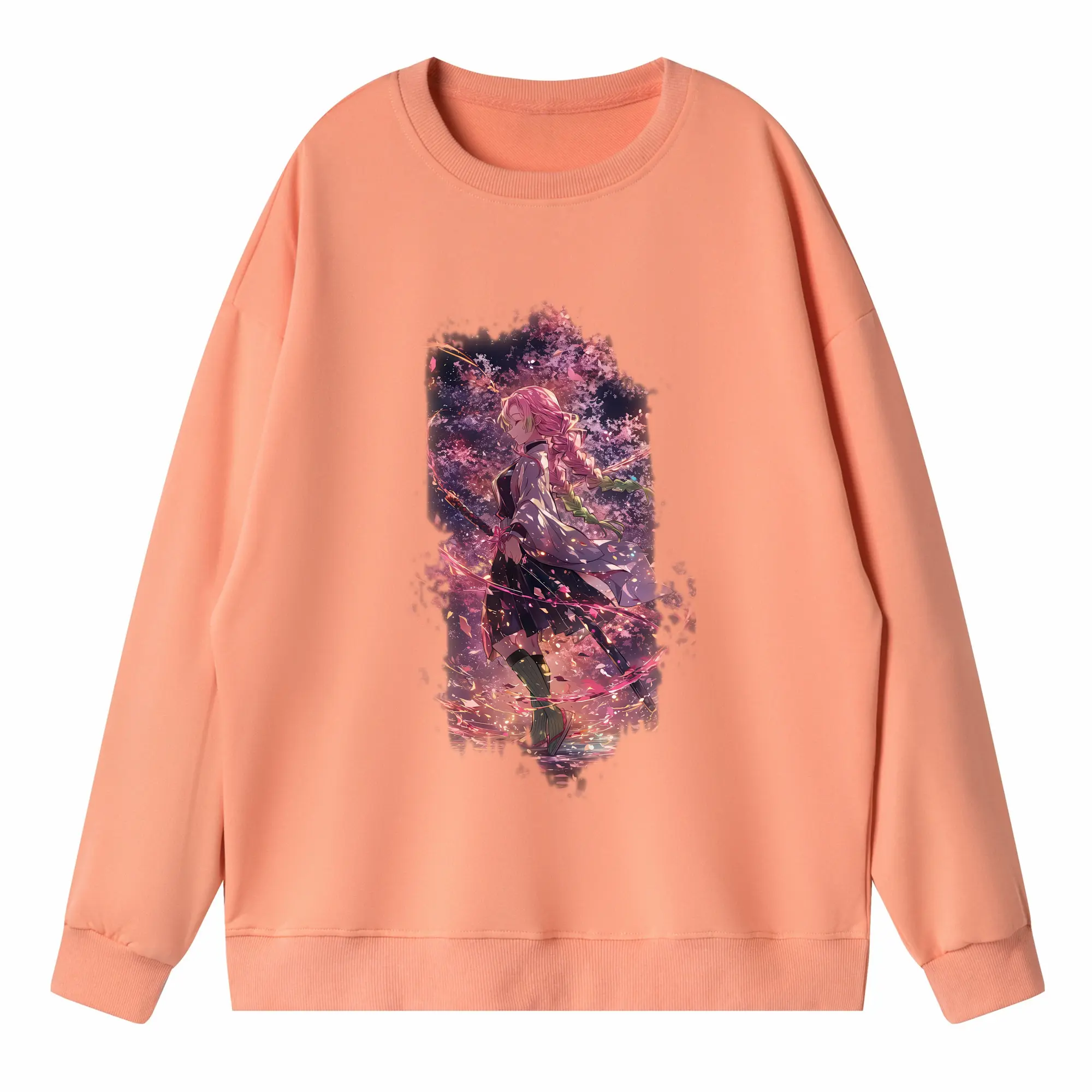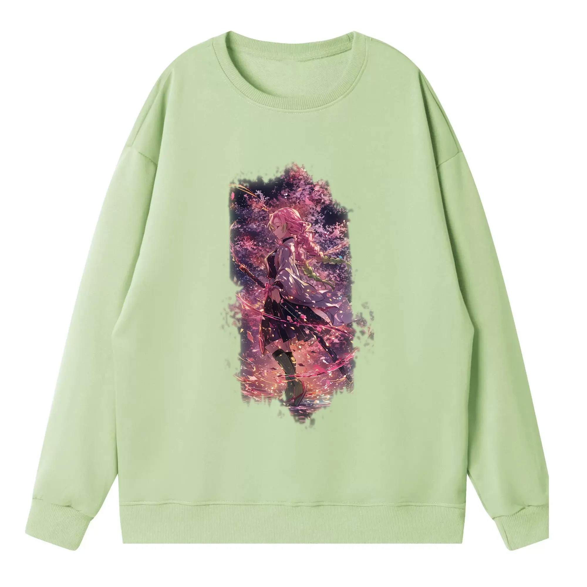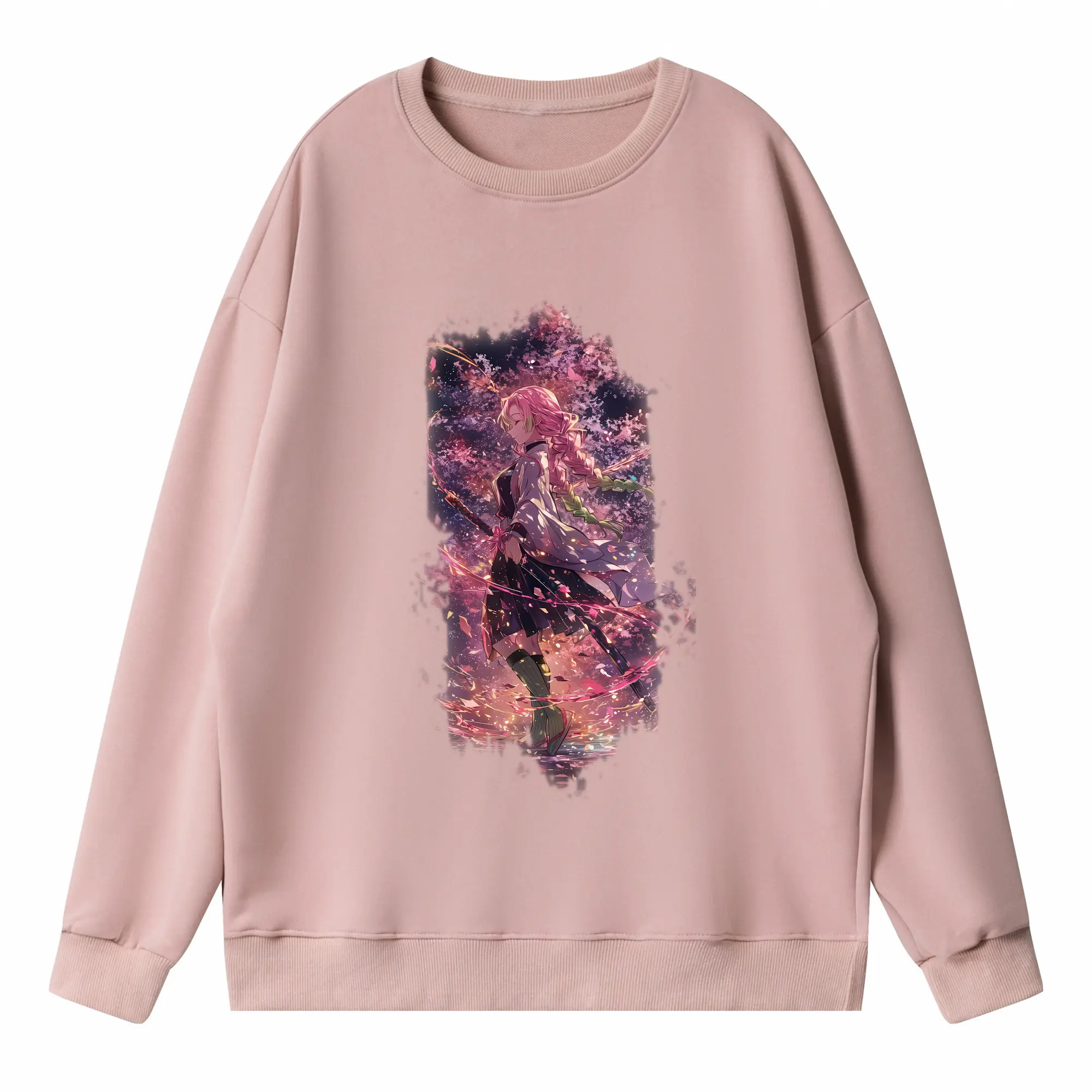 鬼滅の刃 グッズ,甘露寺 蜜璃 - 高品質 クルーネック スウェット ・ コットン59% ポリエステル41% ・ ユニセックス 長袖 トレーナー ・ カジュアル デイリー スポーツ 散歩用