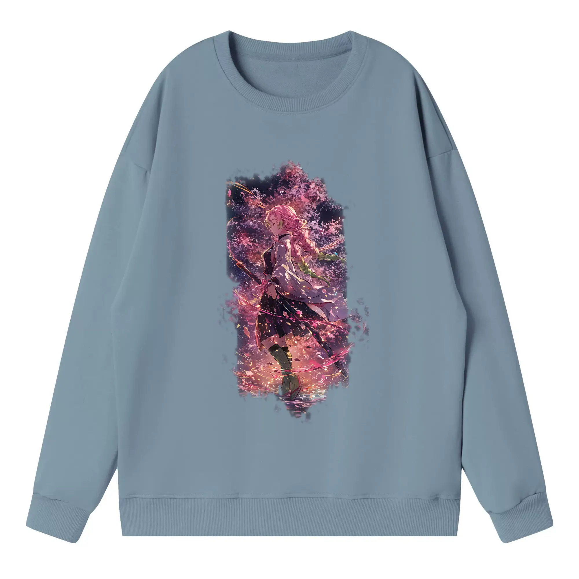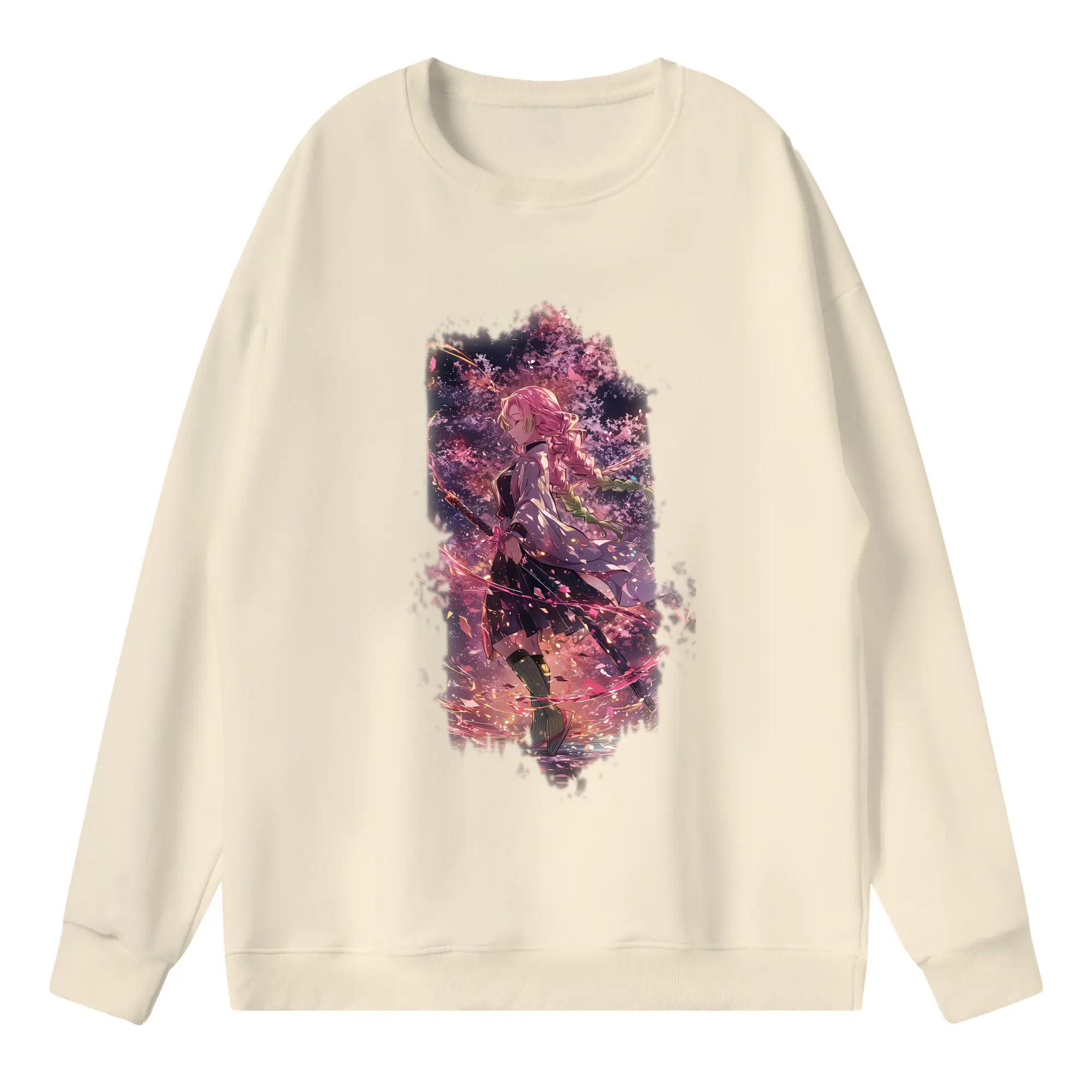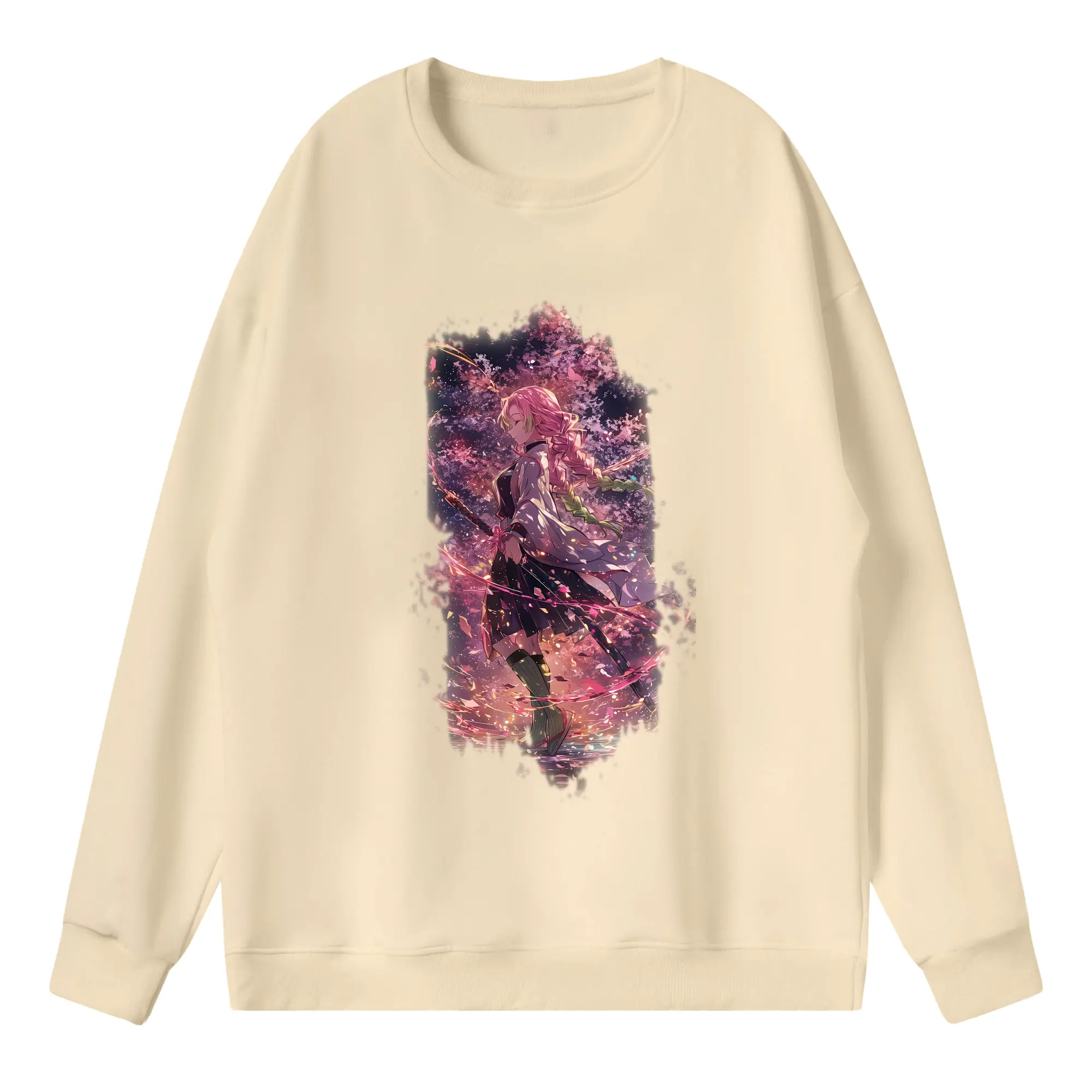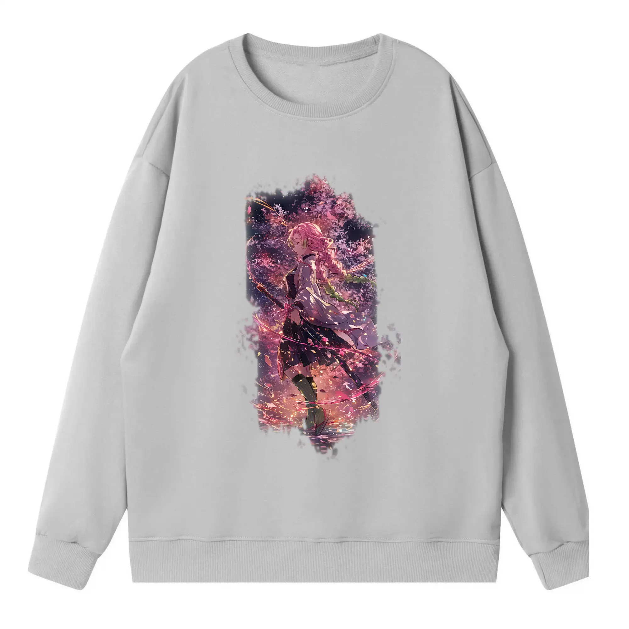 鬼滅の刃 グッズ,甘露寺 蜜璃 - 高品質 クルーネック スウェット ・ コットン59% ポリエステル41% ・ ユニセックス 長袖 トレーナー ・ カジュアル デイリー スポーツ 散歩用