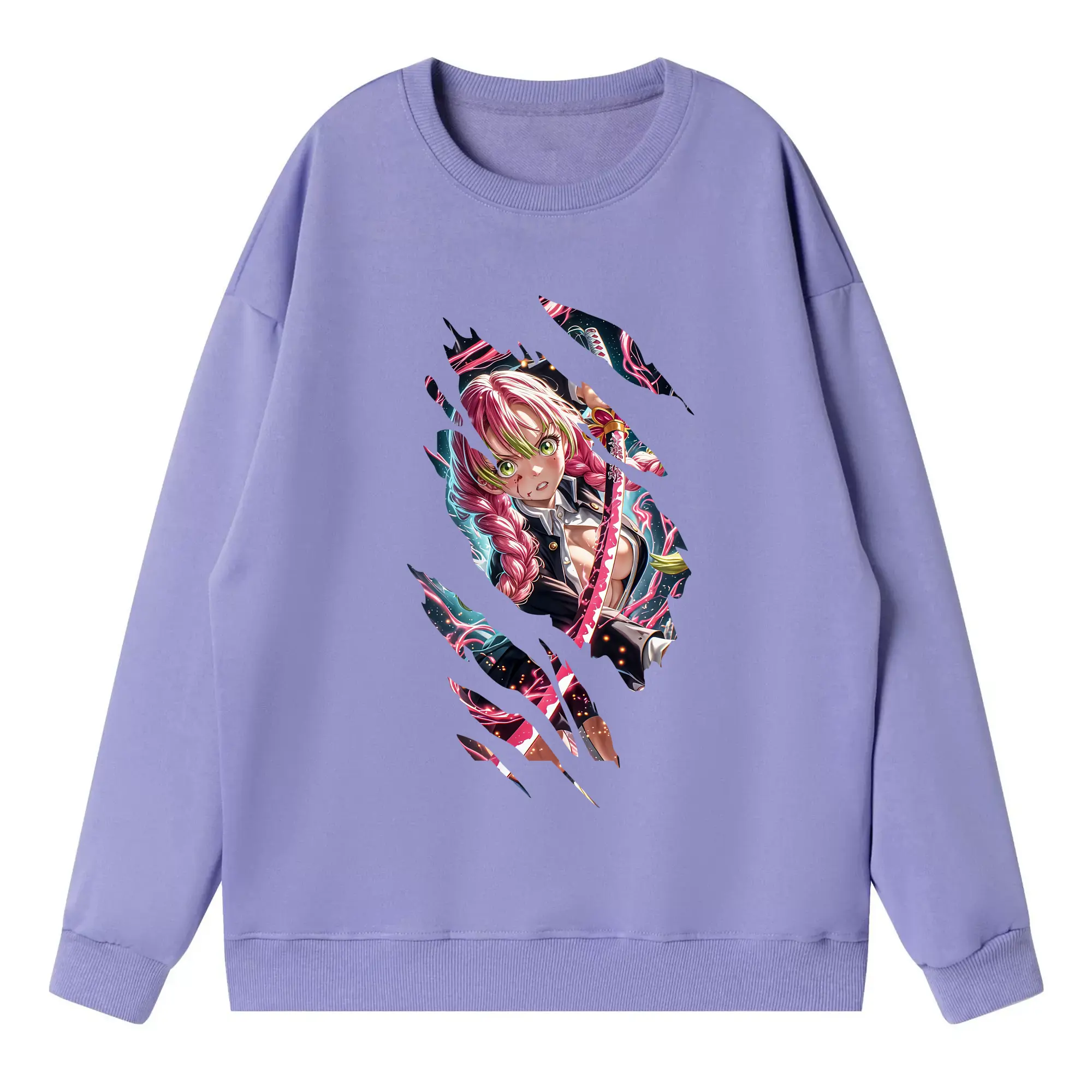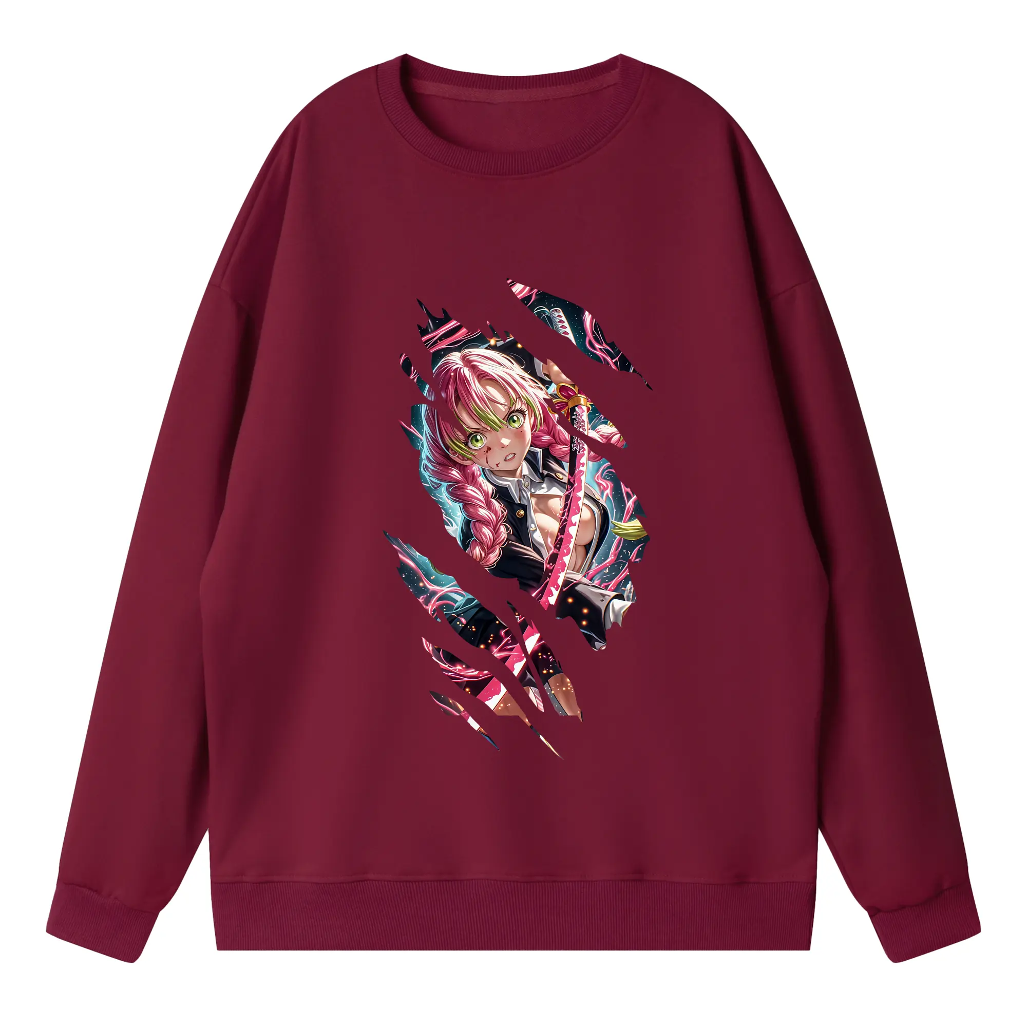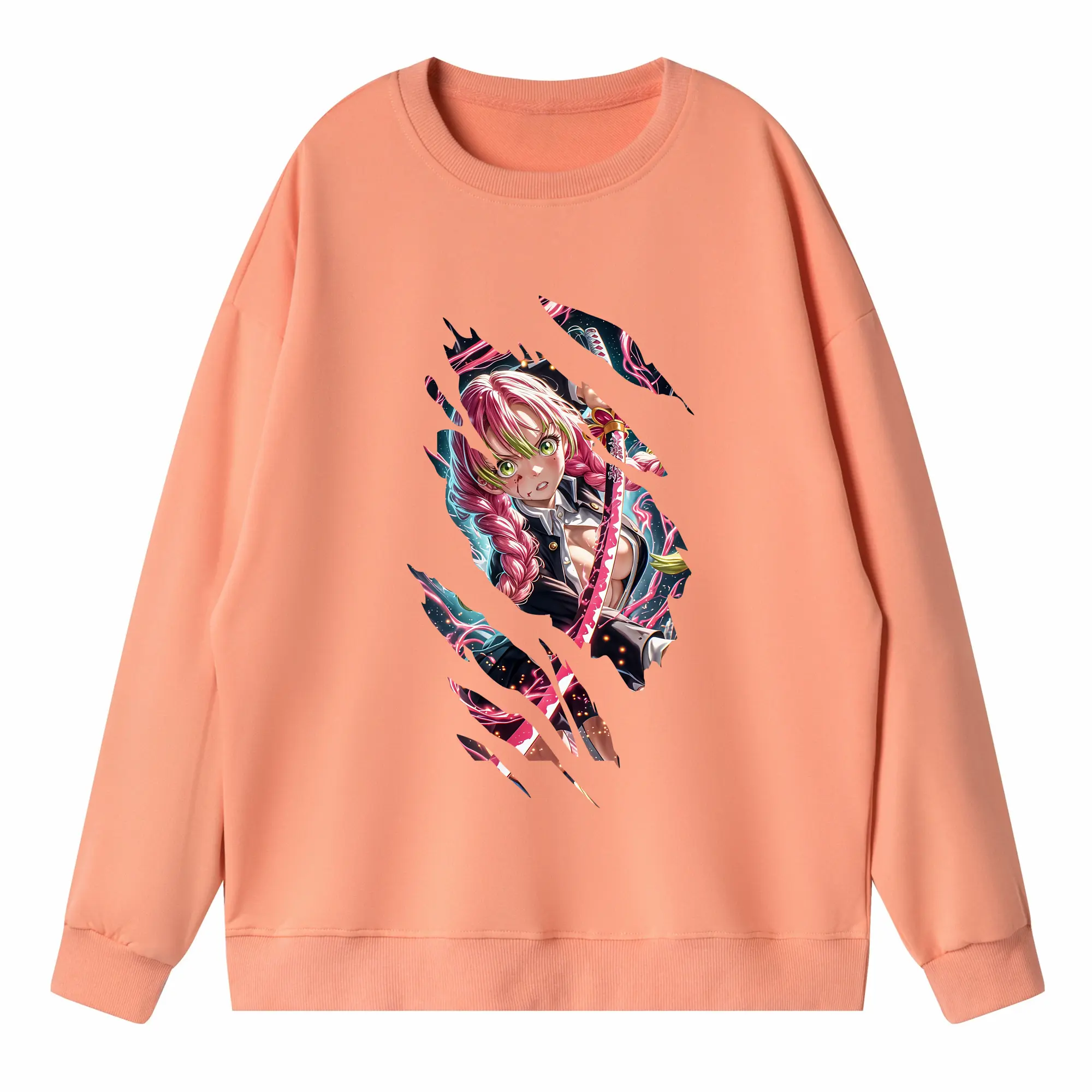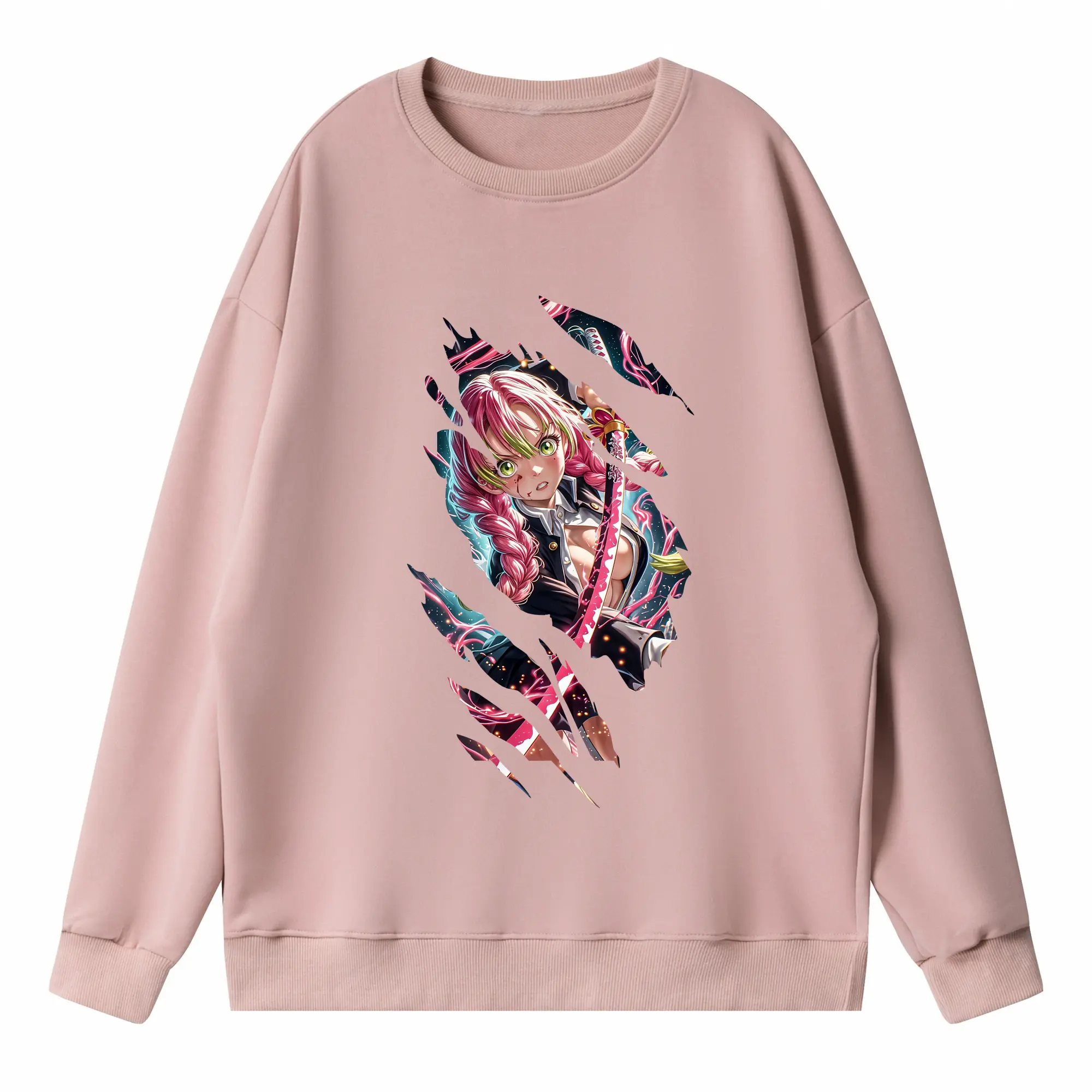 鬼滅の刃 グッズ,甘露寺 蜜璃 - 高品質 クルーネック スウェット ・ コットン59% ポリエステル41% ・ ユニセックス 長袖 トレーナー ・ カジュアル デイリー スポーツ 散歩用
