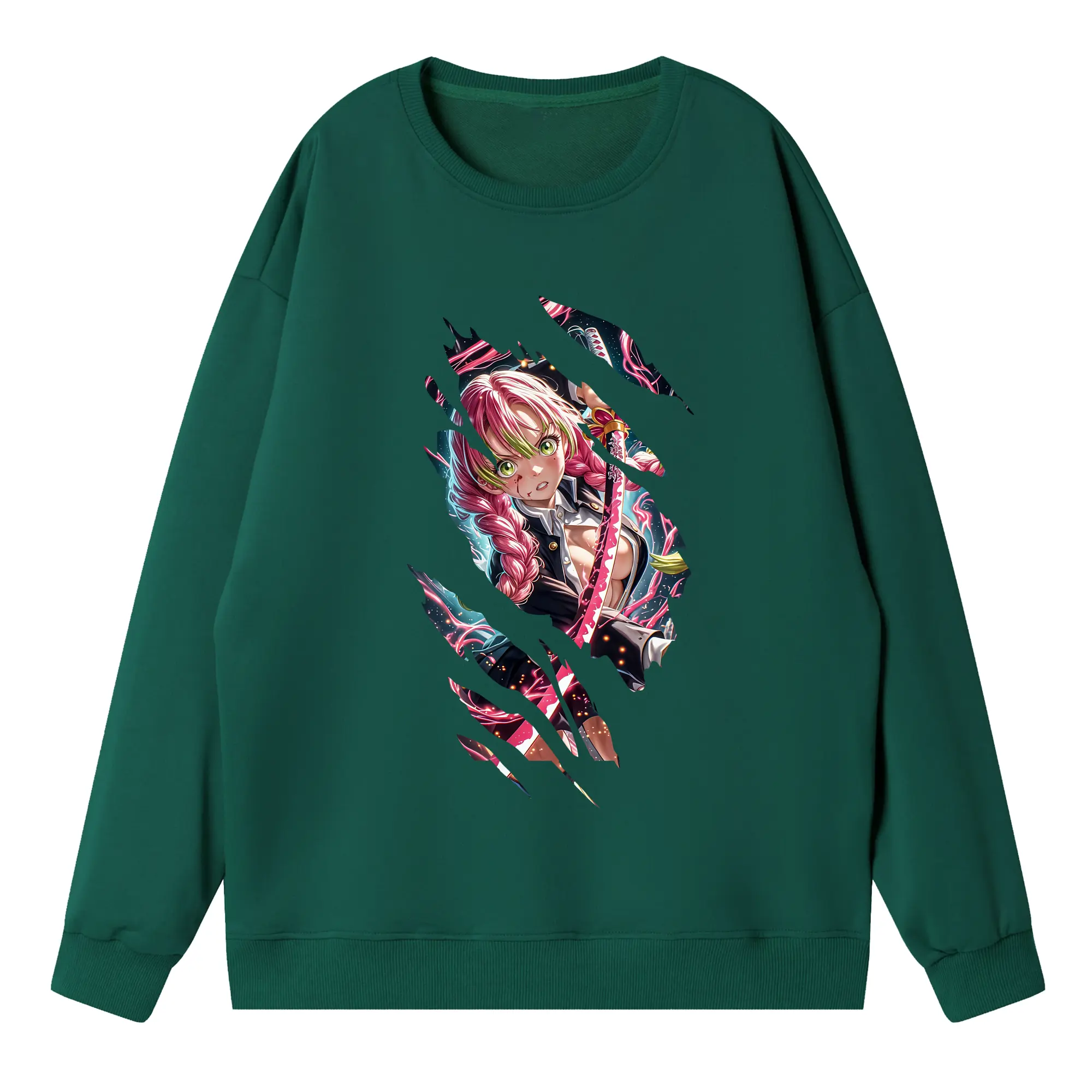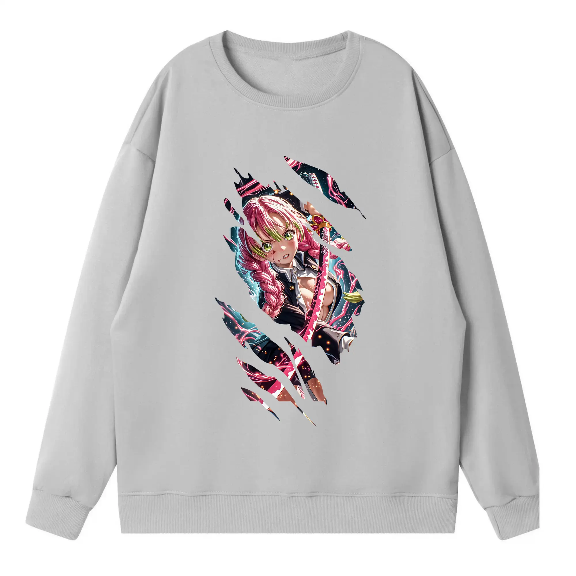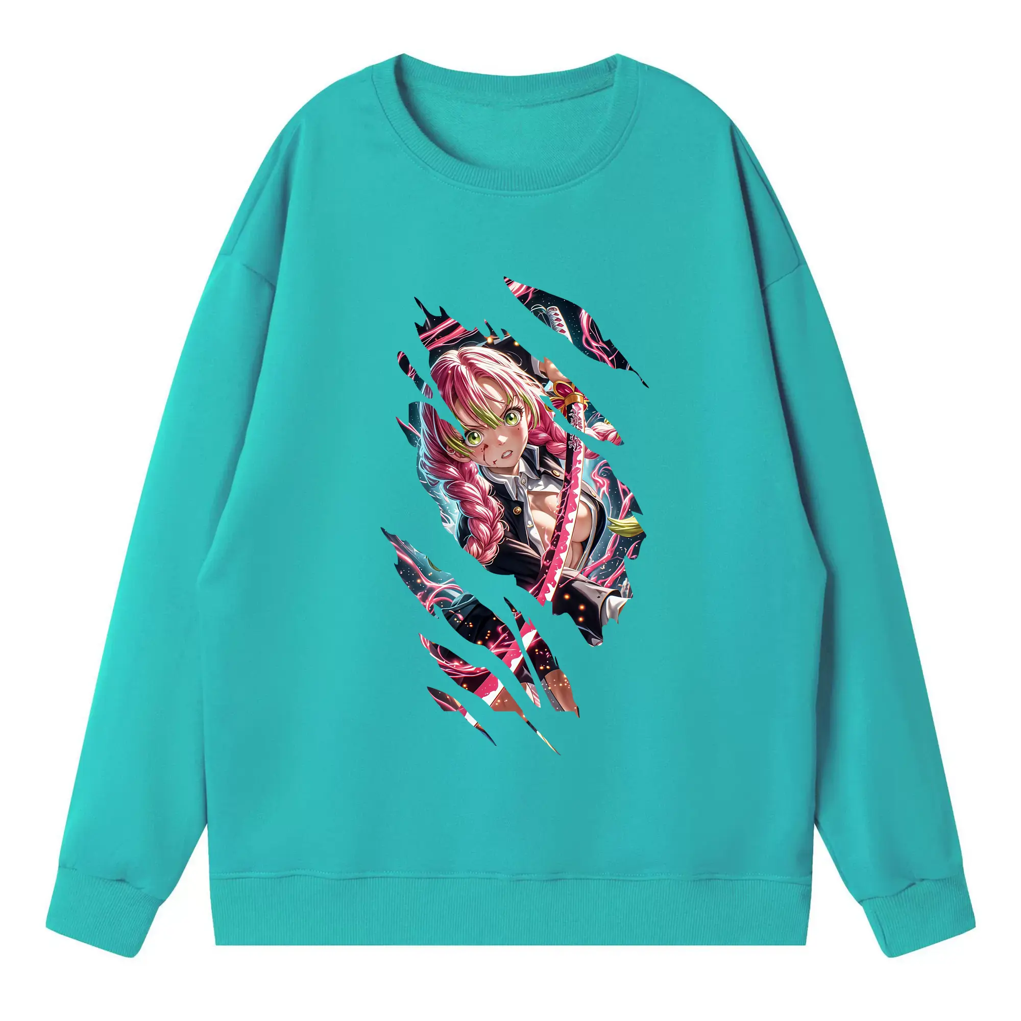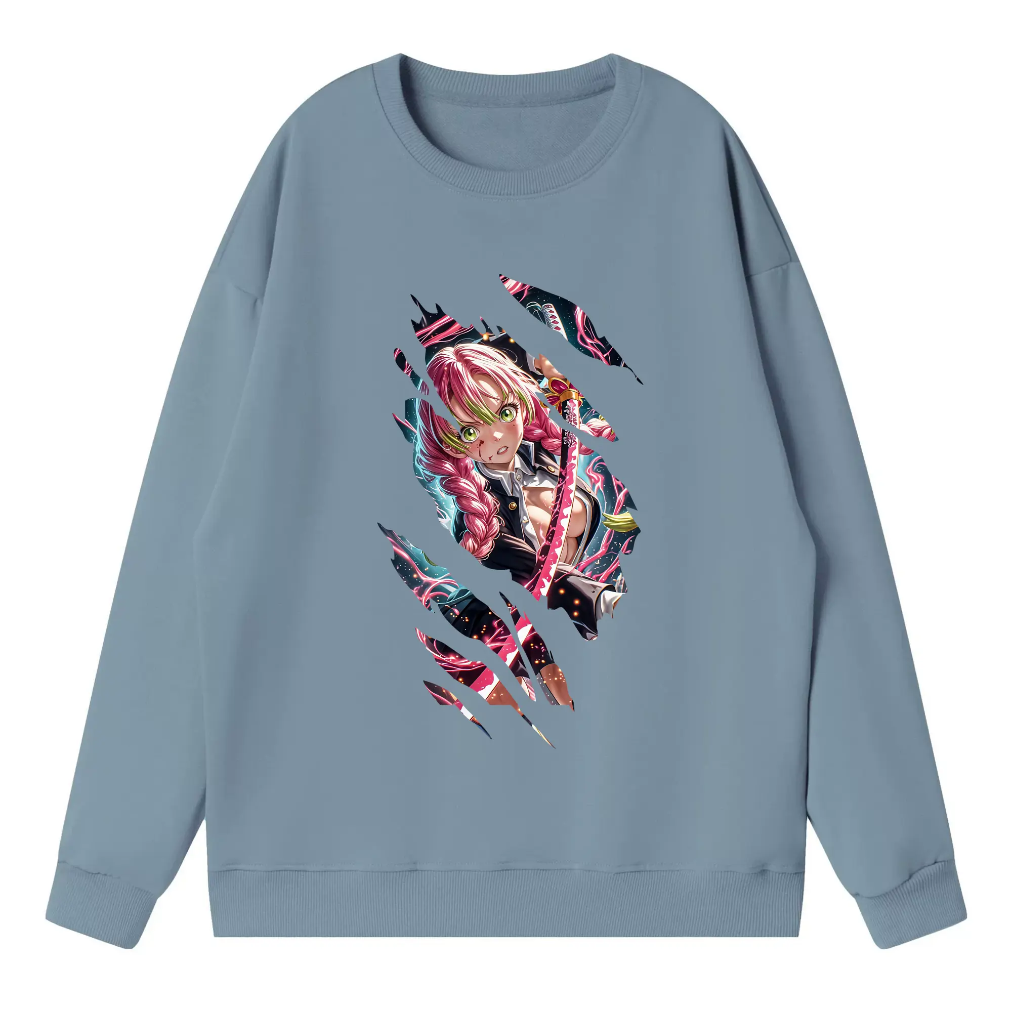 鬼滅の刃 グッズ,甘露寺 蜜璃 - 高品質 クルーネック スウェット ・ コットン59% ポリエステル41% ・ ユニセックス 長袖 トレーナー ・ カジュアル デイリー スポーツ 散歩用