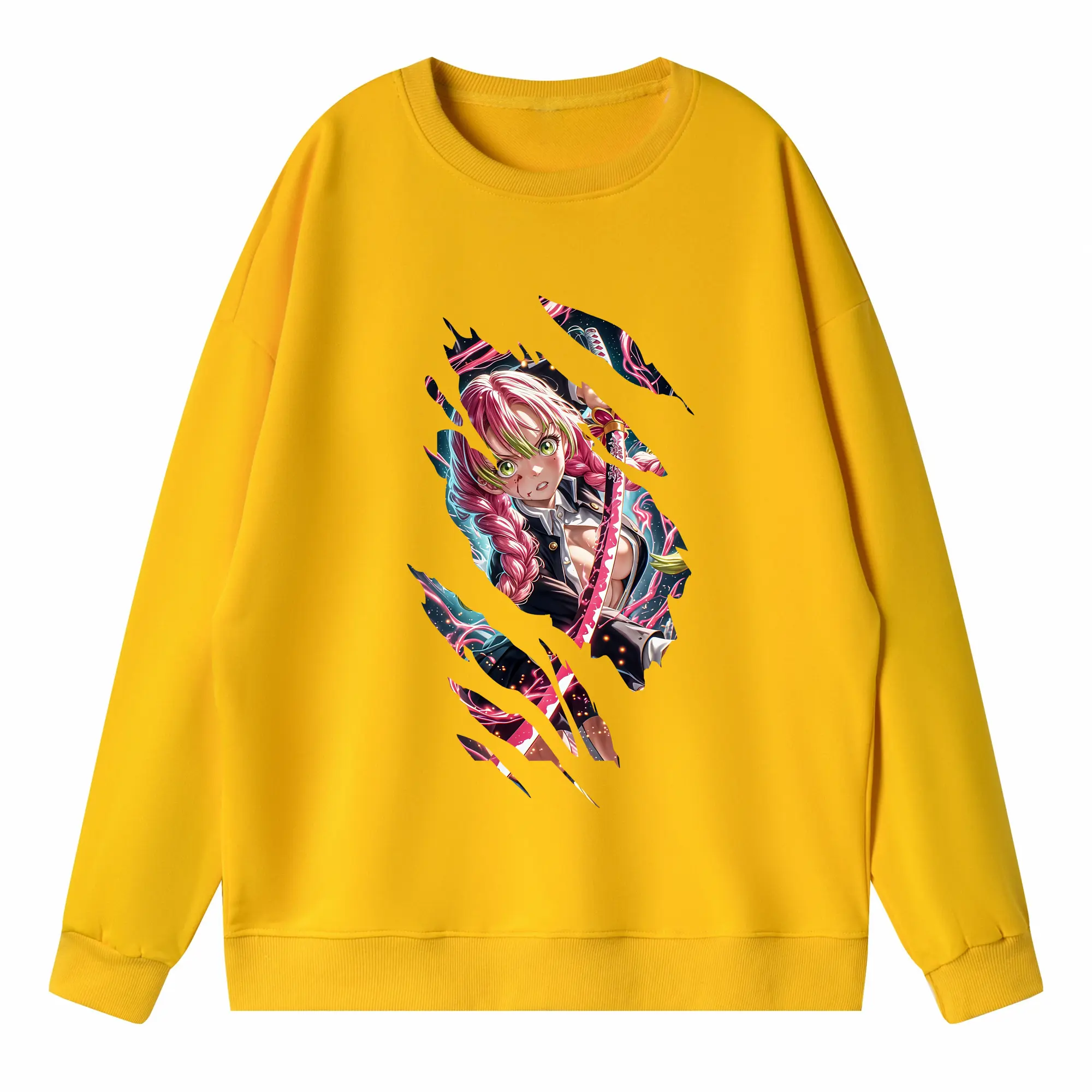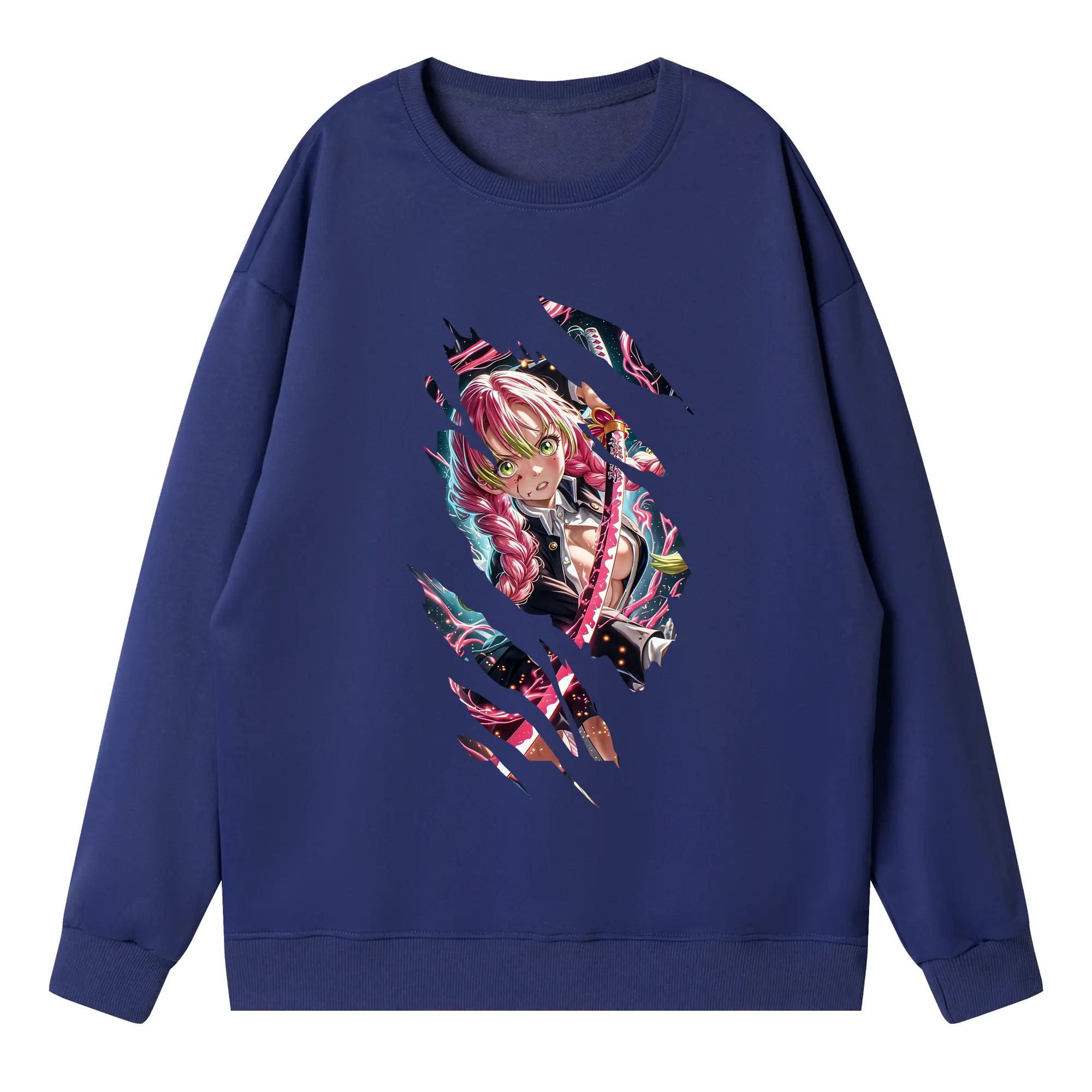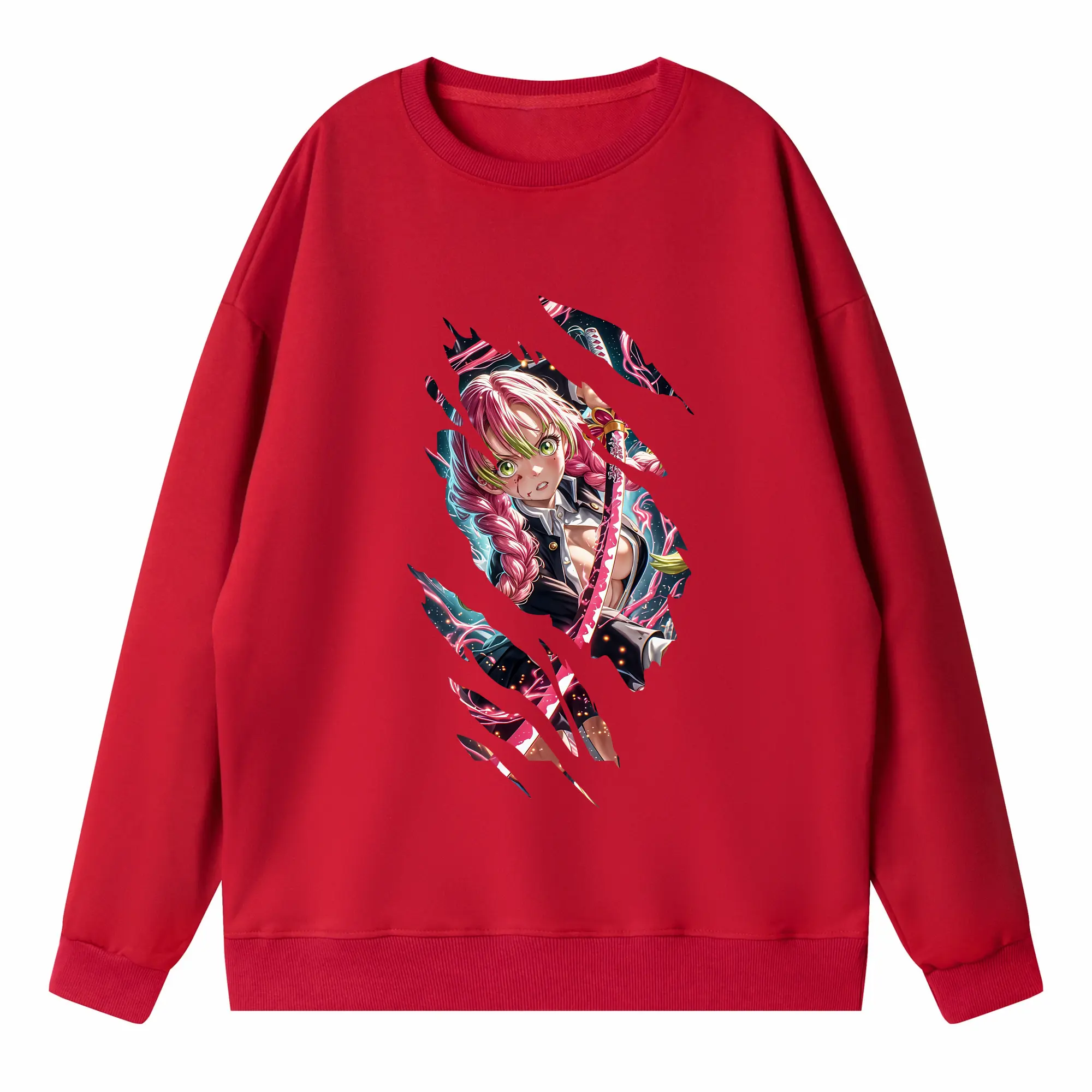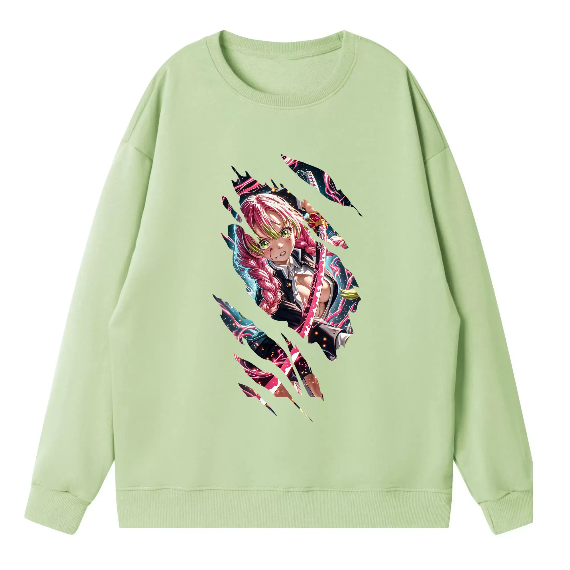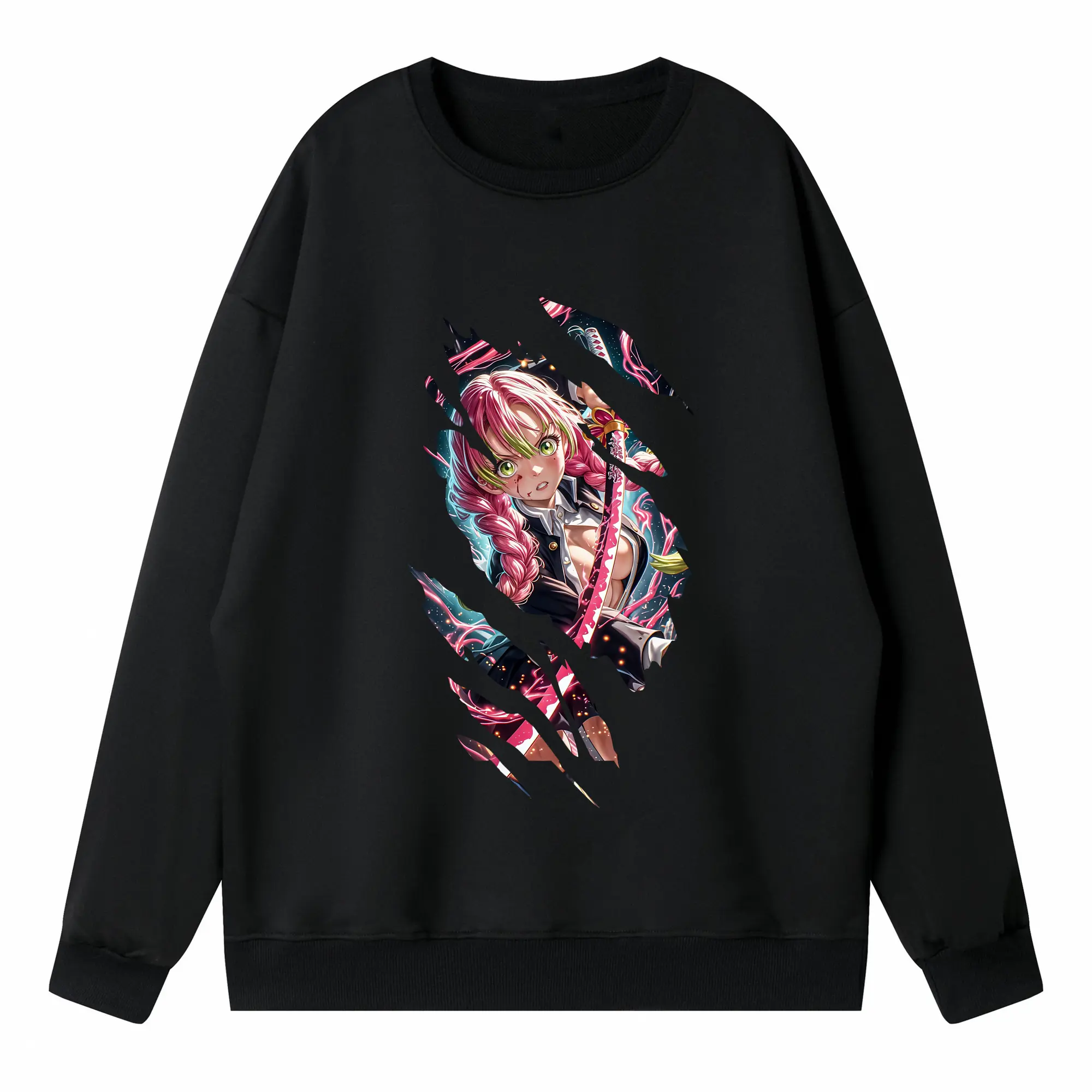 鬼滅の刃 グッズ,甘露寺 蜜璃 - 高品質 クルーネック スウェット ・ コットン59% ポリエステル41% ・ ユニセックス 長袖 トレーナー ・ カジュアル デイリー スポーツ 散歩用