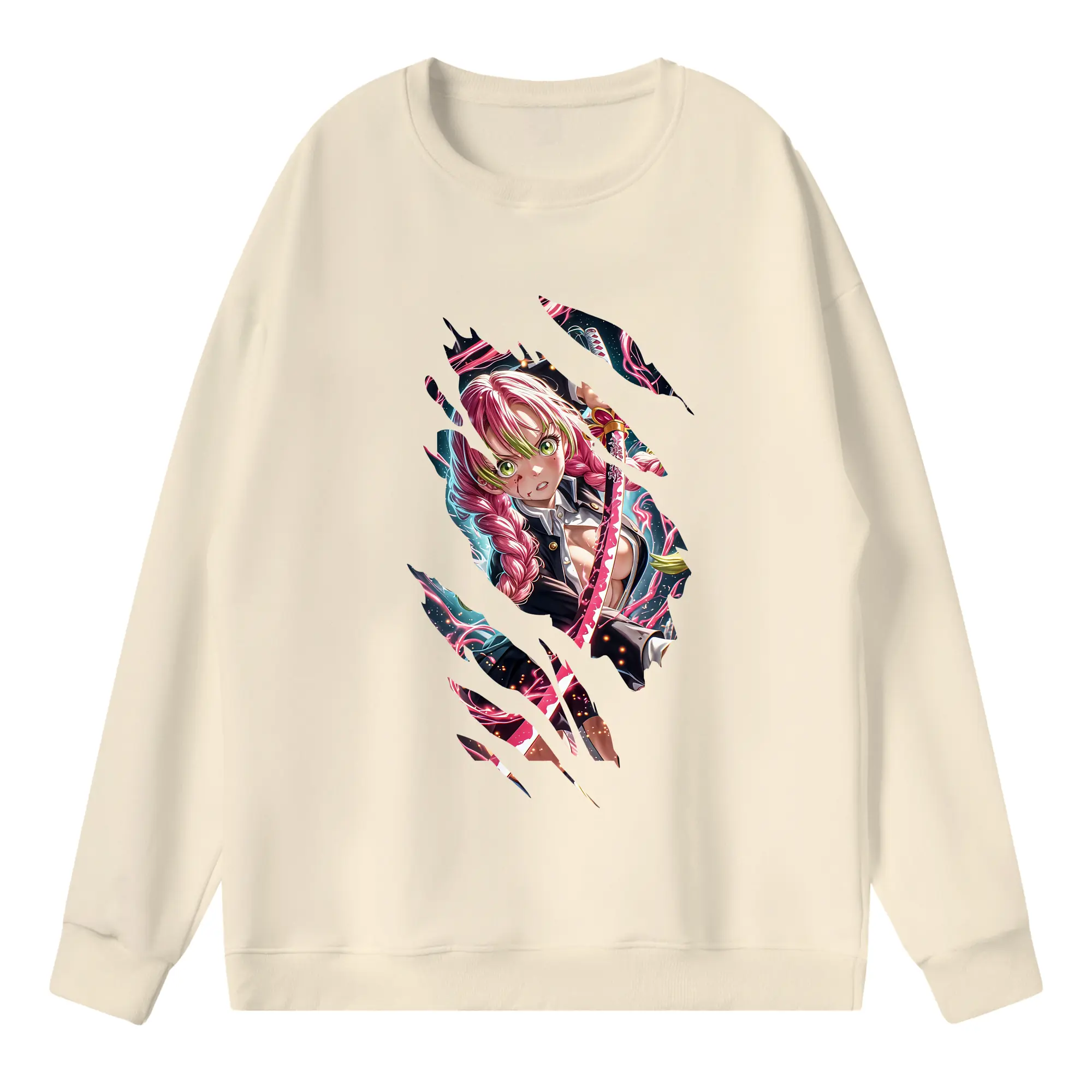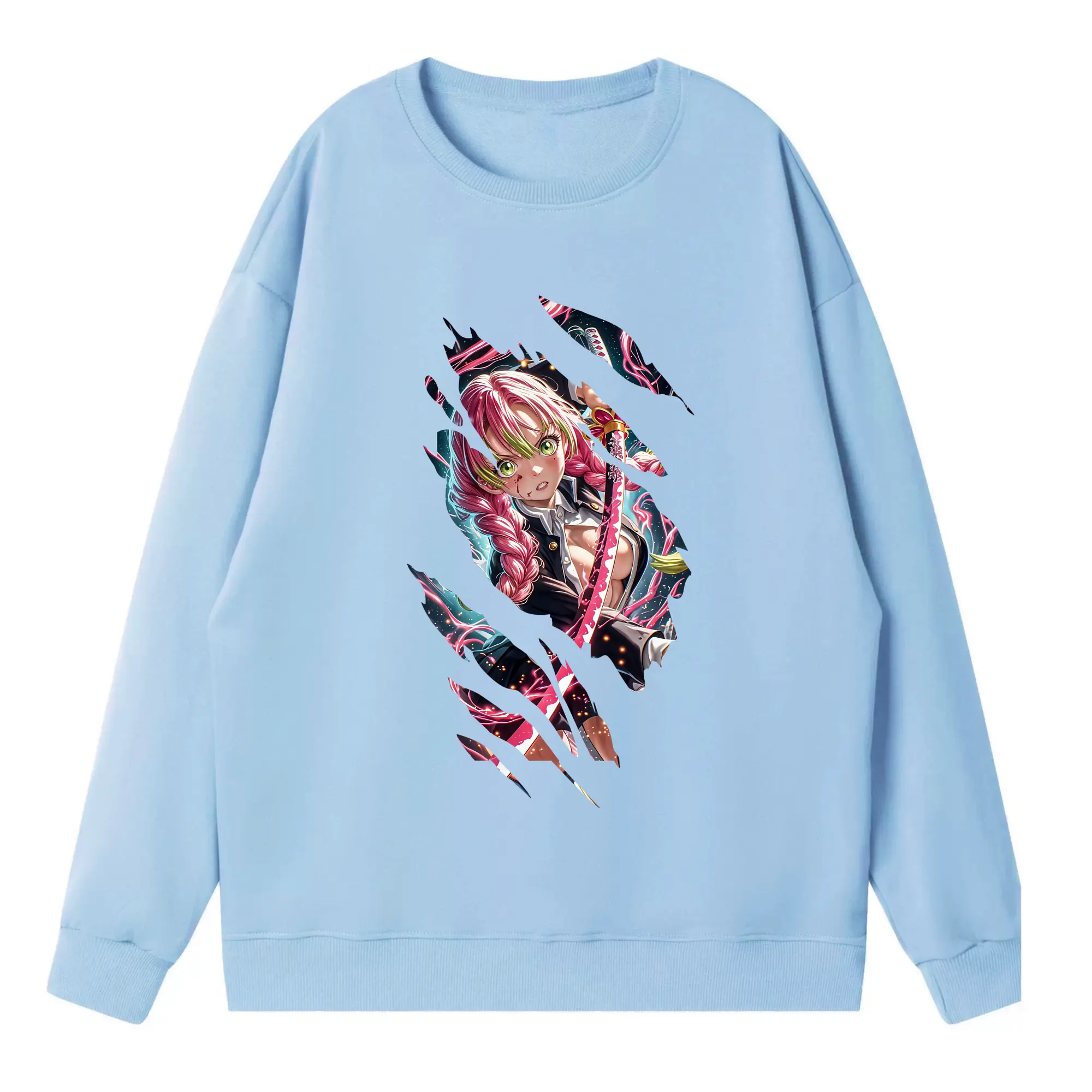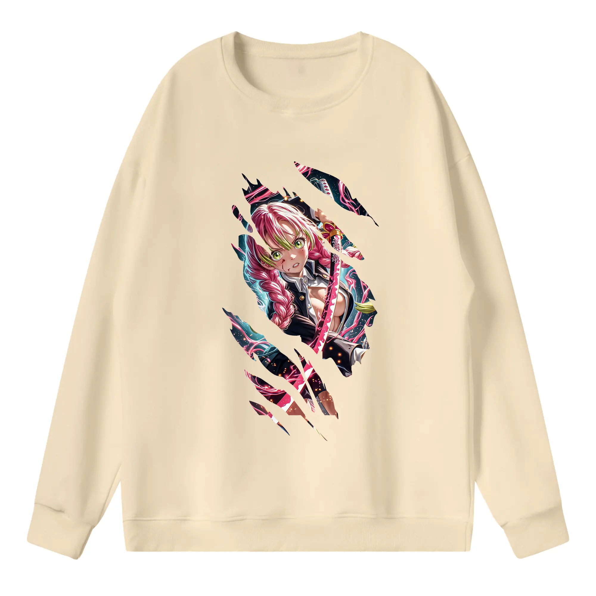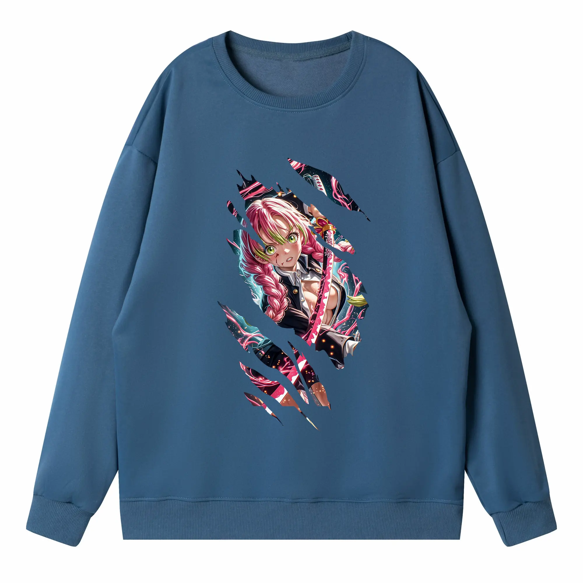 鬼滅の刃 グッズ,甘露寺 蜜璃 - 高品質 クルーネック スウェット ・ コットン59% ポリエステル41% ・ ユニセックス 長袖 トレーナー ・ カジュアル デイリー スポーツ 散歩用
