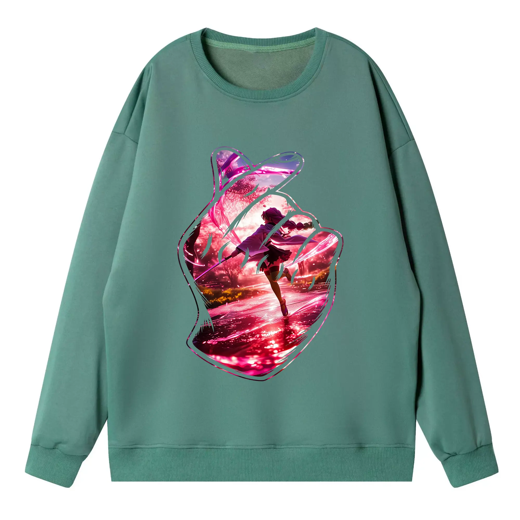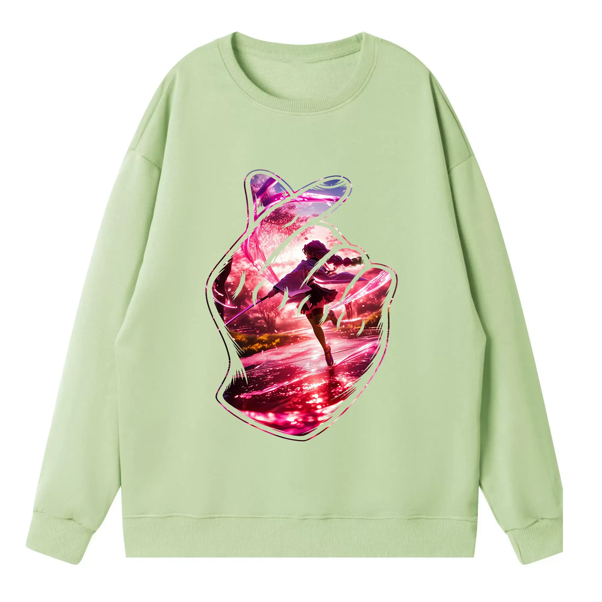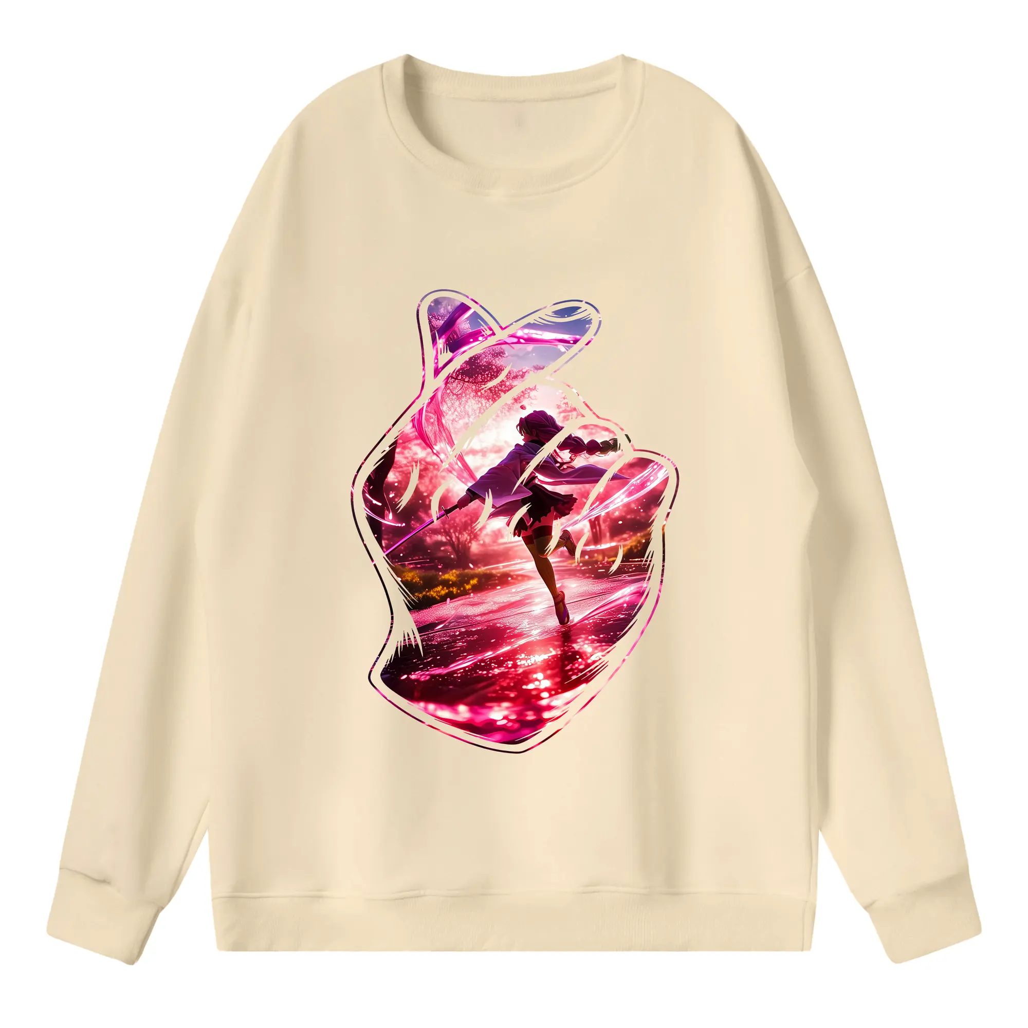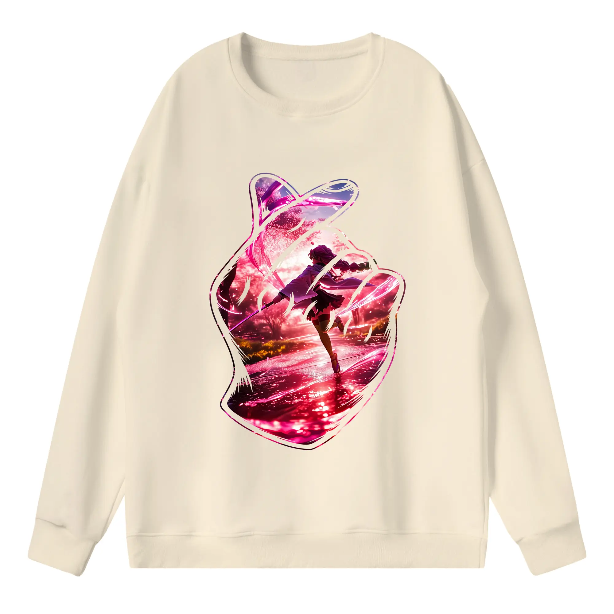 鬼滅の刃 グッズ,甘露寺 蜜璃 - 高品質 クルーネック スウェット ・ コットン59% ポリエステル41% ・ ユニセックス 長袖 トレーナー ・ カジュアル デイリー スポーツ 散歩用