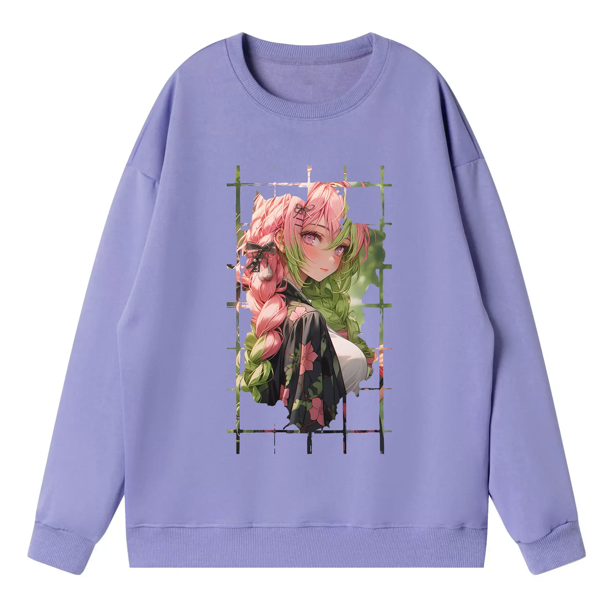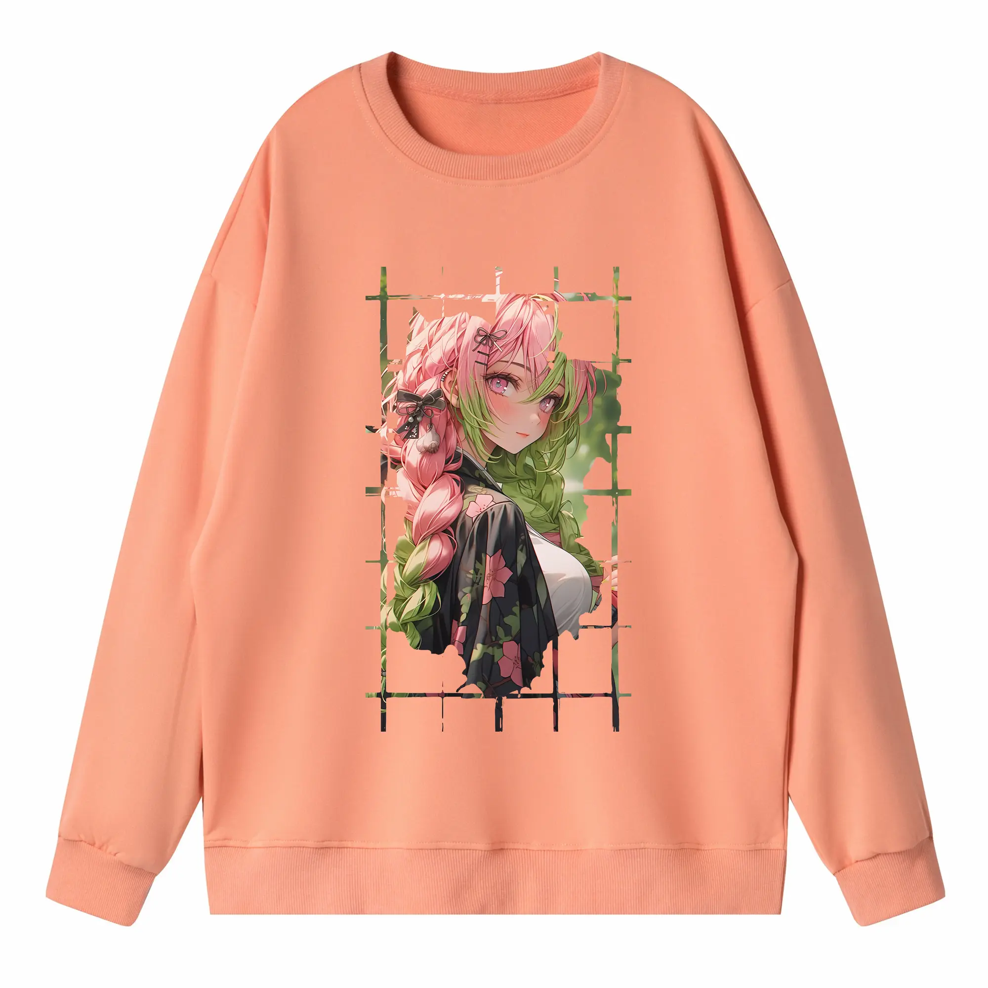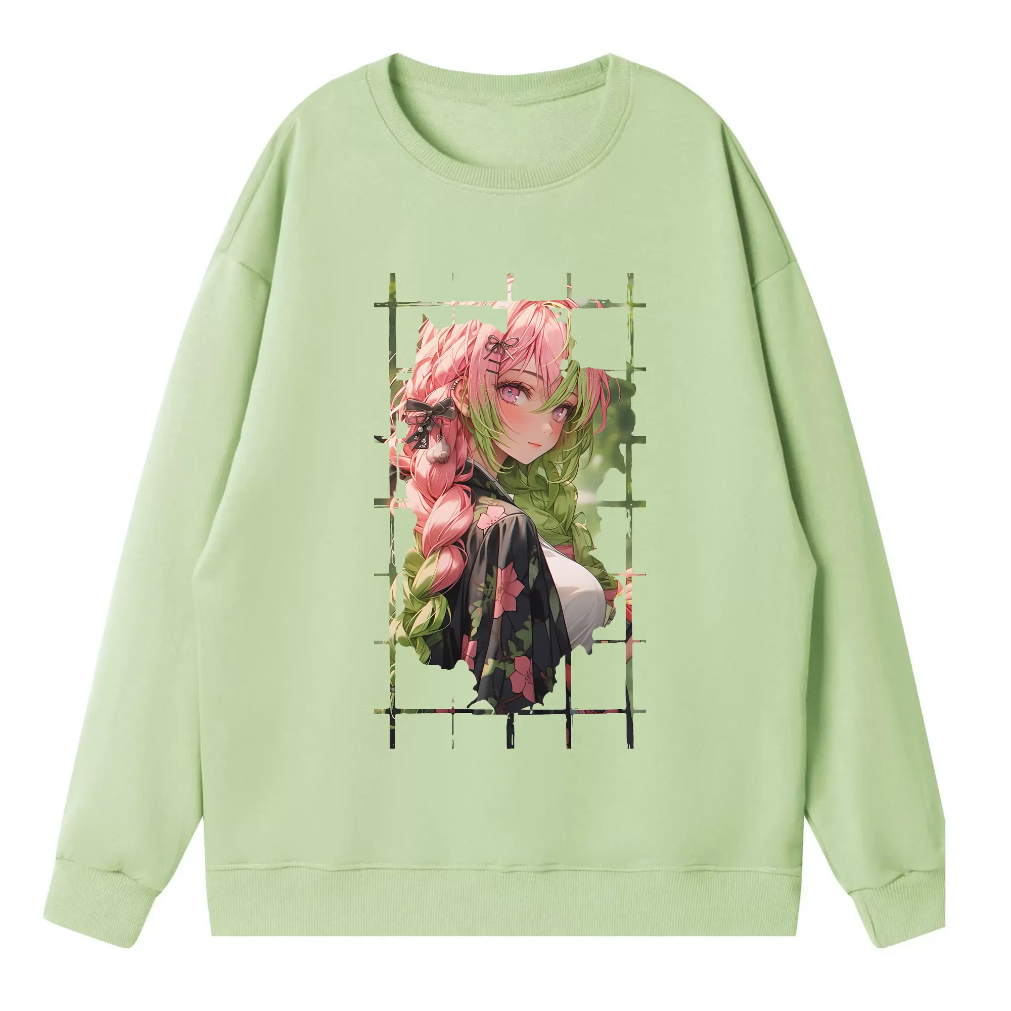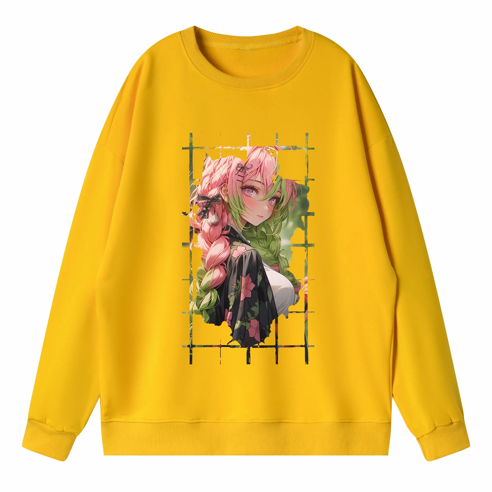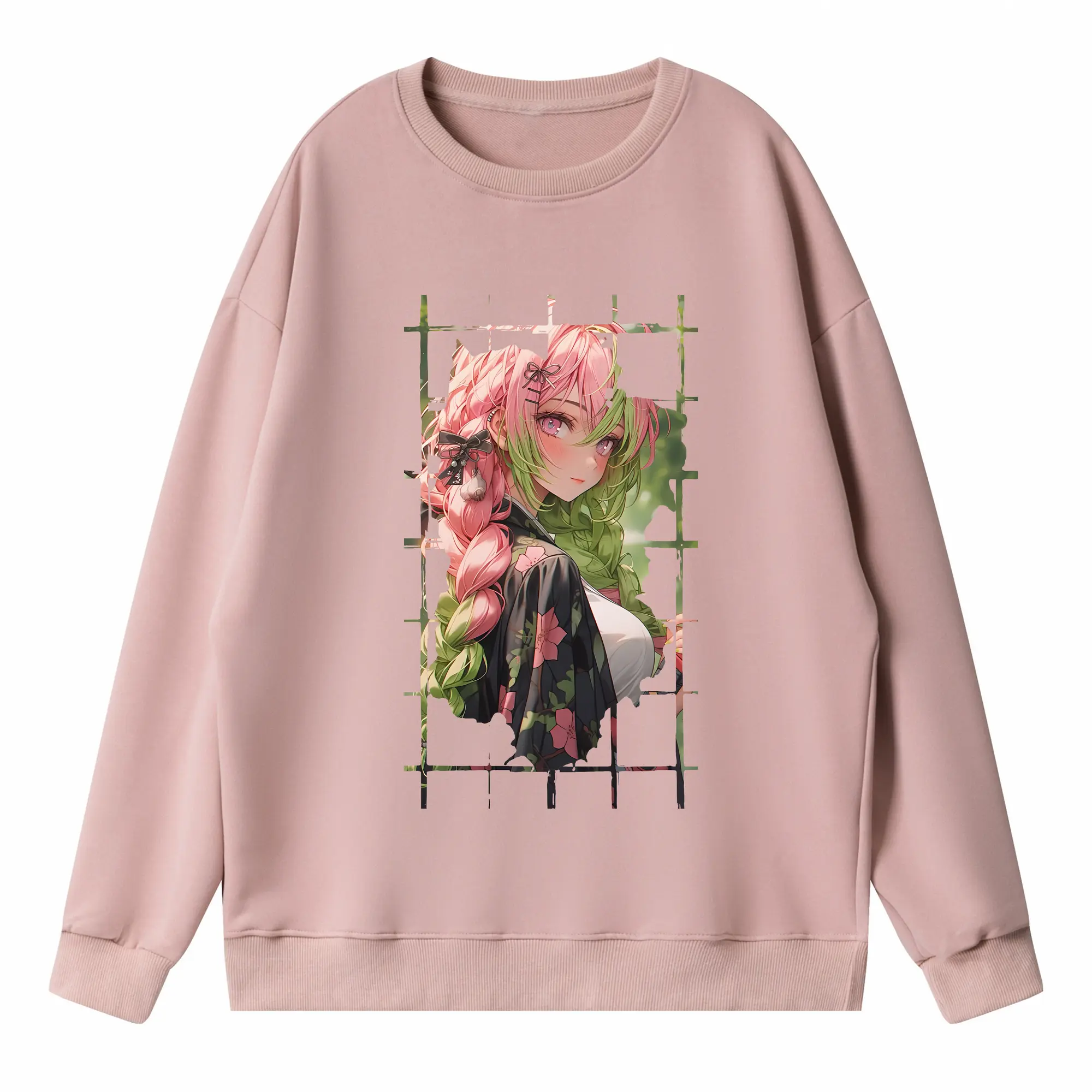 鬼滅の刃 グッズ,甘露寺 蜜璃 - 高品質 クルーネック スウェット ・ コットン59% ポリエステル41% ・ ユニセックス 長袖 トレーナー ・ カジュアル デイリー スポーツ 散歩用