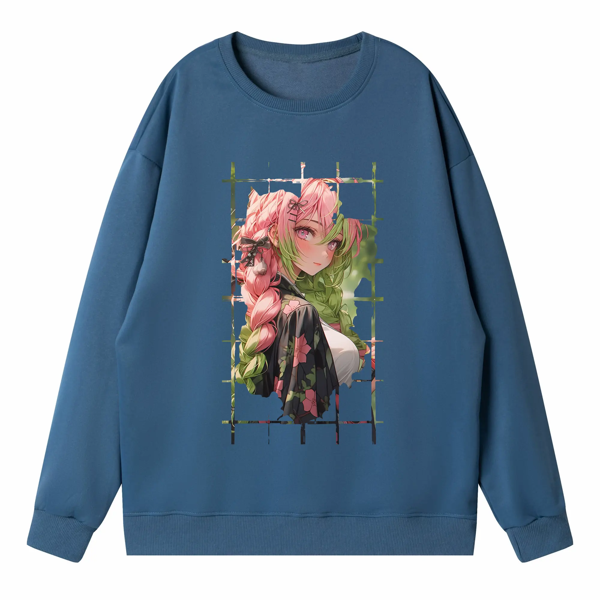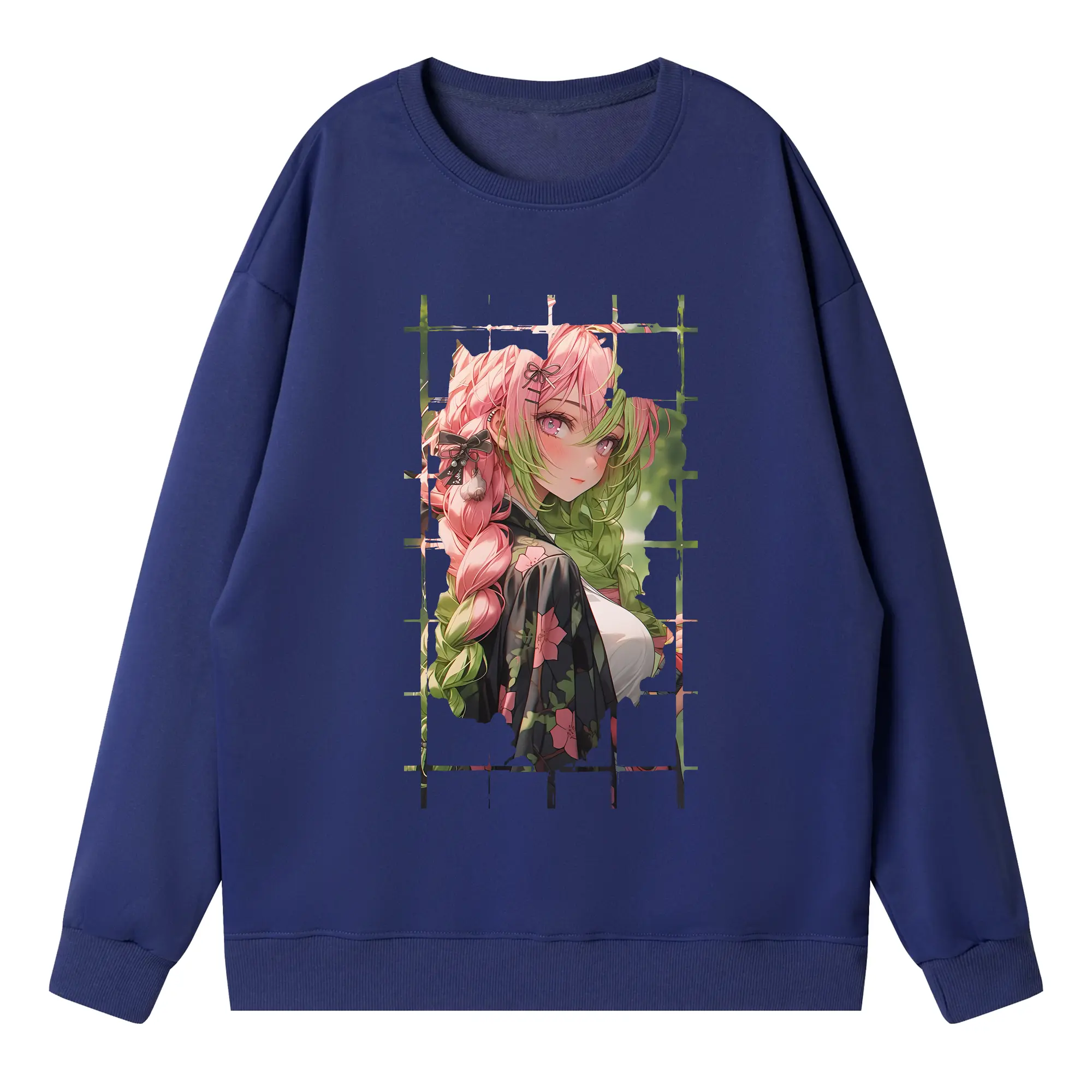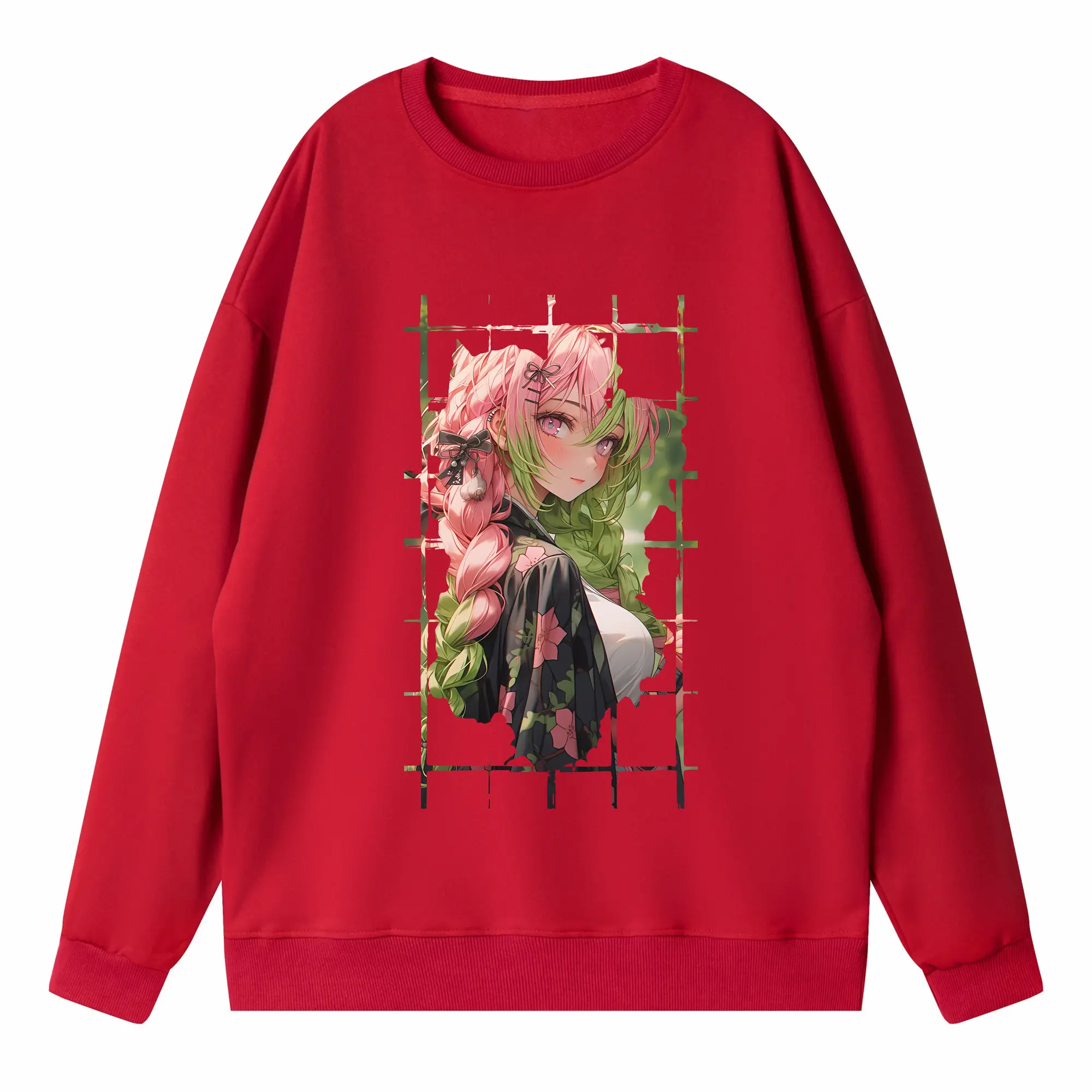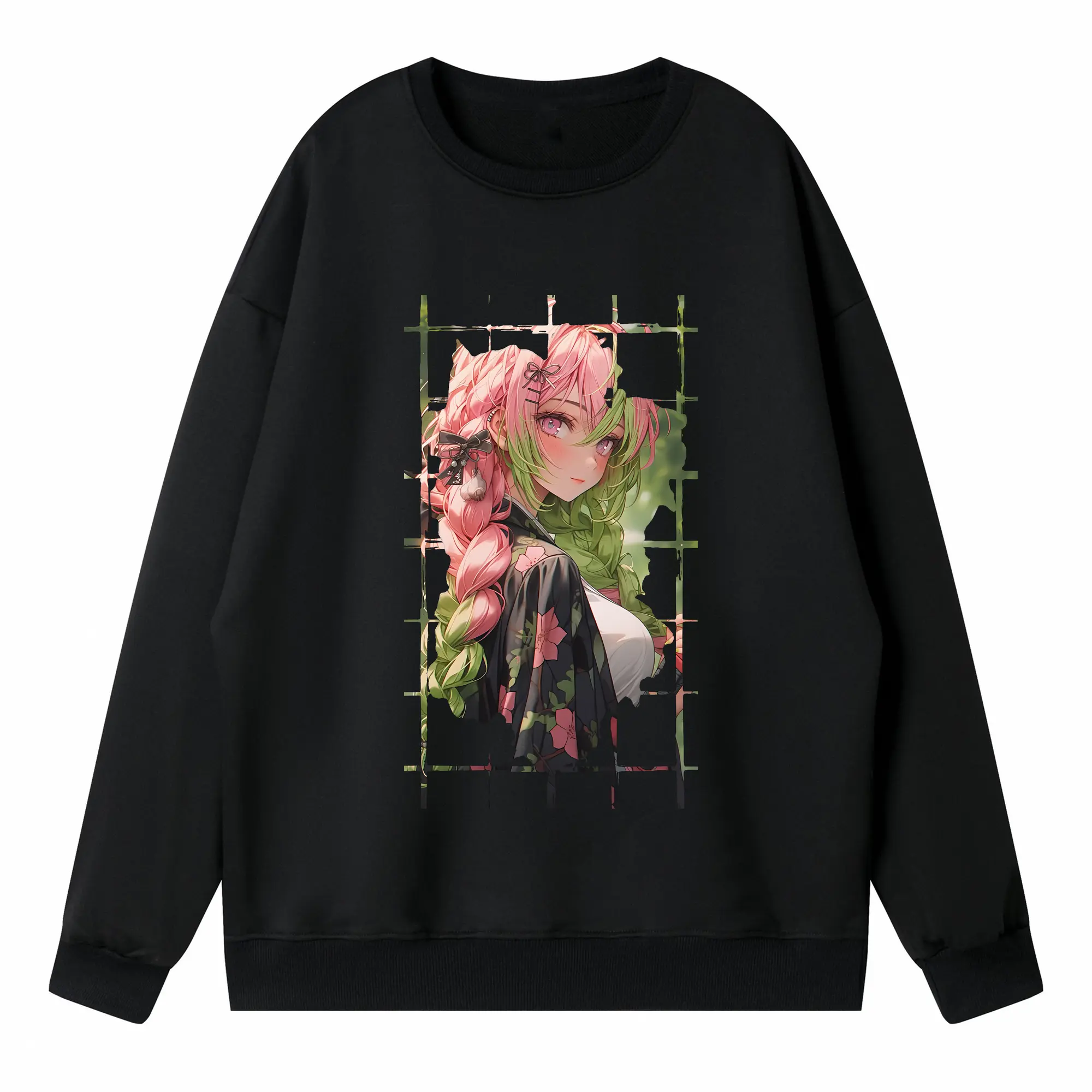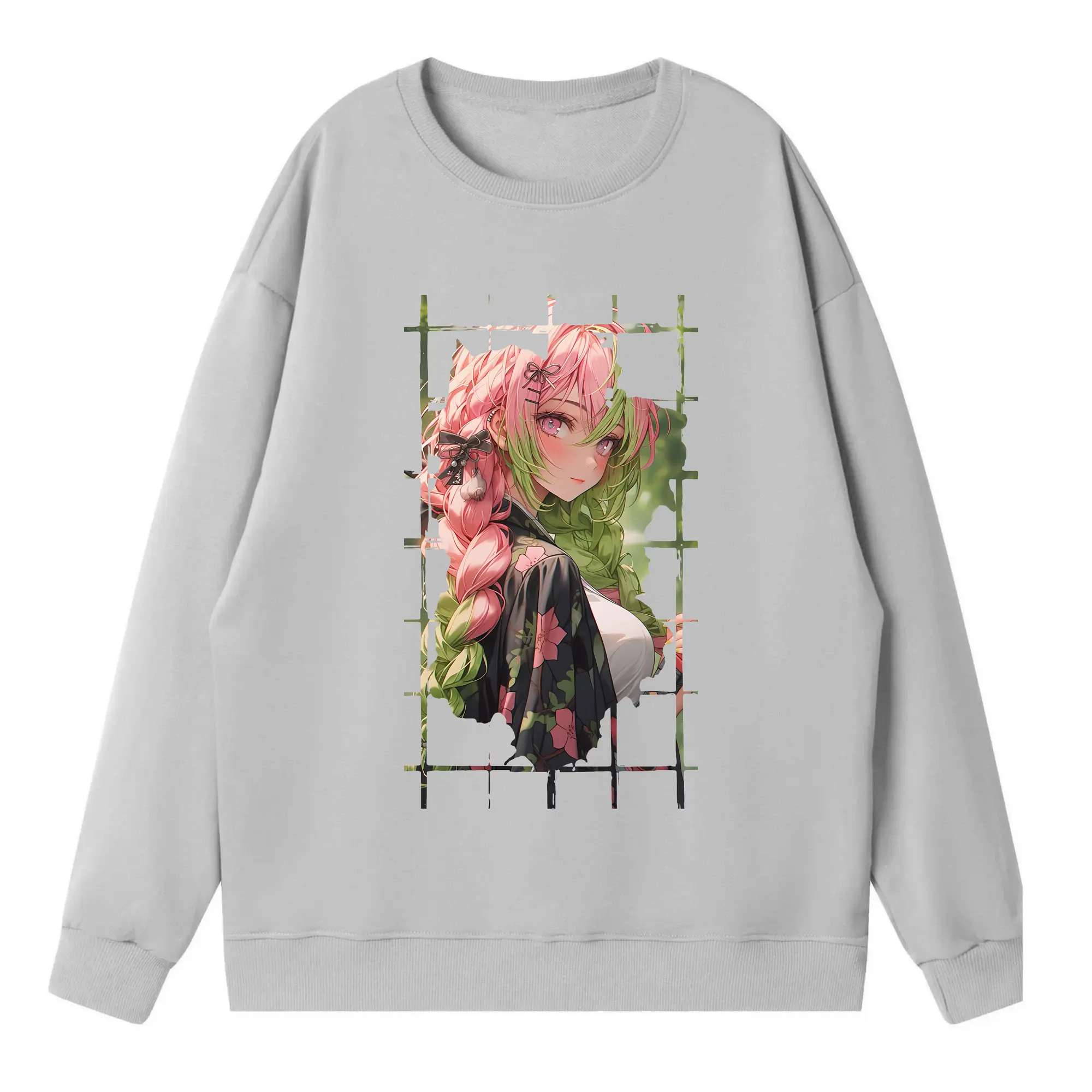 鬼滅の刃 グッズ,甘露寺 蜜璃 - 高品質 クルーネック スウェット ・ コットン59% ポリエステル41% ・ ユニセックス 長袖 トレーナー ・ カジュアル デイリー スポーツ 散歩用