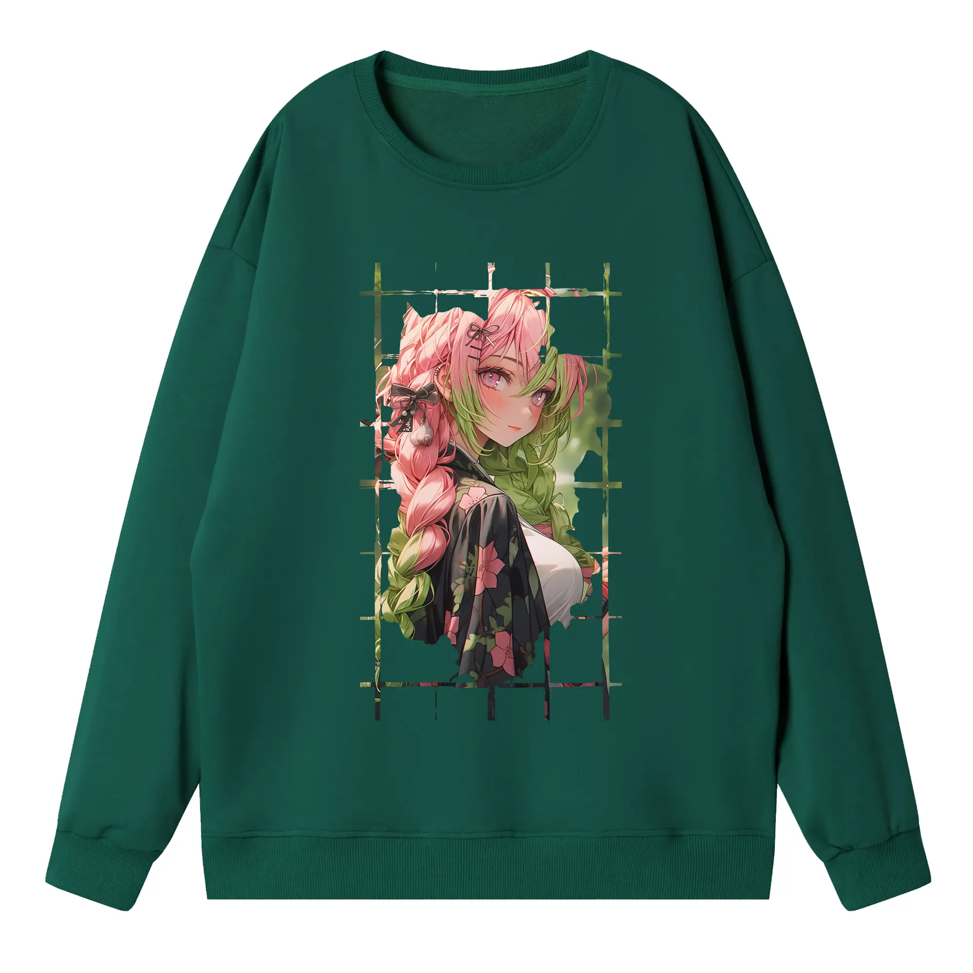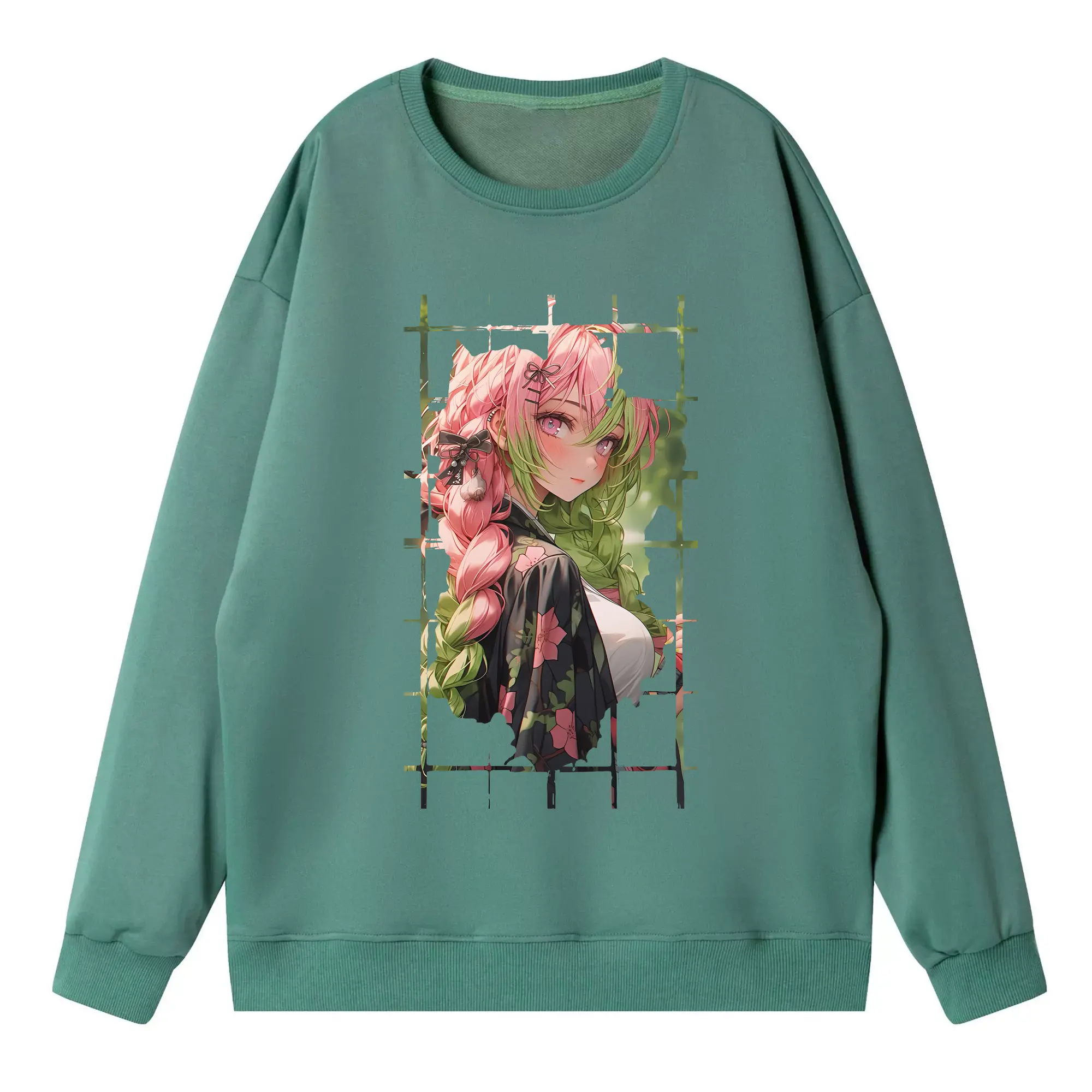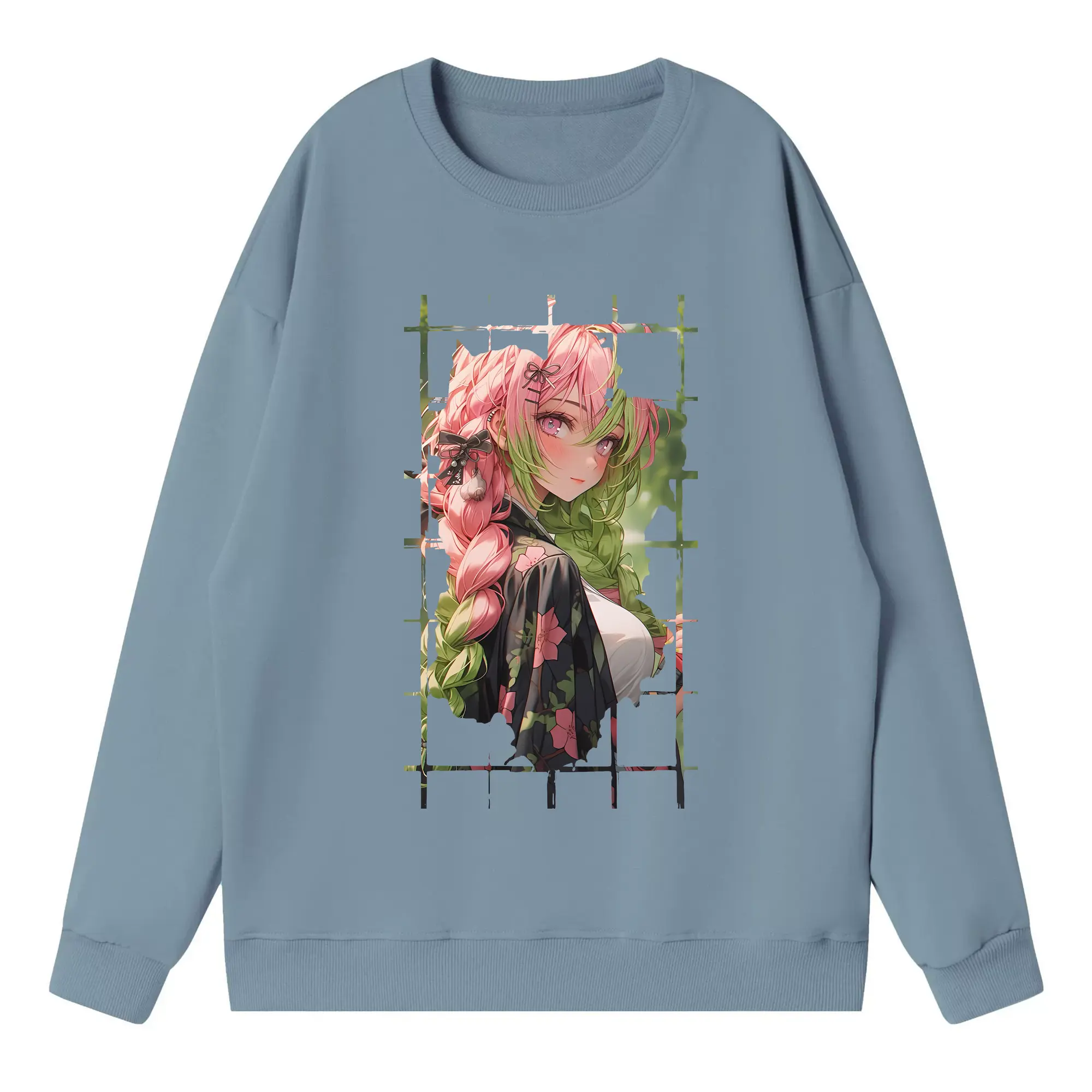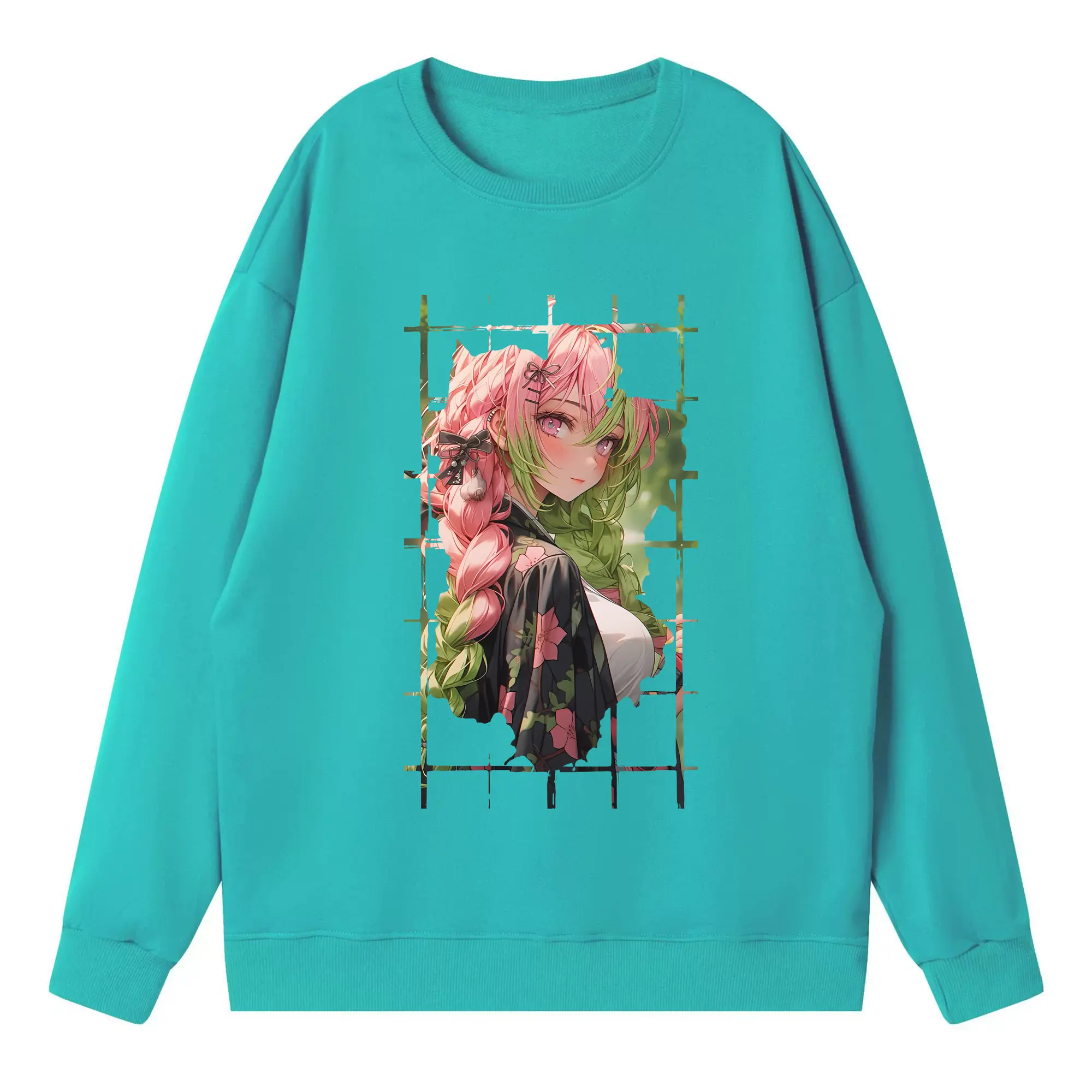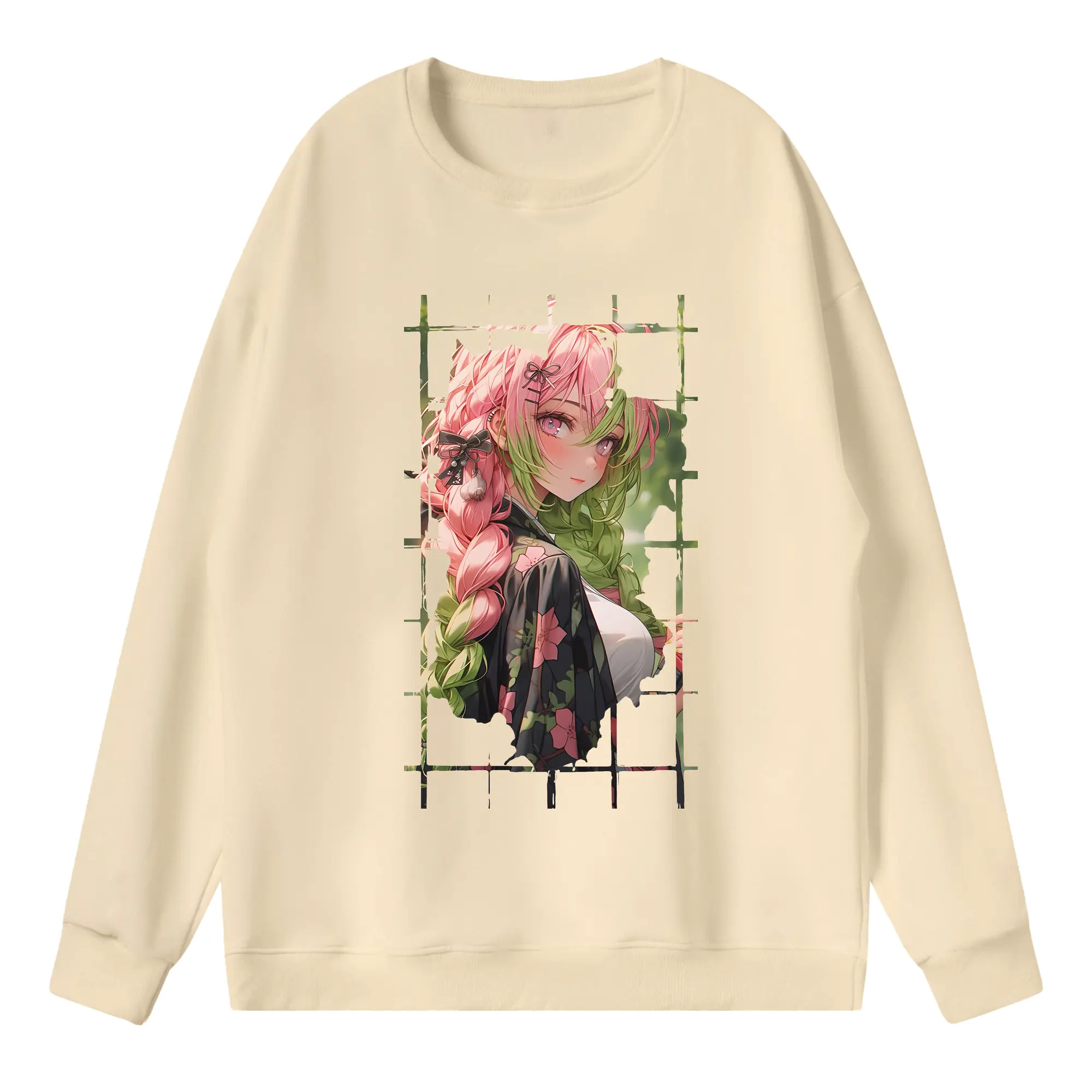 鬼滅の刃 グッズ,甘露寺 蜜璃 - 高品質 クルーネック スウェット ・ コットン59% ポリエステル41% ・ ユニセックス 長袖 トレーナー ・ カジュアル デイリー スポーツ 散歩用