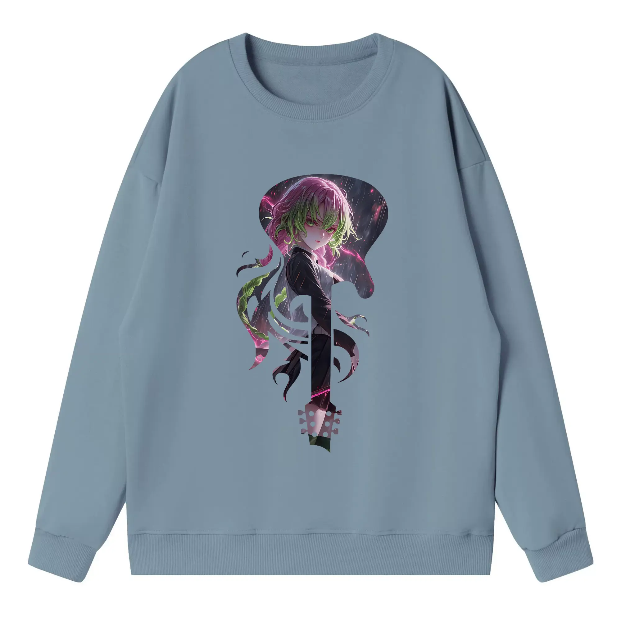 鬼滅の刃 グッズ,甘露寺 蜜璃 - 高品質 クルーネック スウェット ・ コットン59% ポリエステル41% ・ ユニセックス 長袖 トレーナー ・ カジュアル デイリー スポーツ 散歩用