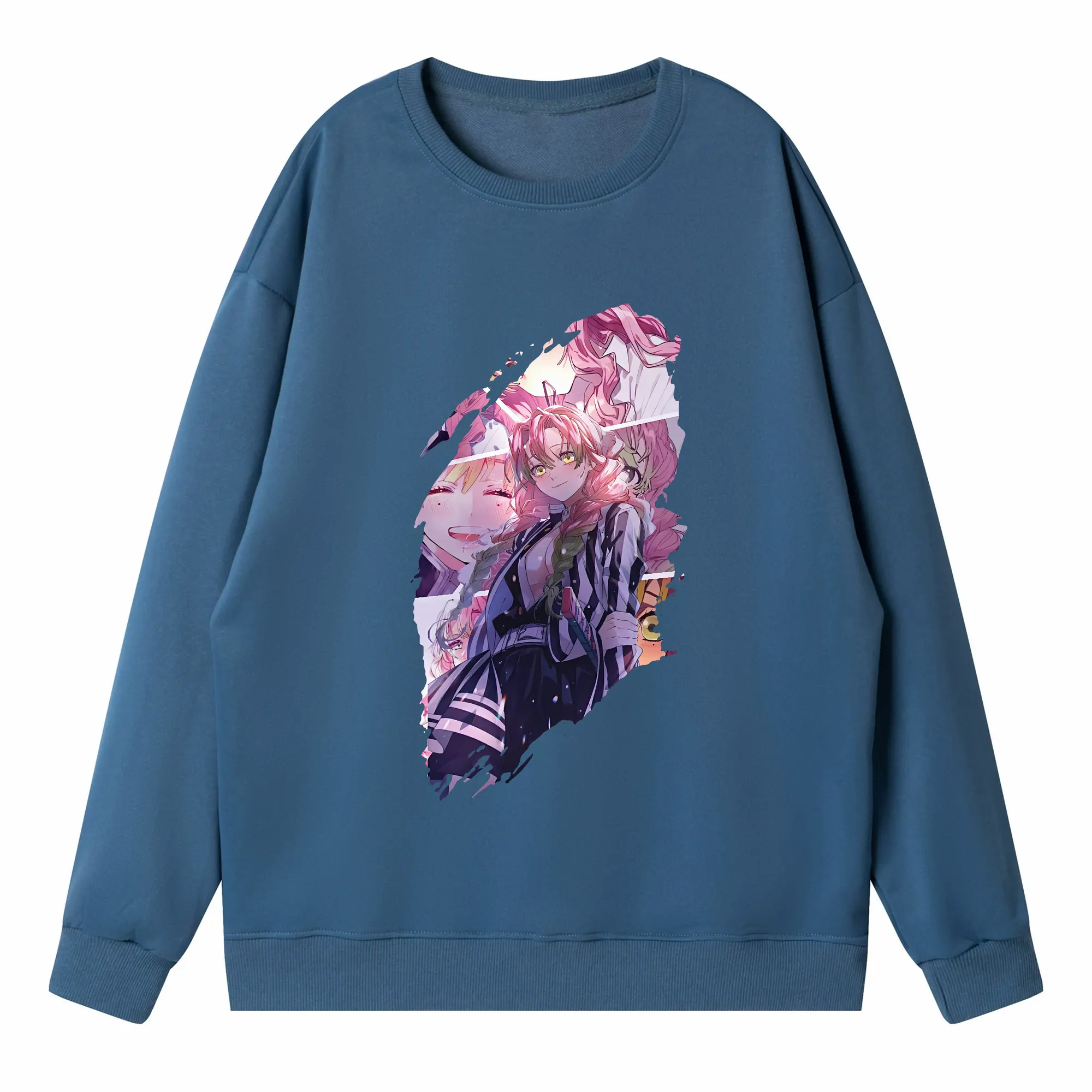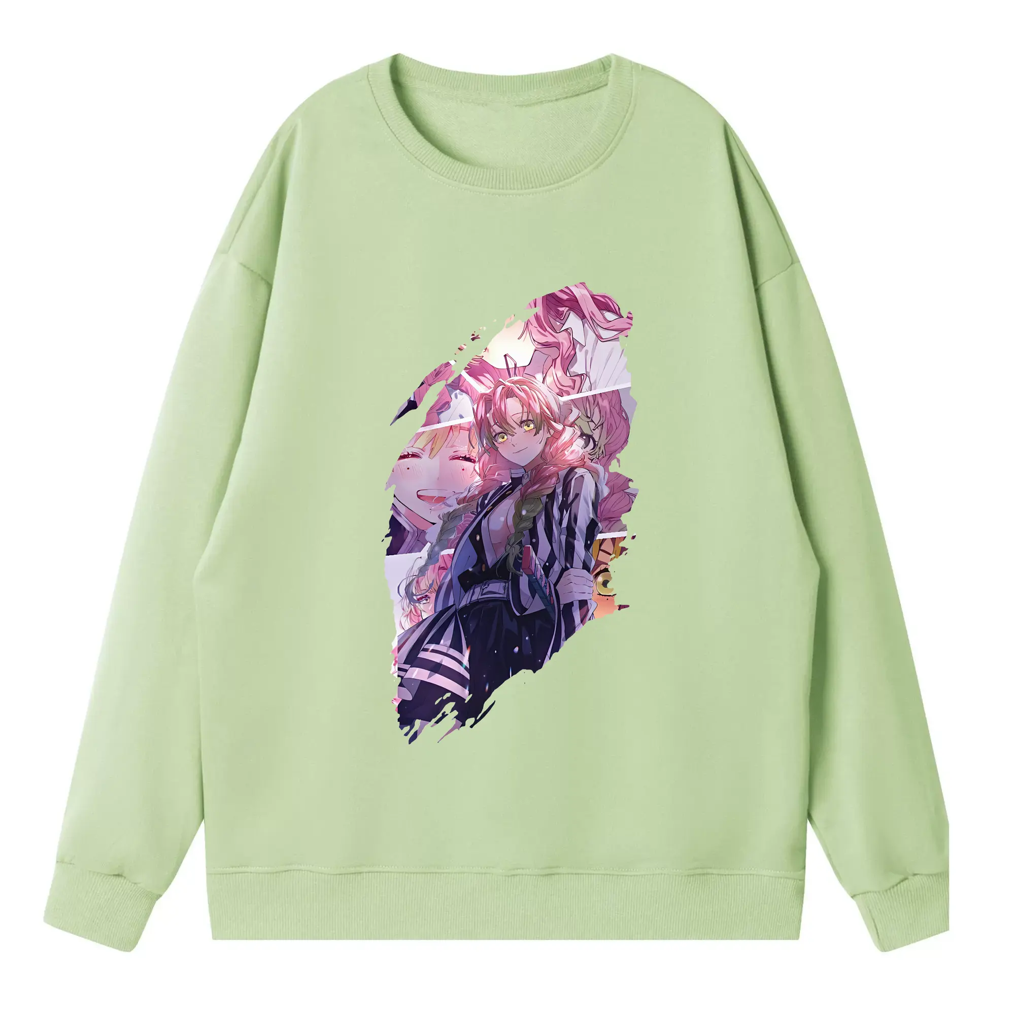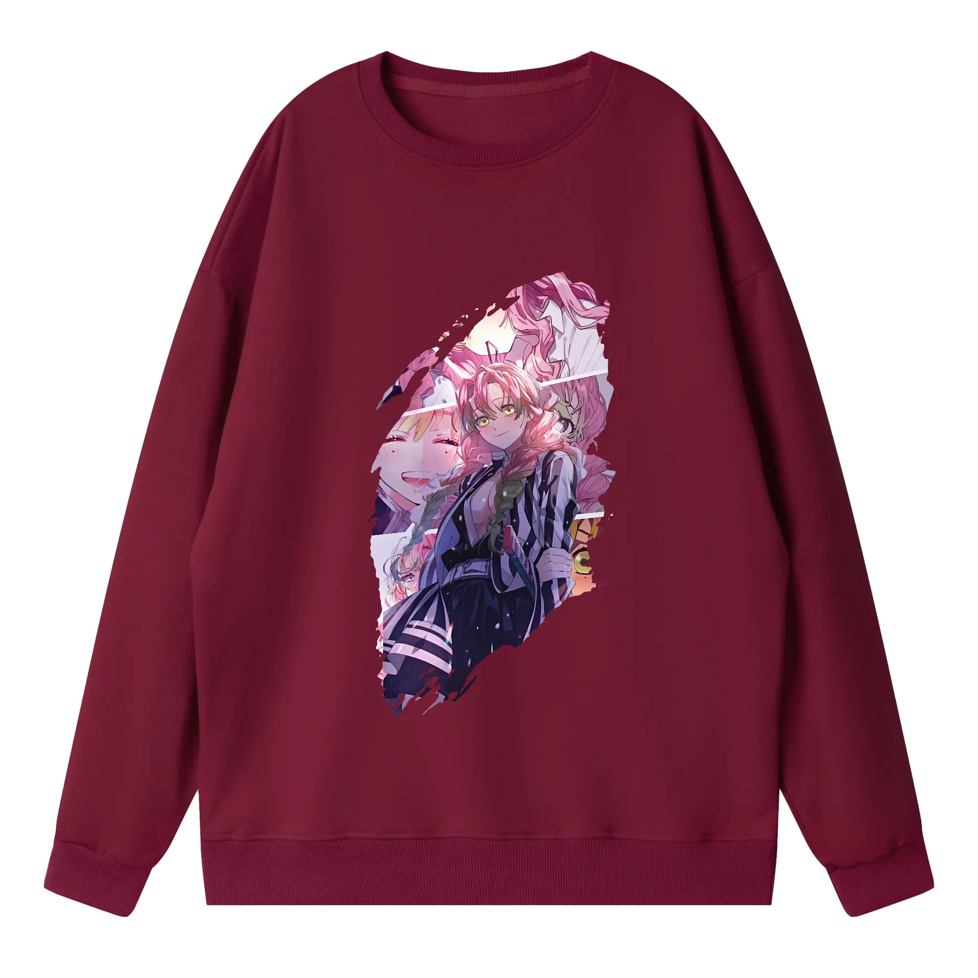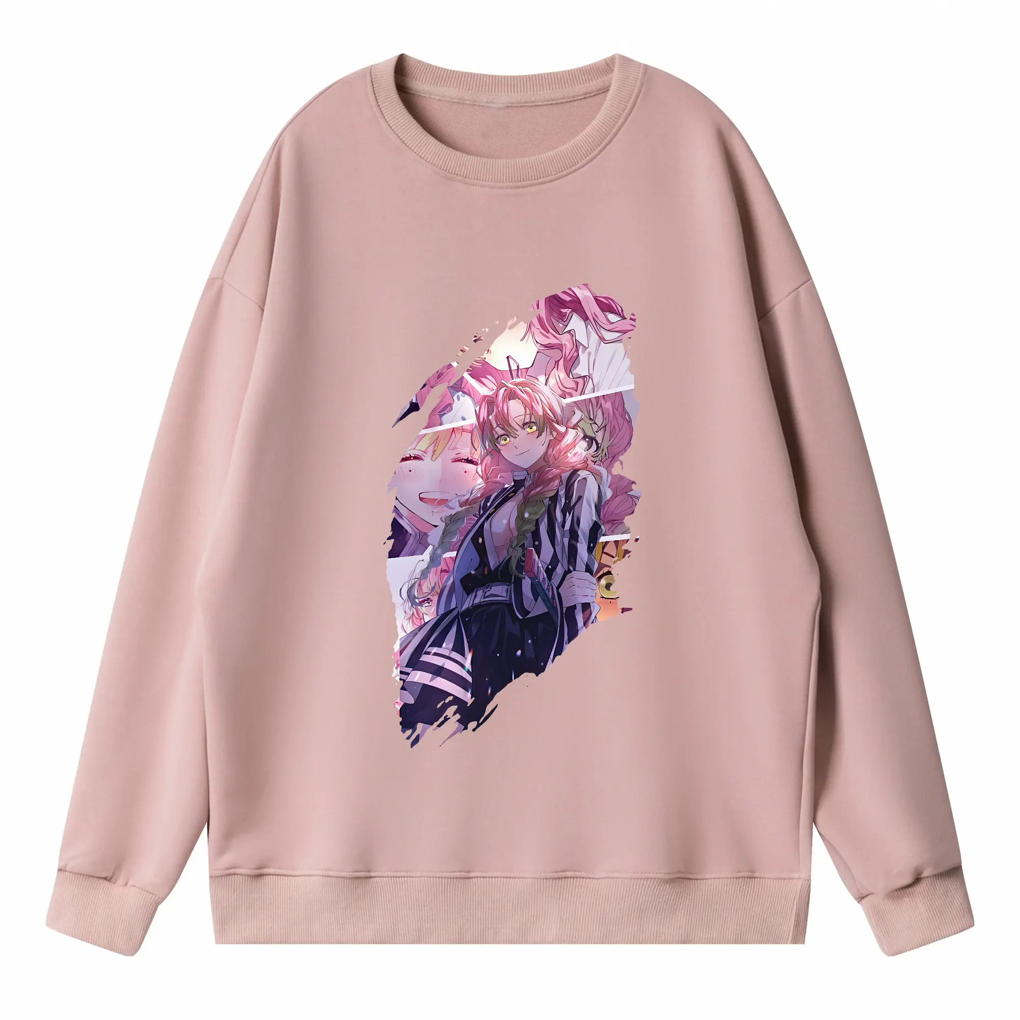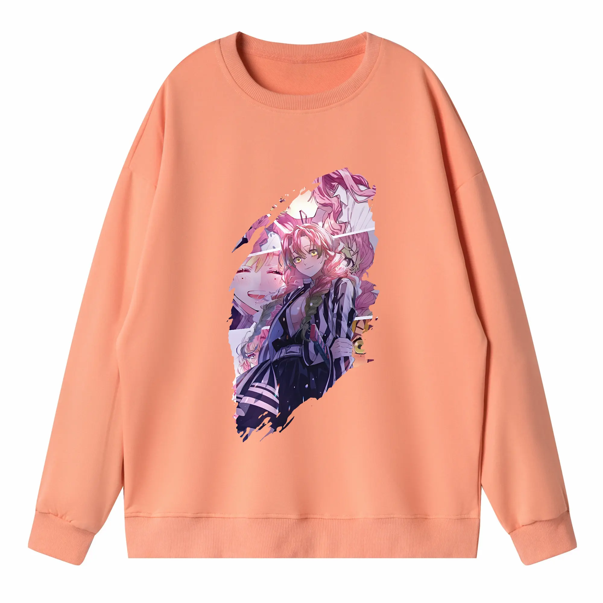 鬼滅の刃 グッズ,甘露寺 蜜璃 - 高品質 クルーネック スウェット ・ コットン59% ポリエステル41% ・ ユニセックス 長袖 トレーナー ・ カジュアル デイリー スポーツ 散歩用