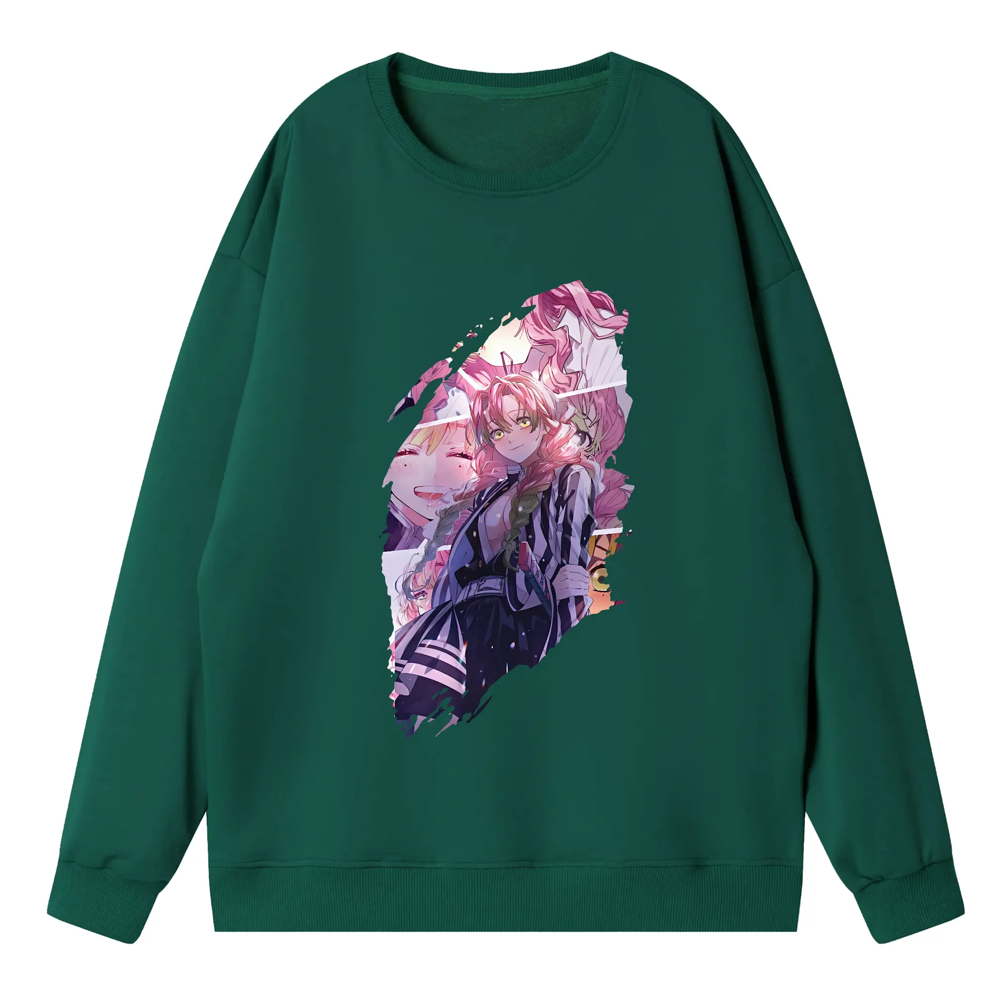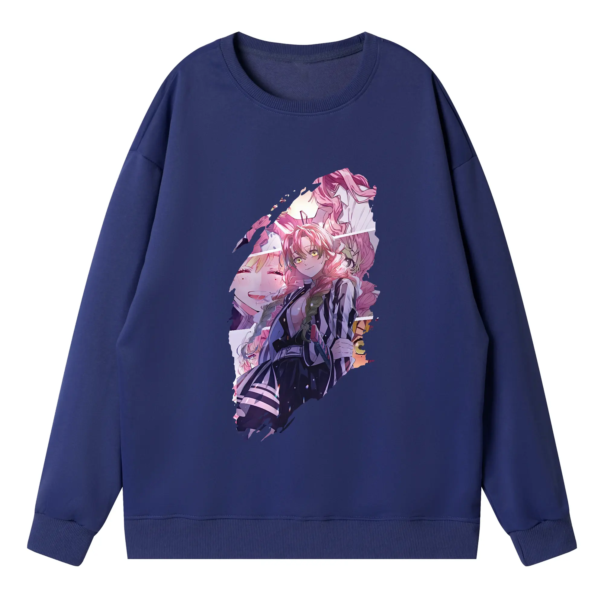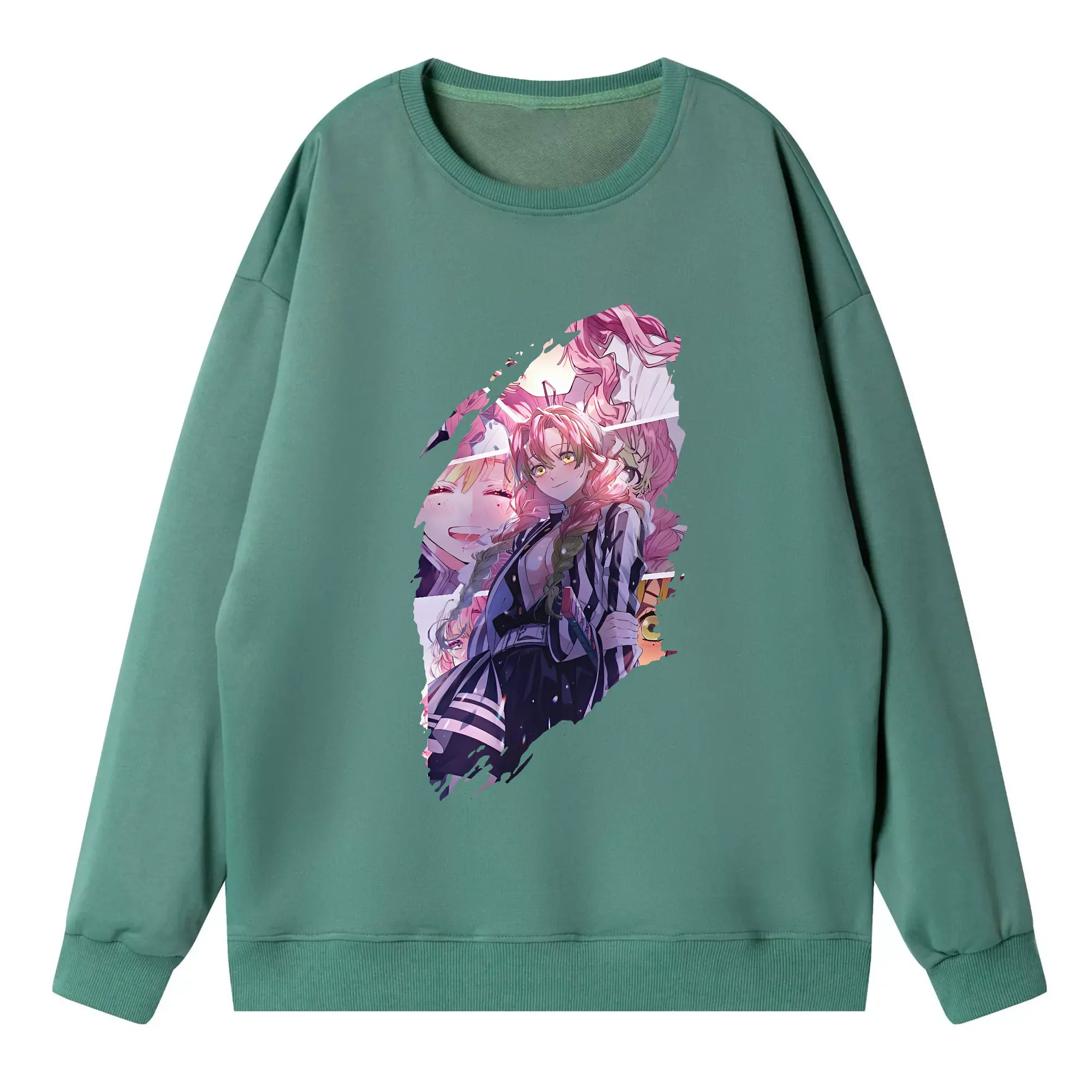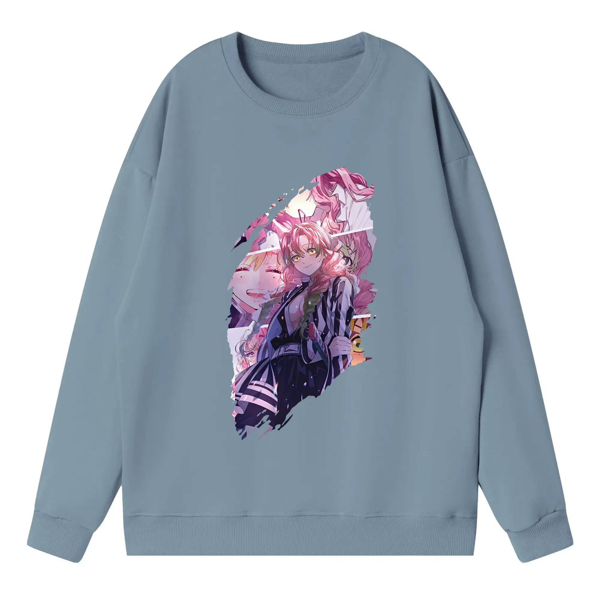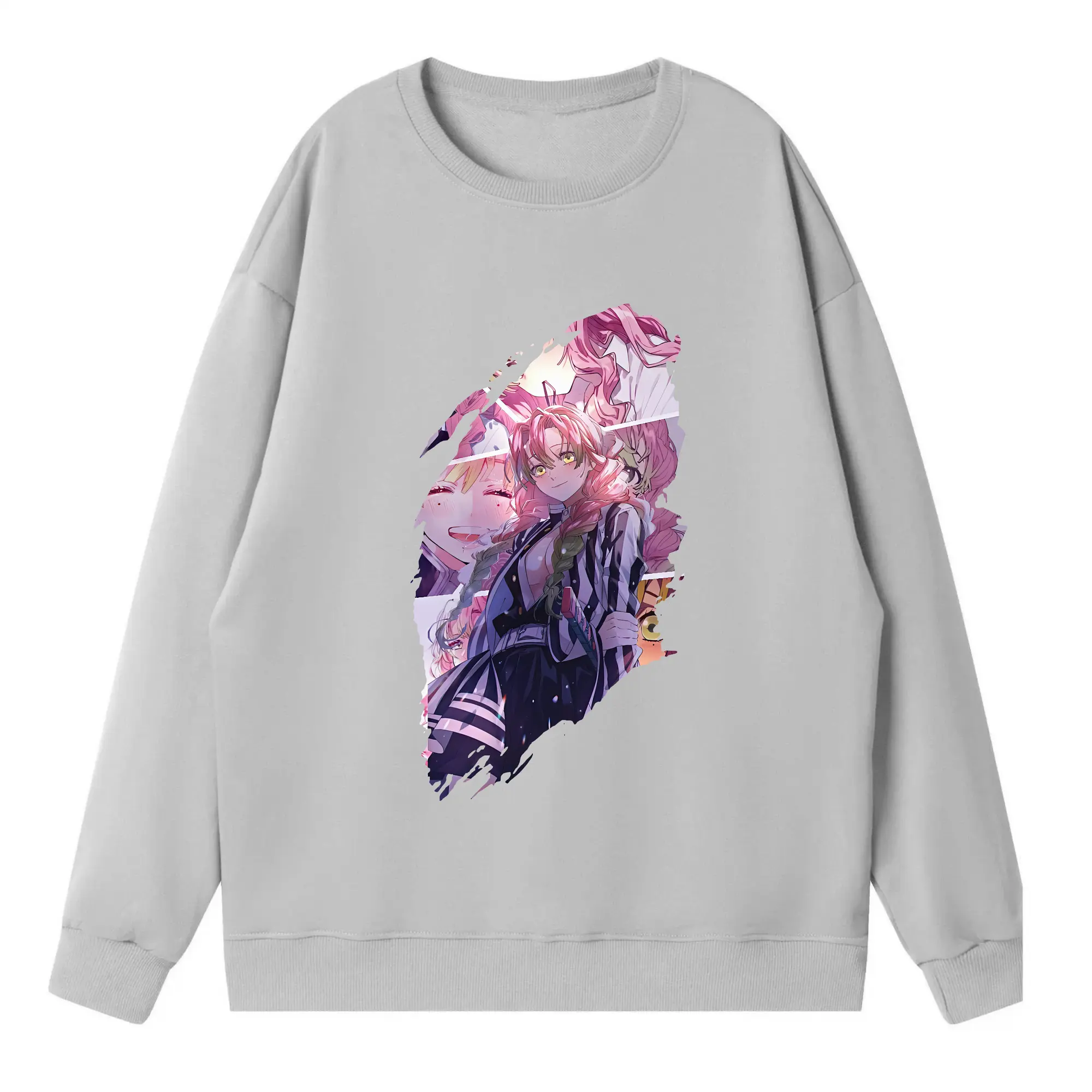 鬼滅の刃 グッズ,甘露寺 蜜璃 - 高品質 クルーネック スウェット ・ コットン59% ポリエステル41% ・ ユニセックス 長袖 トレーナー ・ カジュアル デイリー スポーツ 散歩用