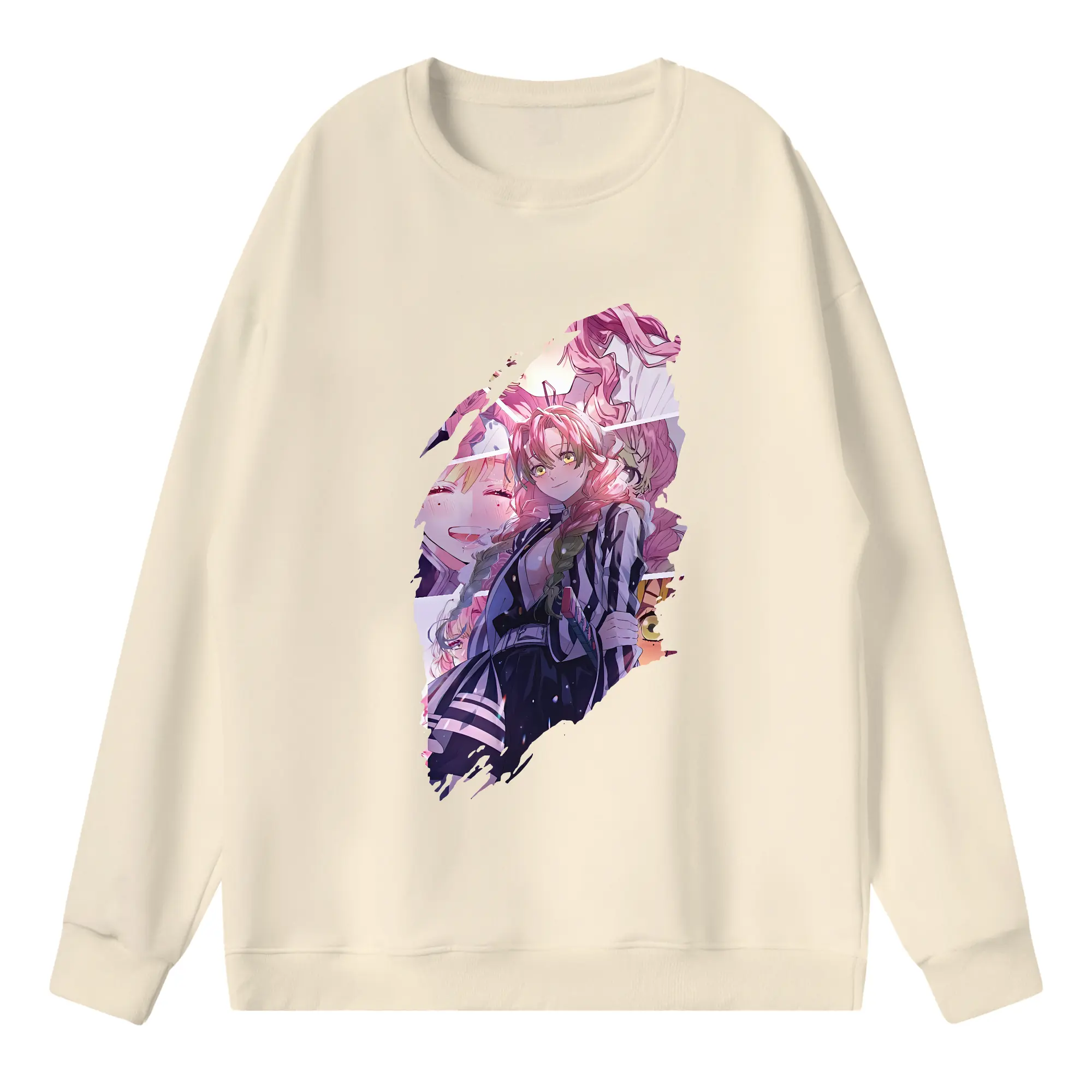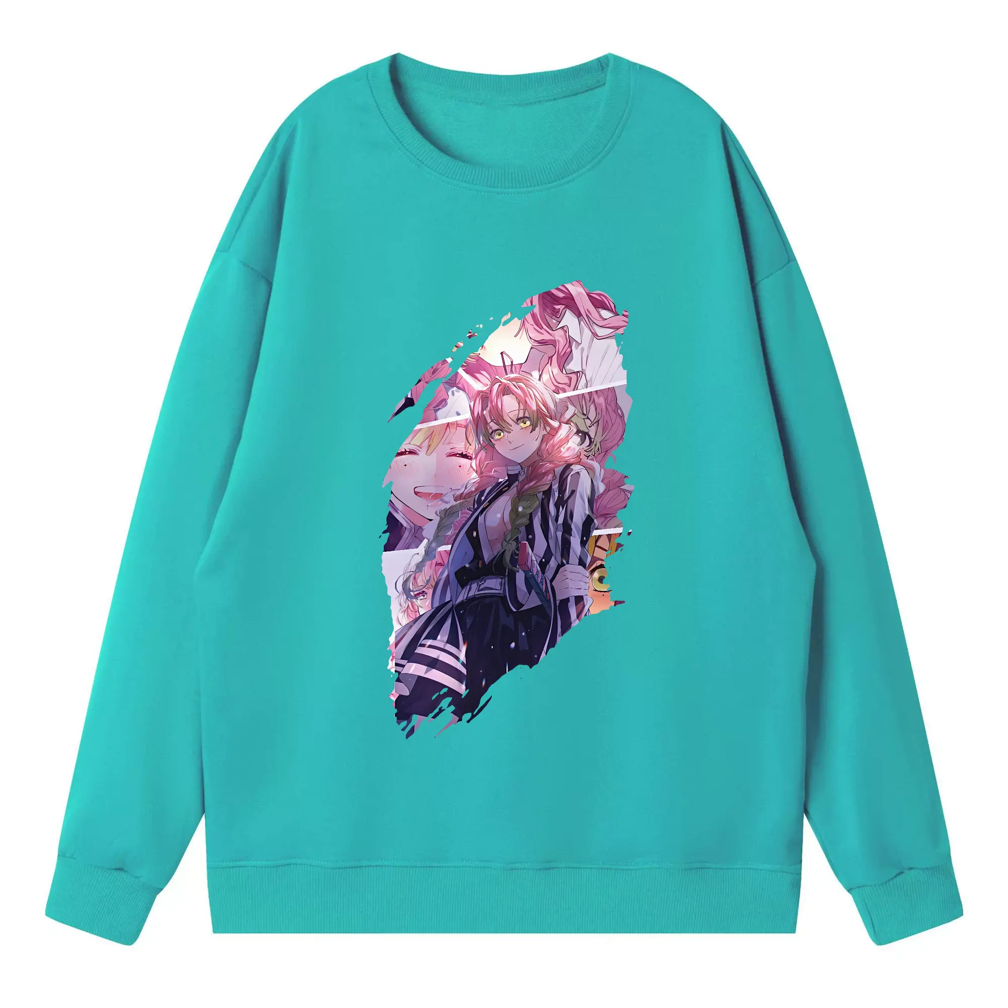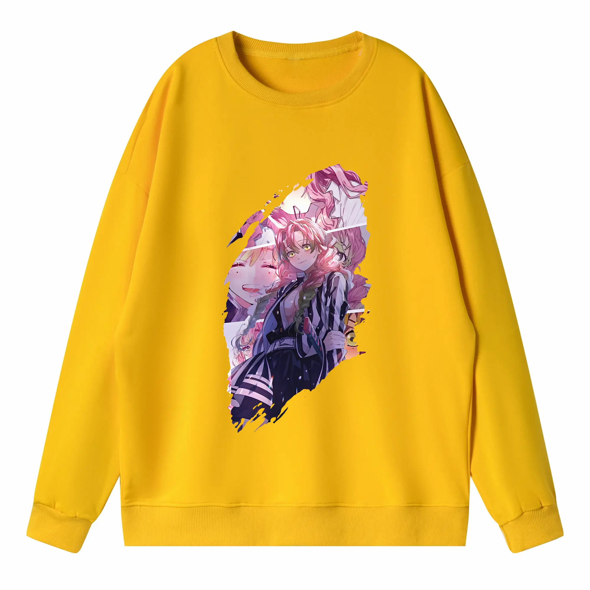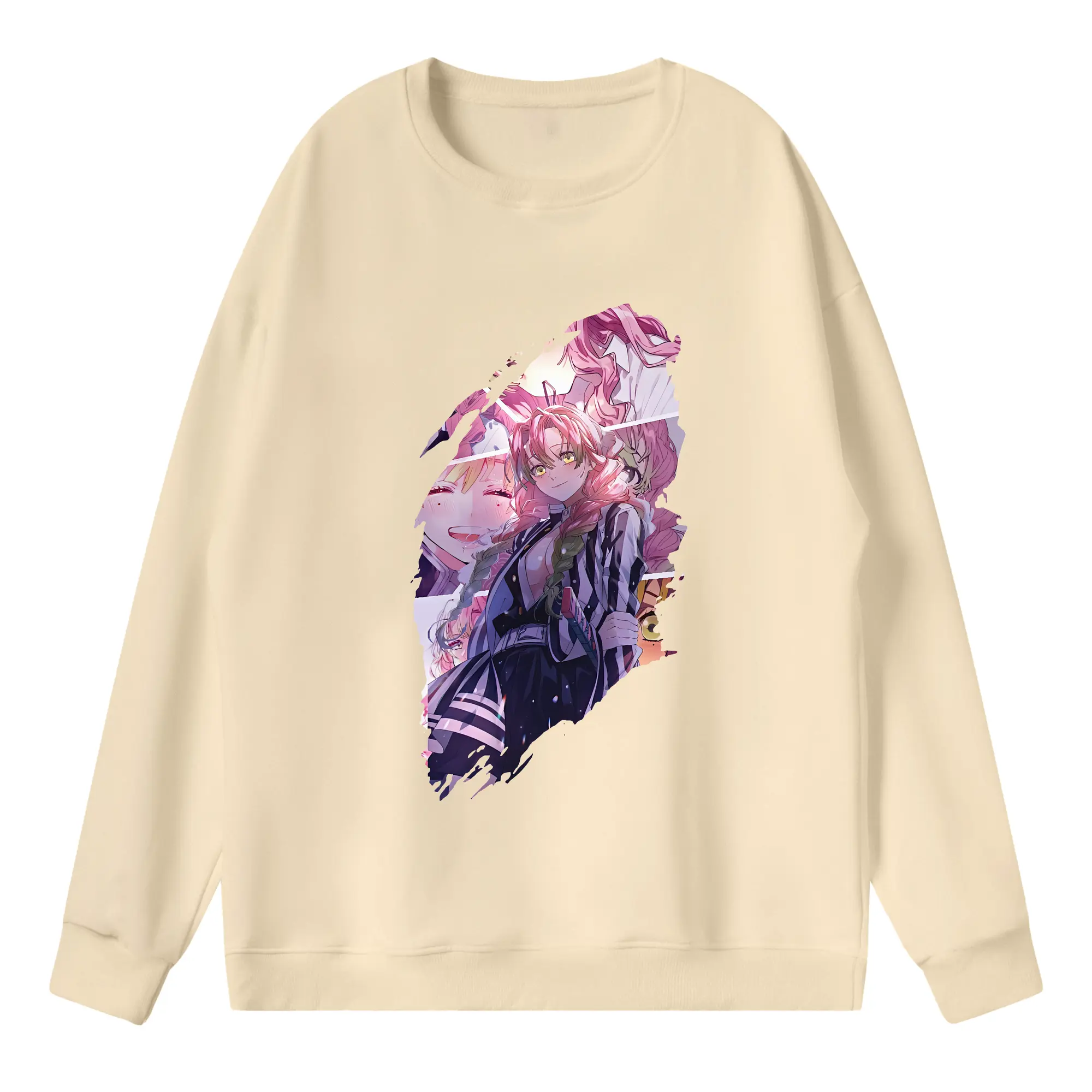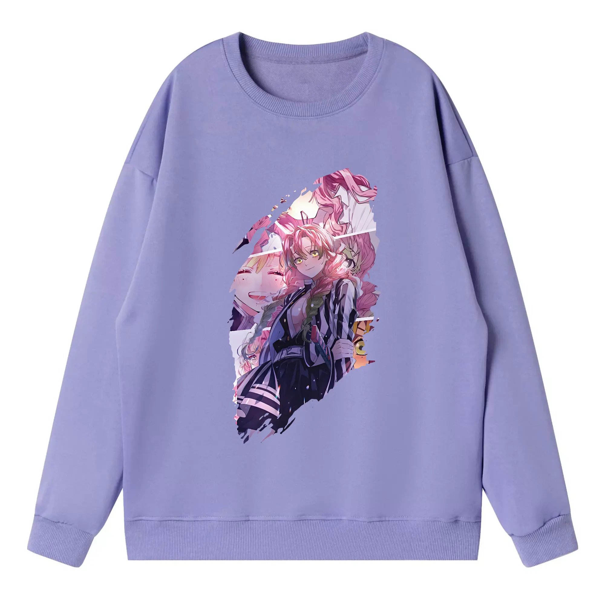 鬼滅の刃 グッズ,甘露寺 蜜璃 - 高品質 クルーネック スウェット ・ コットン59% ポリエステル41% ・ ユニセックス 長袖 トレーナー ・ カジュアル デイリー スポーツ 散歩用