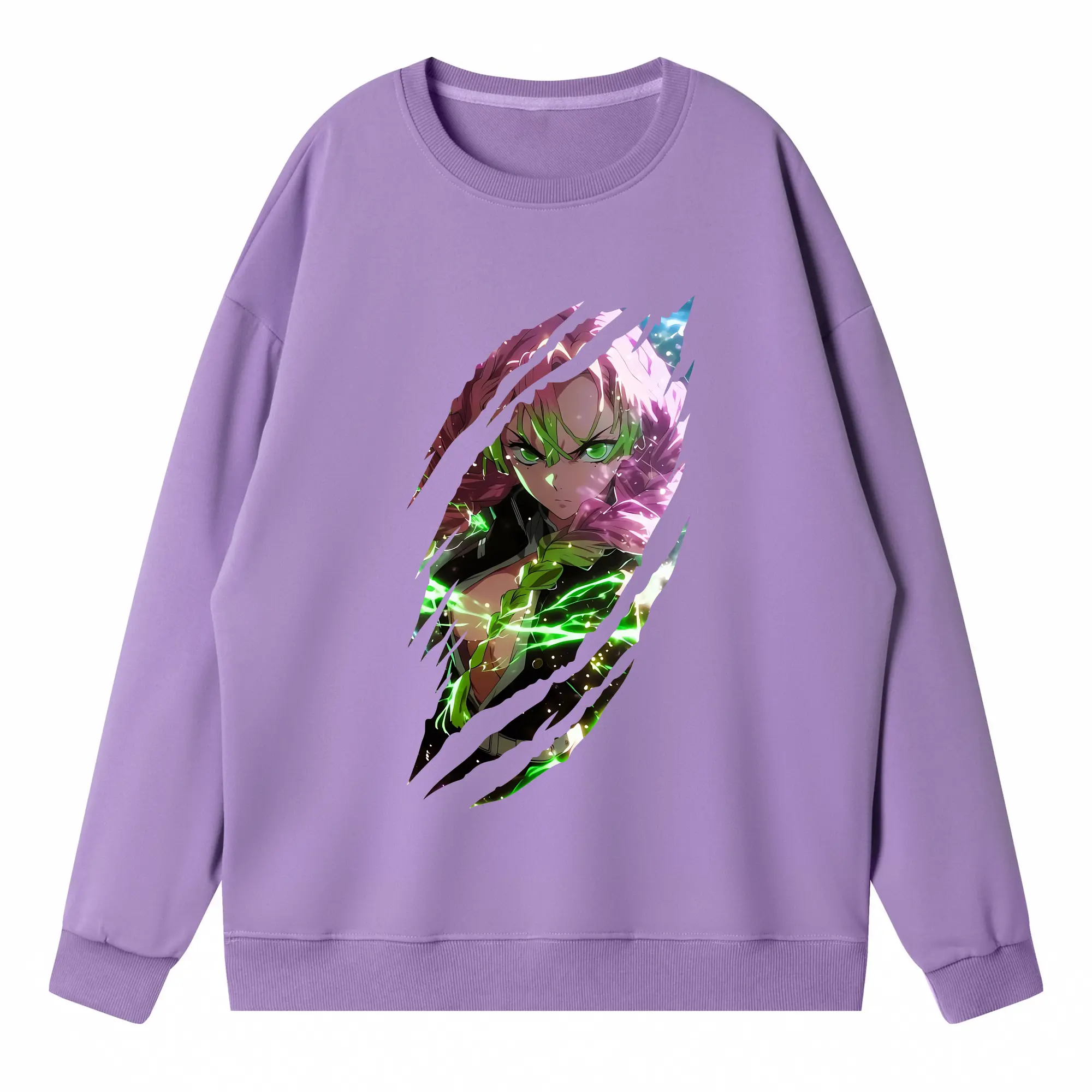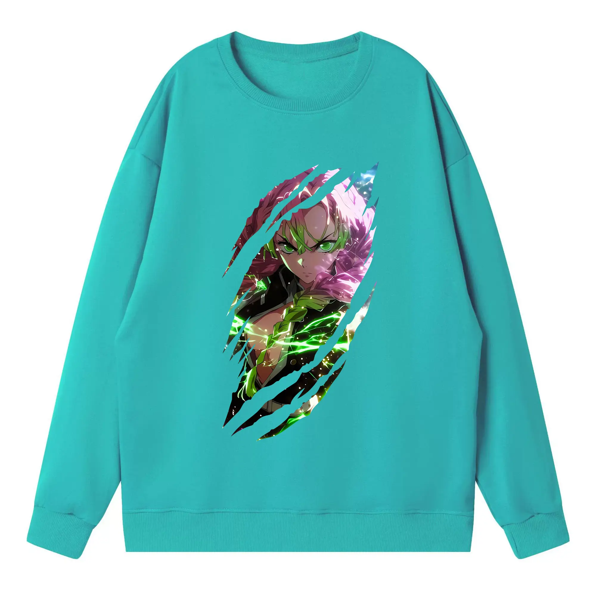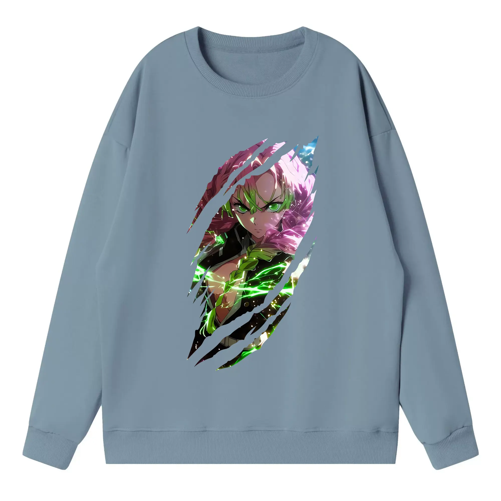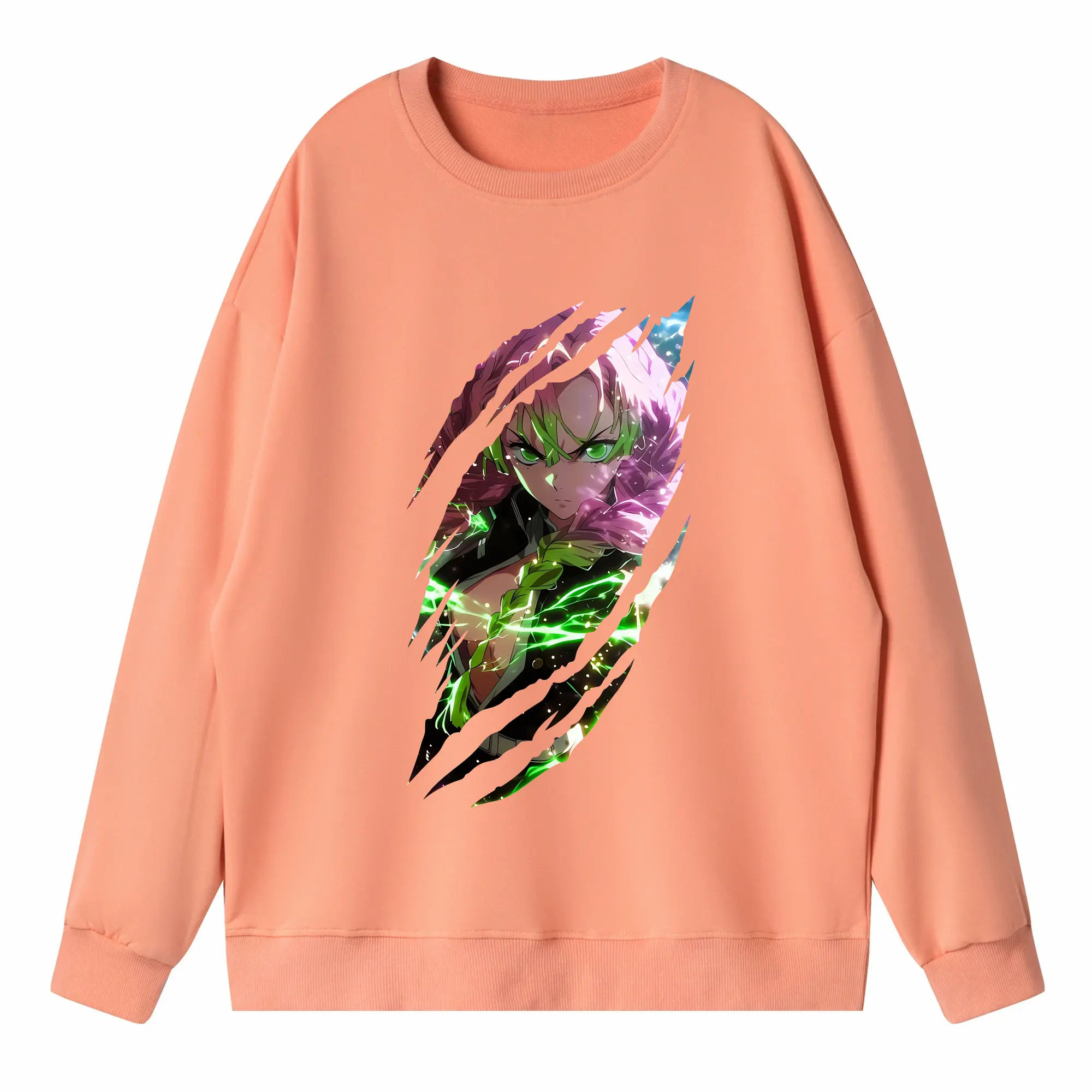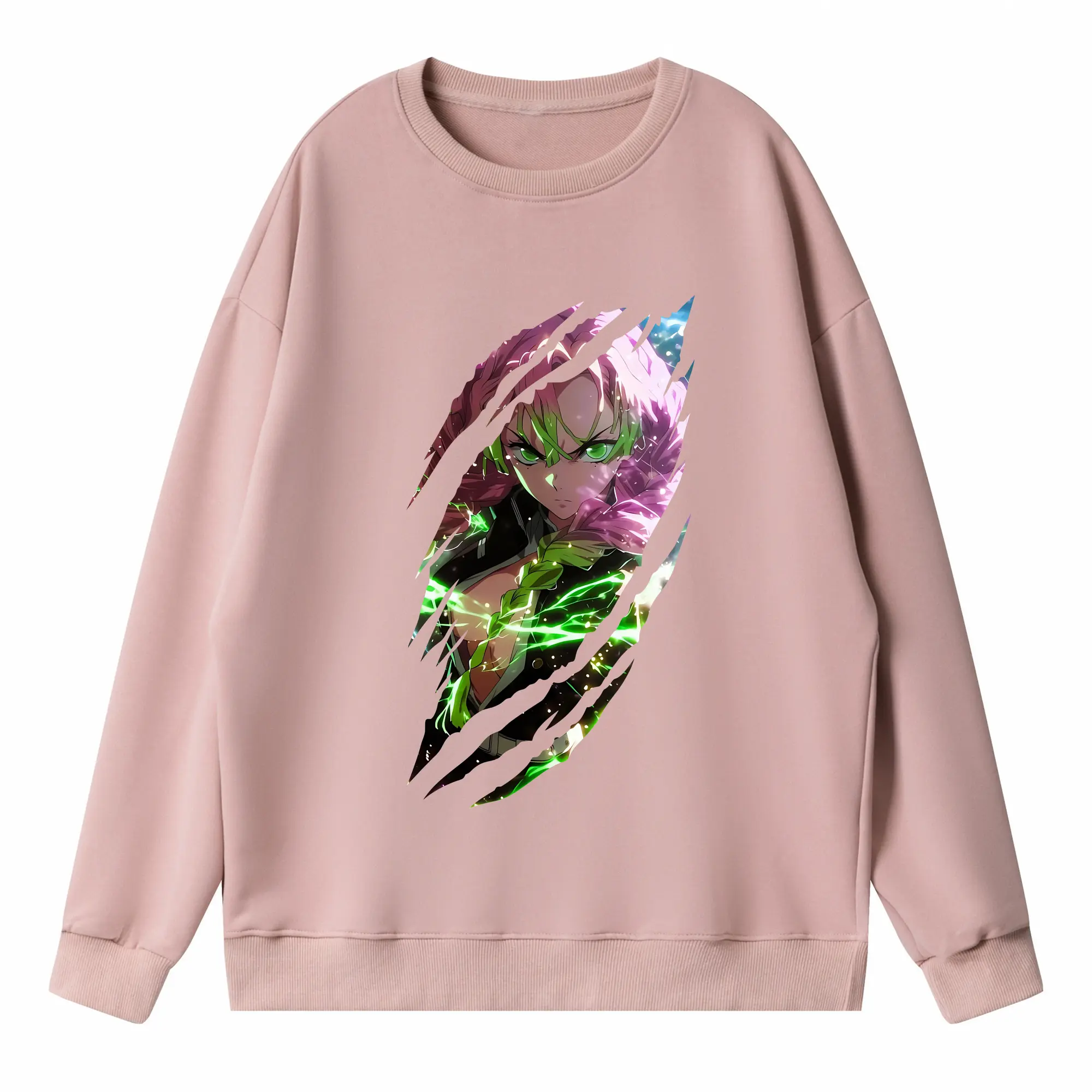 鬼滅の刃 グッズ,甘露寺 蜜璃 - 高品質 クルーネック スウェット ・ コットン59% ポリエステル41% ・ ユニセックス 長袖 トレーナー ・ カジュアル デイリー スポーツ 散歩用
