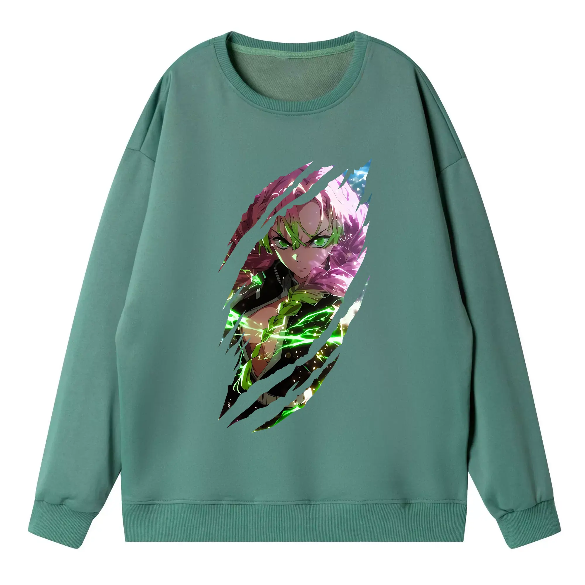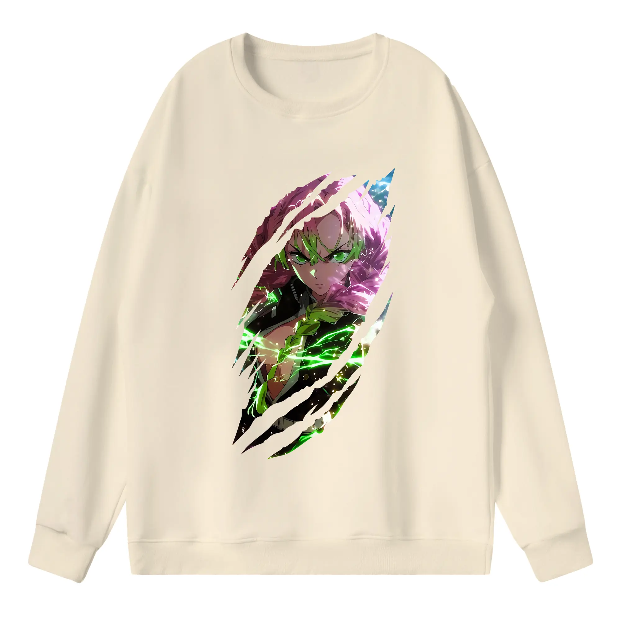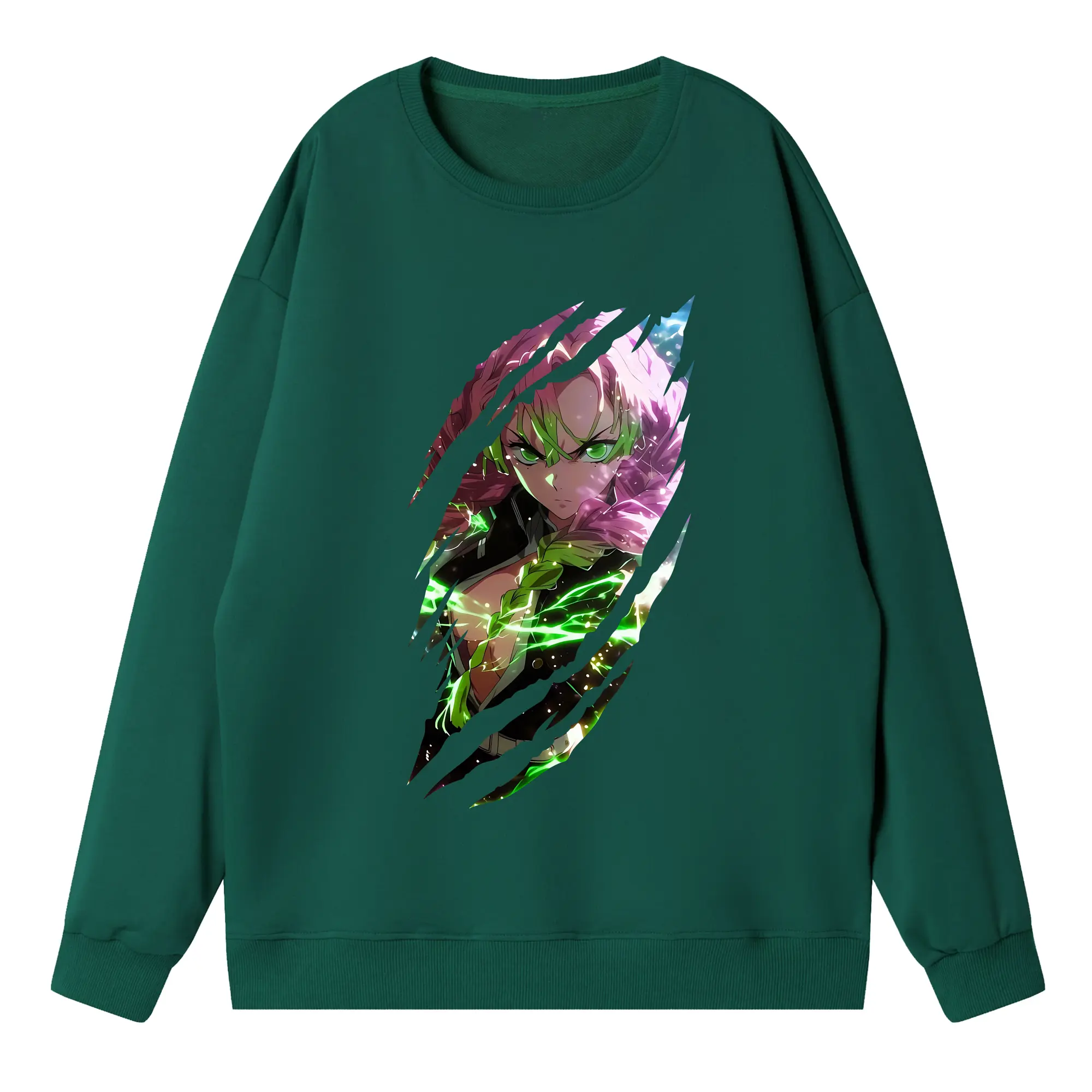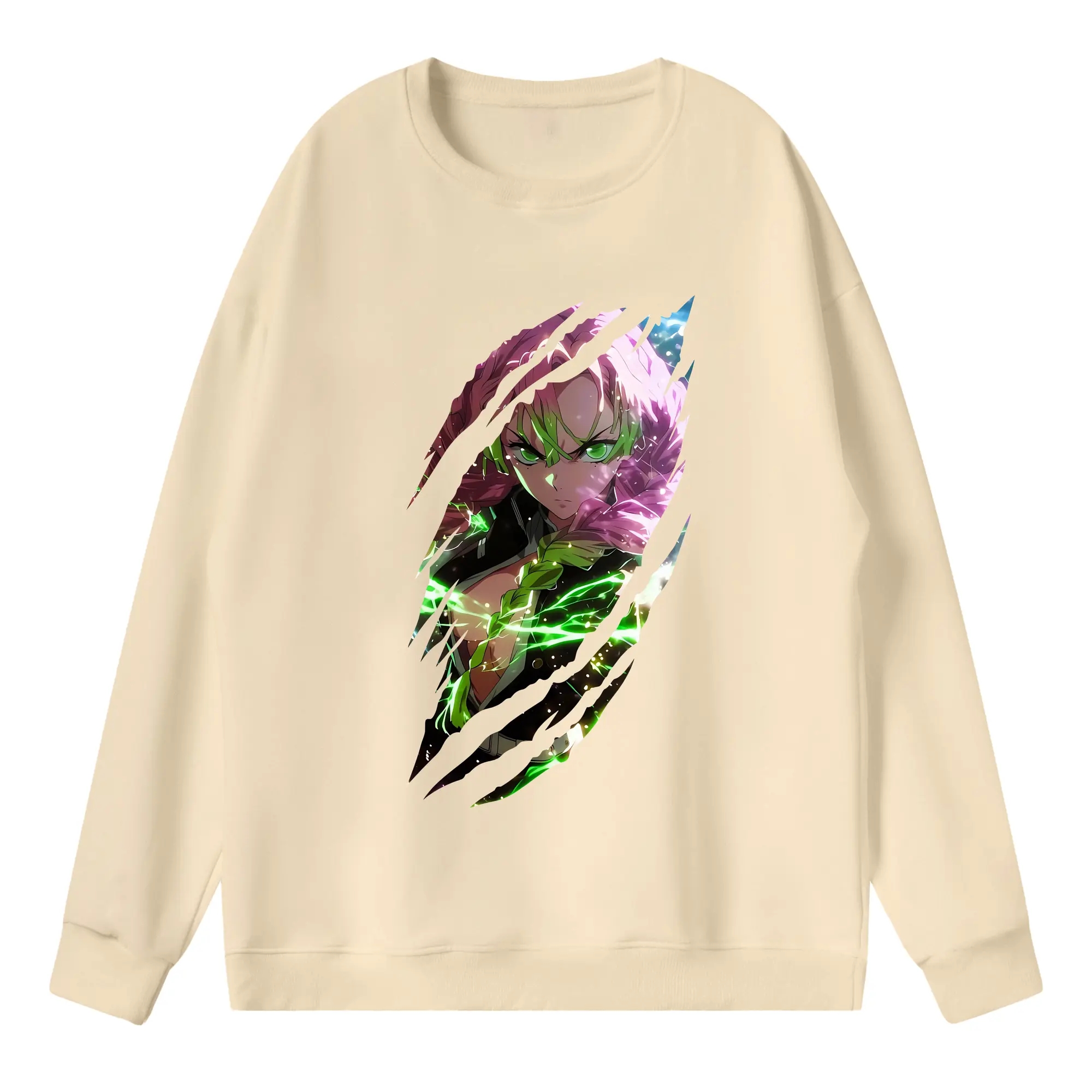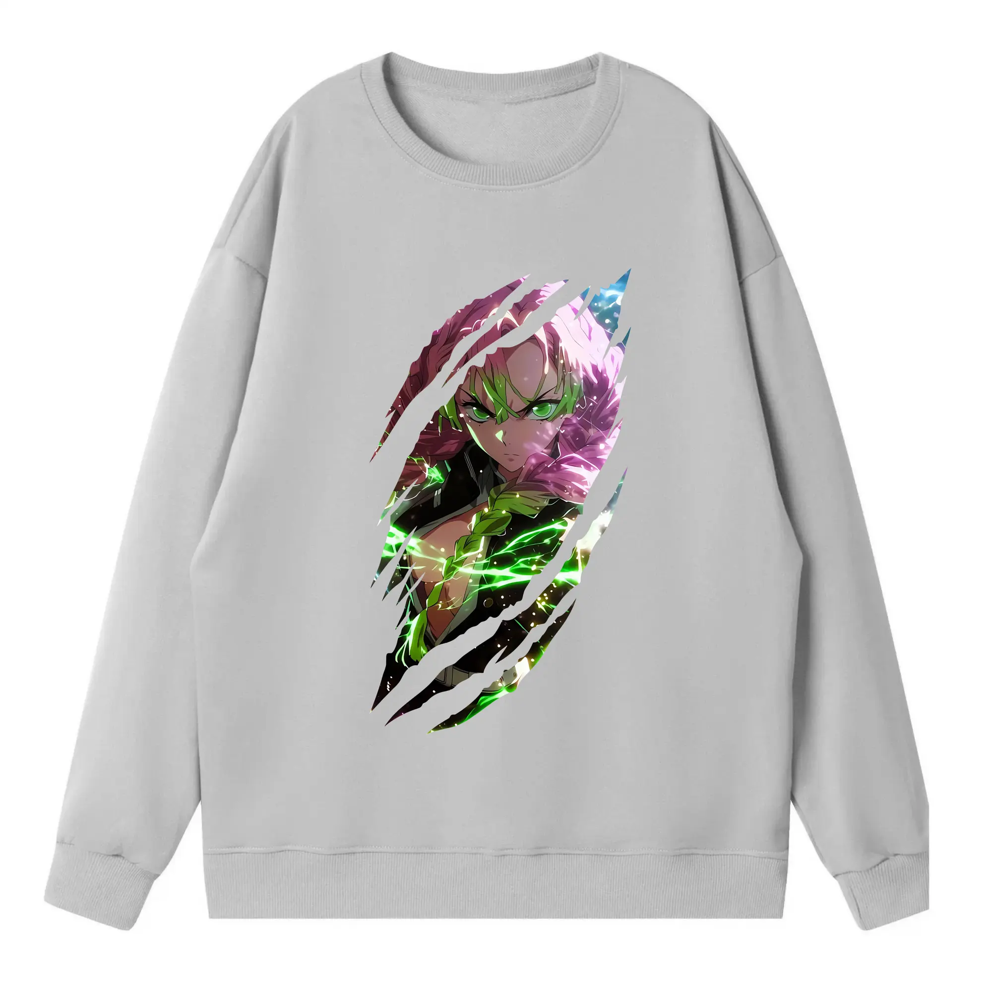 鬼滅の刃 グッズ,甘露寺 蜜璃 - 高品質 クルーネック スウェット ・ コットン59% ポリエステル41% ・ ユニセックス 長袖 トレーナー ・ カジュアル デイリー スポーツ 散歩用