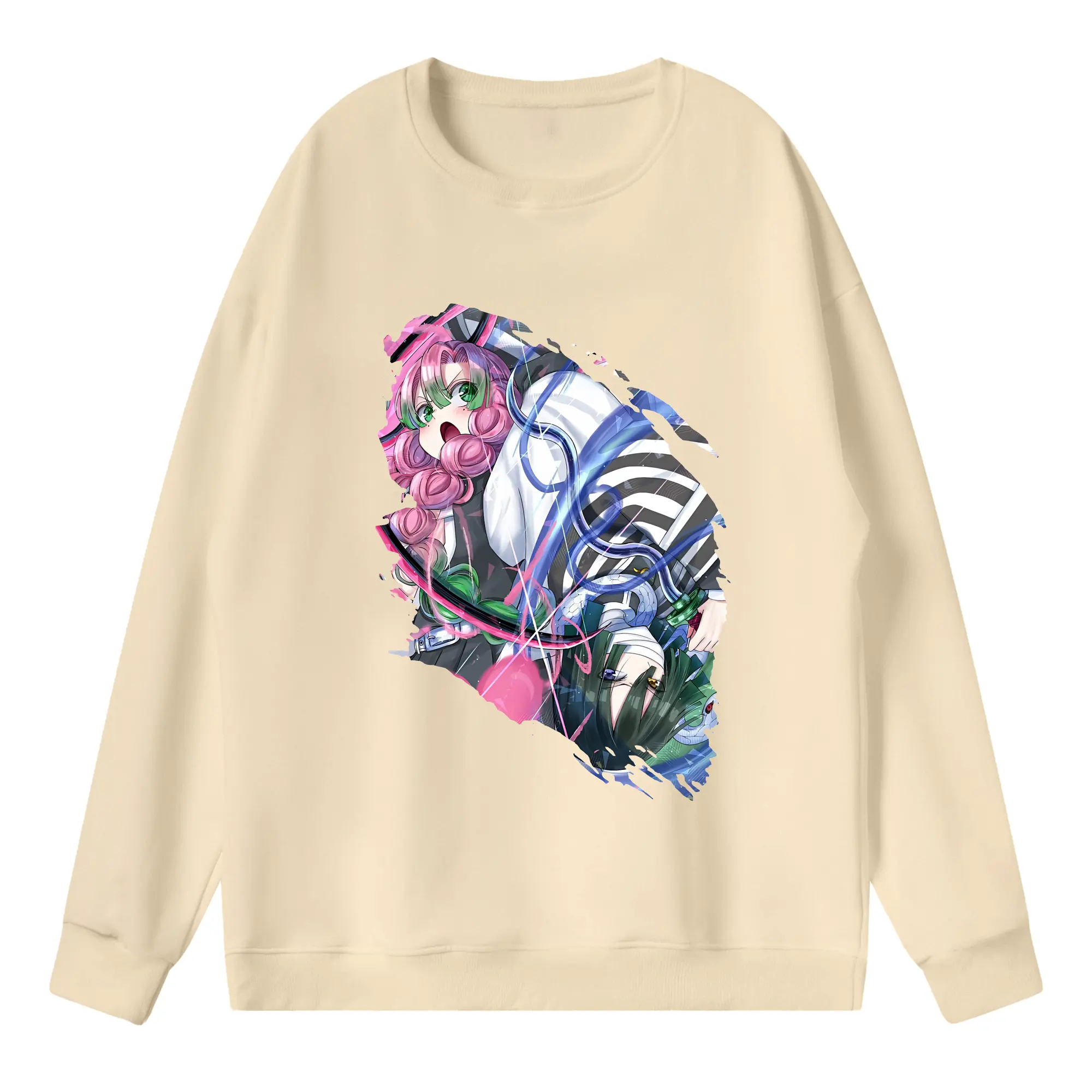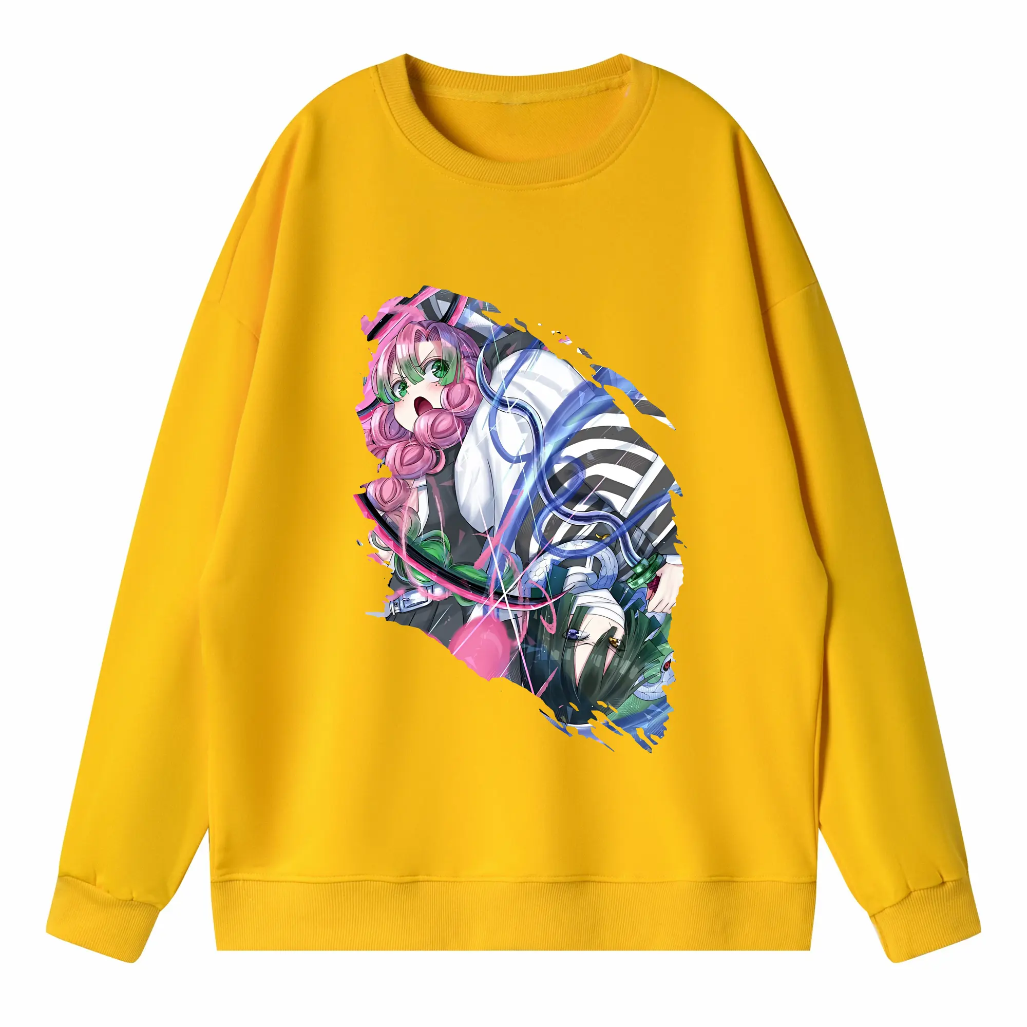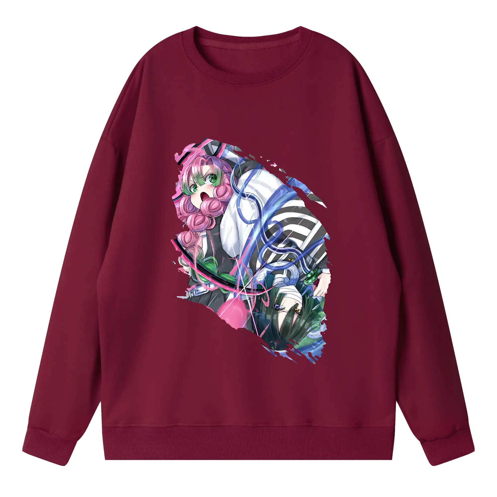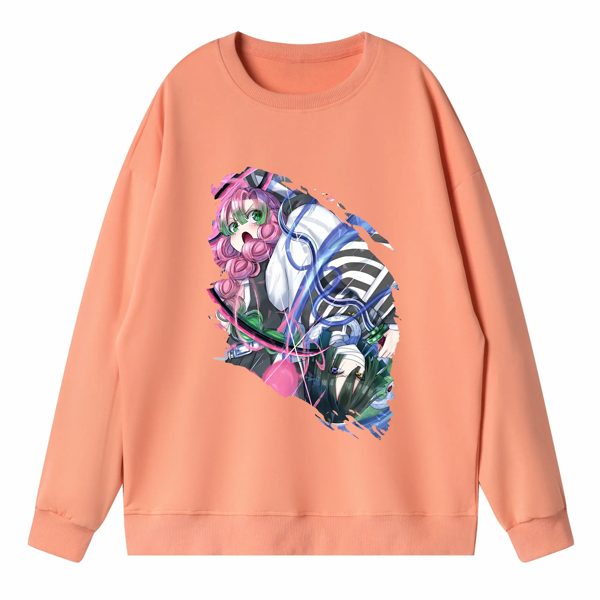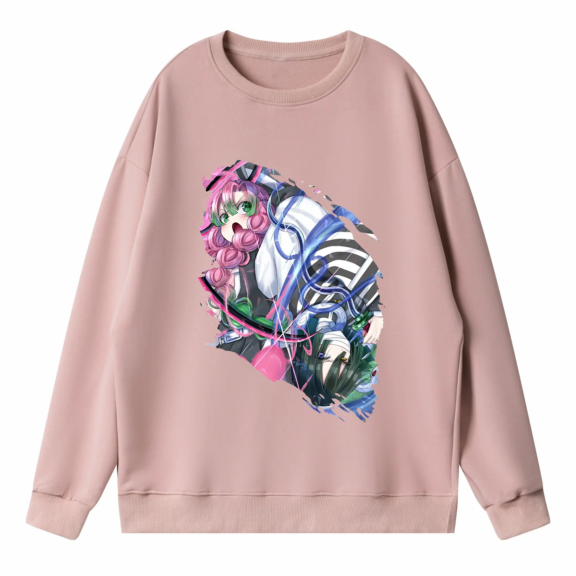 鬼滅の刃 グッズ,甘露寺 蜜璃 - 高品質 クルーネック スウェット ・ コットン59% ポリエステル41% ・ ユニセックス 長袖 トレーナー ・ カジュアル デイリー スポーツ 散歩用