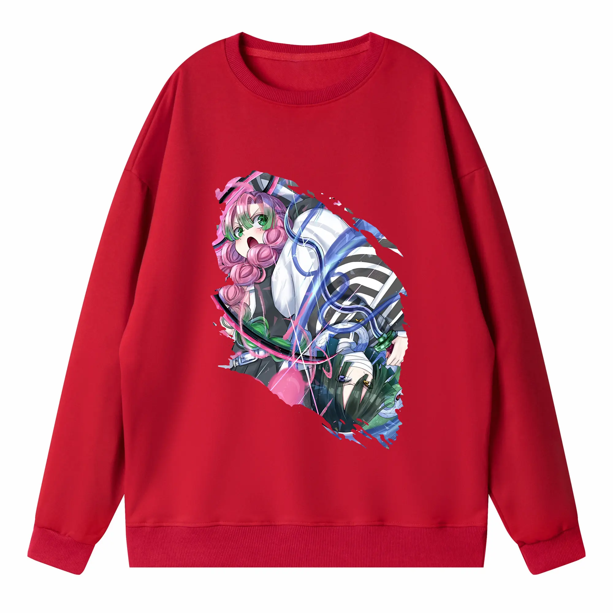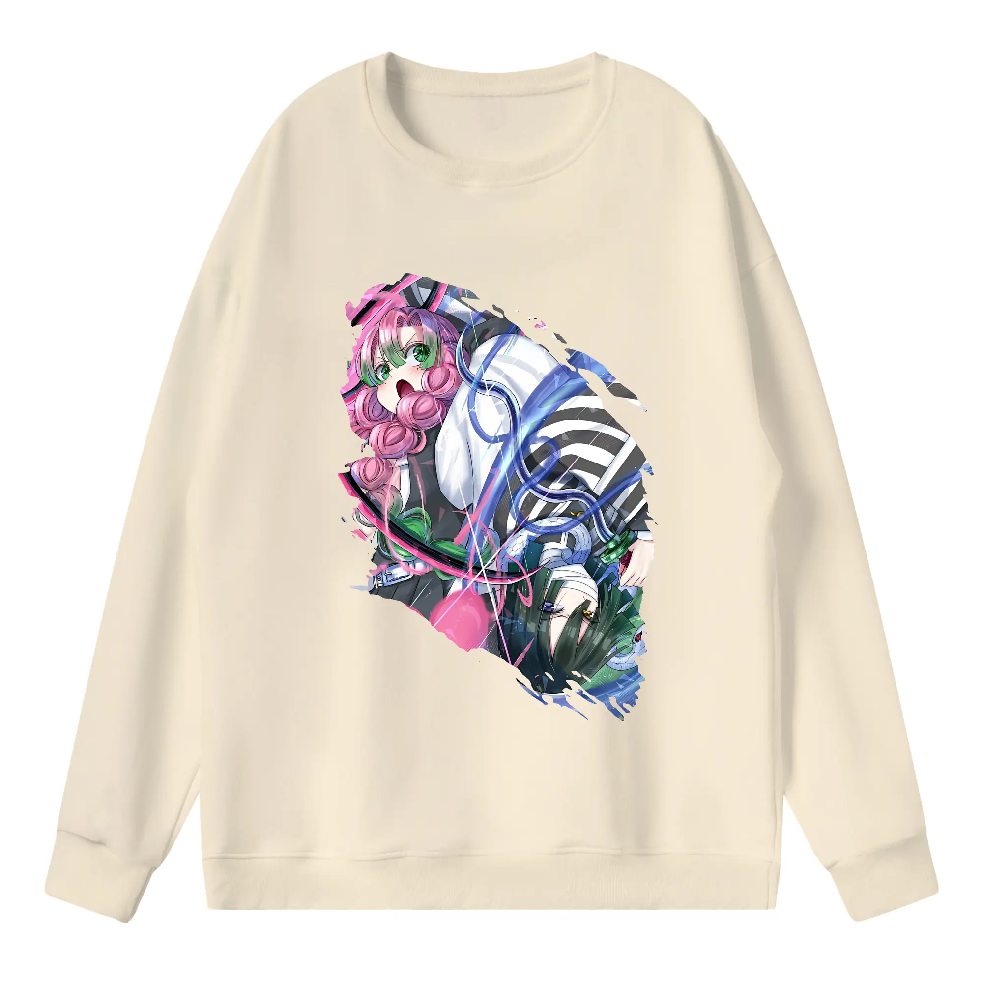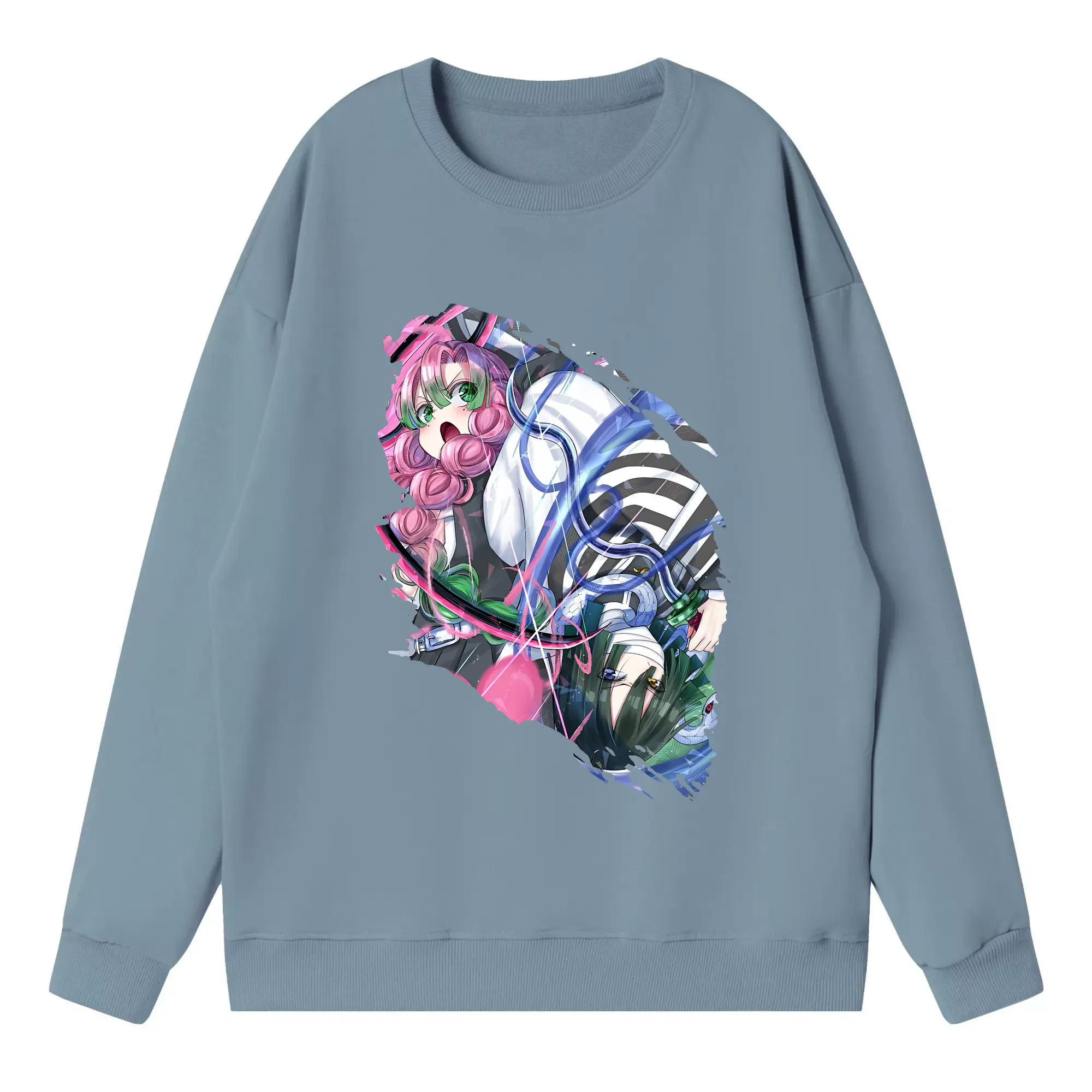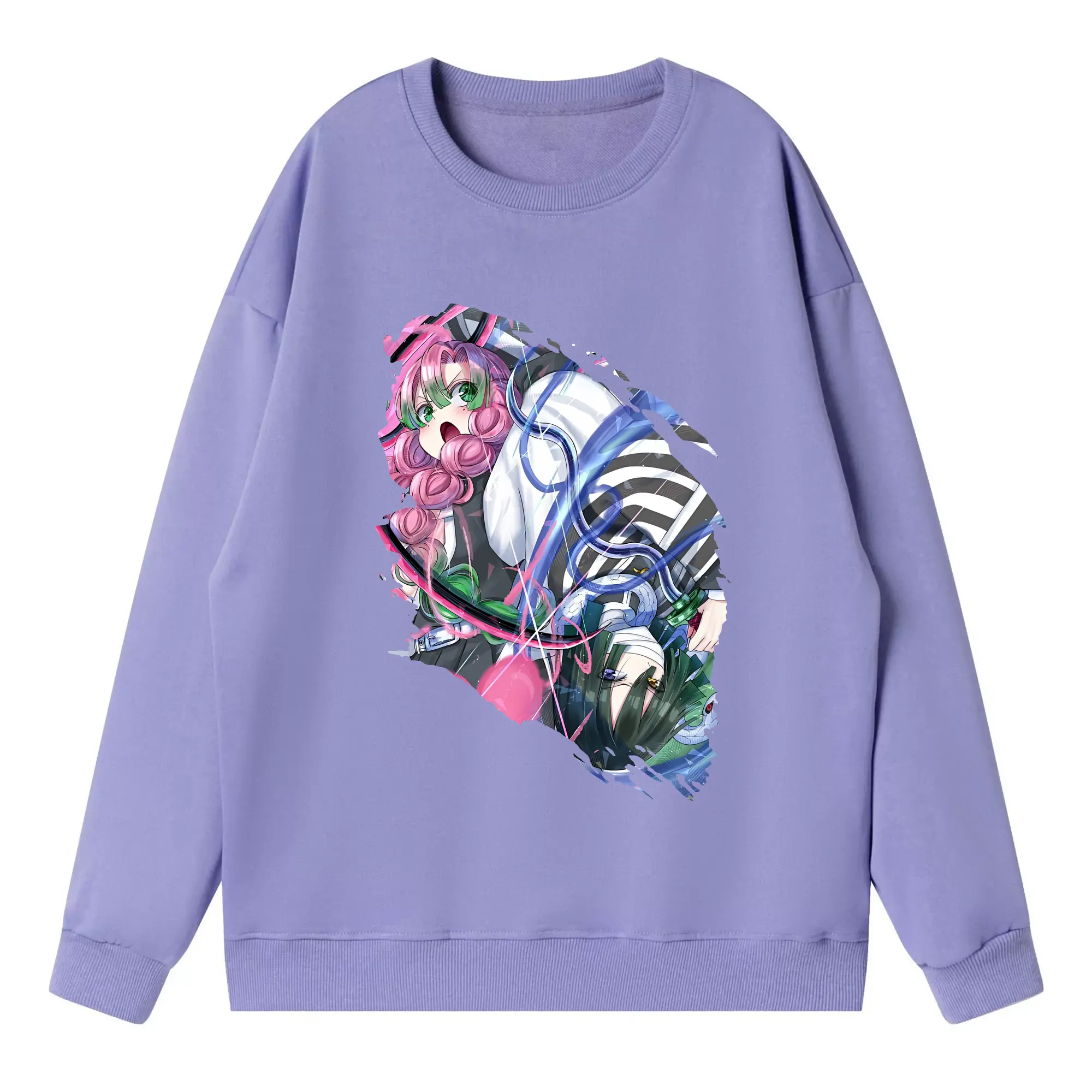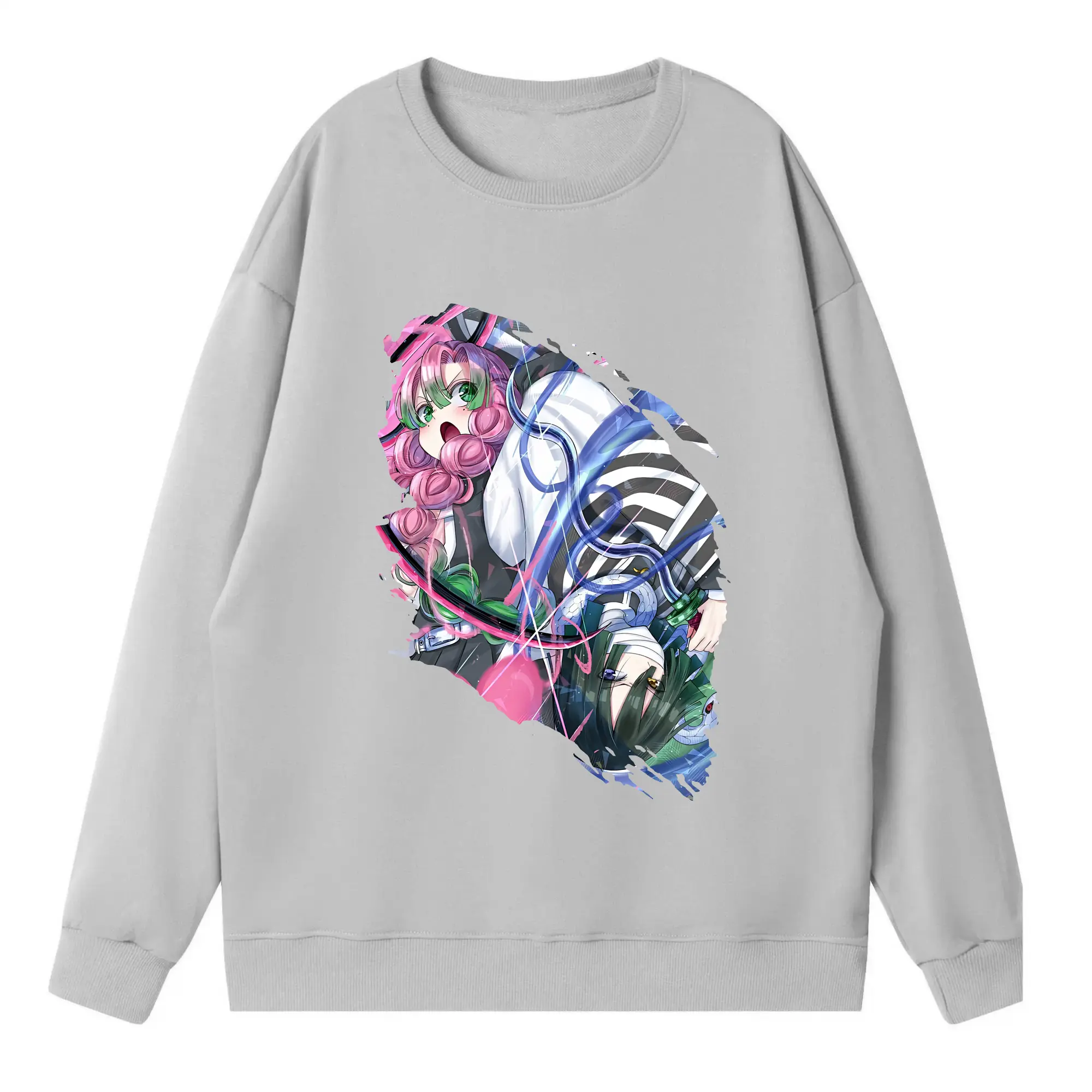 鬼滅の刃 グッズ,甘露寺 蜜璃 - 高品質 クルーネック スウェット ・ コットン59% ポリエステル41% ・ ユニセックス 長袖 トレーナー ・ カジュアル デイリー スポーツ 散歩用