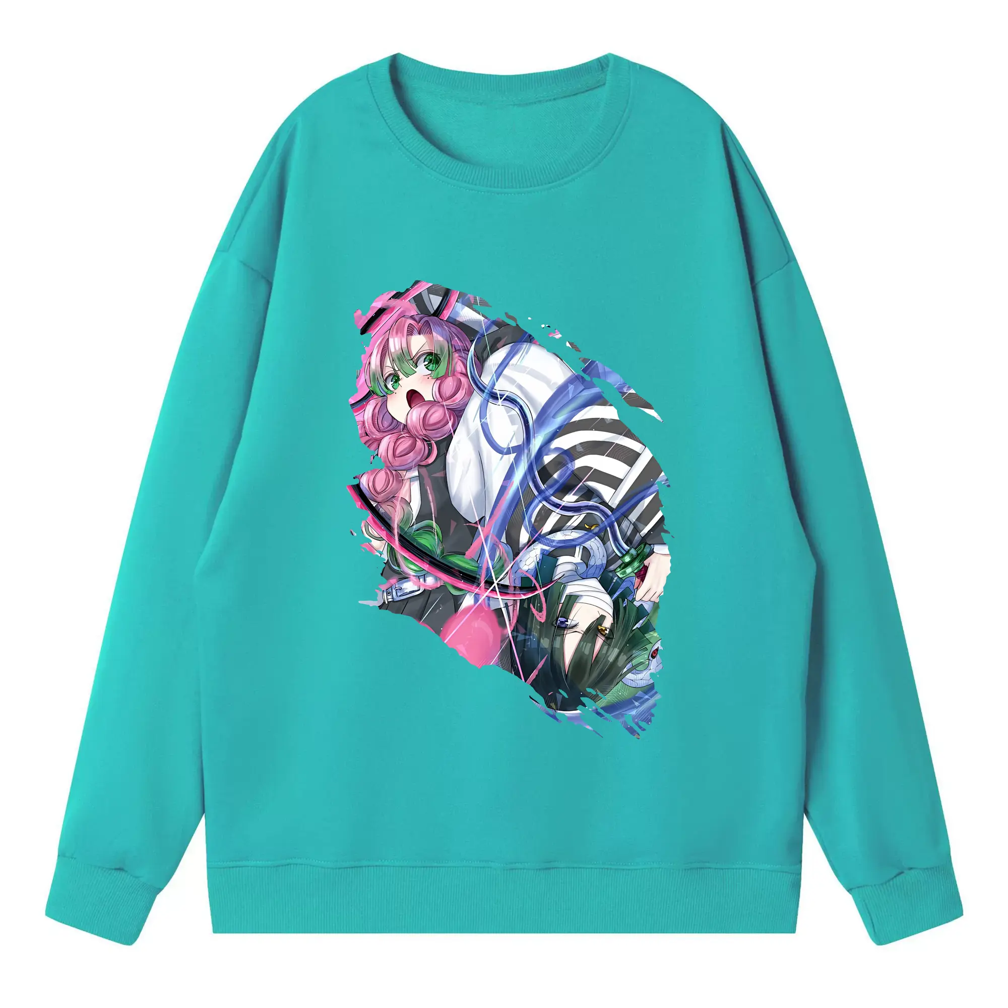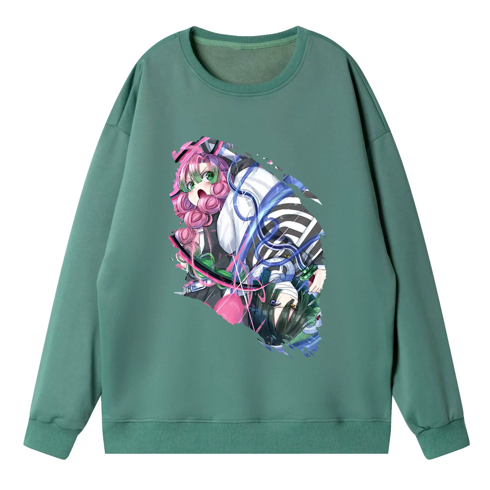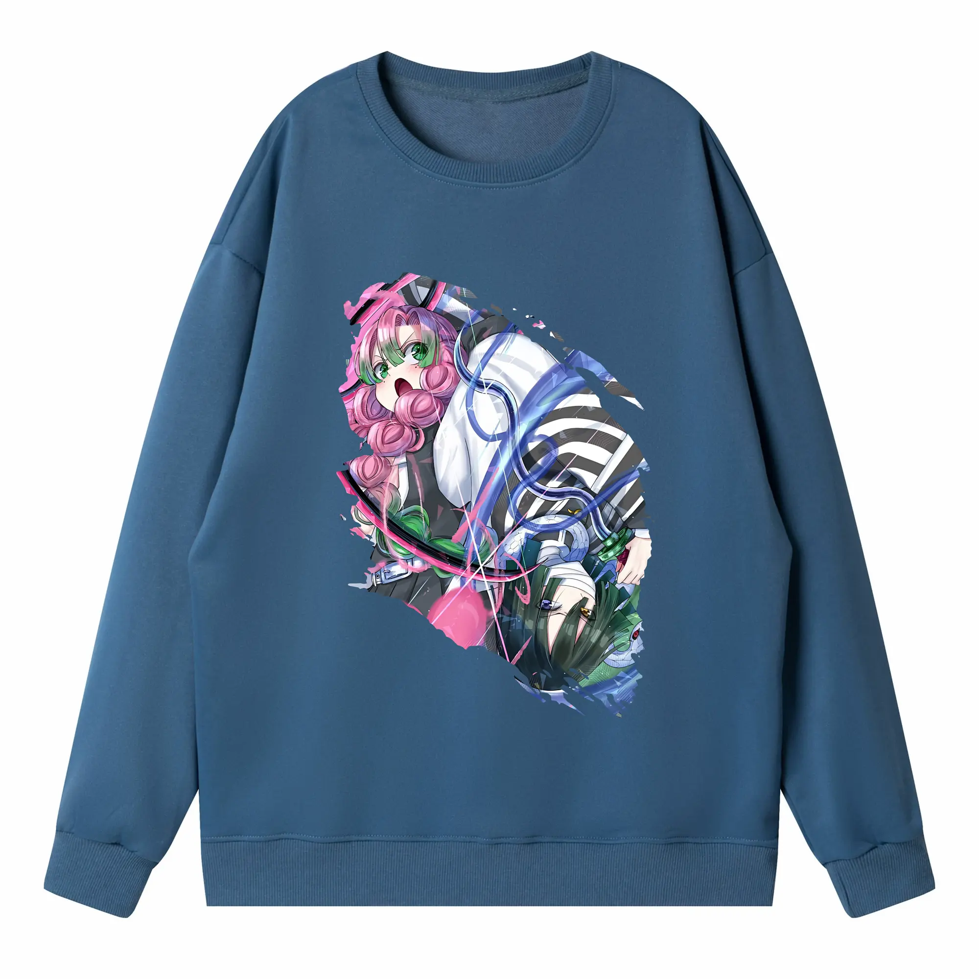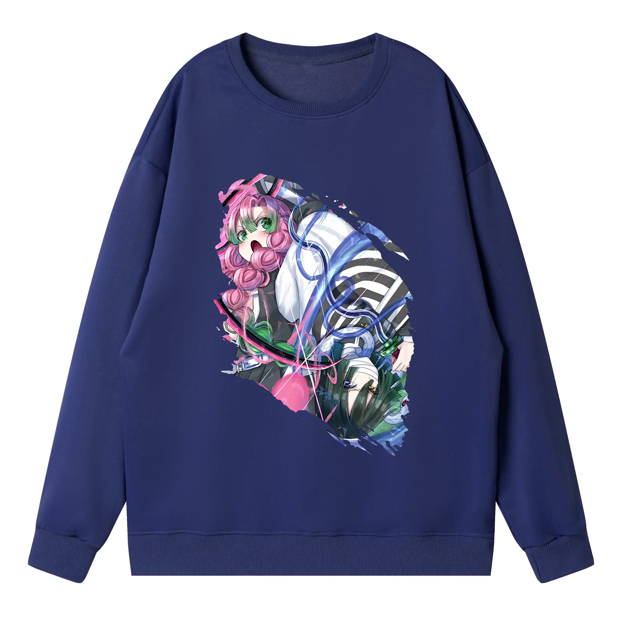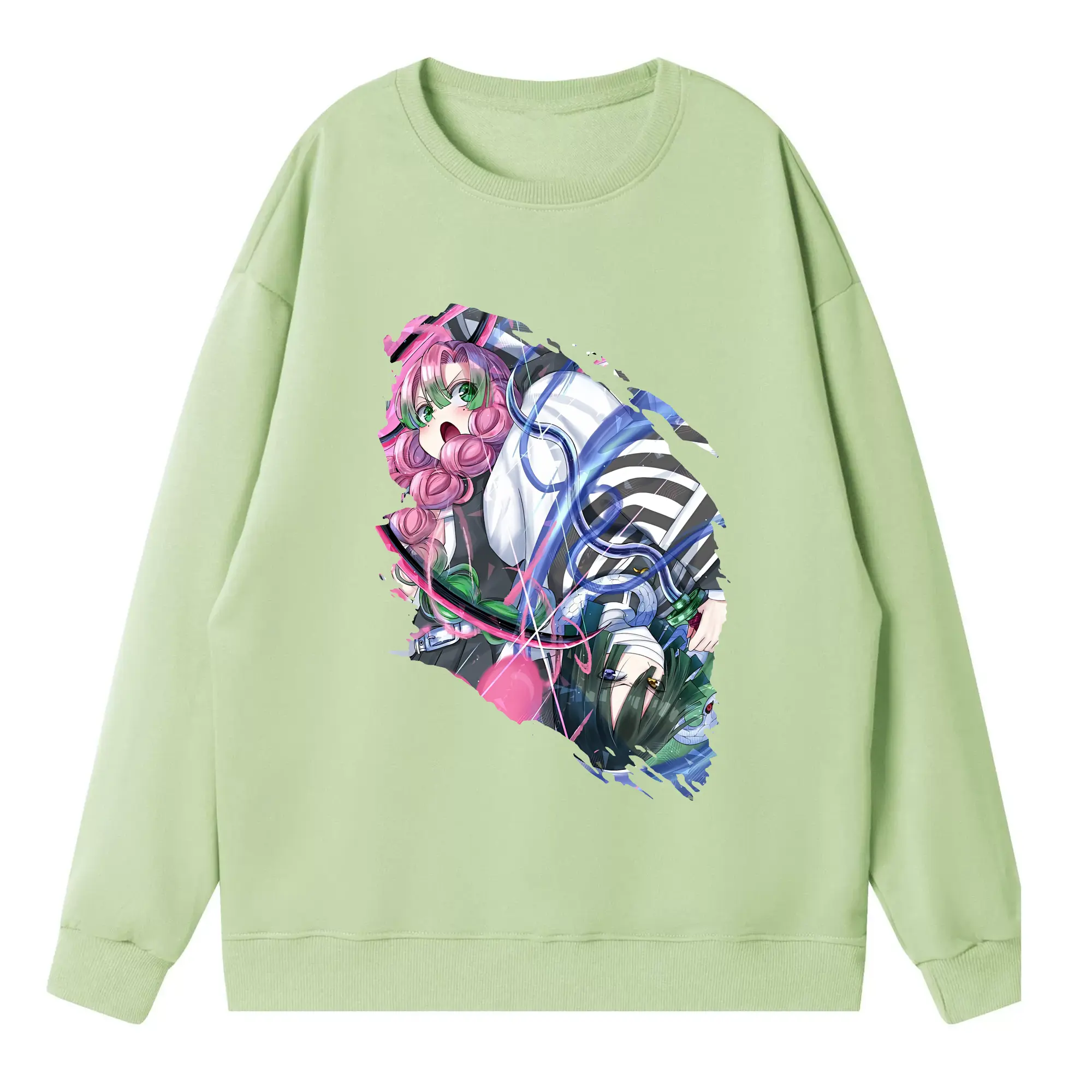 鬼滅の刃 グッズ,甘露寺 蜜璃 - 高品質 クルーネック スウェット ・ コットン59% ポリエステル41% ・ ユニセックス 長袖 トレーナー ・ カジュアル デイリー スポーツ 散歩用