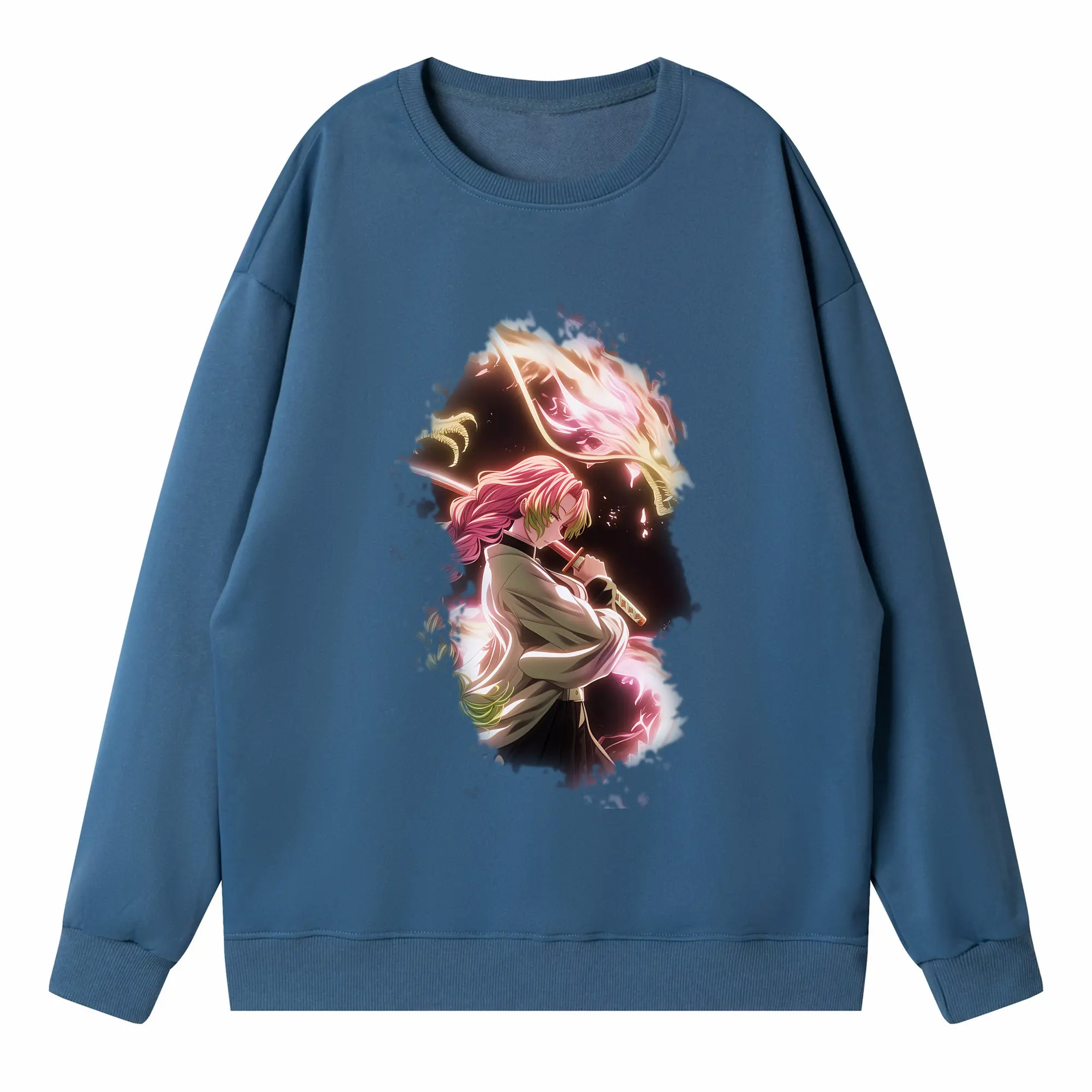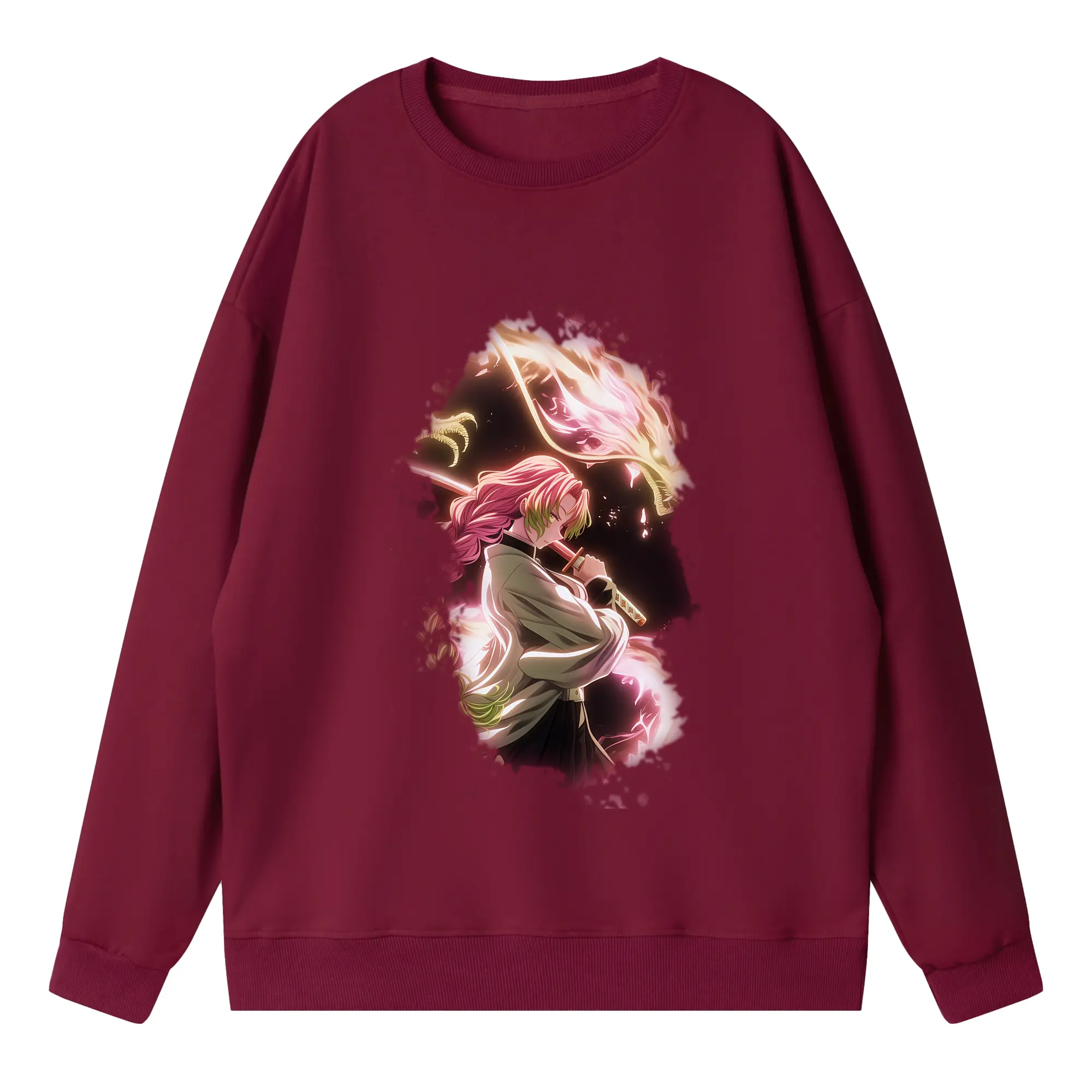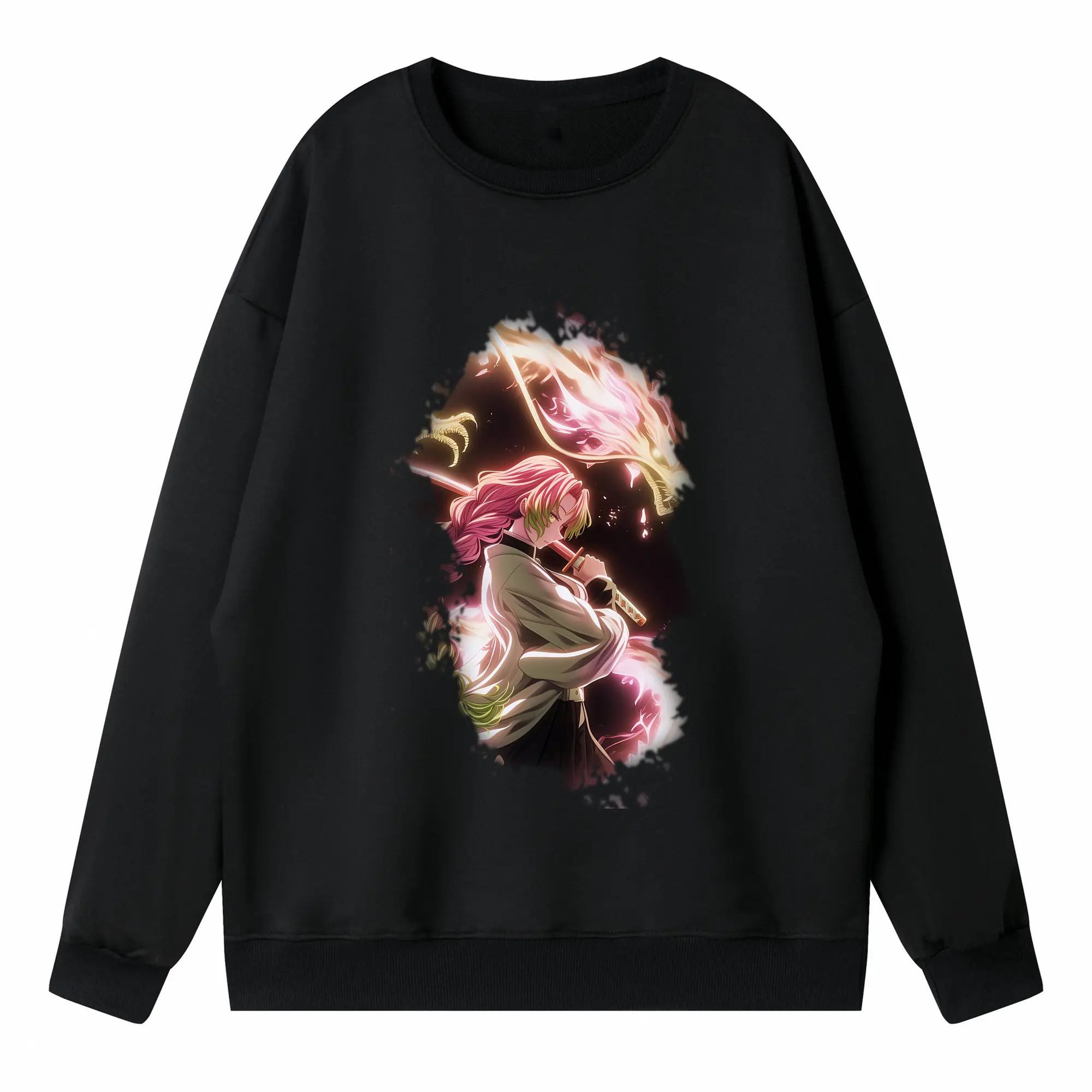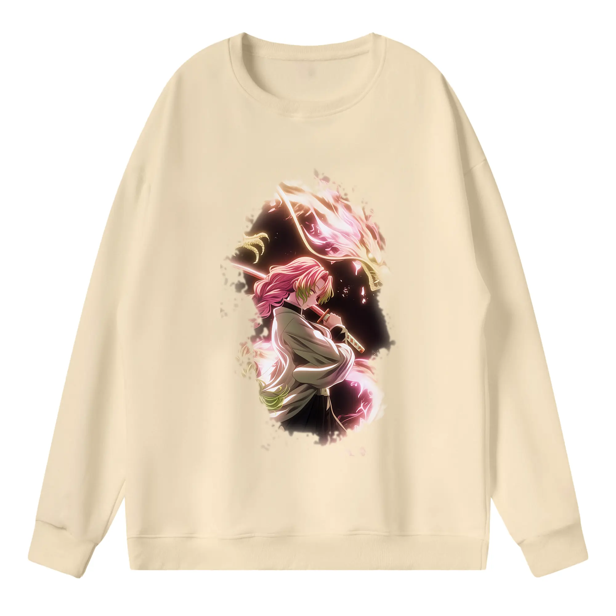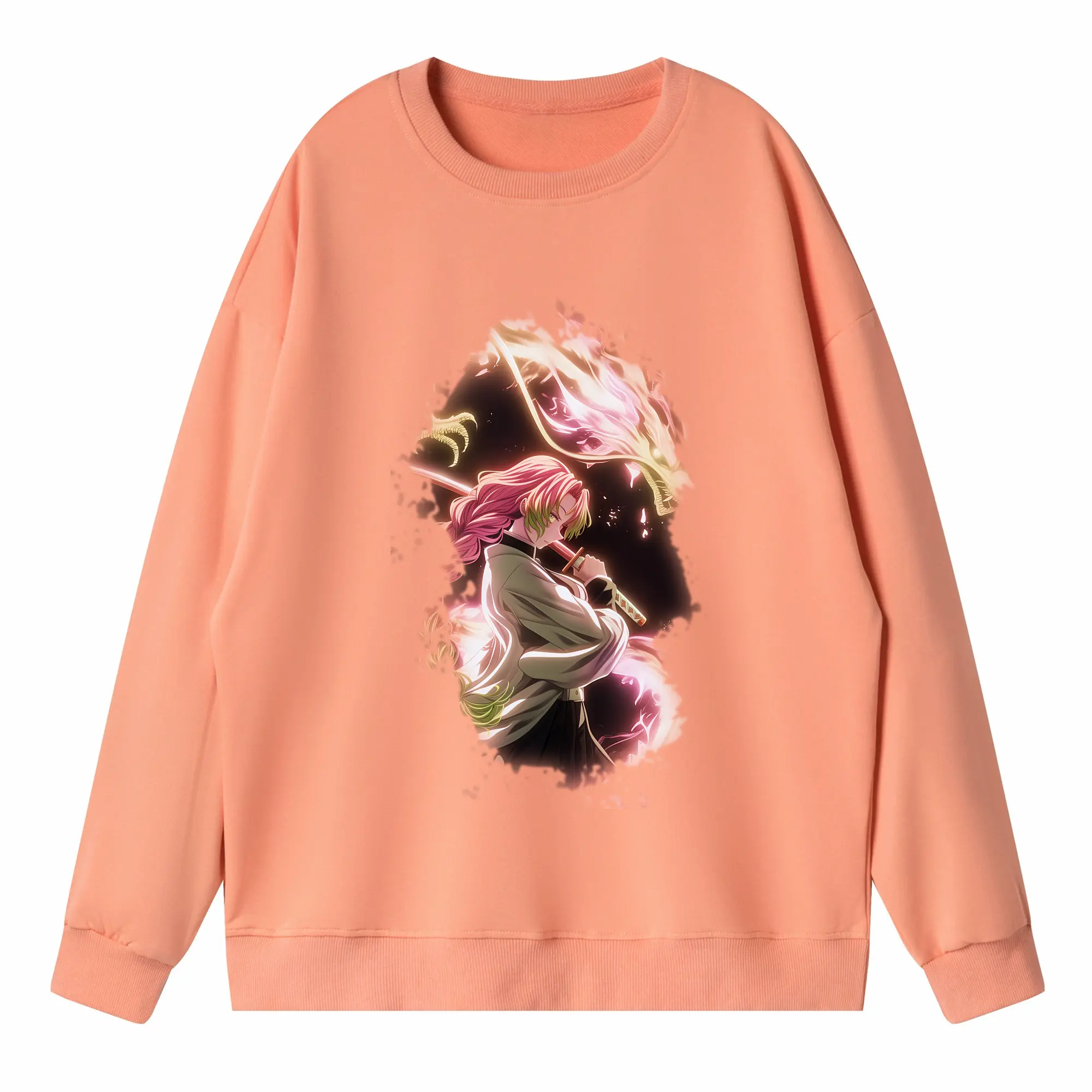 鬼滅の刃 グッズ,甘露寺 蜜璃 - 高品質 クルーネック スウェット ・ コットン59% ポリエステル41% ・ ユニセックス 長袖 トレーナー ・ カジュアル デイリー スポーツ 散歩用