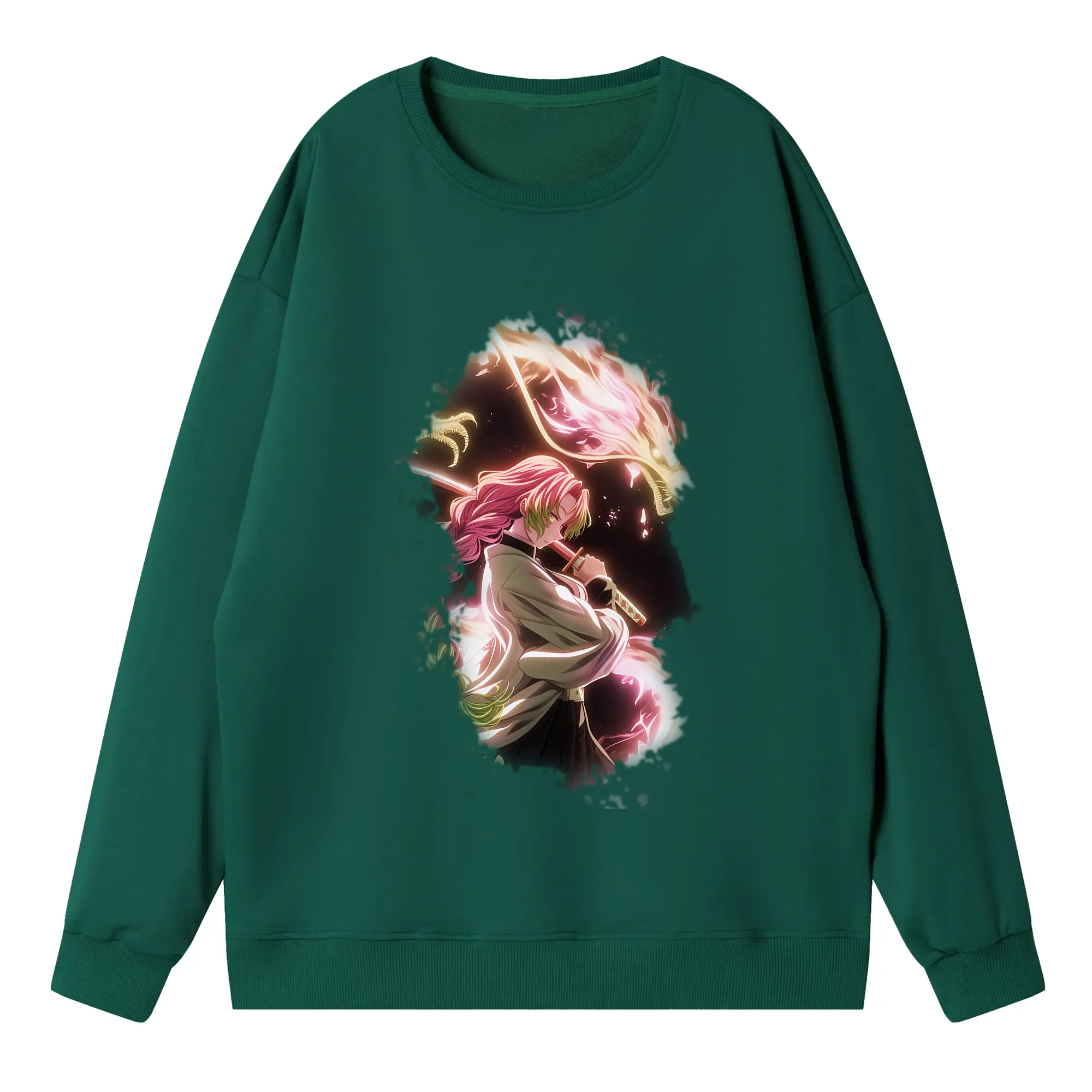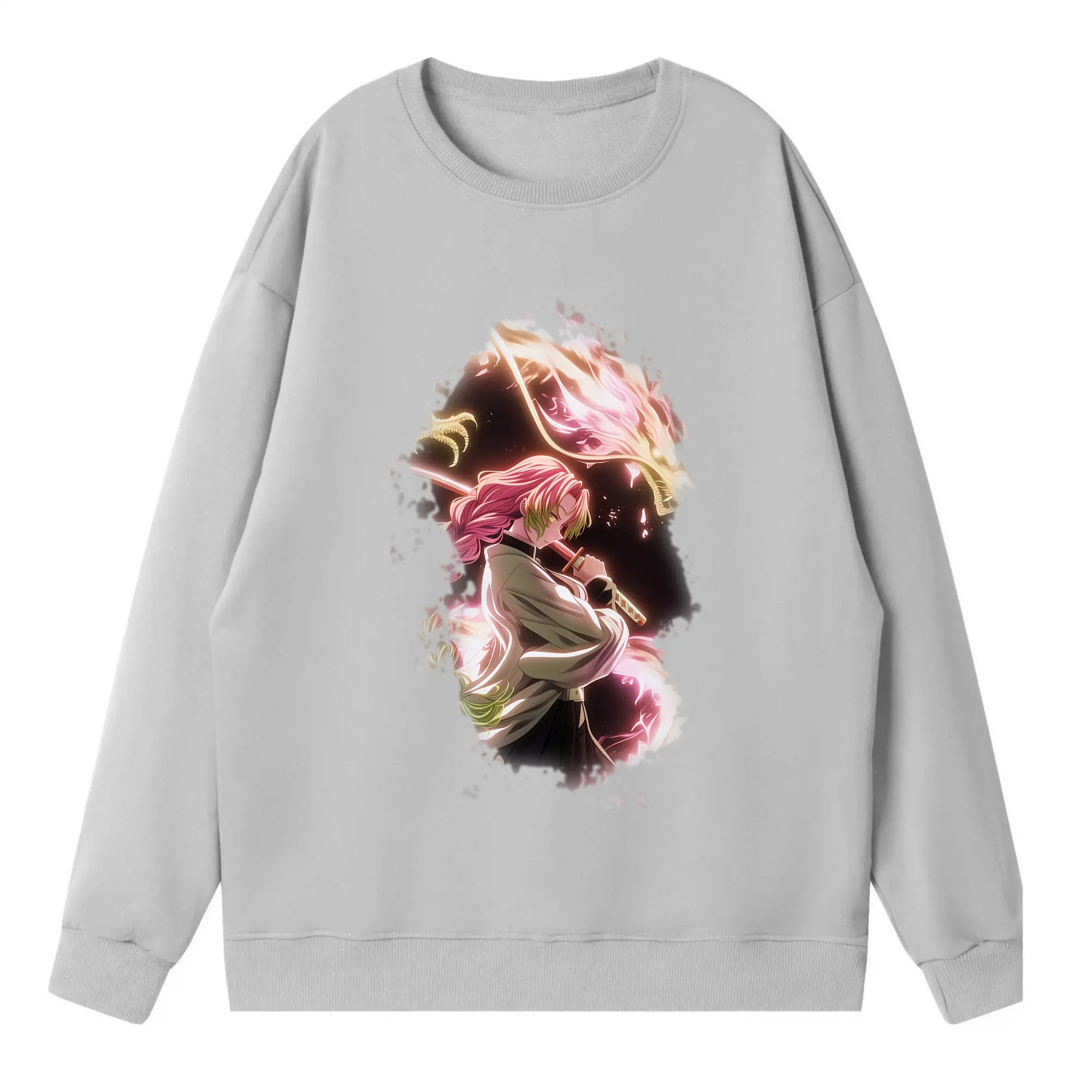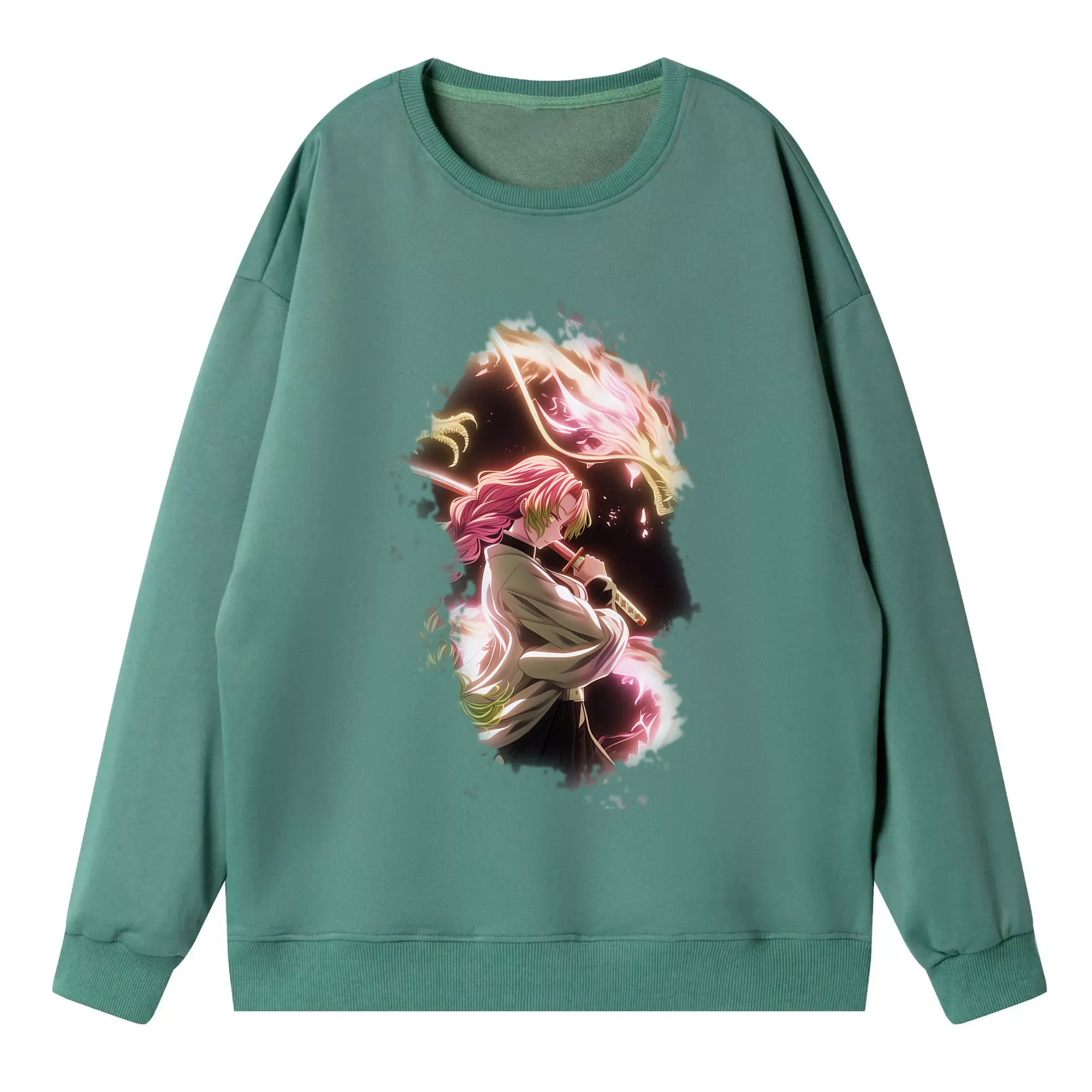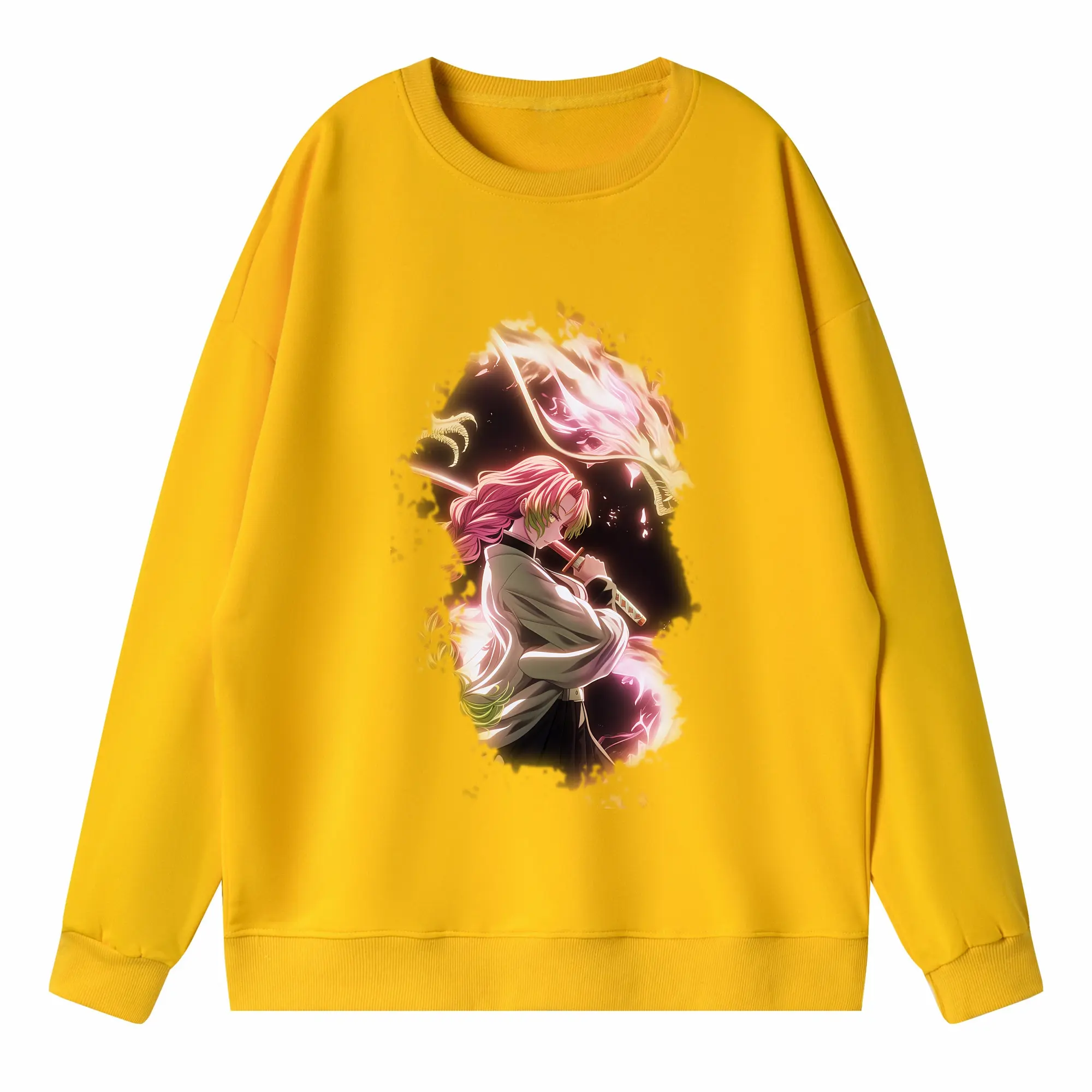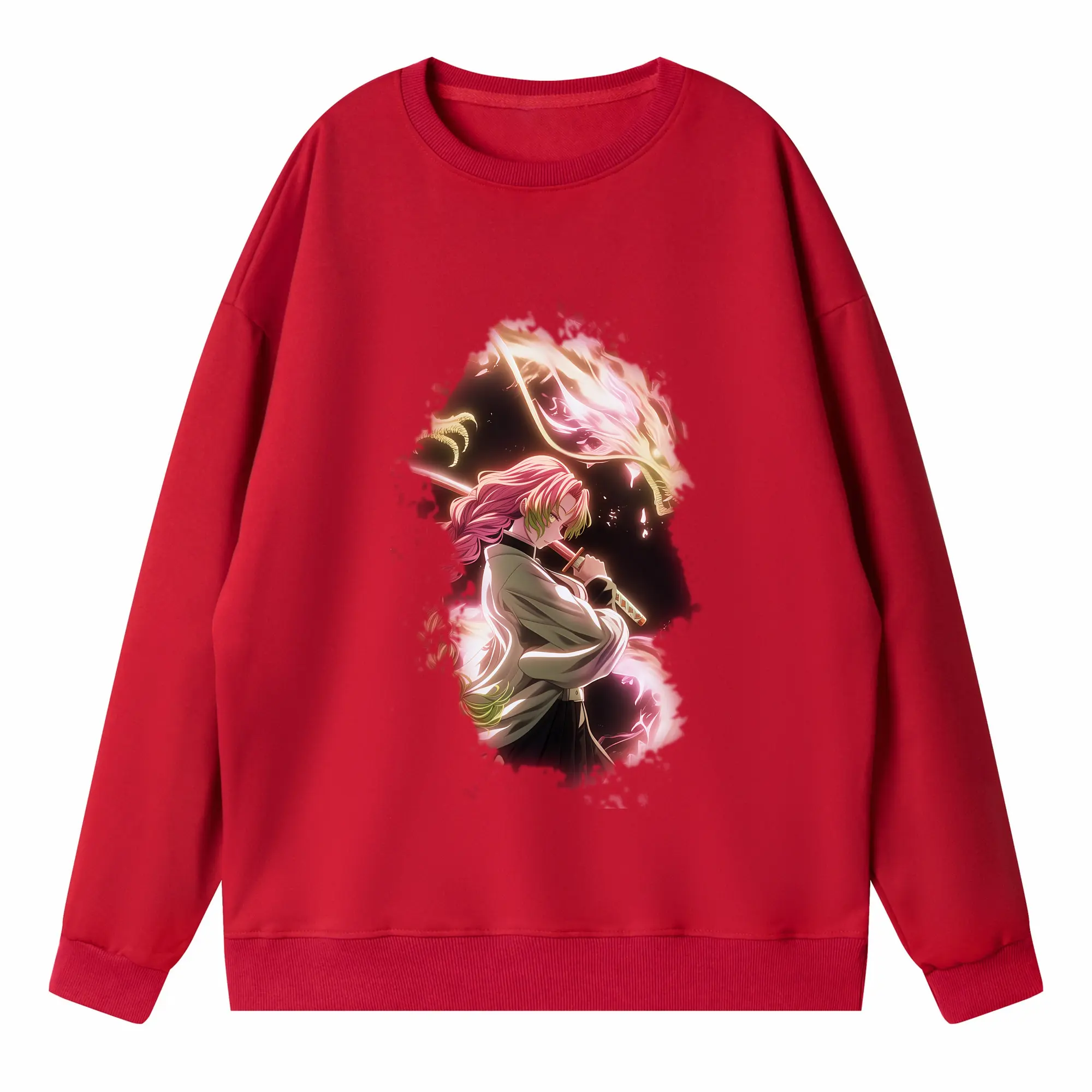 鬼滅の刃 グッズ,甘露寺 蜜璃 - 高品質 クルーネック スウェット ・ コットン59% ポリエステル41% ・ ユニセックス 長袖 トレーナー ・ カジュアル デイリー スポーツ 散歩用