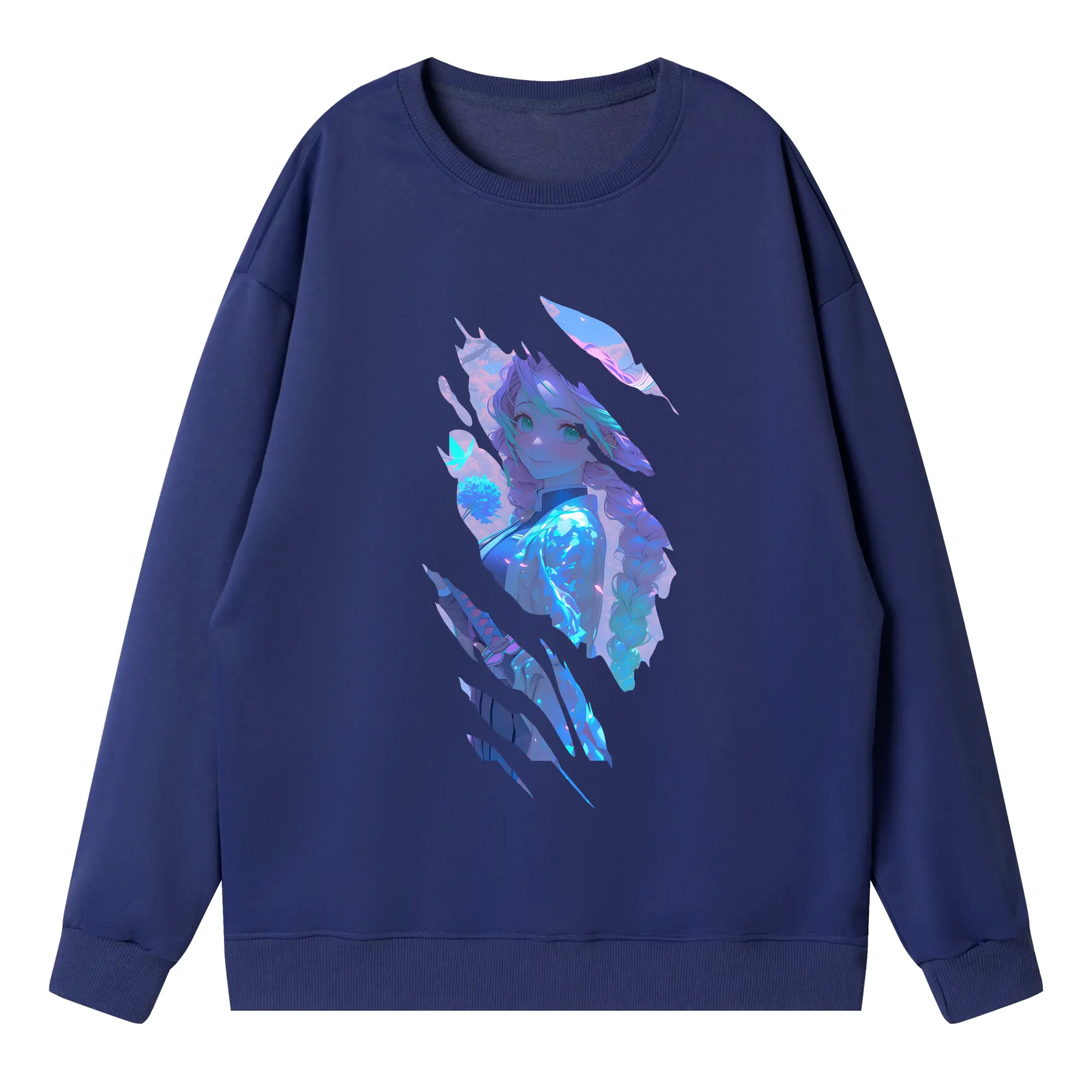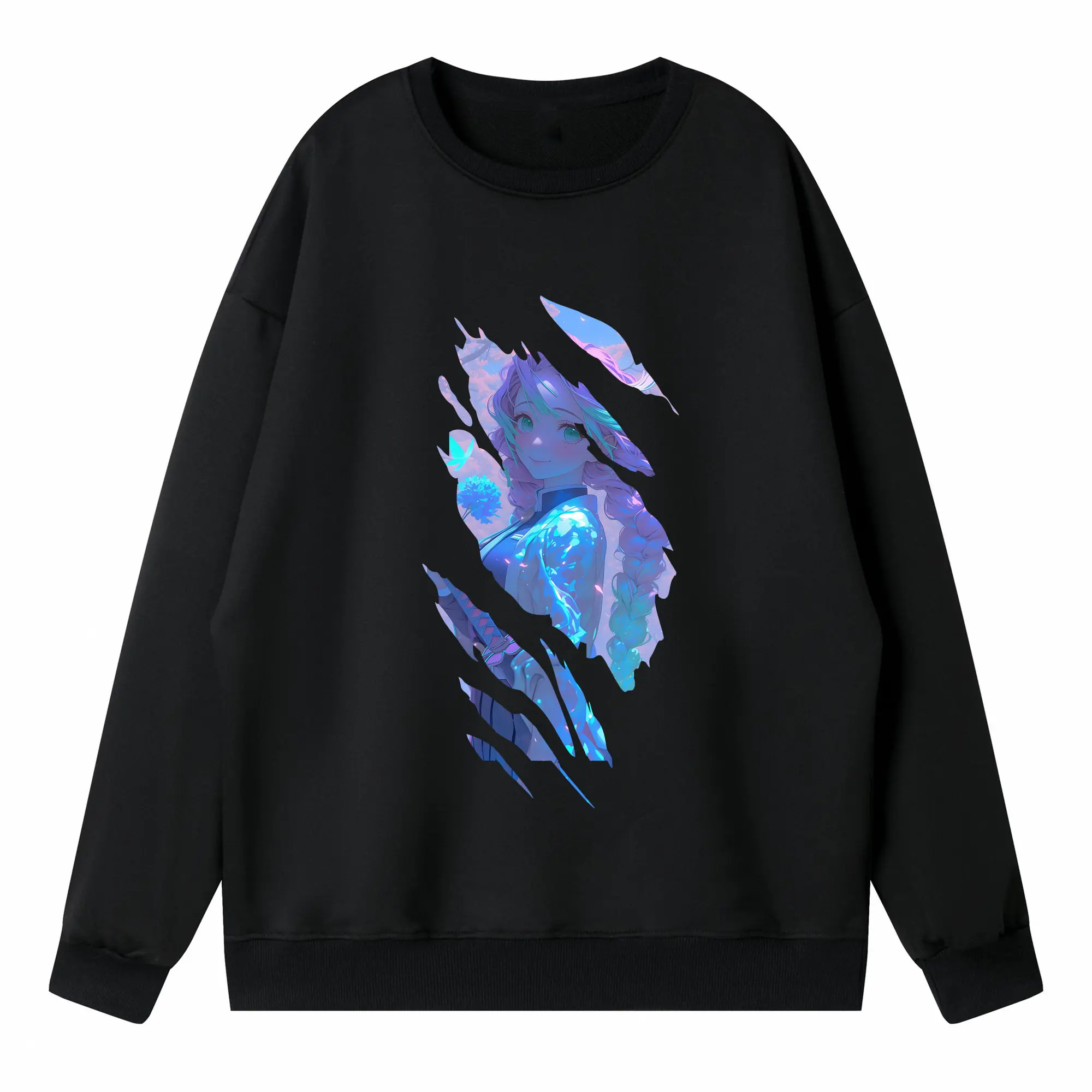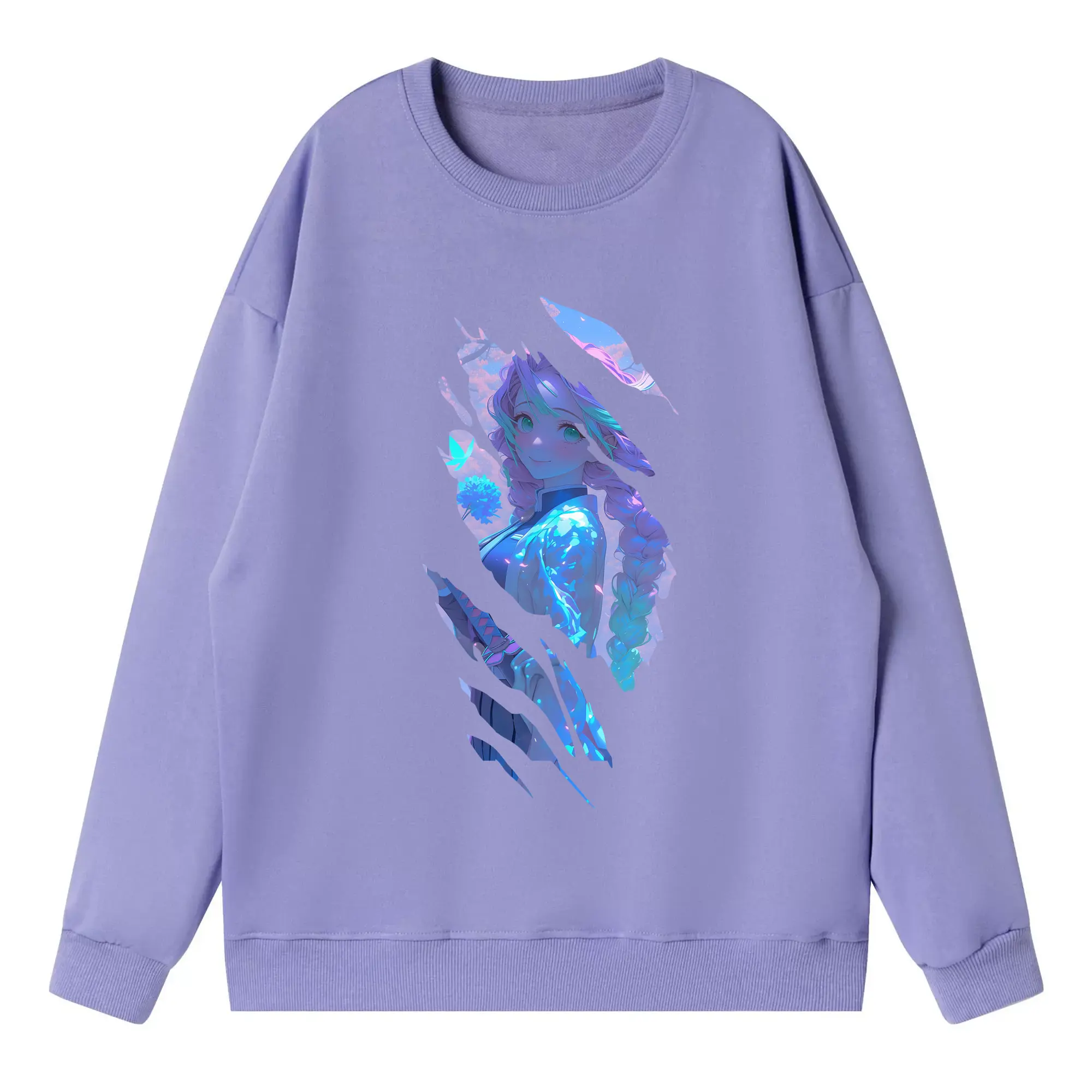 ブリーチ グッズ 朽木 ルキア - 薄手 クルーネック スウェット 裏毛260g · ポリエステル 春秋向け カジュアル 男女兼用 · トレーナー デイリー スポーツ 散歩に最適